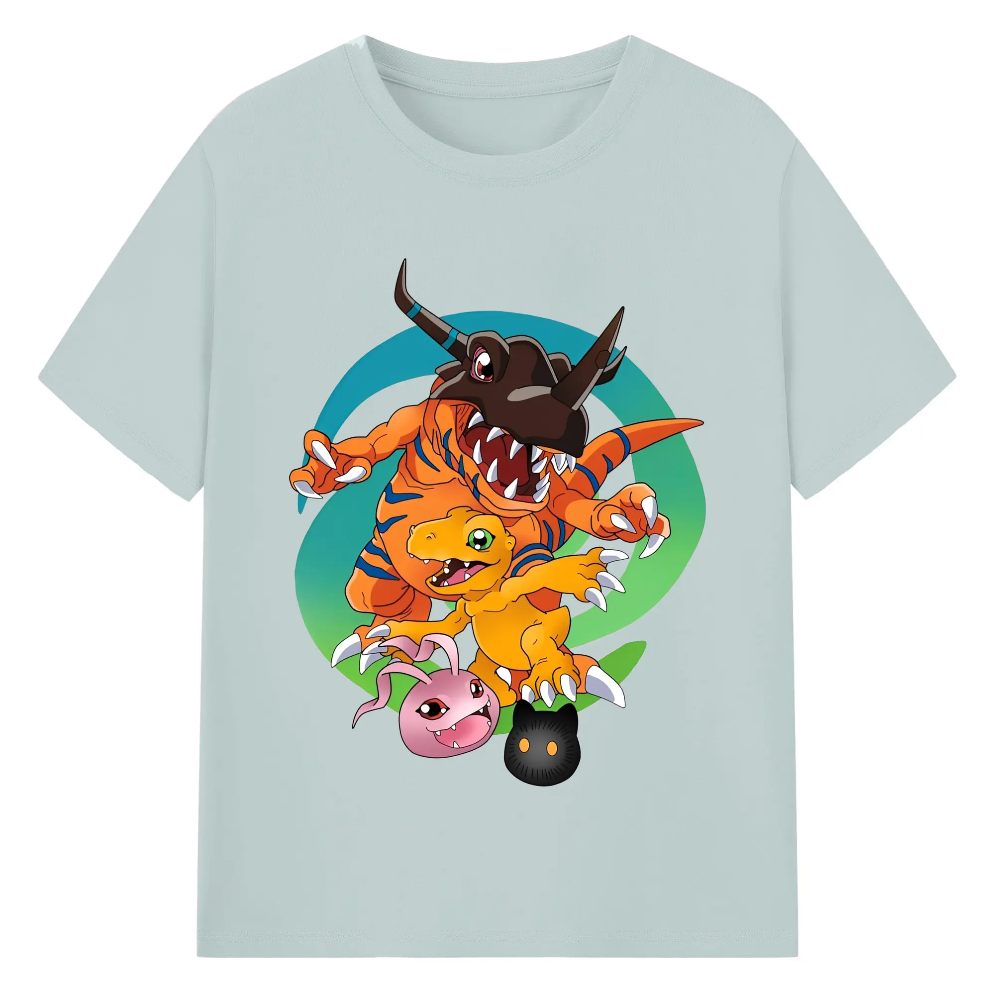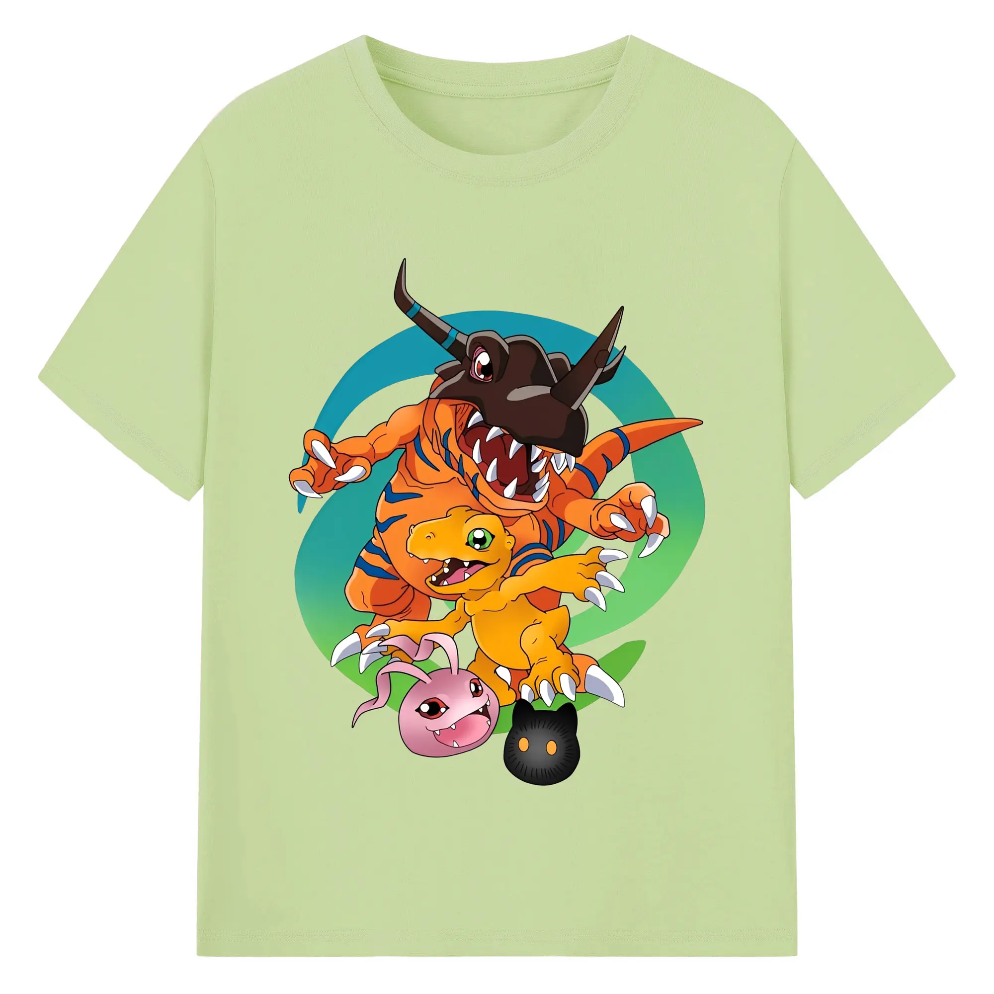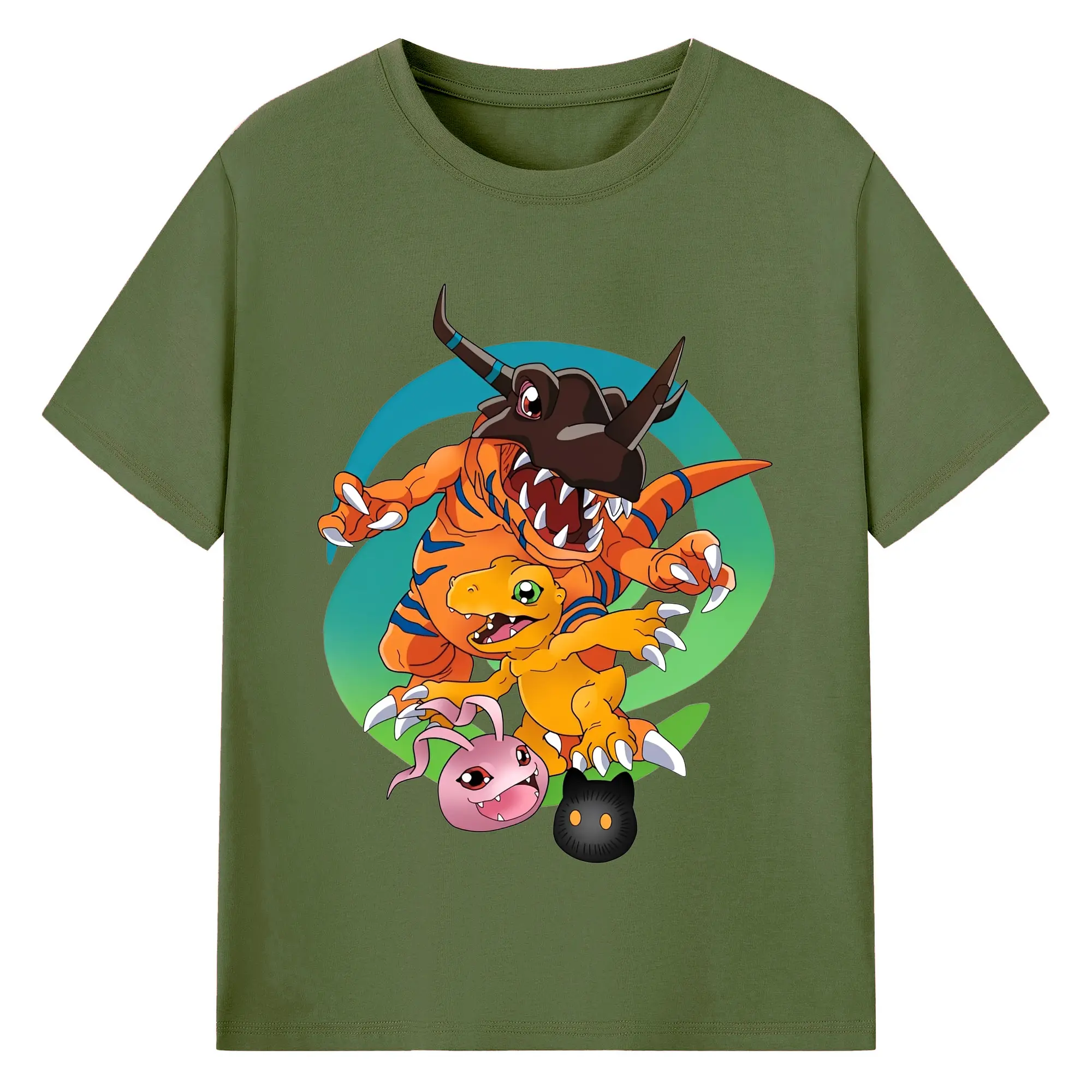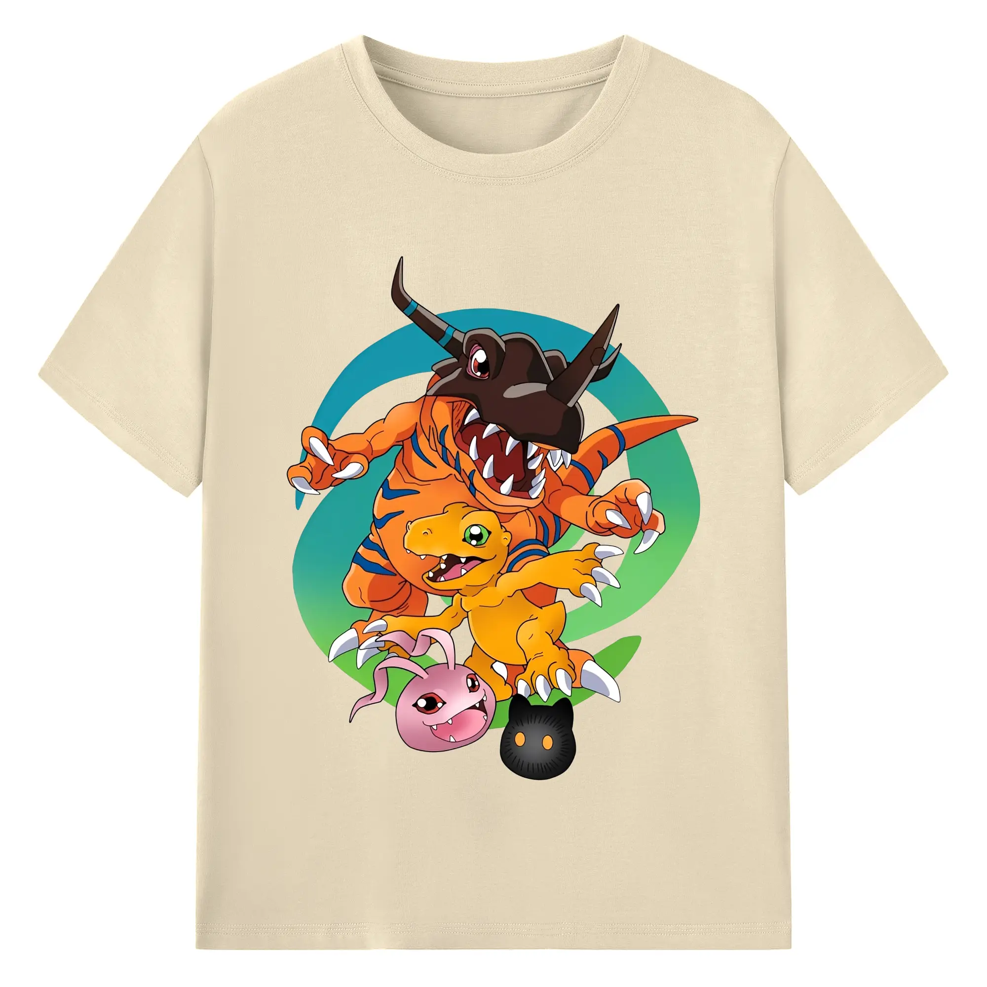 人気アグモングレイモンコロモン - 綿100% ヴィンテージ風 半袖Tシャツ ・ フロントプリント ・ 柔らか肌触り ・ 通気性 快適 ・ スポーツ カジュアル 外出用