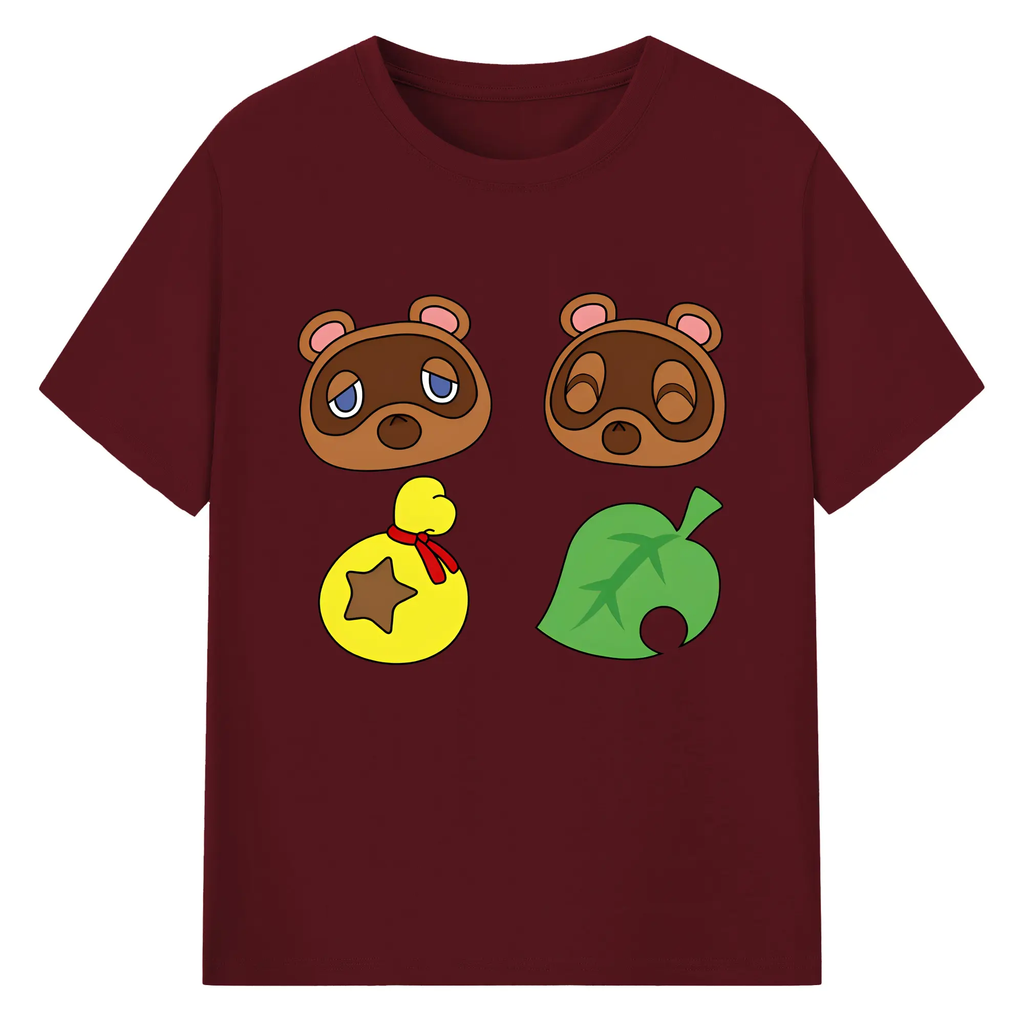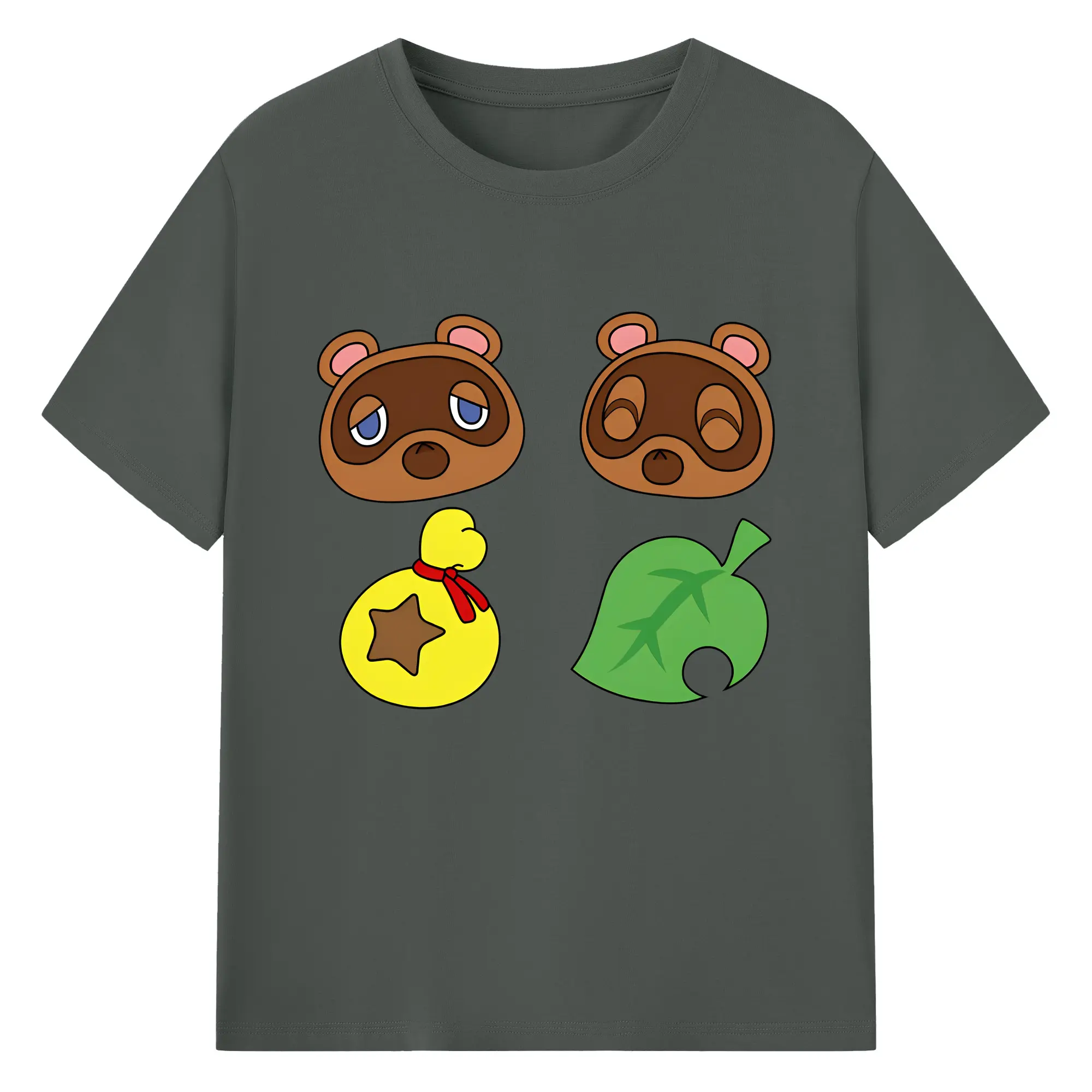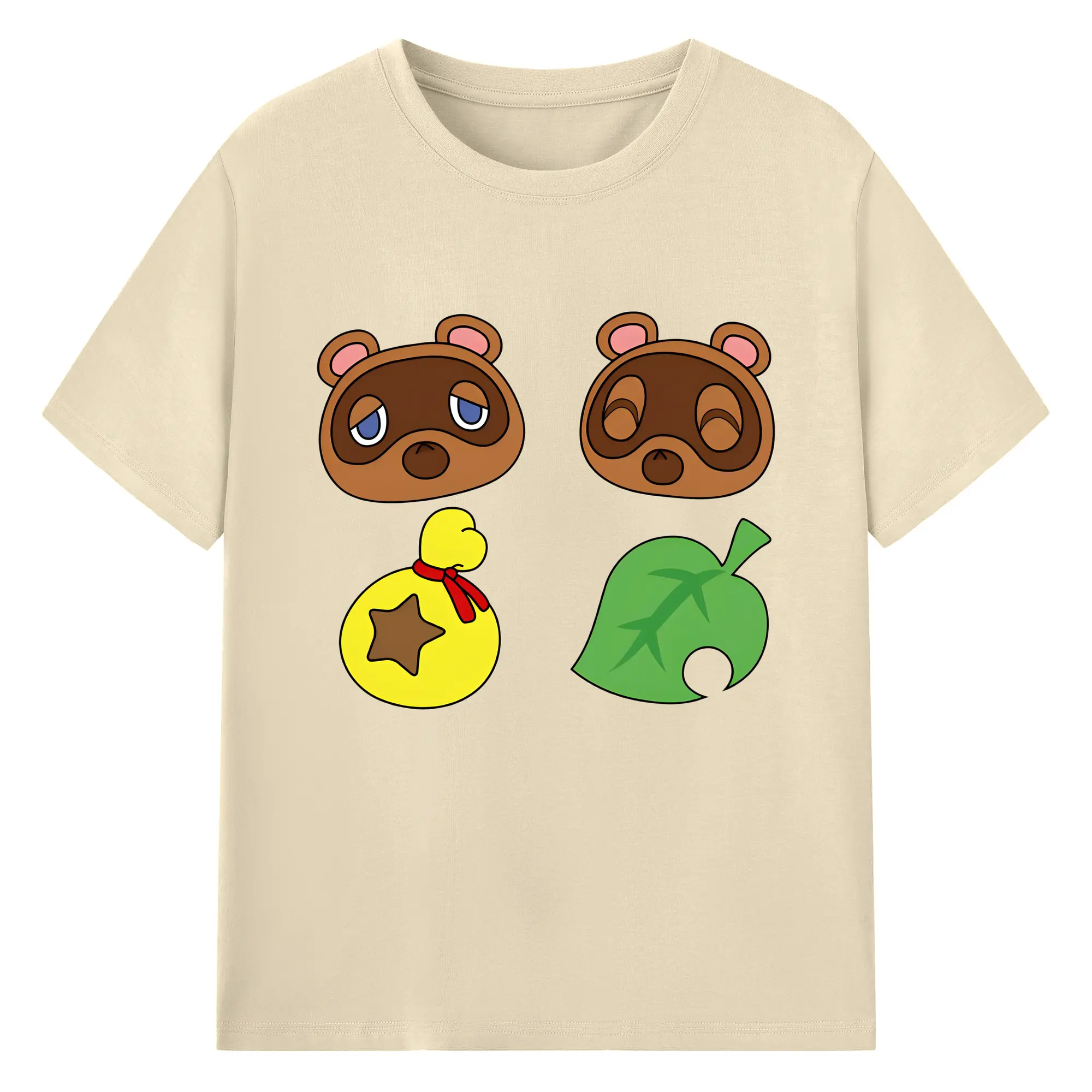 人気キャラクター たぬきち どうぶつの森 - 綿100% ヴィンテージ風 半袖Tシャツ ・ フロントプリント ・ 柔らか肌触り ・ 通気性 快適 ・ スポーツ カジュアル 外出用