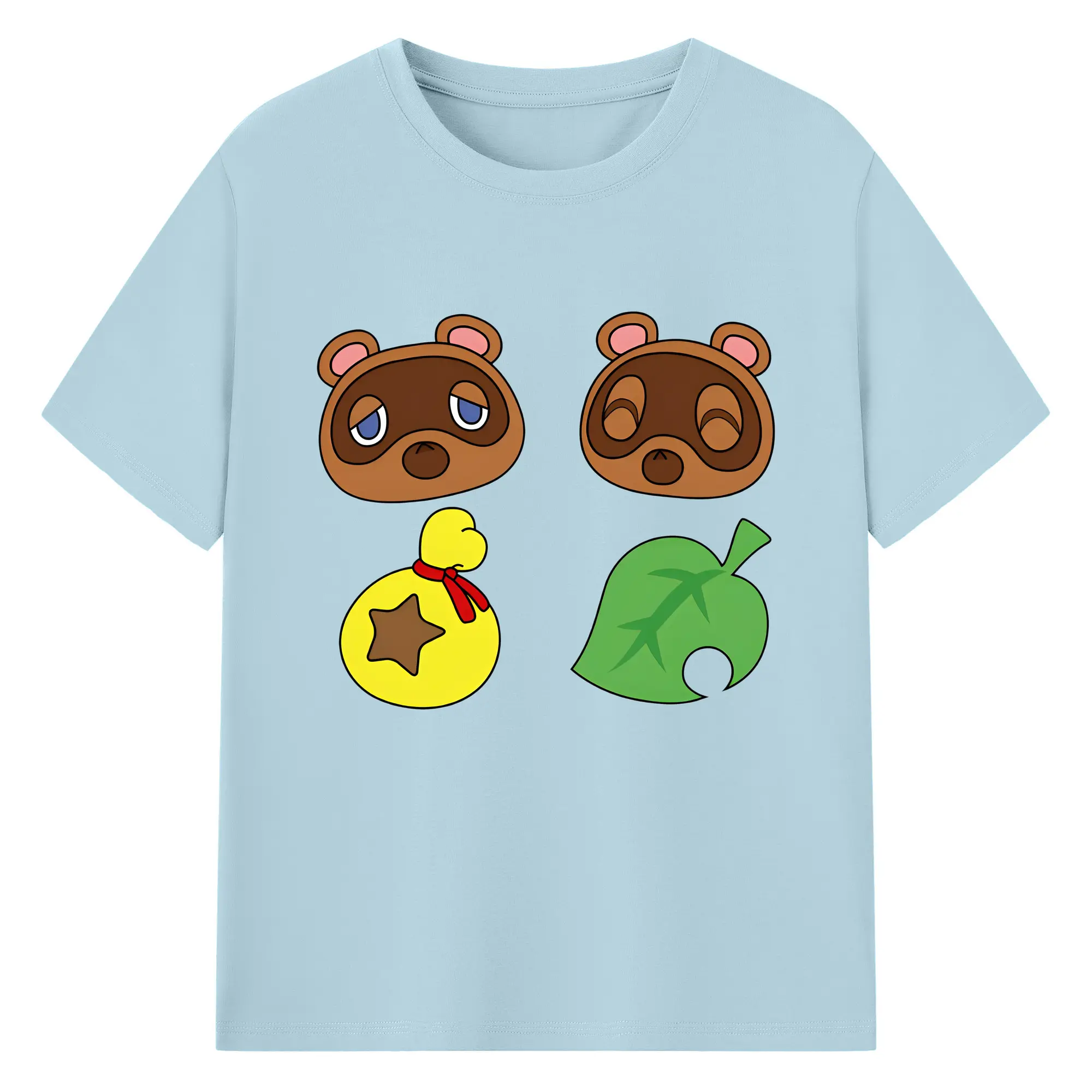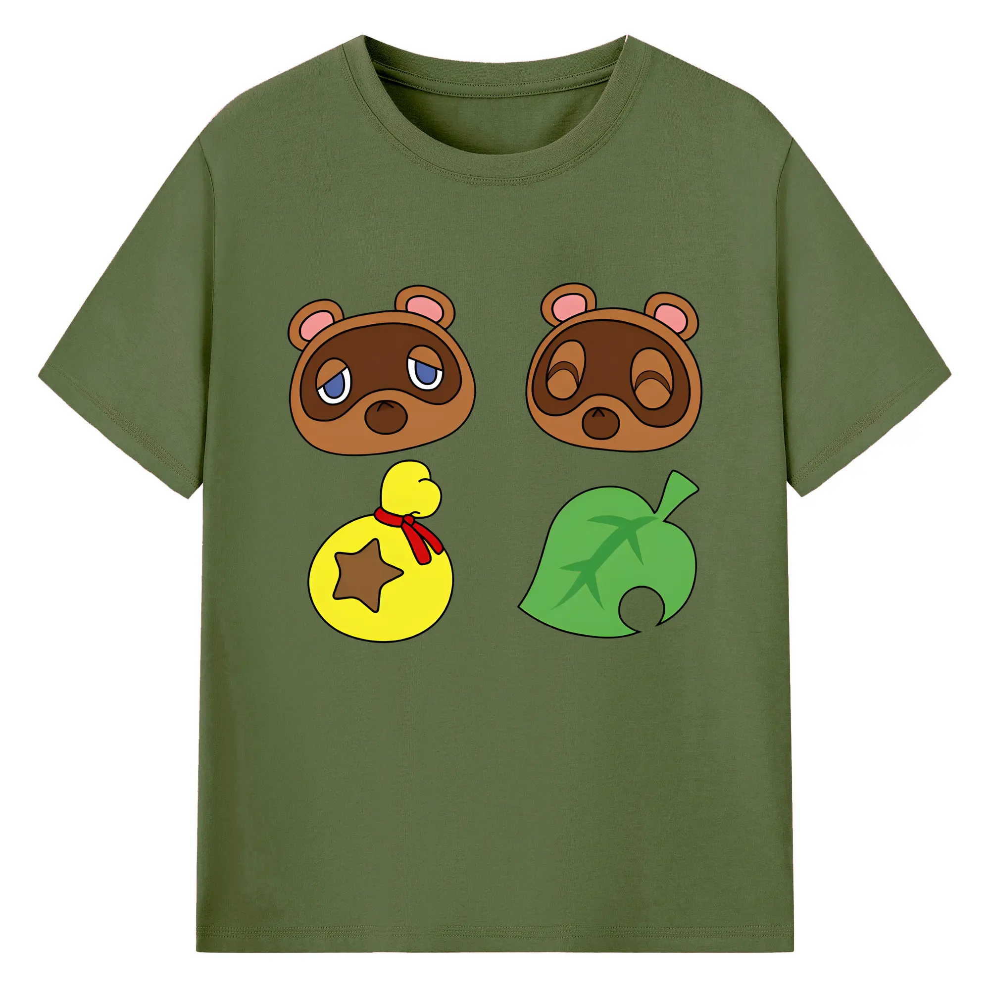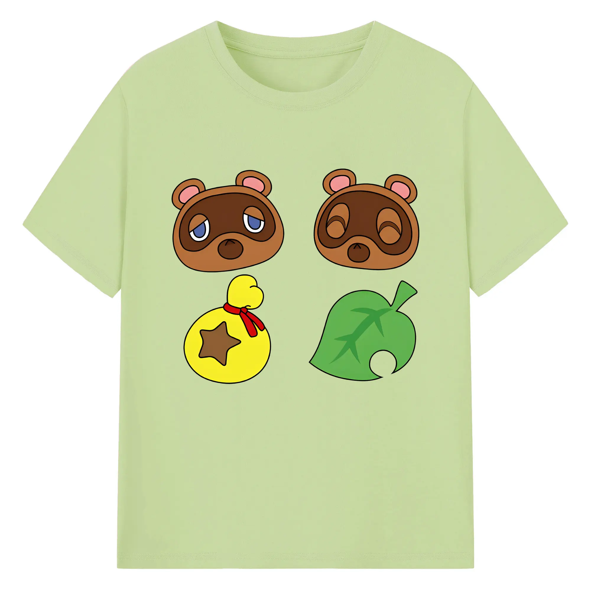 人気キャラクター たぬきち どうぶつの森 - 綿100% ヴィンテージ風 半袖Tシャツ ・ フロントプリント ・ 柔らか肌触り ・ 通気性 快適 ・ スポーツ カジュアル 外出用