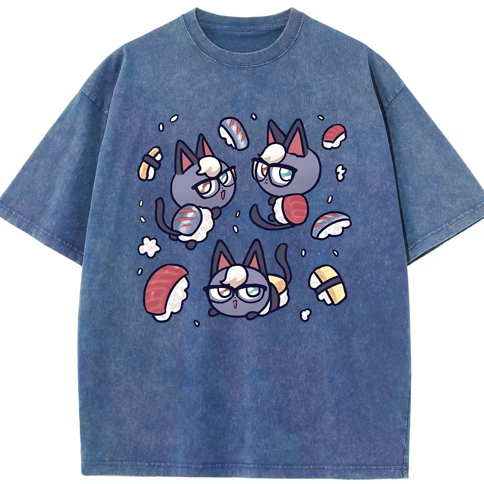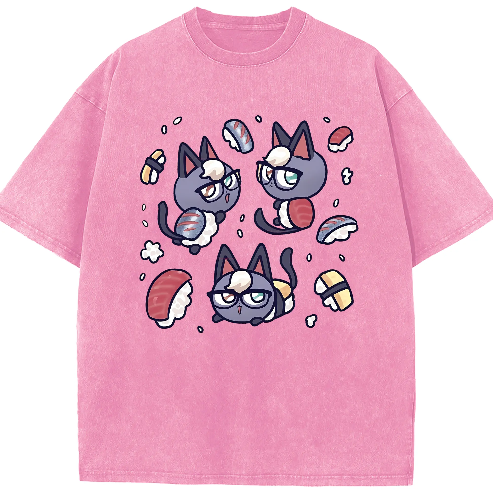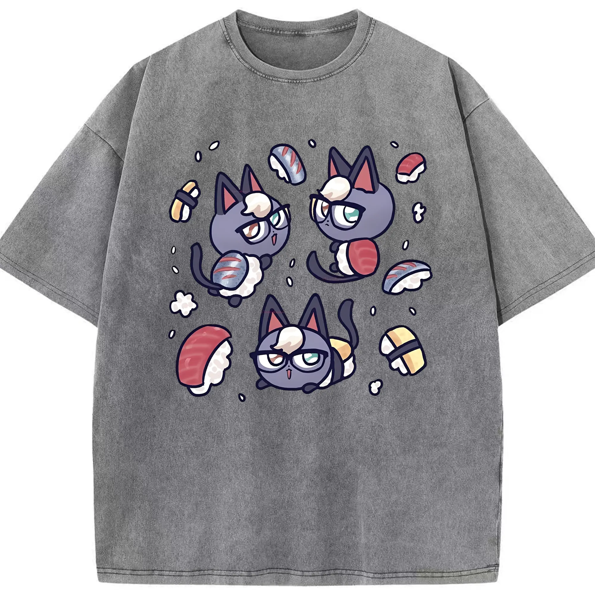 ピスケ&うさぎのおうちパーリー🏠🥳 ねーねーねこ達とはオンラインで乾杯です🍻 - 綿100% ヴィンテージ風 半袖Tシャツ ・ フロントプリント ・ 柔らか肌触り ・ 通気性 快適 ・ スポーツ カジュアル 外出用