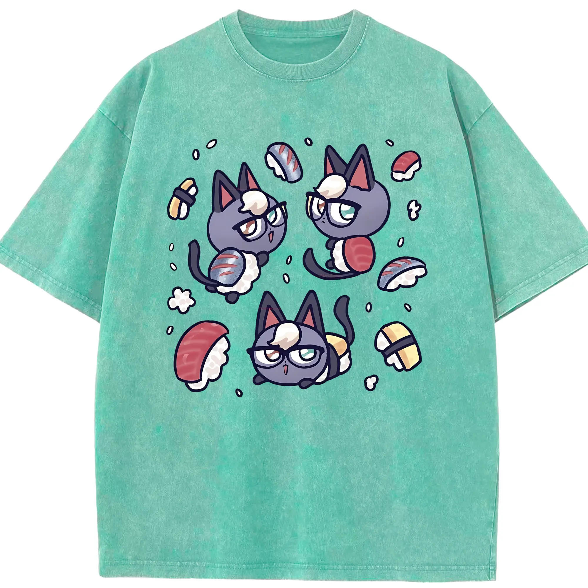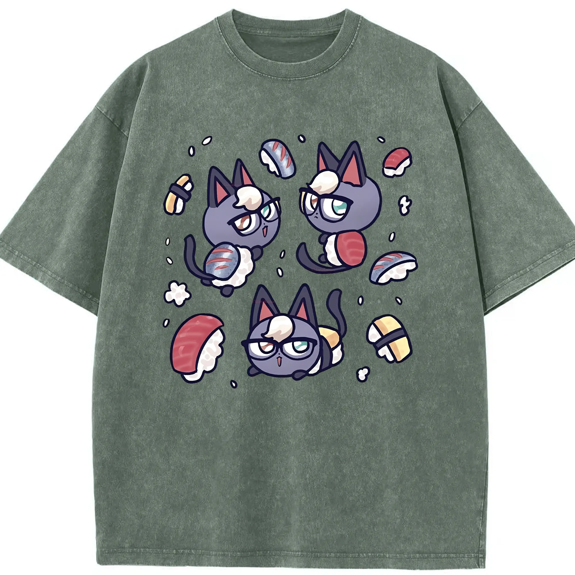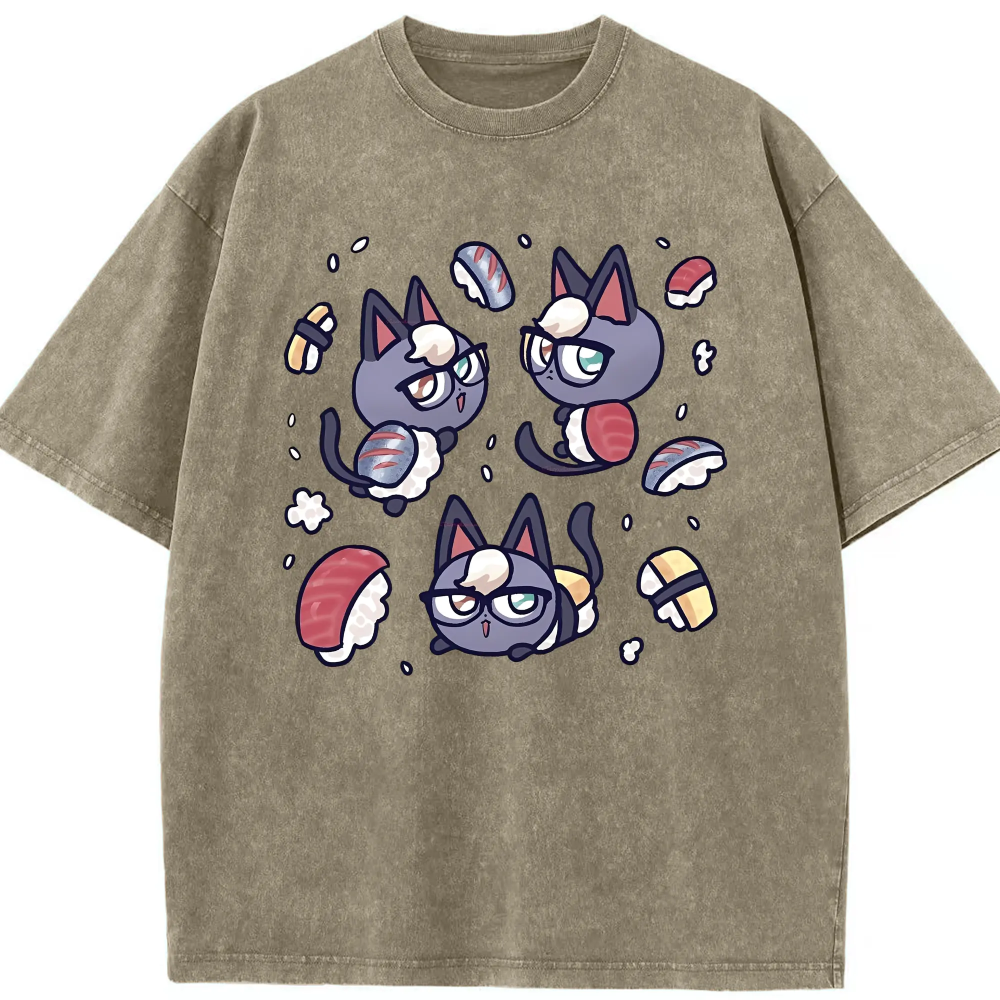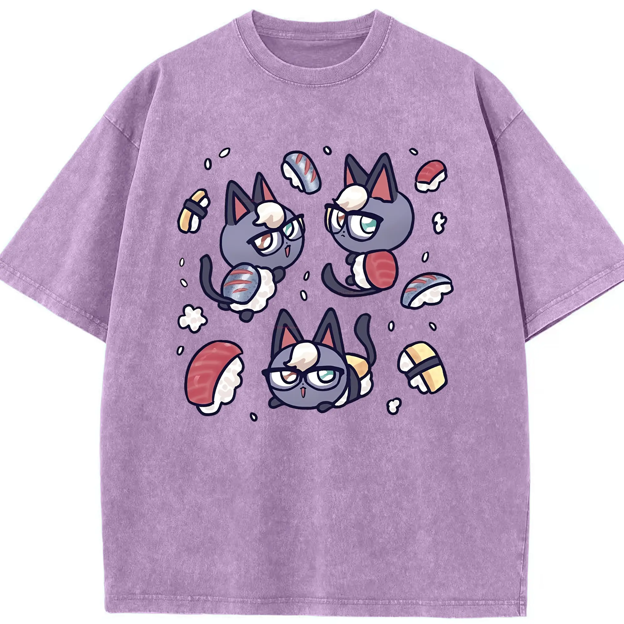 ピスケ&うさぎのおうちパーリー🏠🥳 ねーねーねこ達とはオンラインで乾杯です🍻 - 綿100% ヴィンテージ風 半袖Tシャツ ・ フロントプリント ・ 柔らか肌触り ・ 通気性 快適 ・ スポーツ カジュアル 外出用