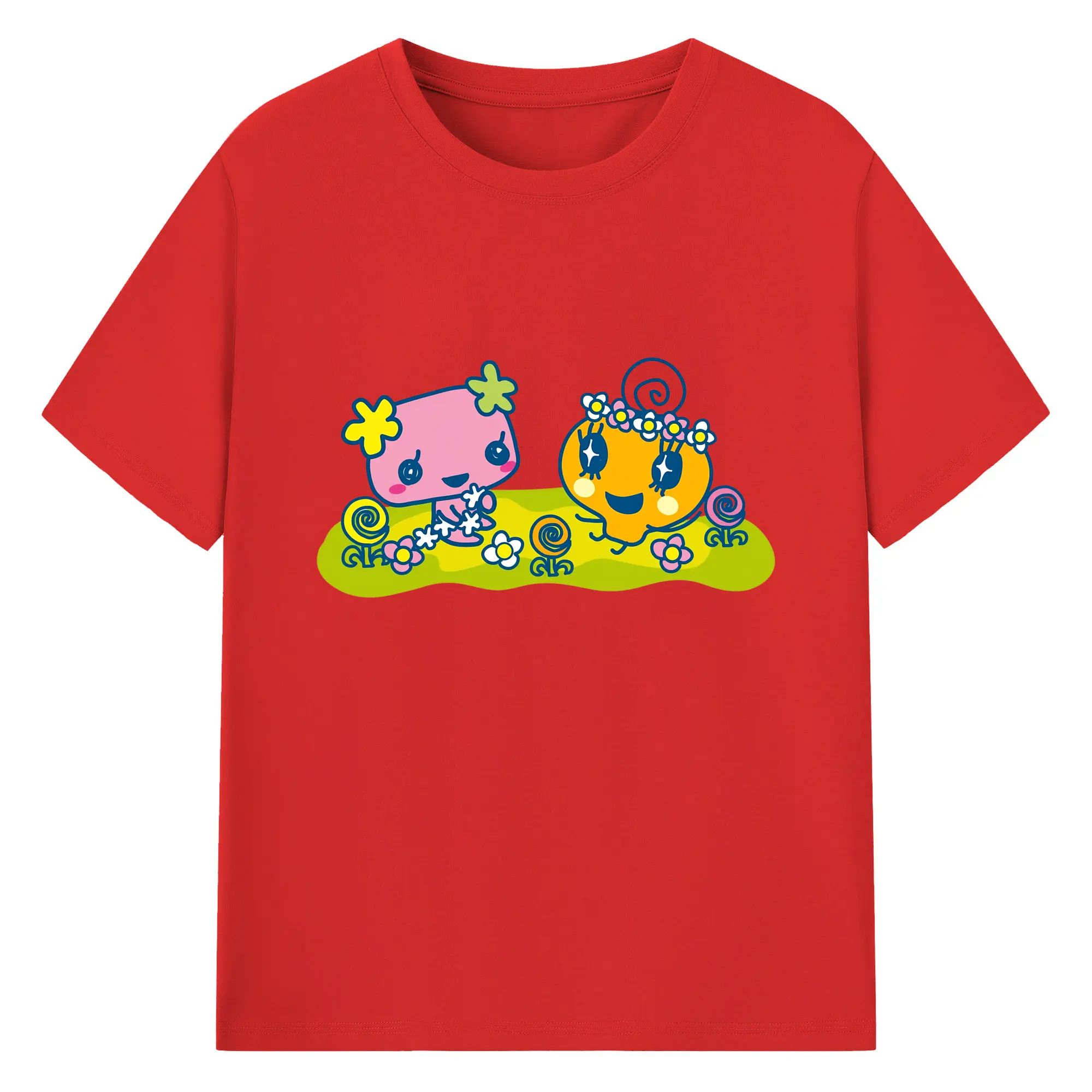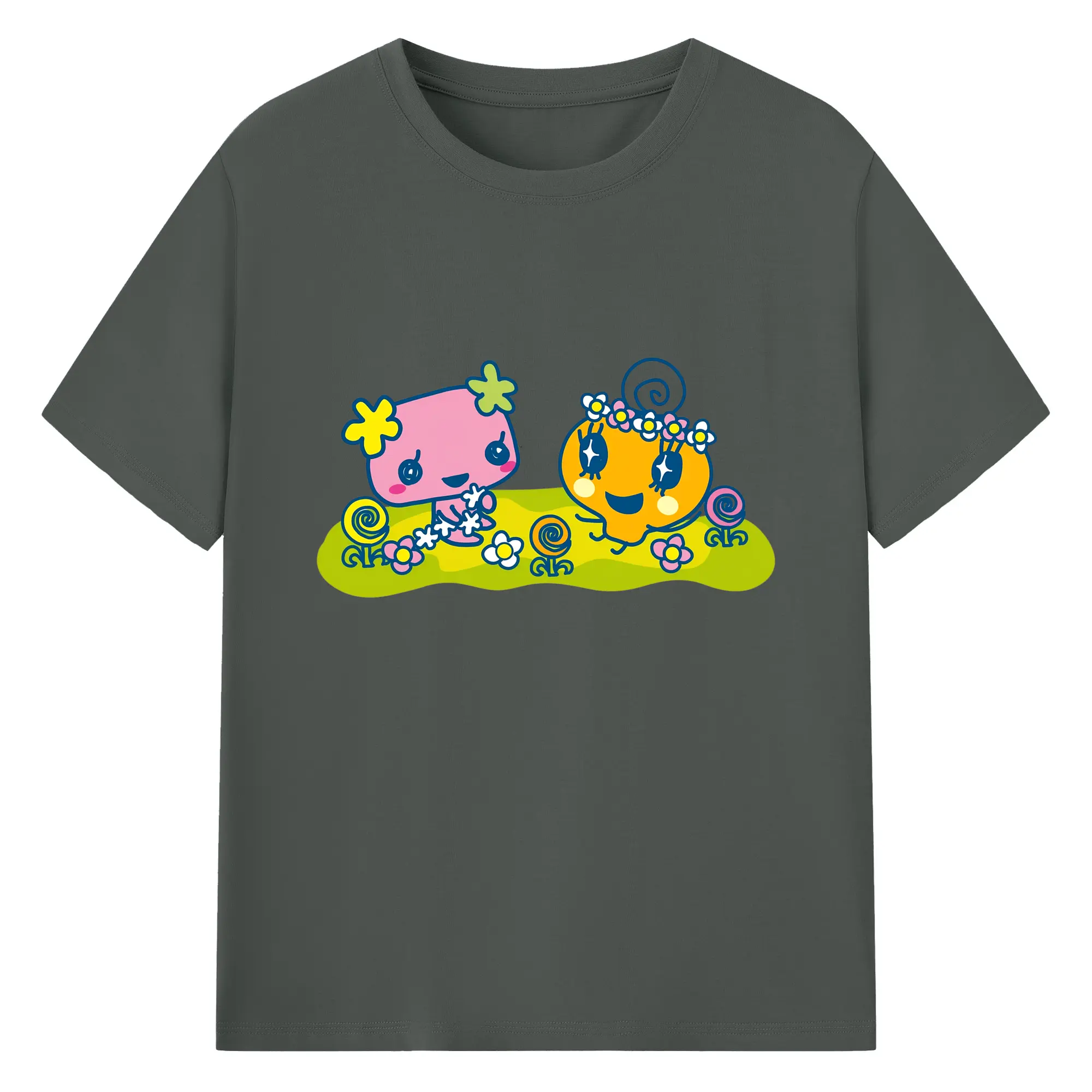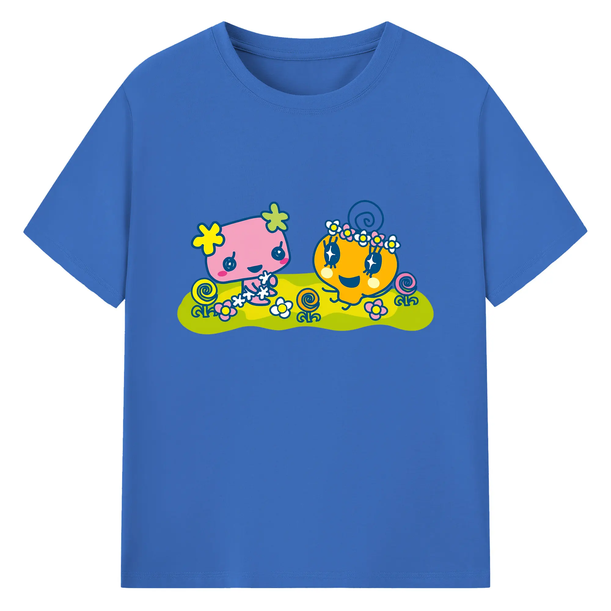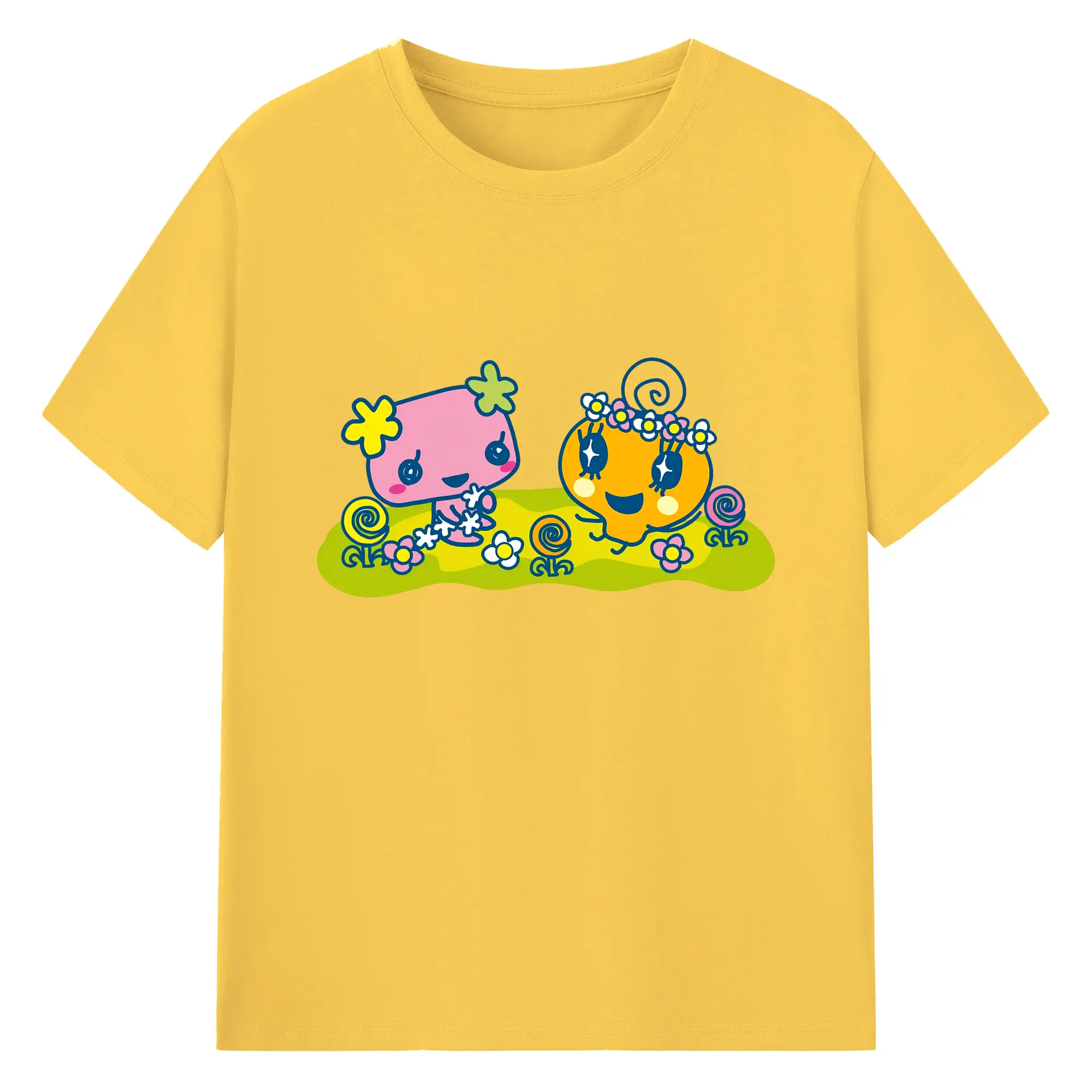 人気キャラ たまごっち カジュアルコーデ - 綿100% ヴィンテージ風 半袖Tシャツ ・ フロントプリント ・ 柔らか肌触り ・ 通気性 快適 ・ スポーツ カジュアル 外出用