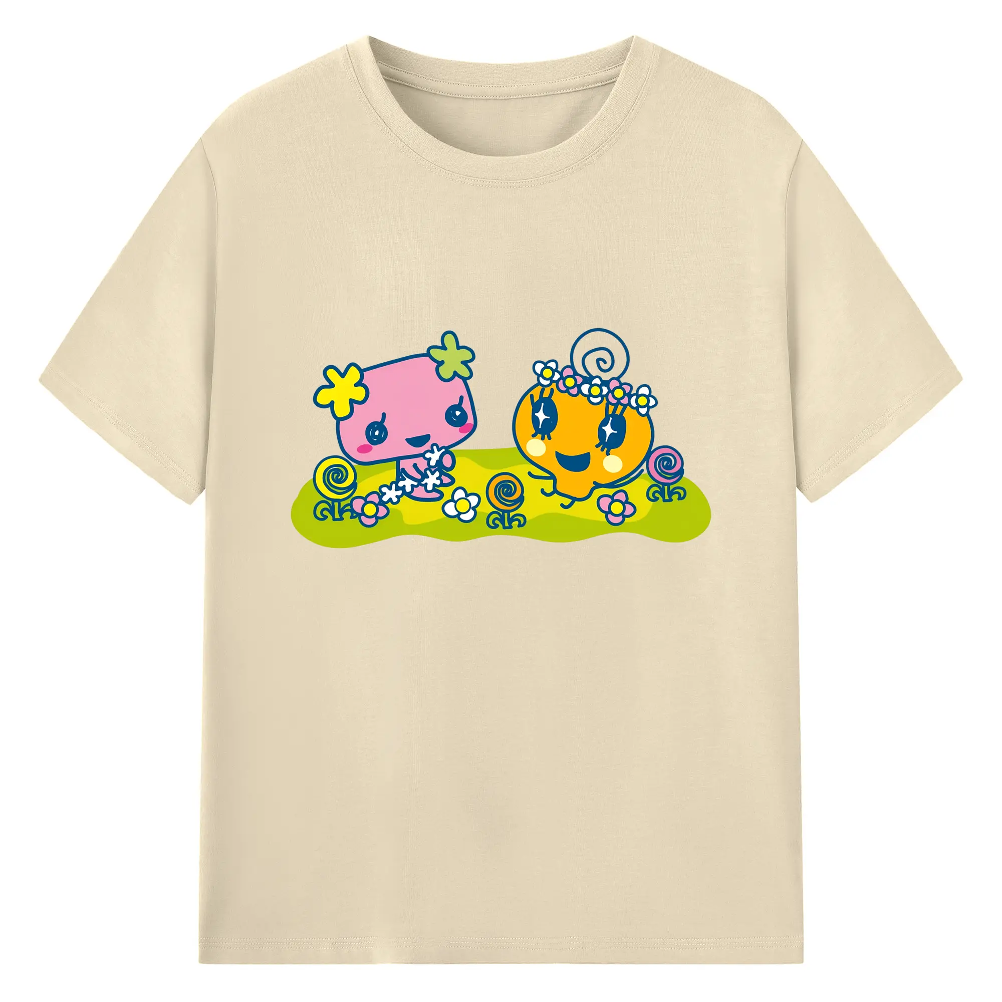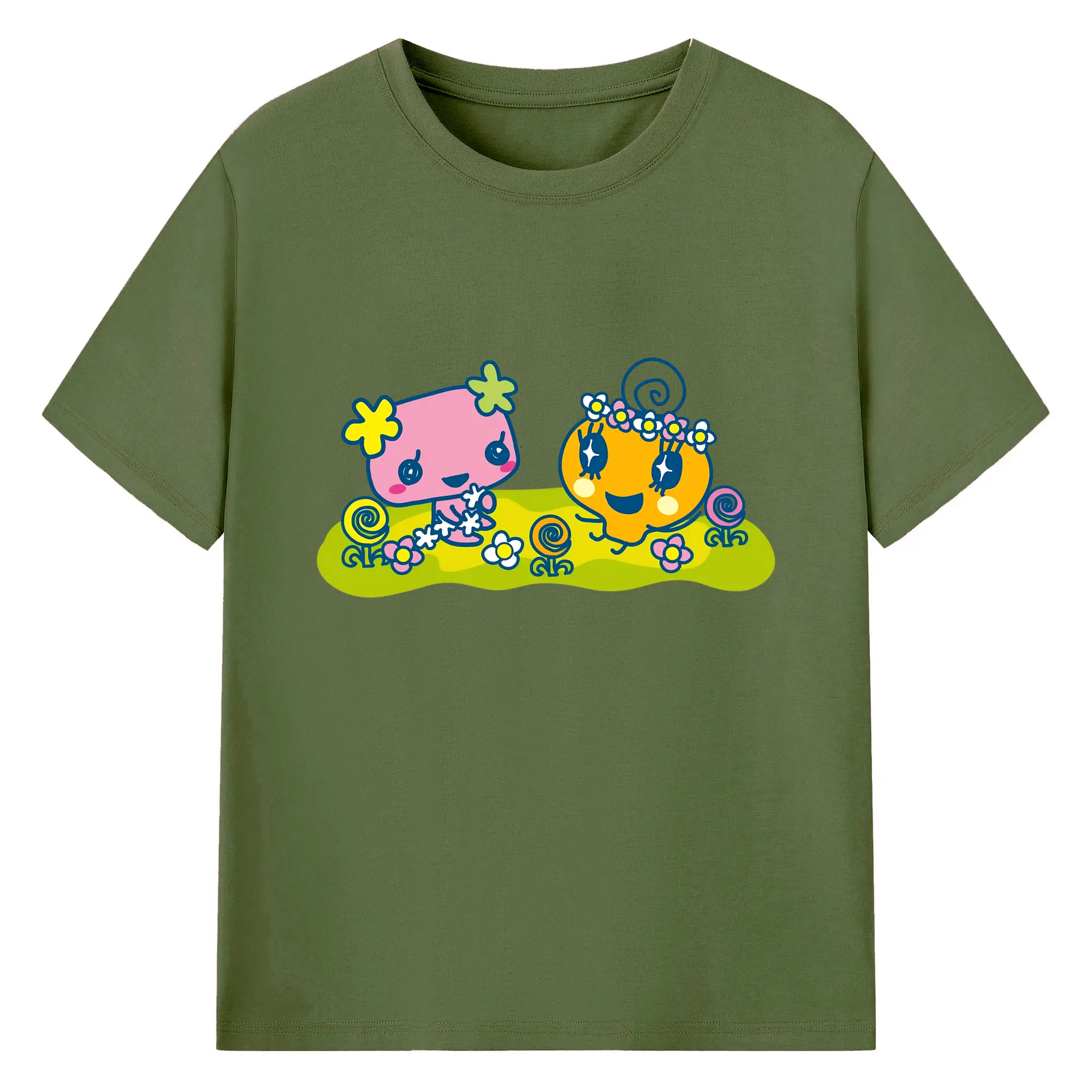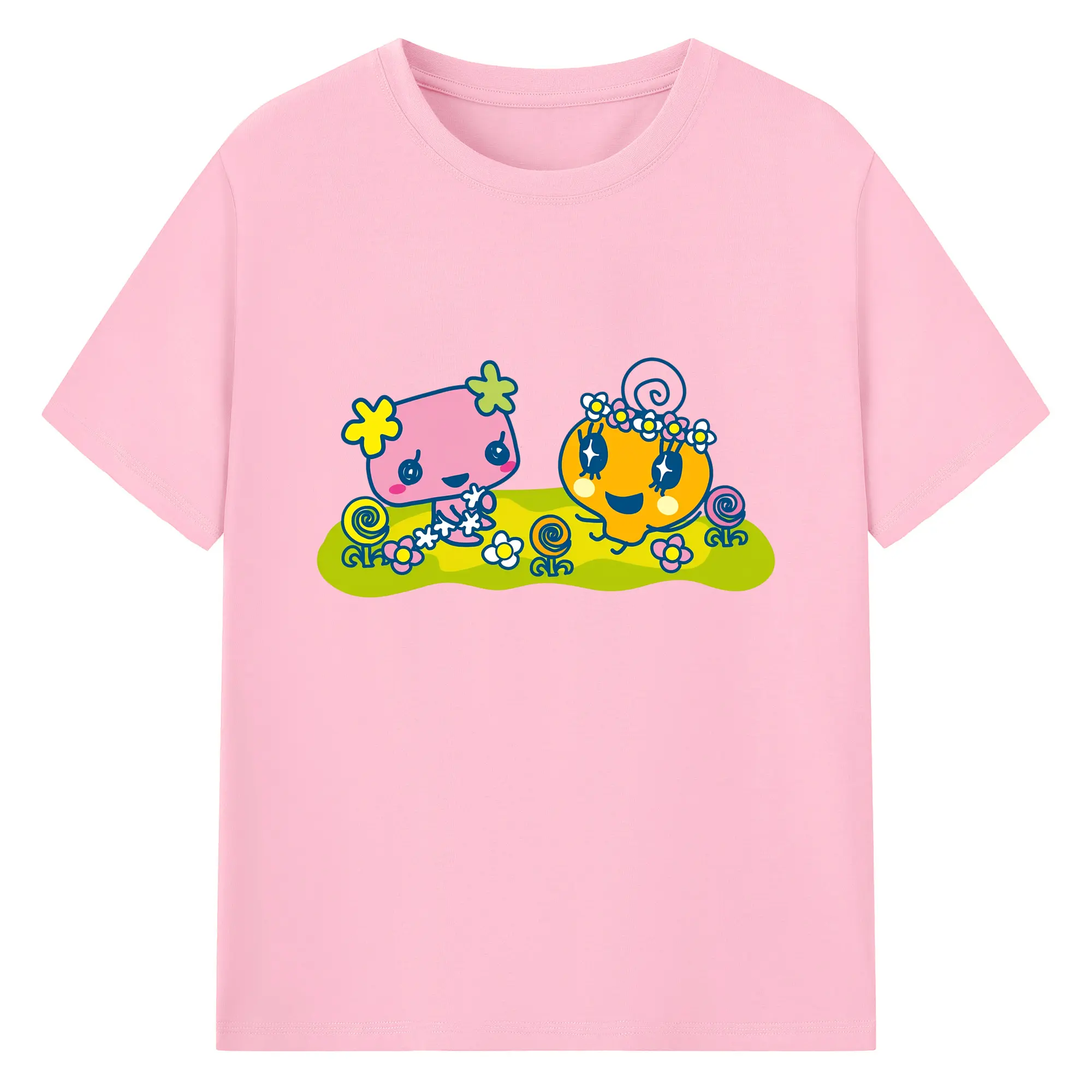 人気キャラ たまごっち カジュアルコーデ - 綿100% ヴィンテージ風 半袖Tシャツ ・ フロントプリント ・ 柔らか肌触り ・ 通気性 快適 ・ スポーツ カジュアル 外出用