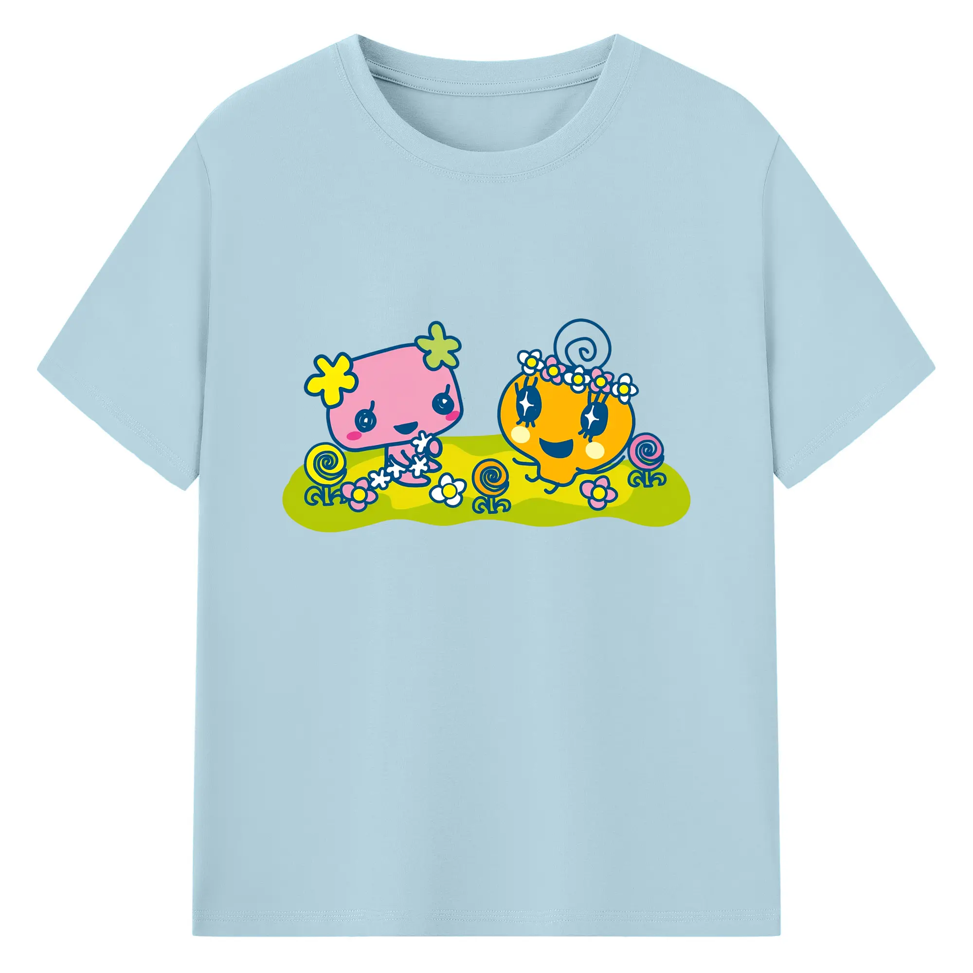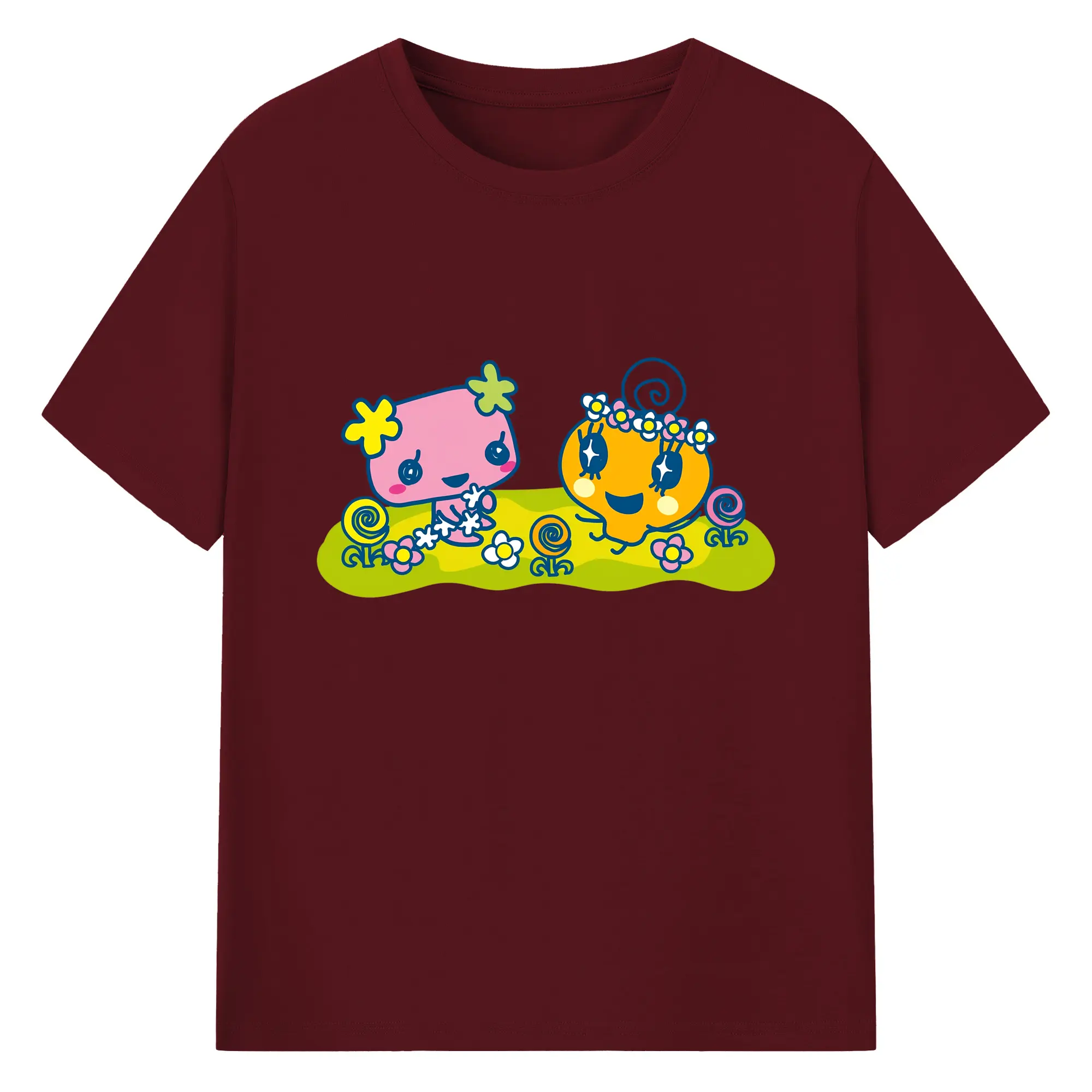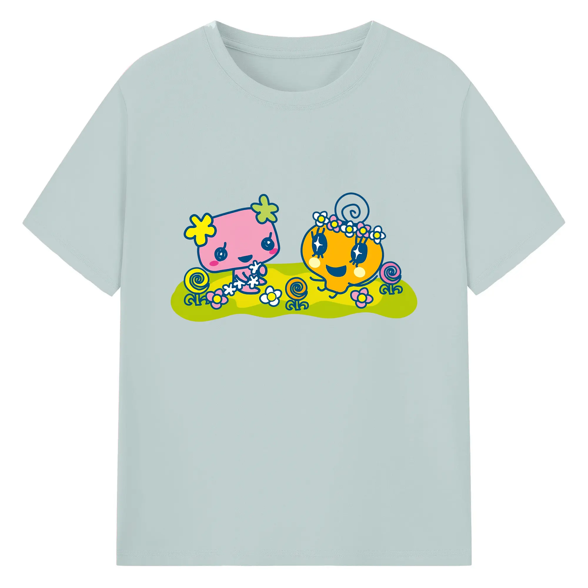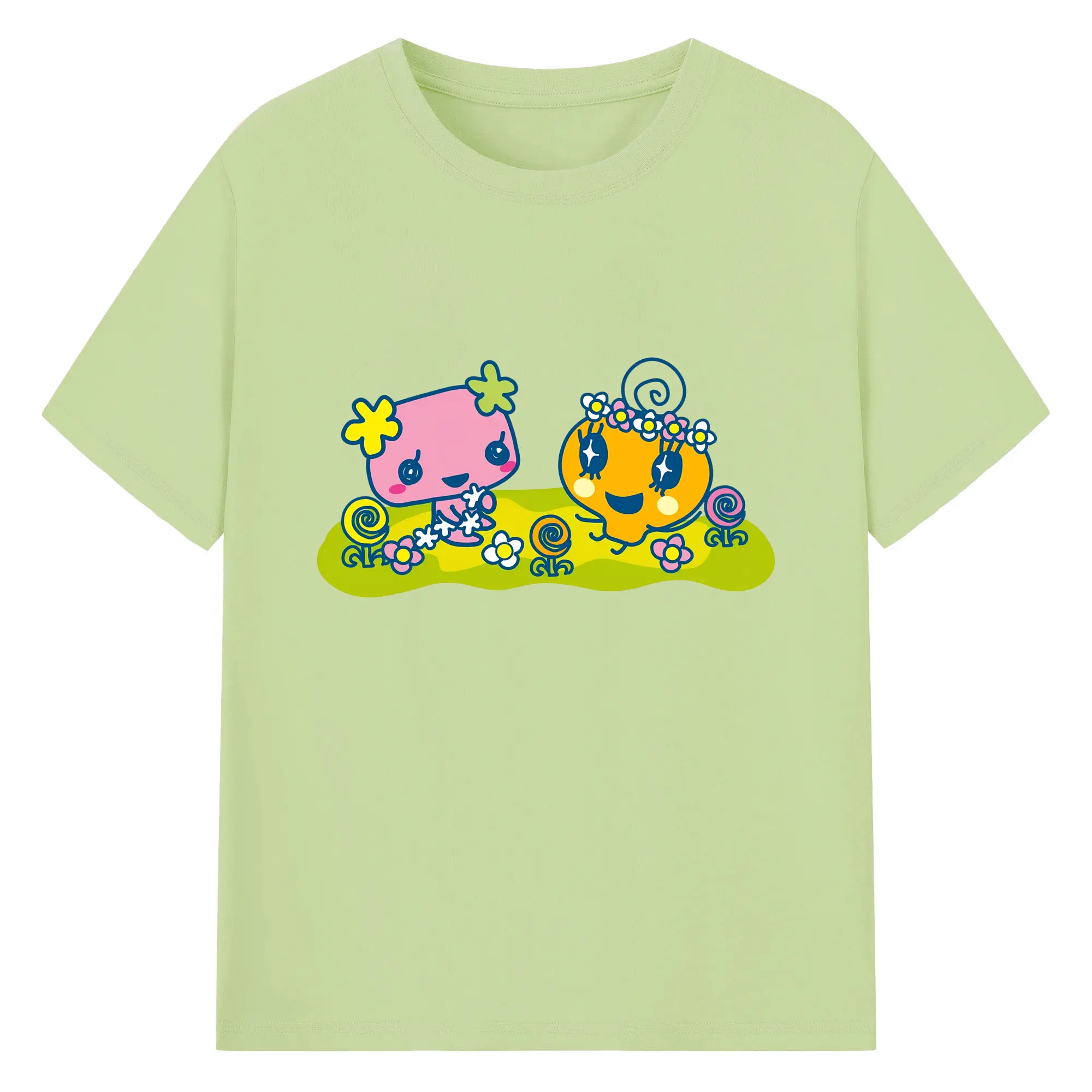 人気キャラ たまごっち カジュアルコーデ - 綿100% ヴィンテージ風 半袖Tシャツ ・ フロントプリント ・ 柔らか肌触り ・ 通気性 快適 ・ スポーツ カジュアル 外出用