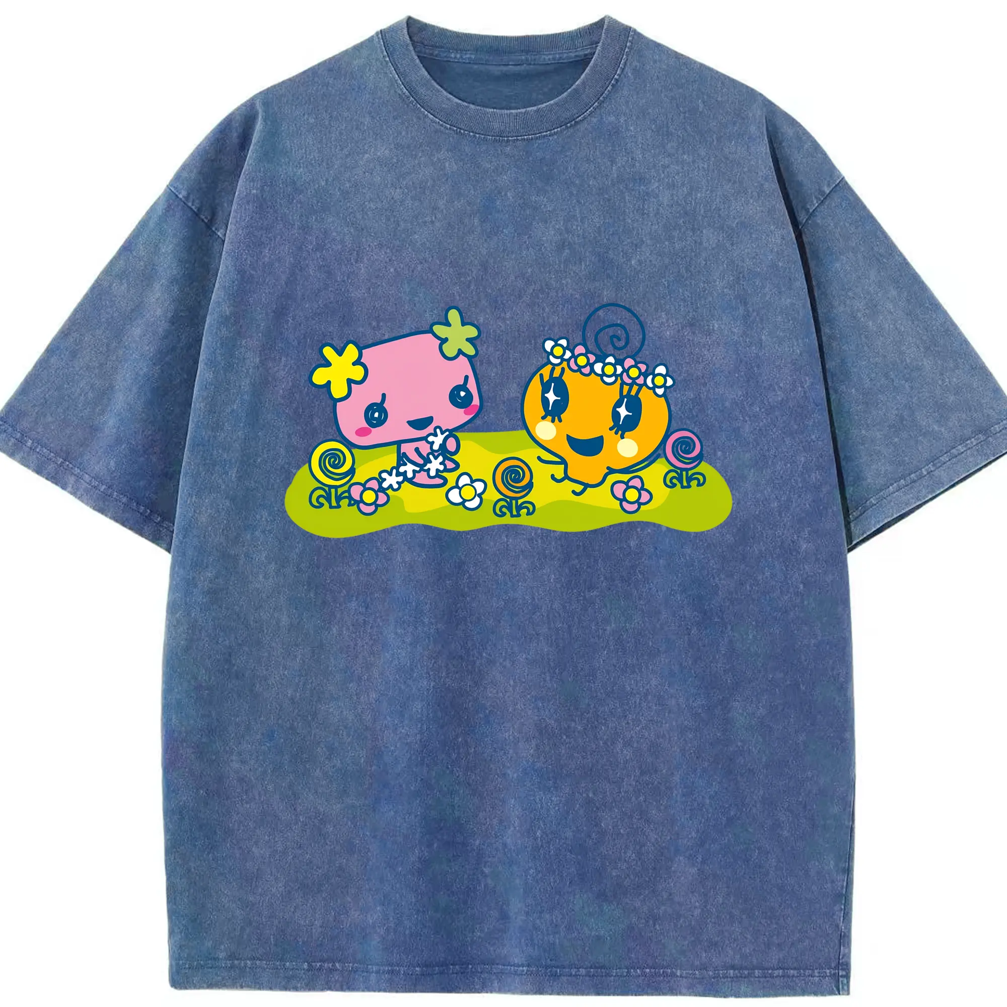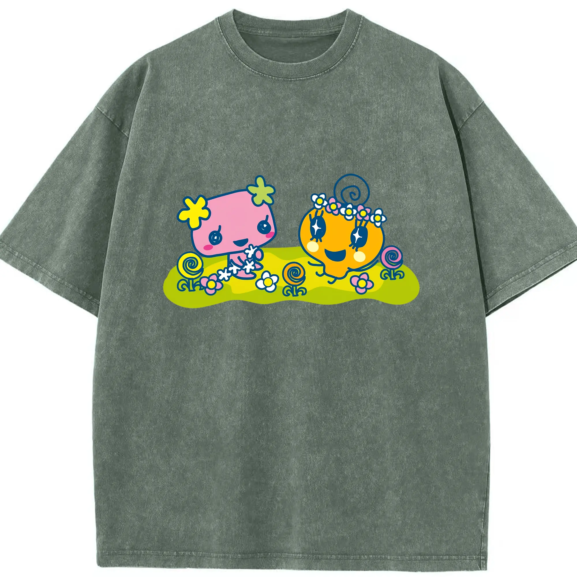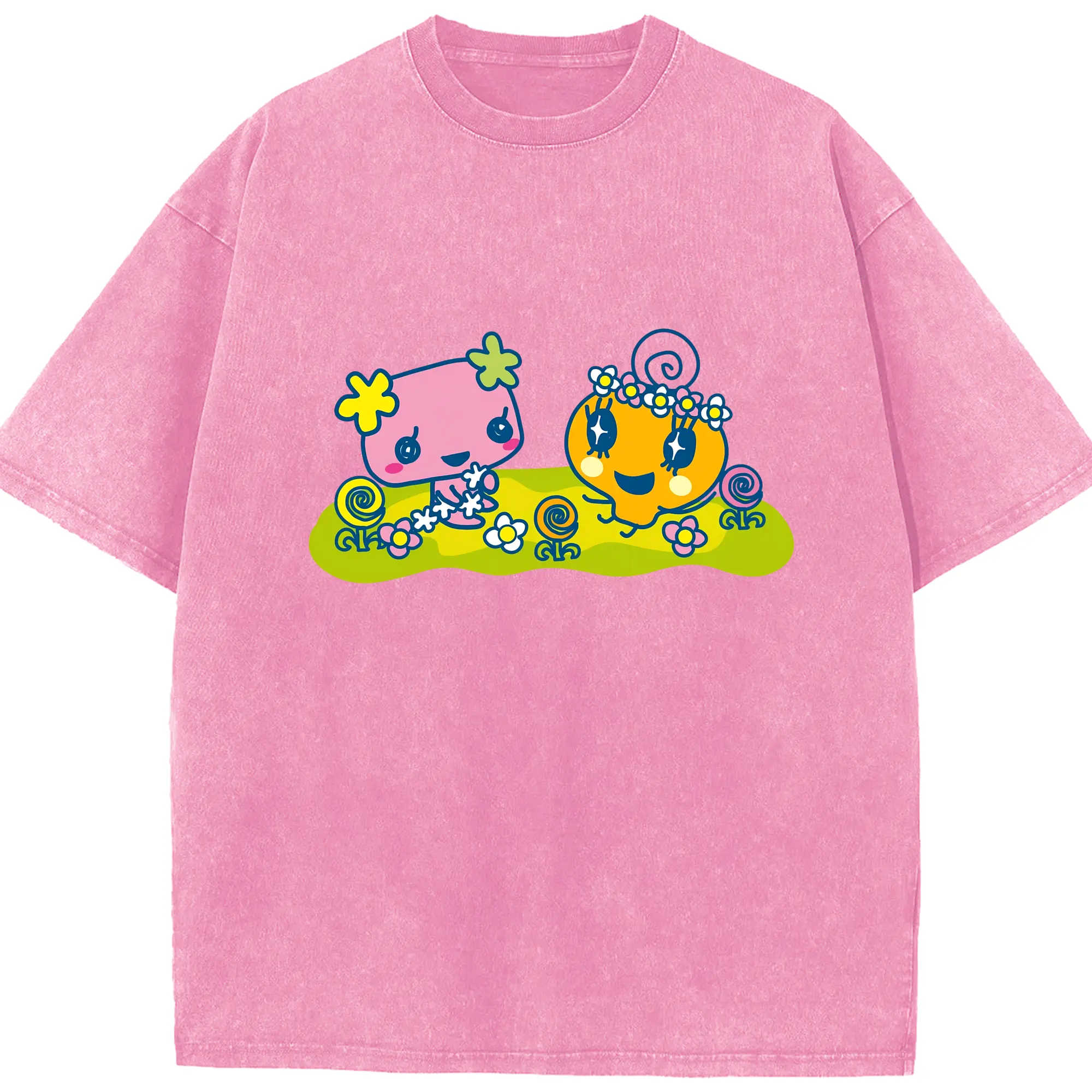 人気キャラ たまごっち カジュアルコーデ - 綿100% 半袖Tシャツ ・ フロントプリント ・ 快適 通気性 ・ 日常使い 散歩 スポーツ用