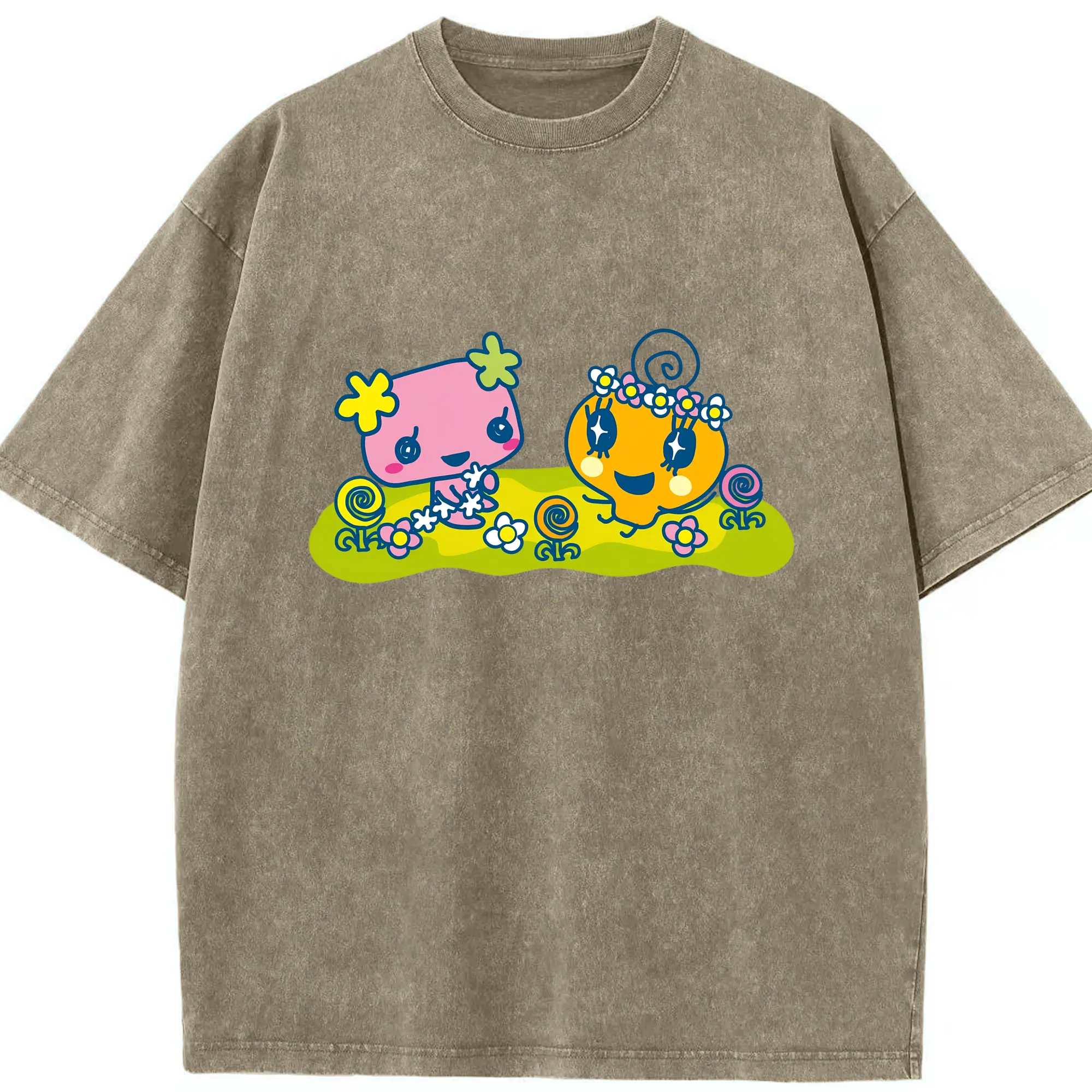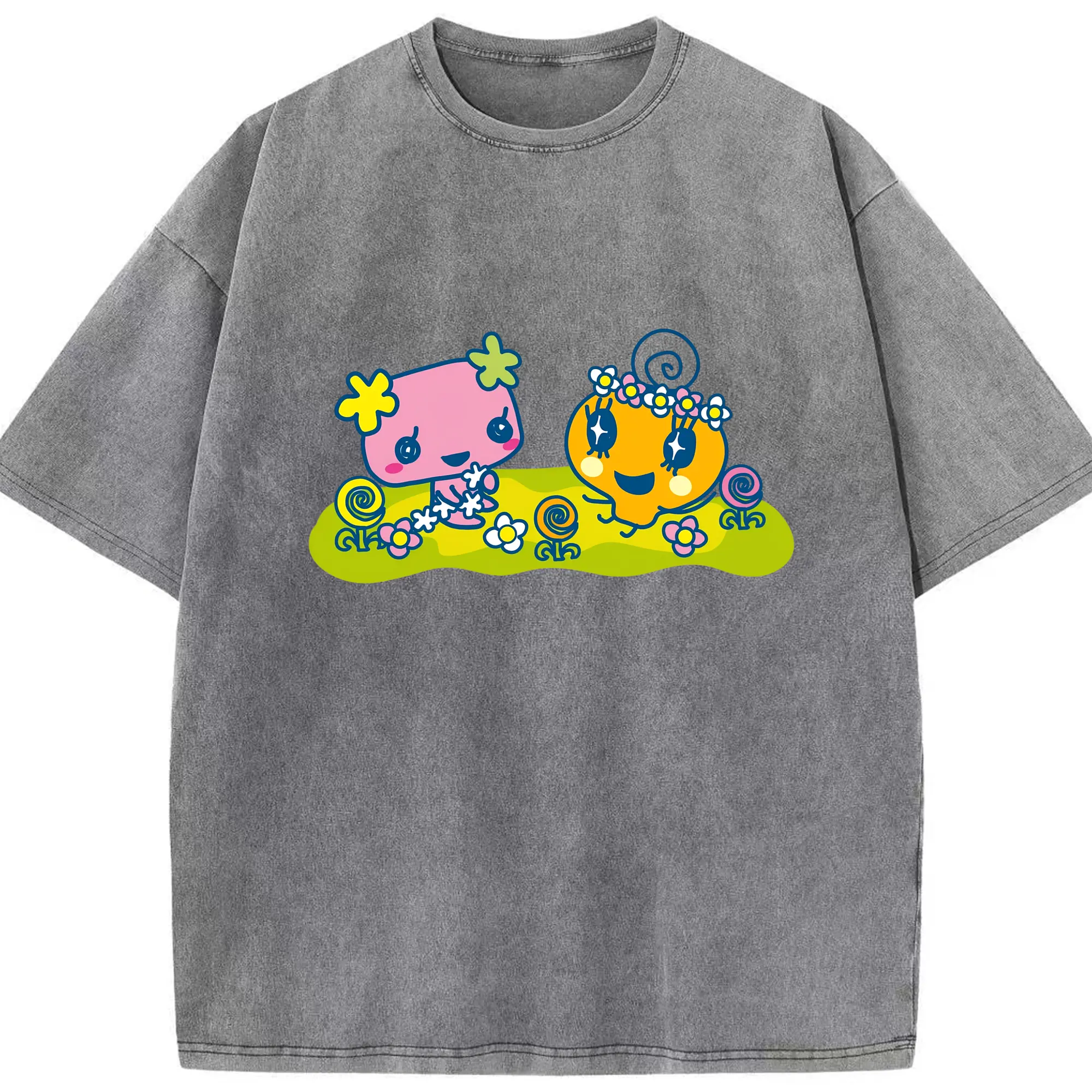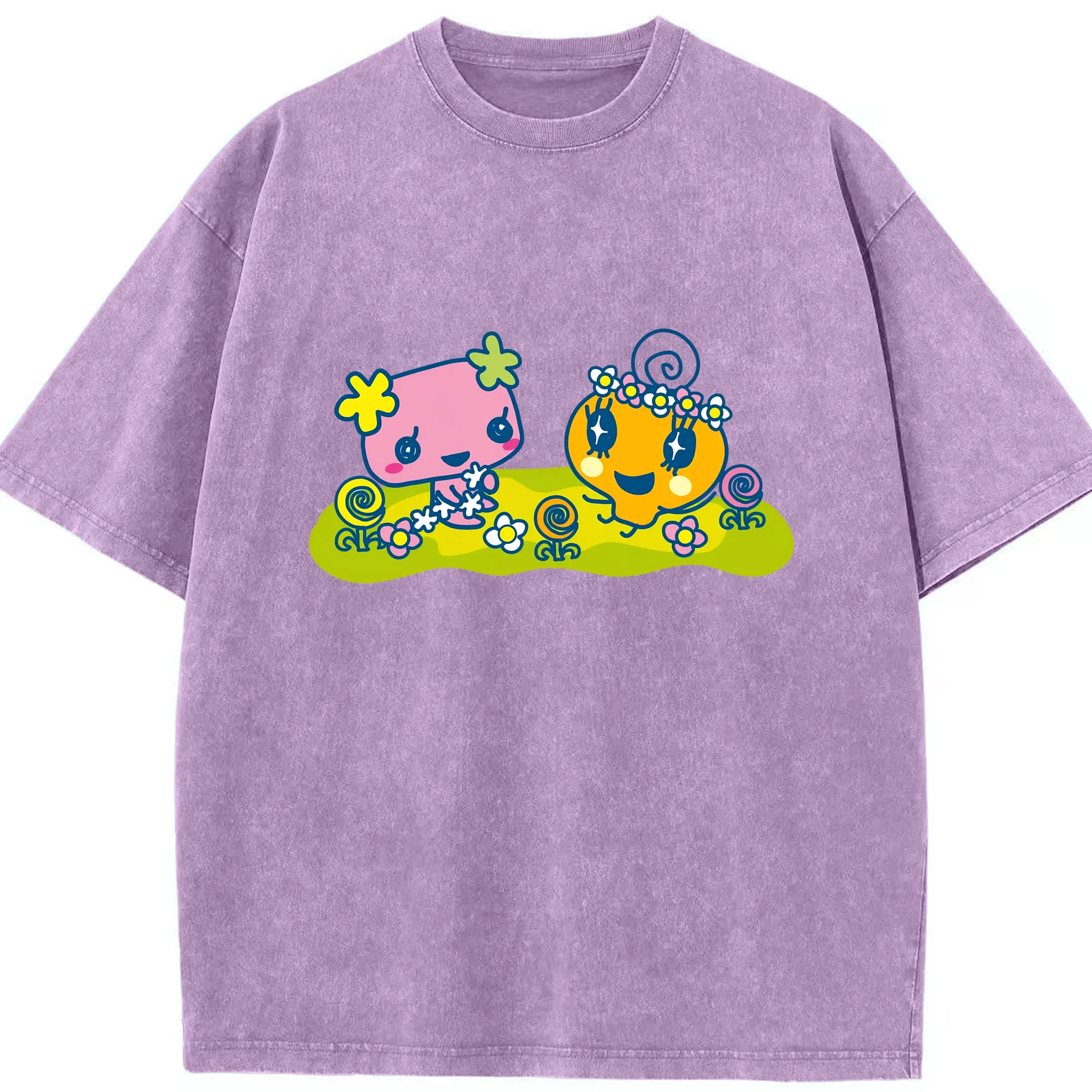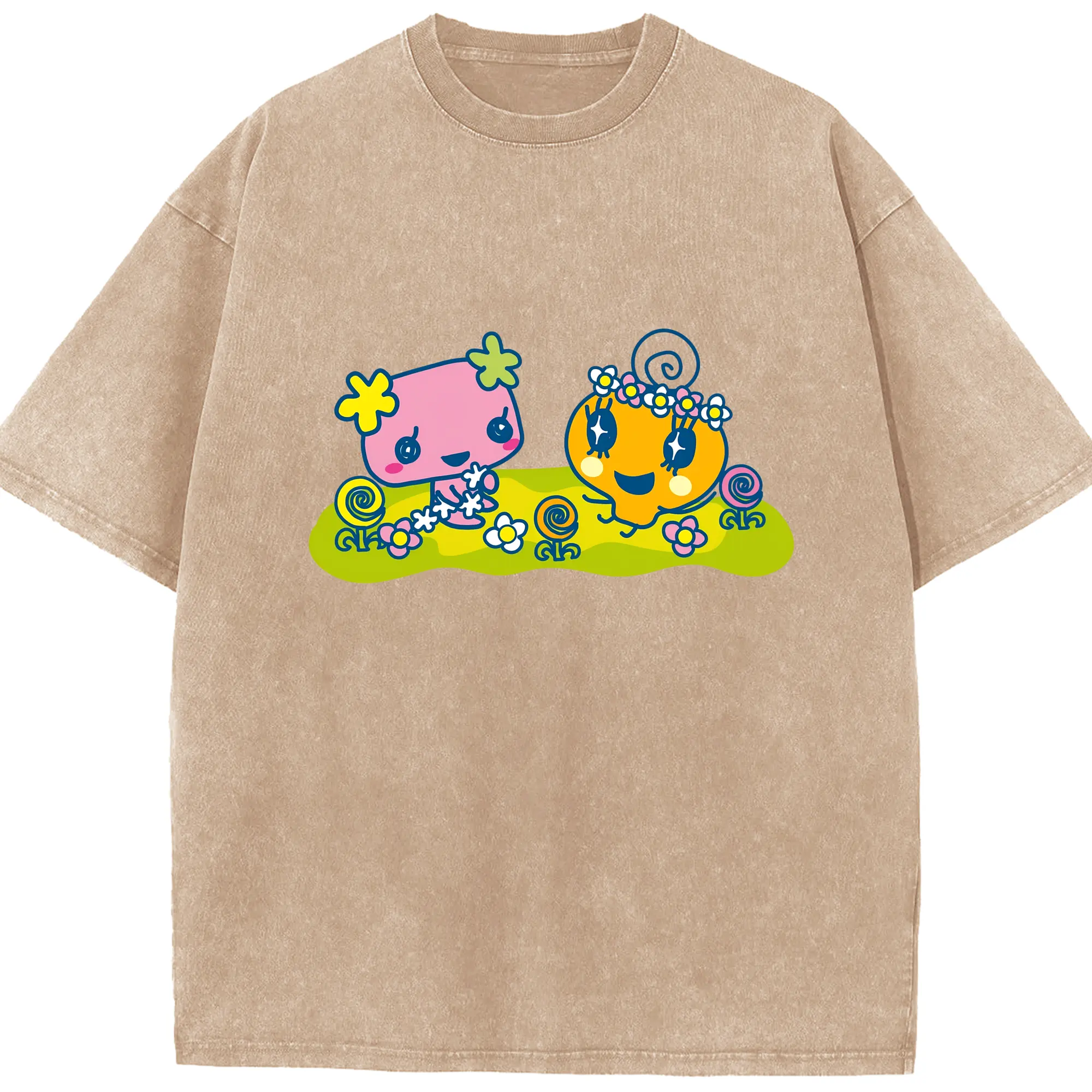 人気キャラ たまごっち カジュアルコーデ - 綿100% 半袖Tシャツ ・ フロントプリント ・ 快適 通気性 ・ 日常使い 散歩 スポーツ用