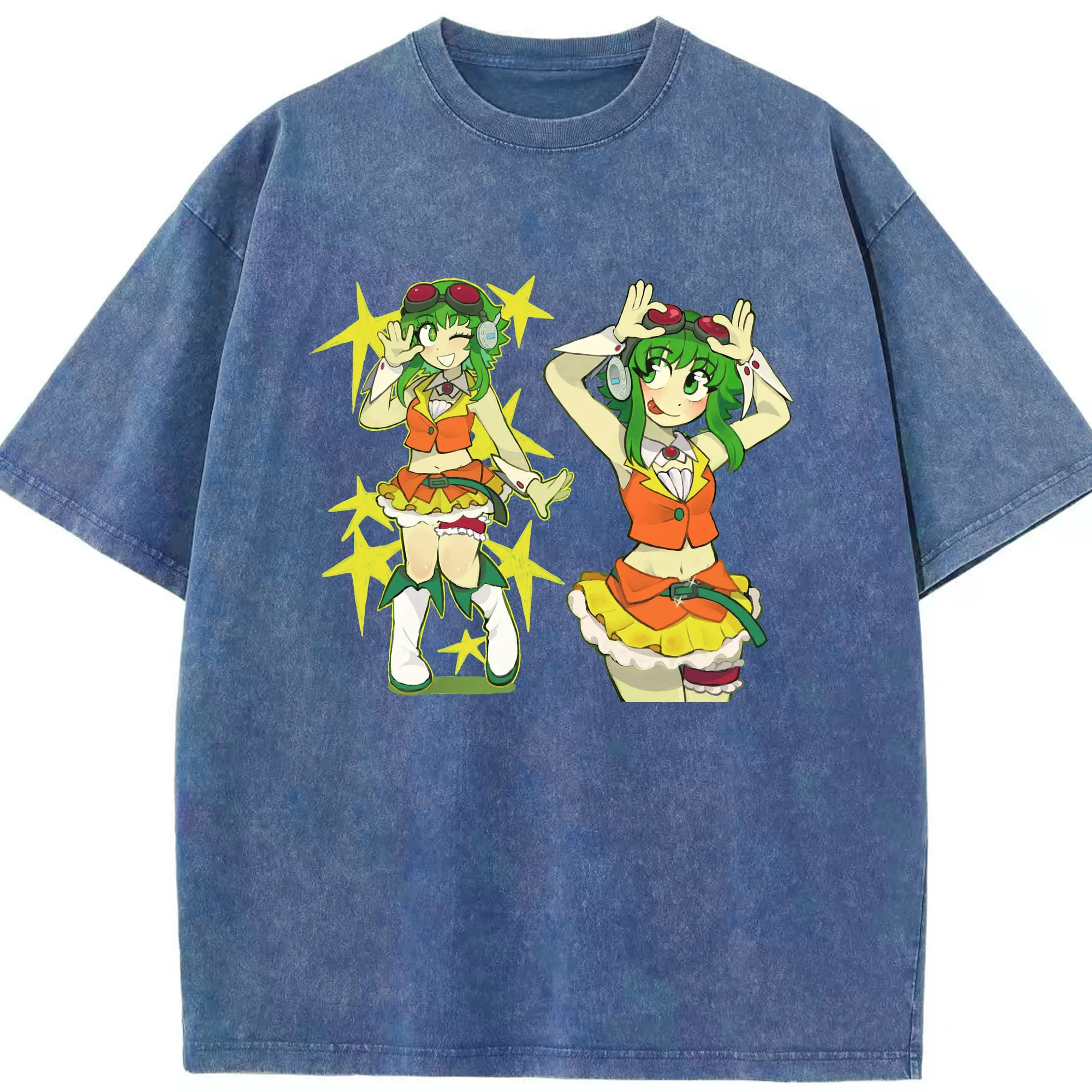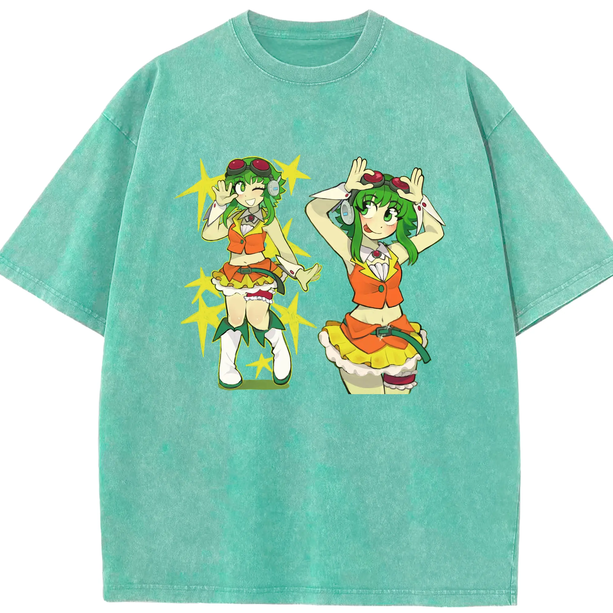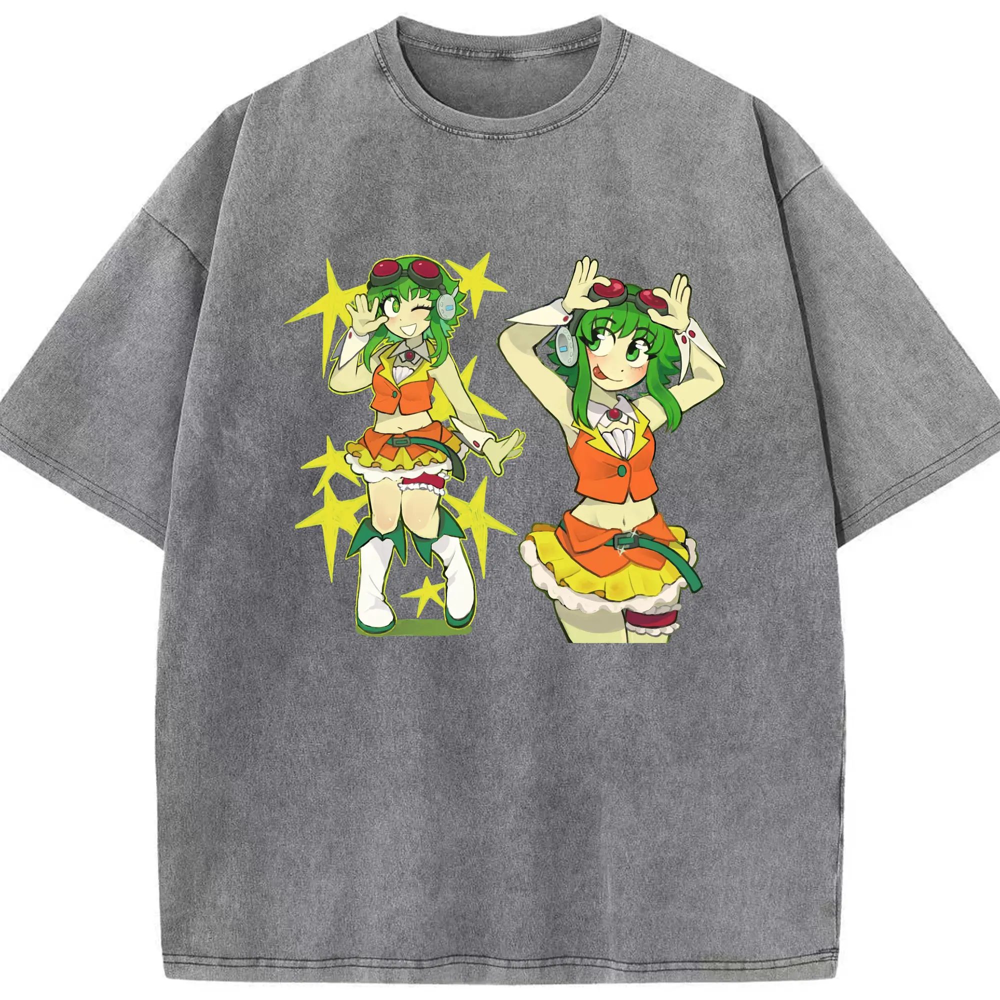 GUMI バーチャルアイドル - 綿100% ヴィンテージ風 半袖Tシャツ ・ フロントプリント ・ 柔らか肌触り ・ 通気性 快適 ・ スポーツ カジュアル 外出用