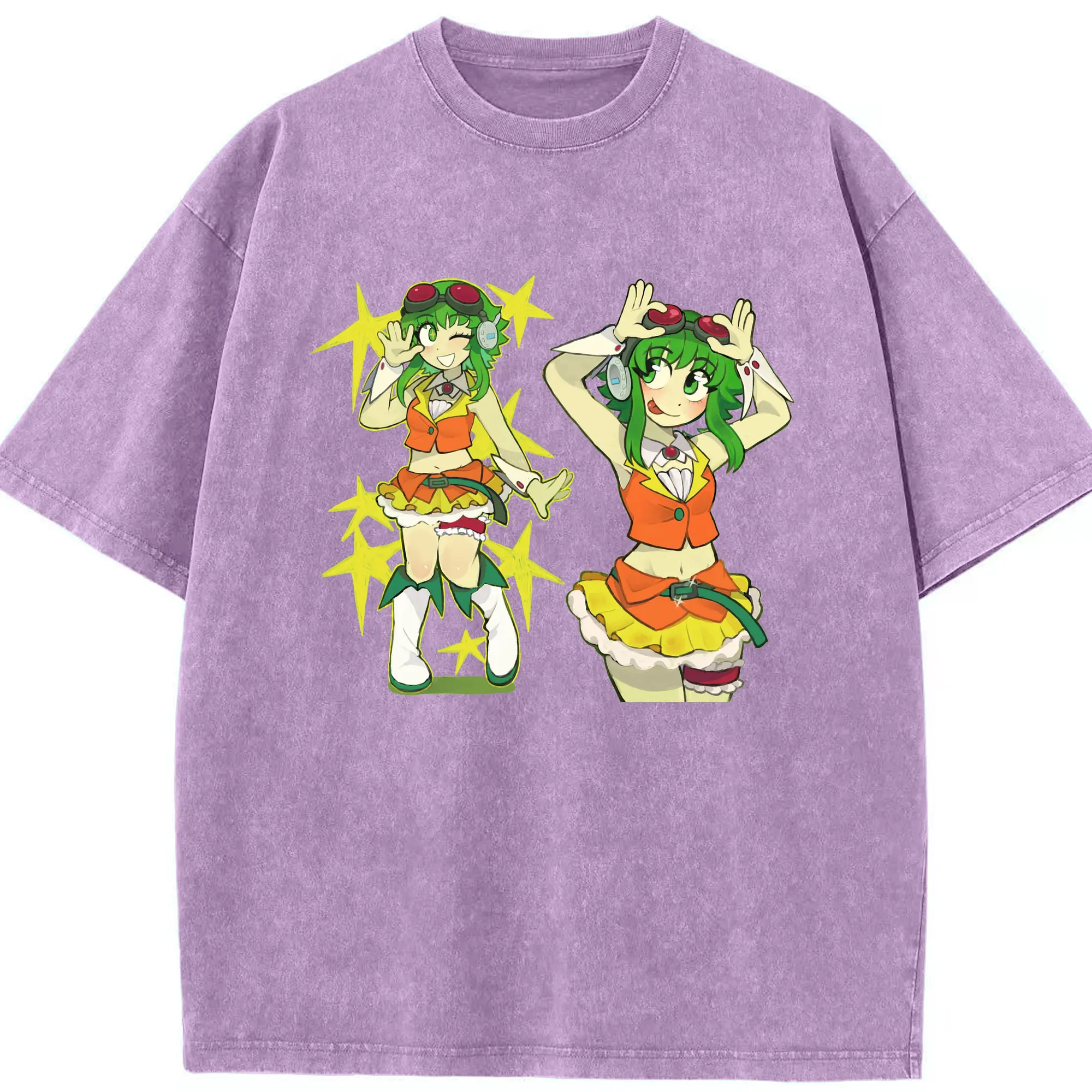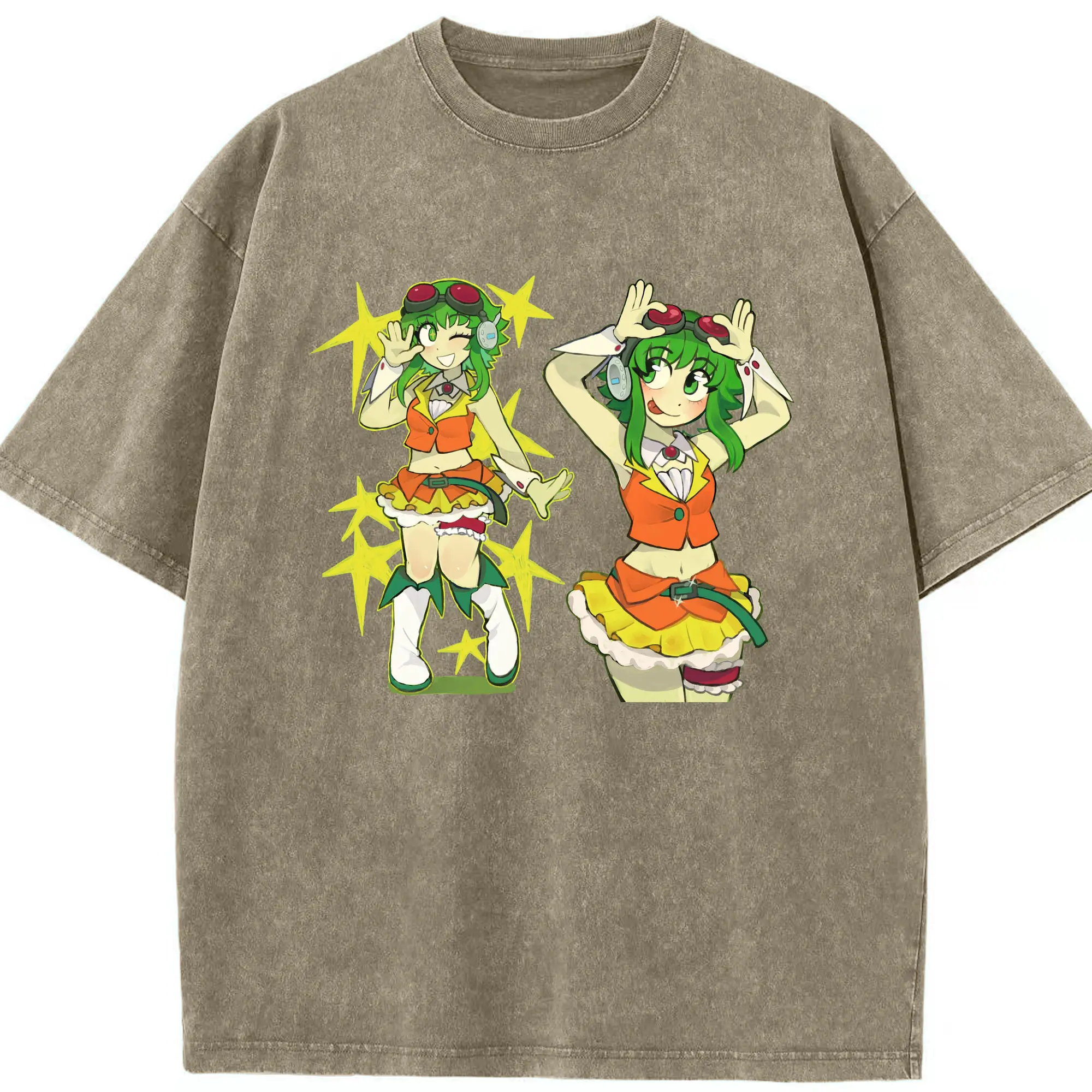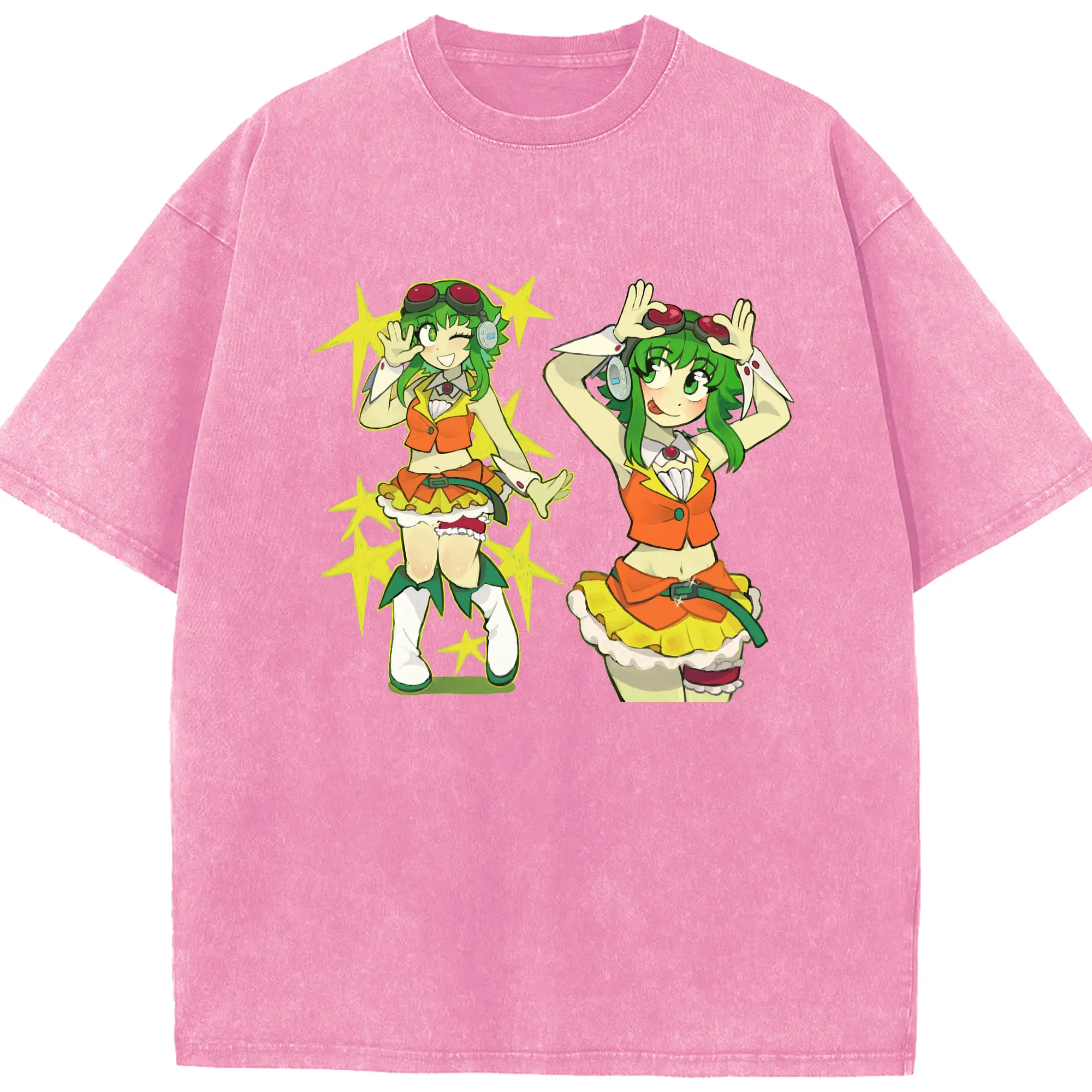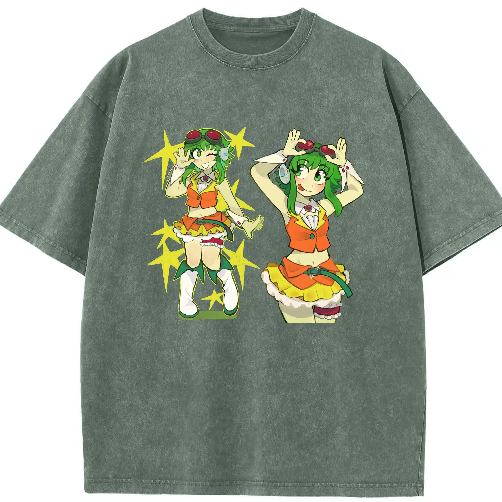 GUMI バーチャルアイドル - 綿100% ヴィンテージ風 半袖Tシャツ ・ フロントプリント ・ 柔らか肌触り ・ 通気性 快適 ・ スポーツ カジュアル 外出用