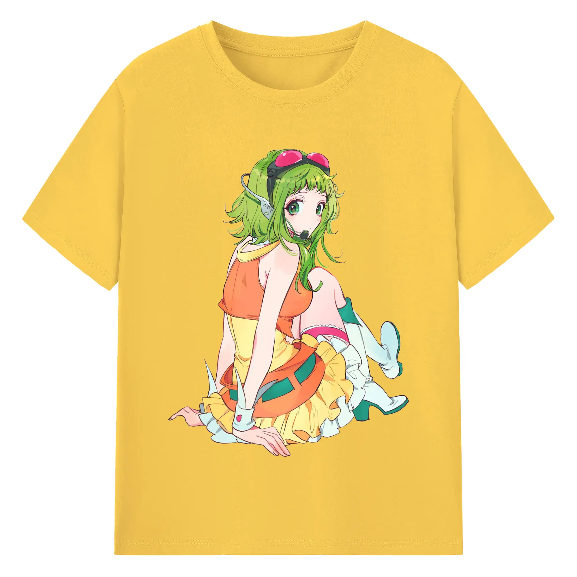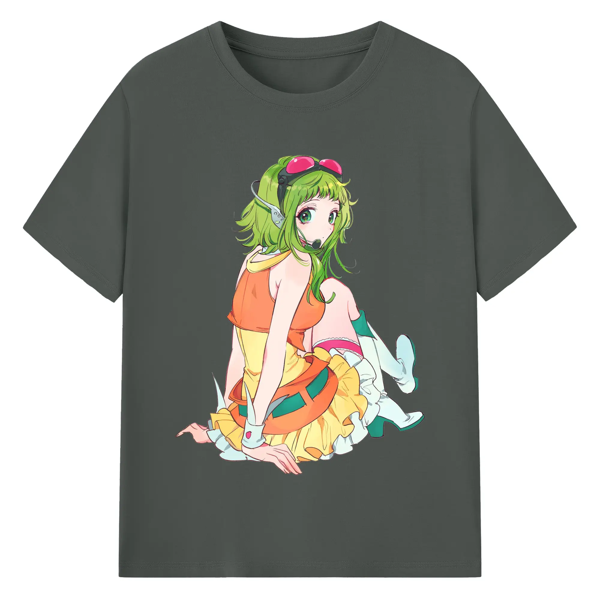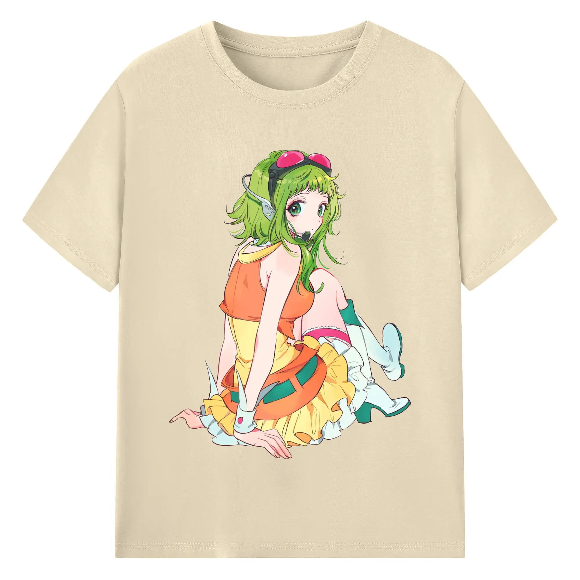人気バーチャル歌手GUMI - 綿100% ヴィンテージ風 半袖Tシャツ ・ フロントプリント ・ 柔らか肌触り ・ 通気性 快適 ・ スポーツ カジュアル 外出用