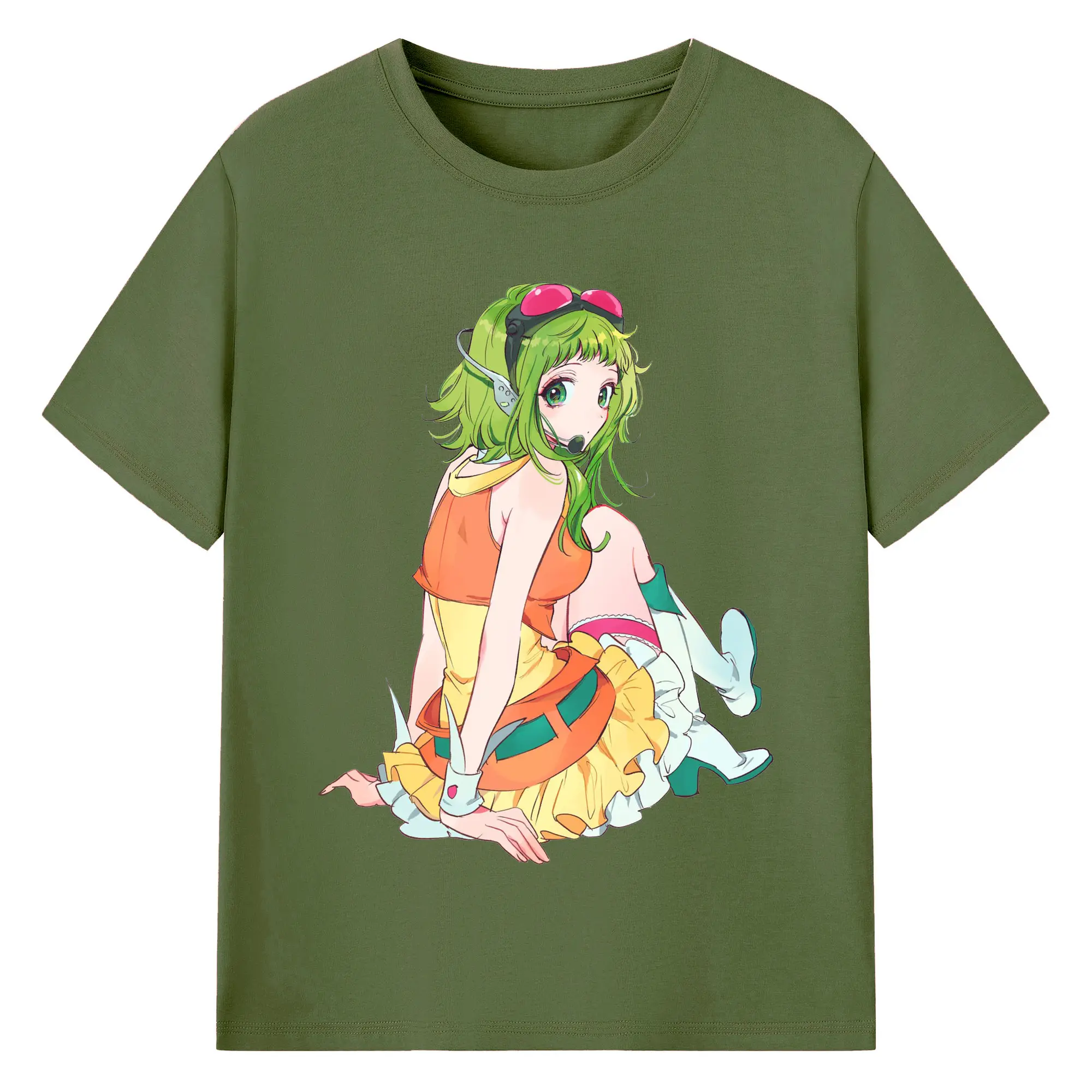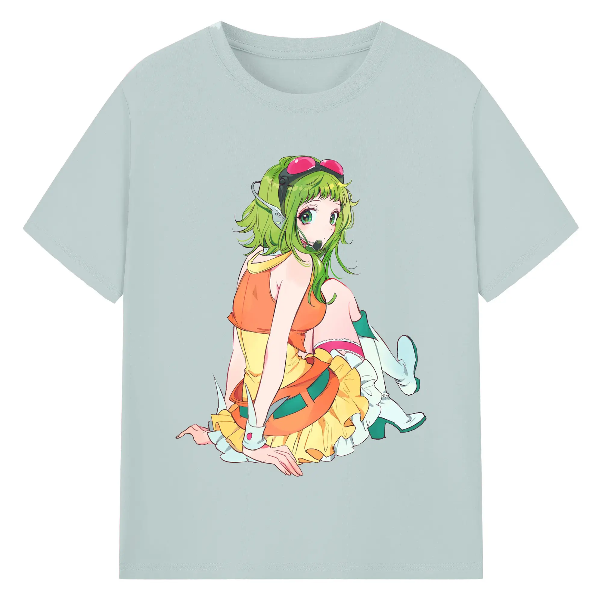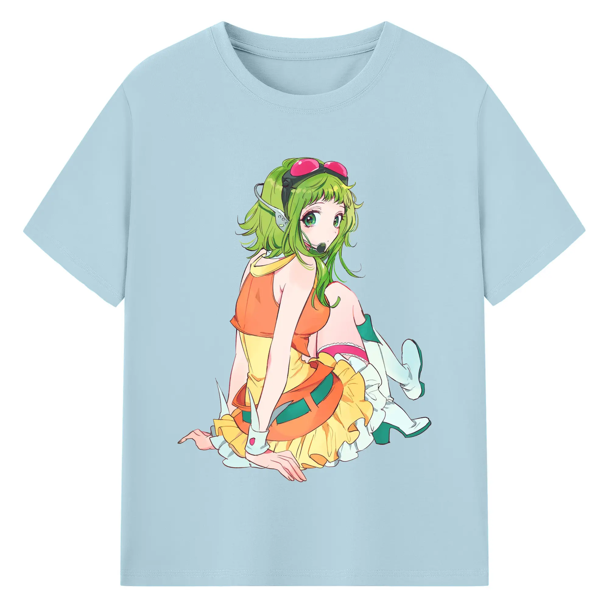 人気バーチャル歌手GUMI - 綿100% ヴィンテージ風 半袖Tシャツ ・ フロントプリント ・ 柔らか肌触り ・ 通気性 快適 ・ スポーツ カジュアル 外出用