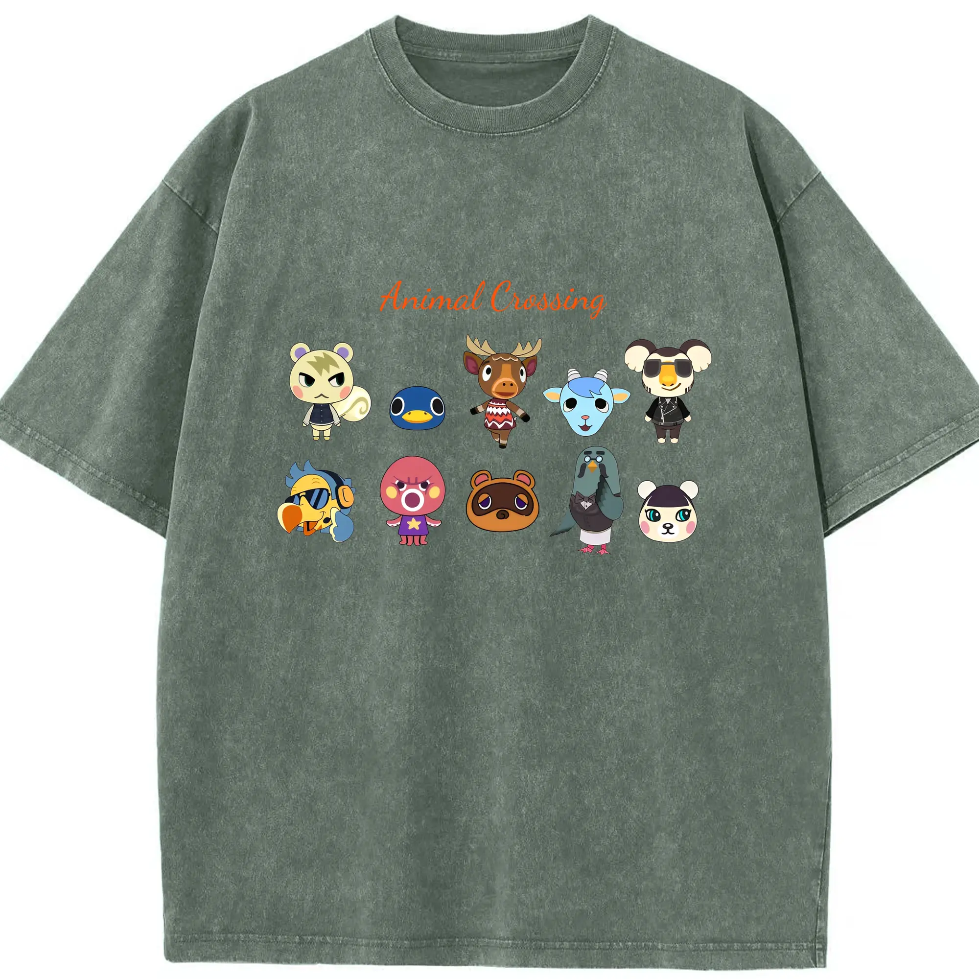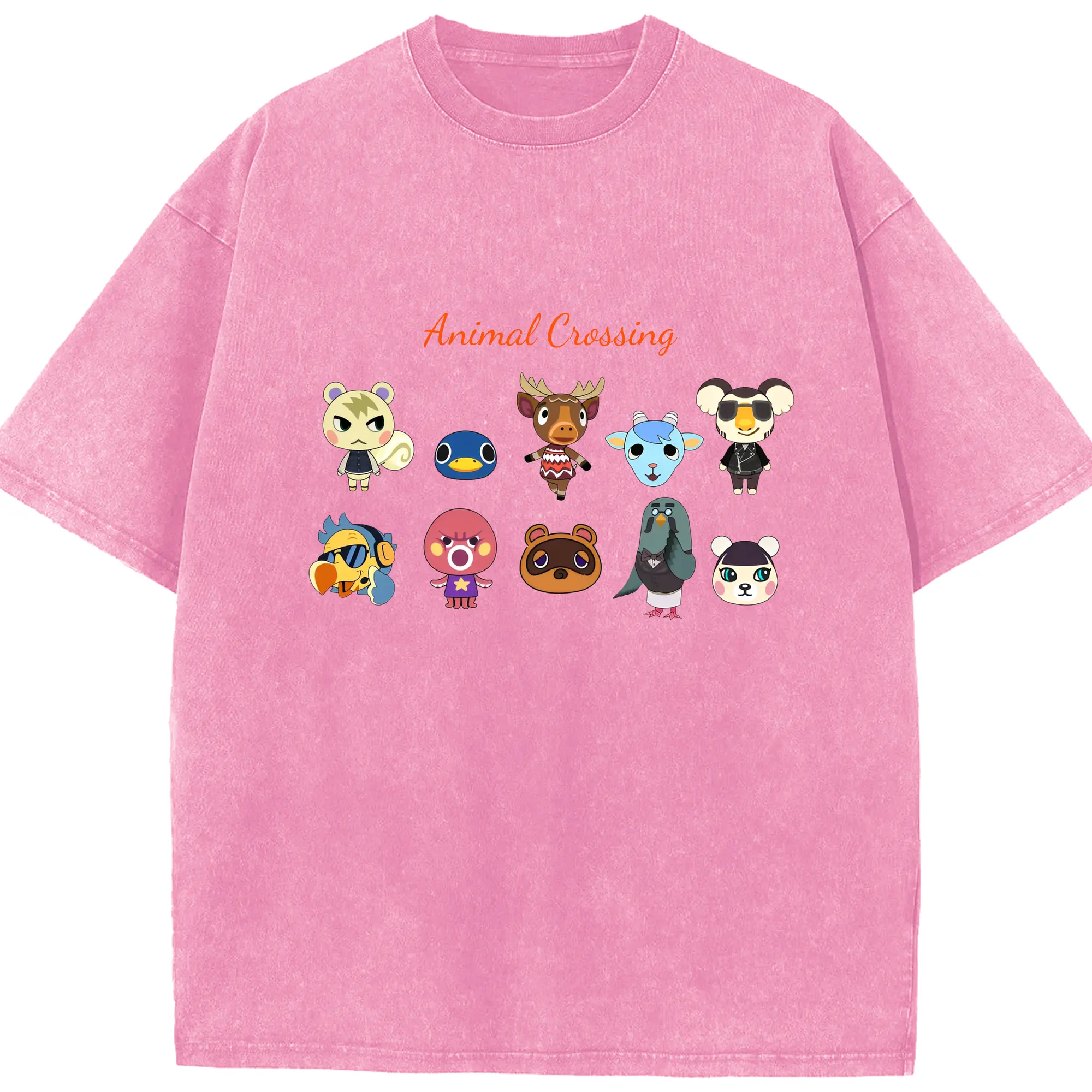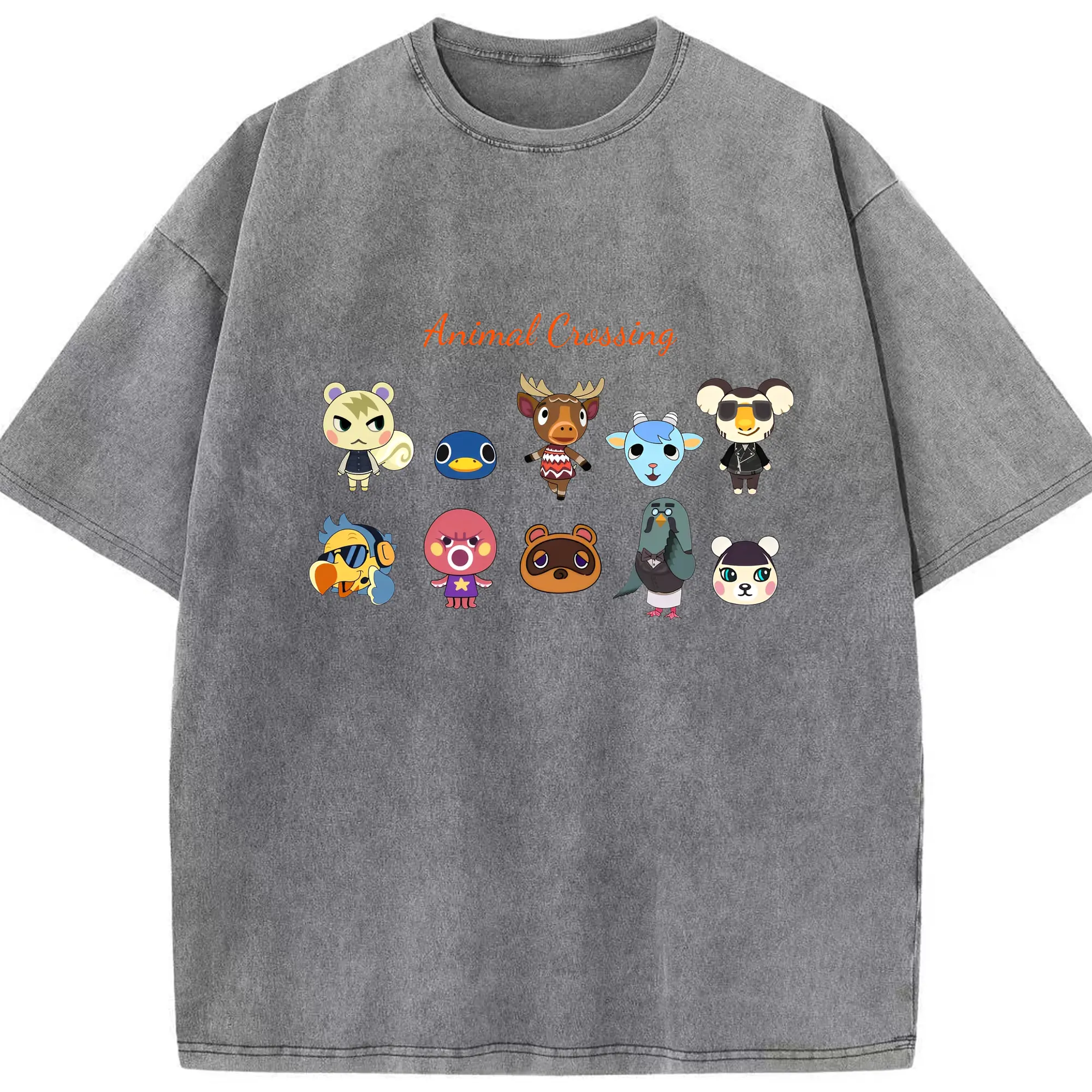 【人気急上昇】どうぶつの森 グッズ風デザイン - 綿100% 半袖Tシャツ ・ フロントプリント ・ 快適 通気性 ・ 日常使い 散歩 スポーツ用