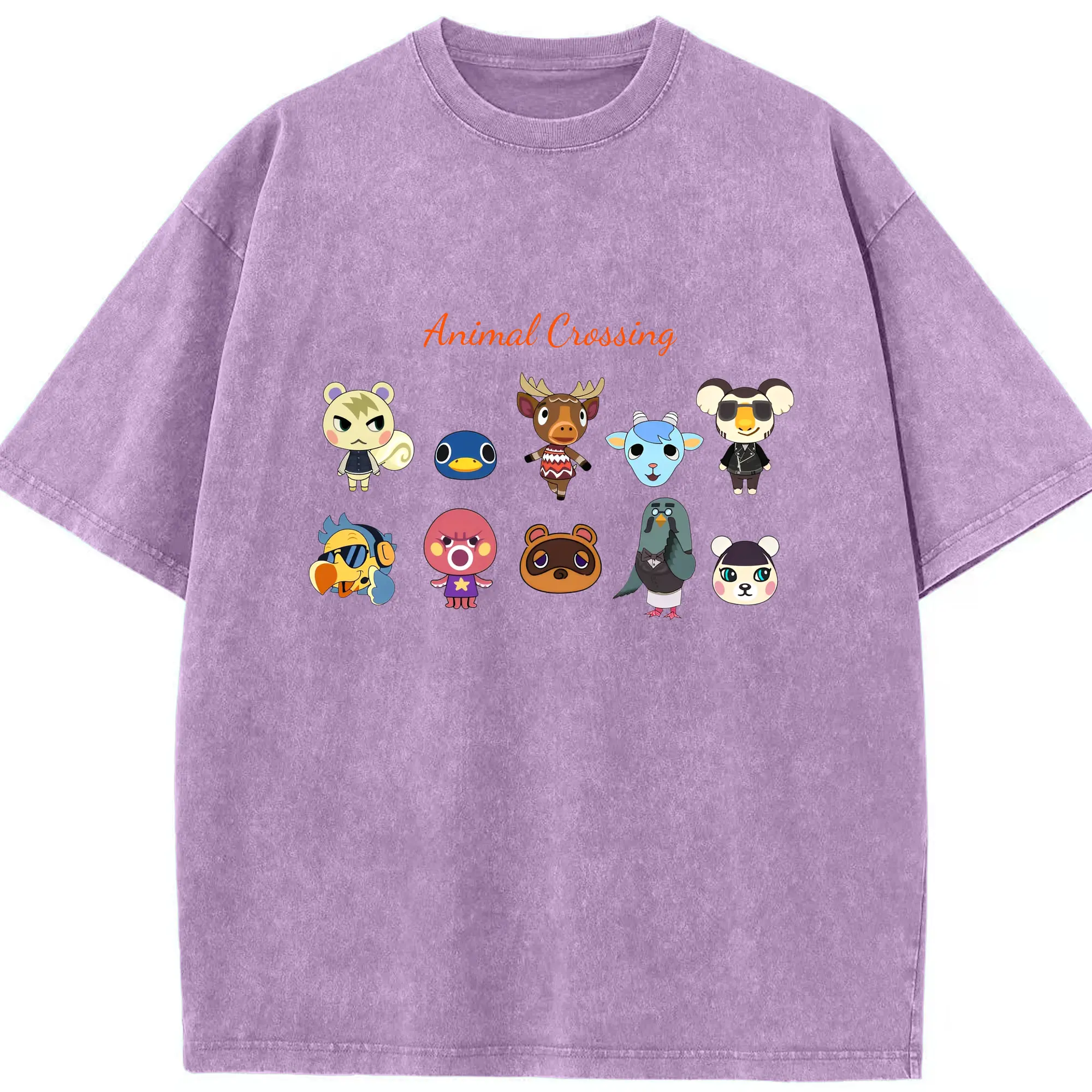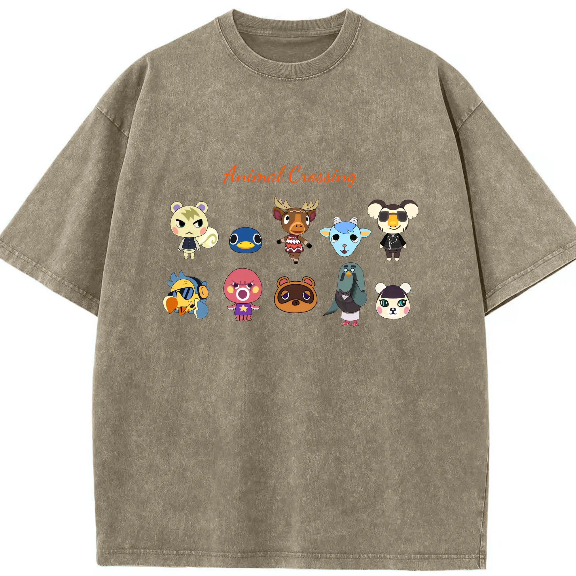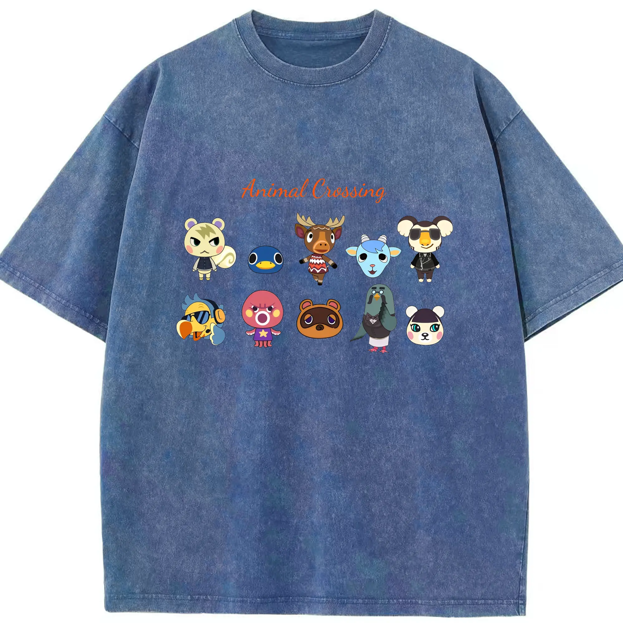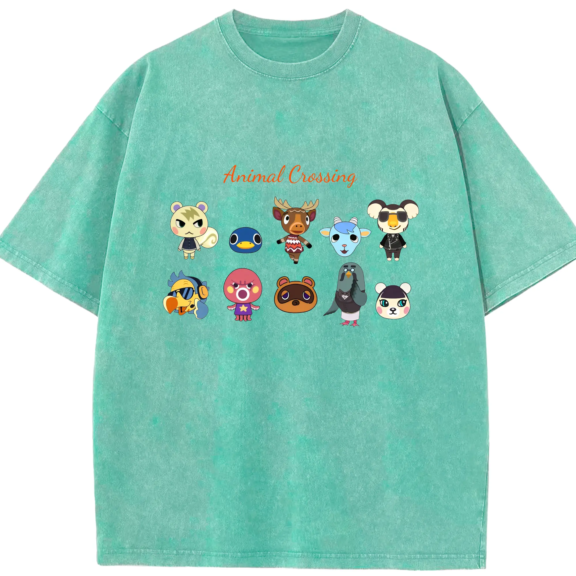 【人気急上昇】どうぶつの森 グッズ風デザイン - 綿100% 半袖Tシャツ ・ フロントプリント ・ 快適 通気性 ・ 日常使い 散歩 スポーツ用