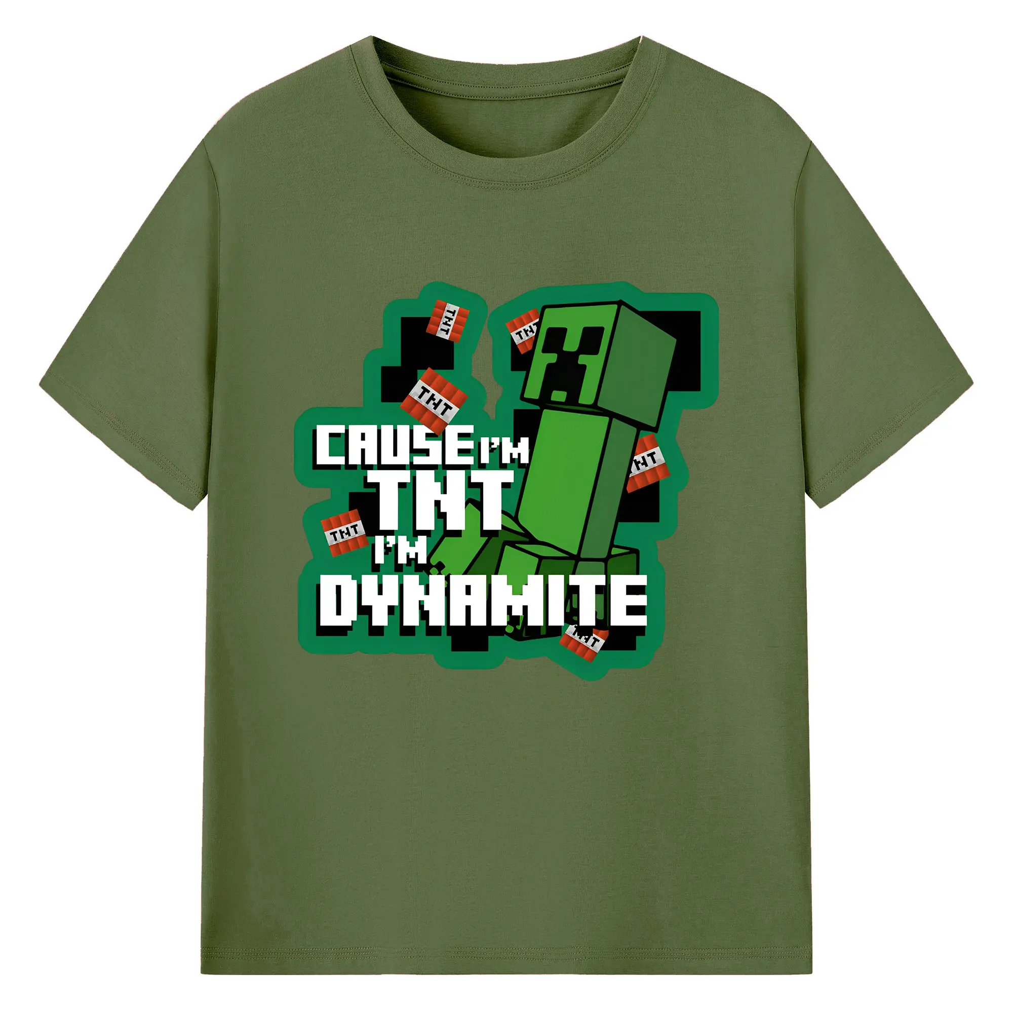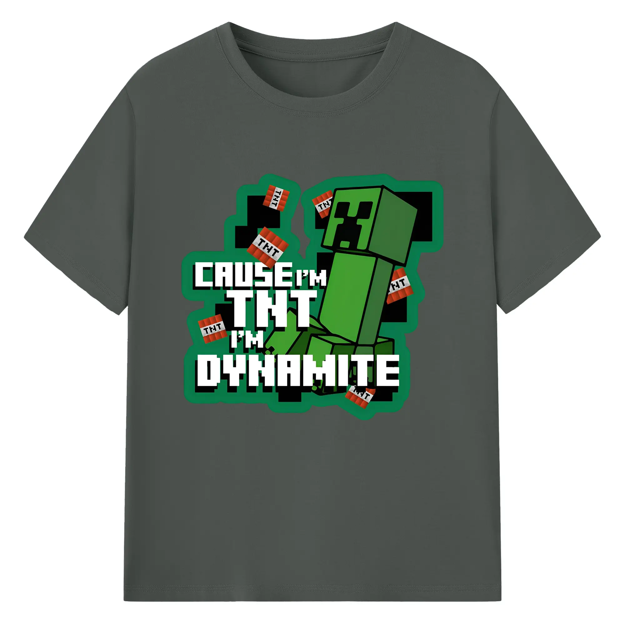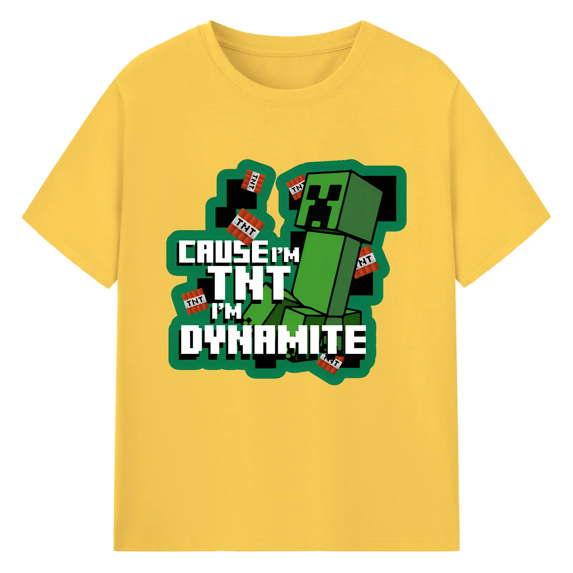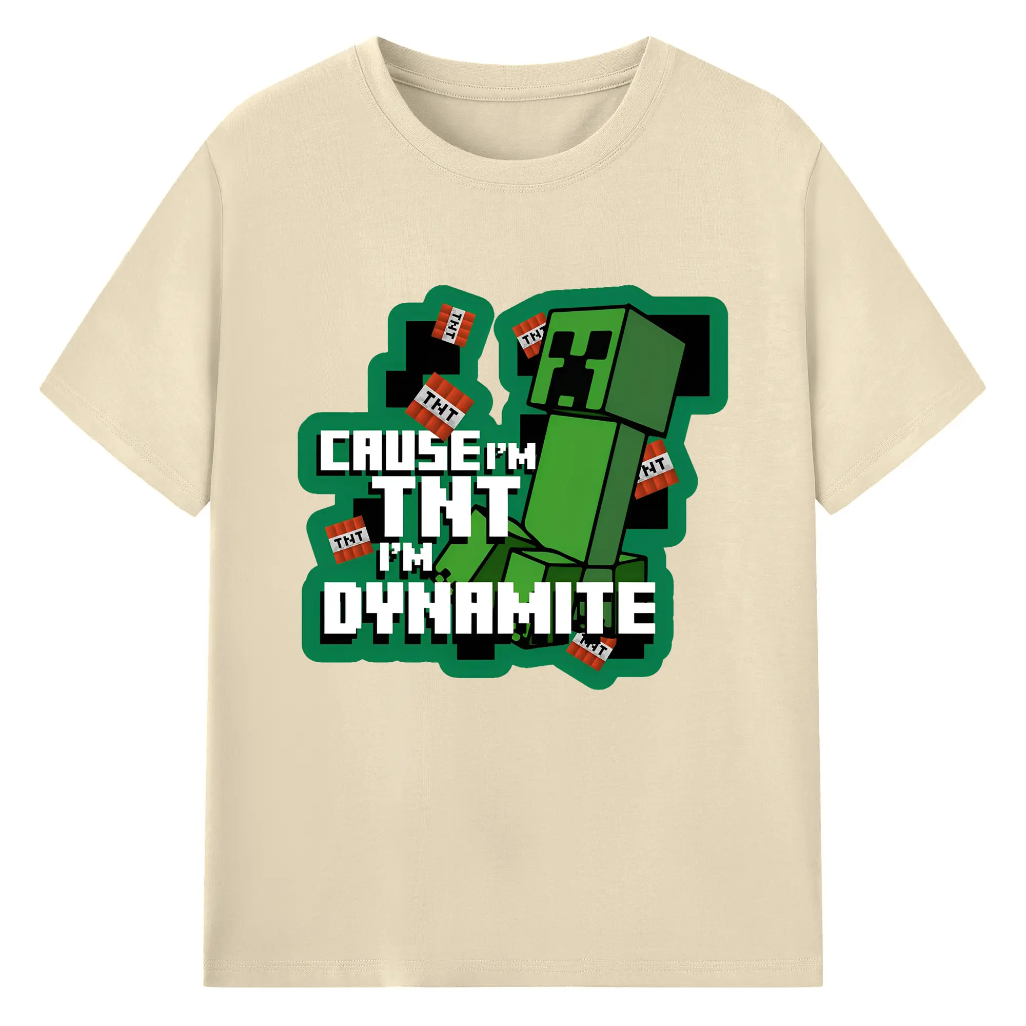 【人気急上昇】マインクラフト グッズ風 - 綿100% ヴィンテージ風 半袖Tシャツ ・ フロントプリント ・ 柔らか肌触り ・ 通気性 快適 ・ スポーツ カジュアル 外出用