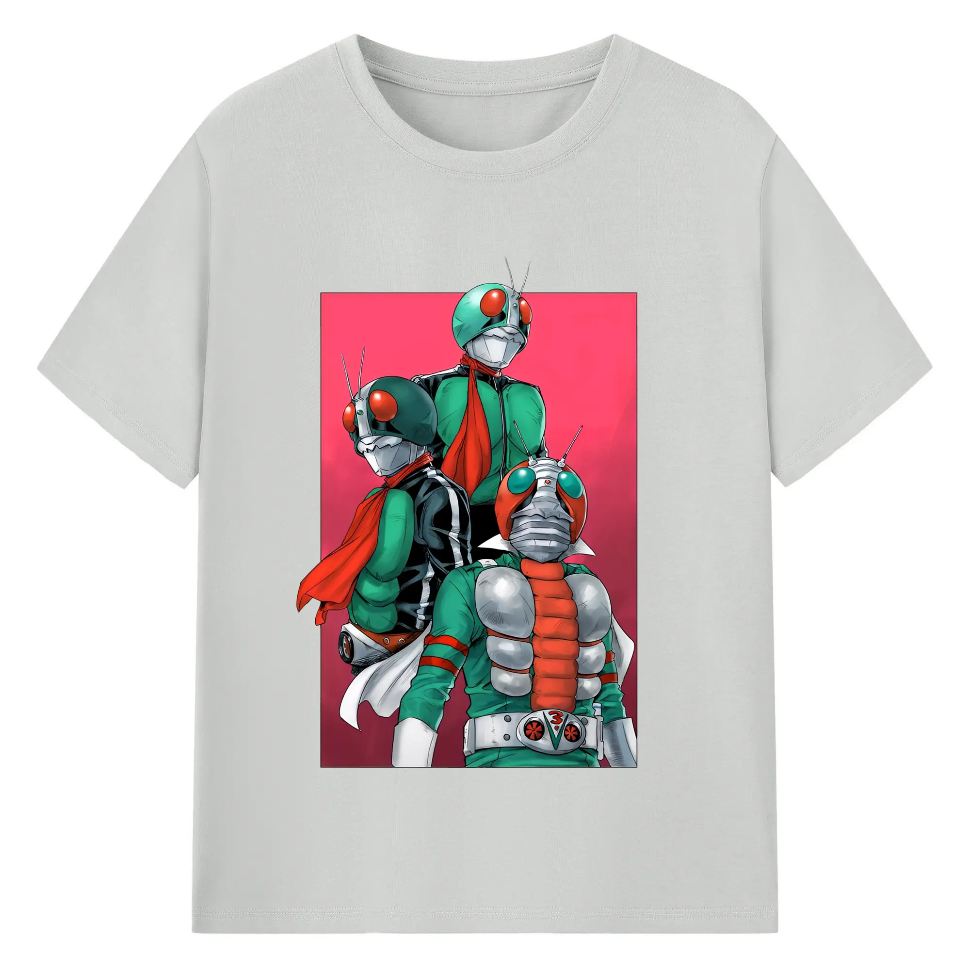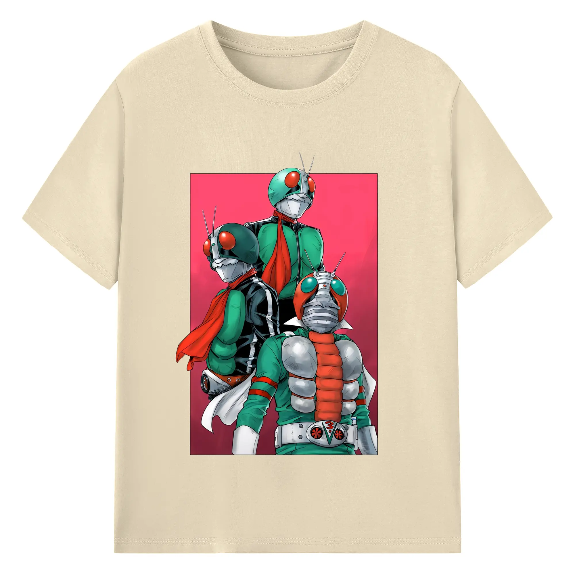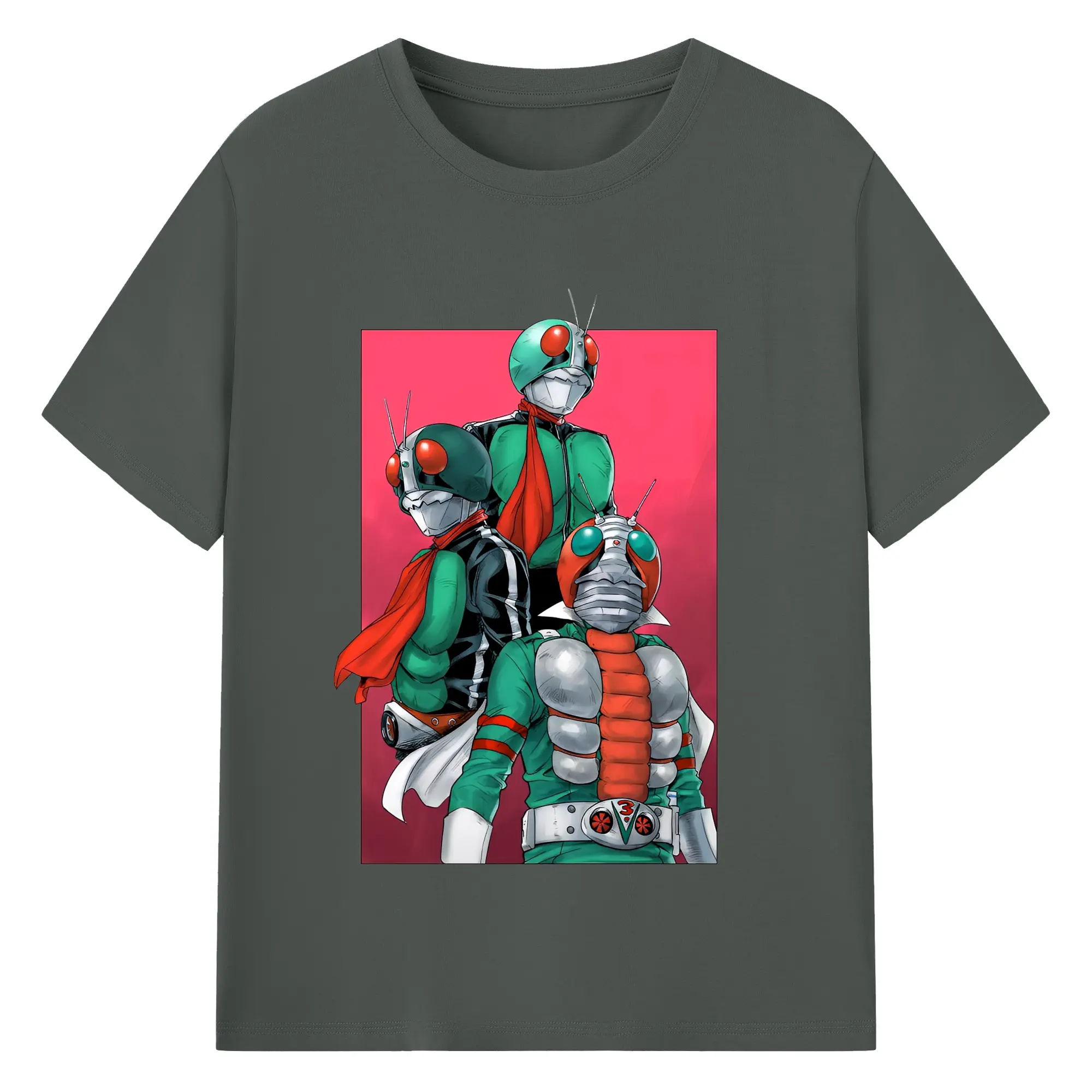 人気特撮 仮面ライダーV3シリーズ グッズ - 綿100% ヴィンテージ風 半袖Tシャツ ・ フロントプリント ・ 柔らか肌触り ・ 通気性 快適 ・ スポーツ カジュアル 外出用
