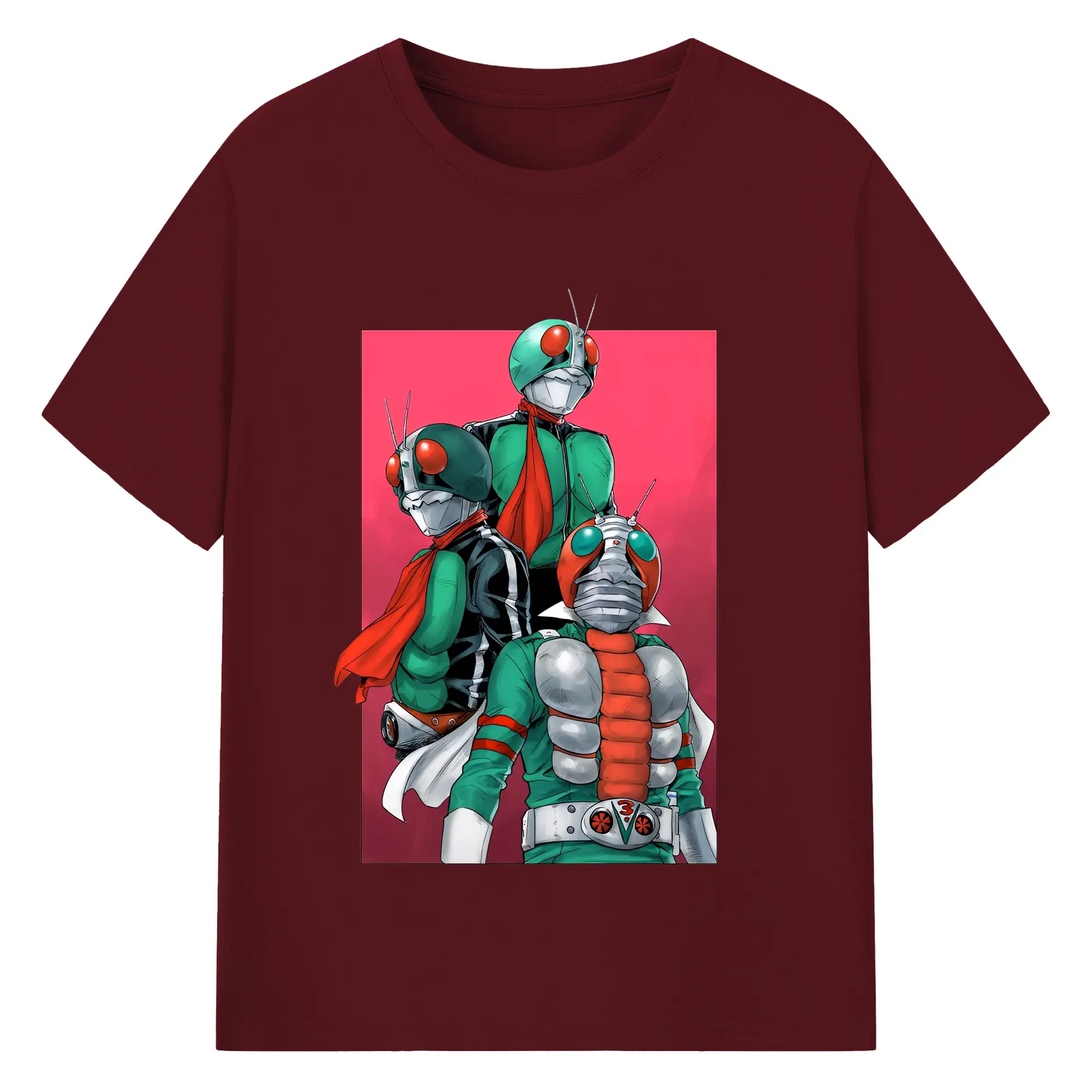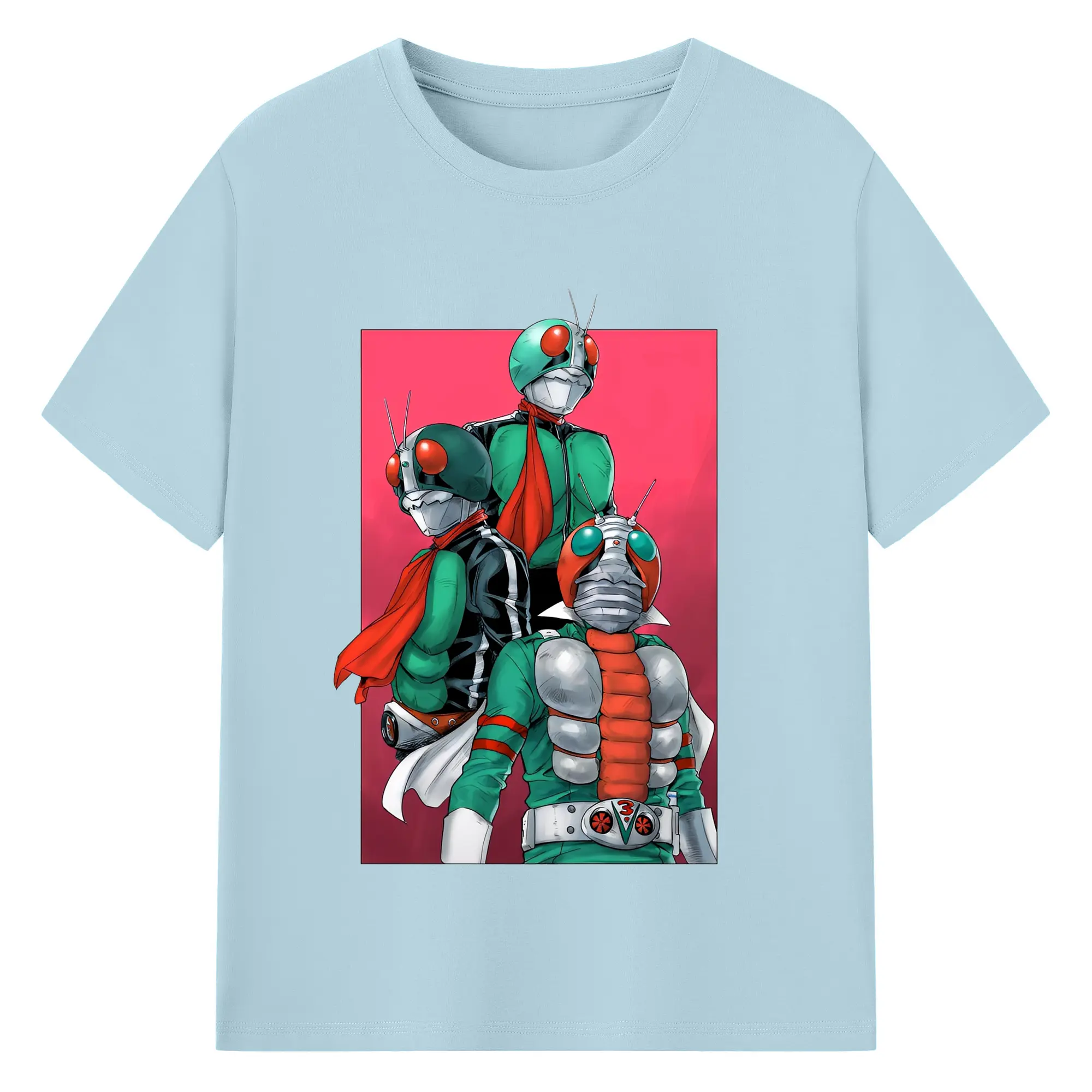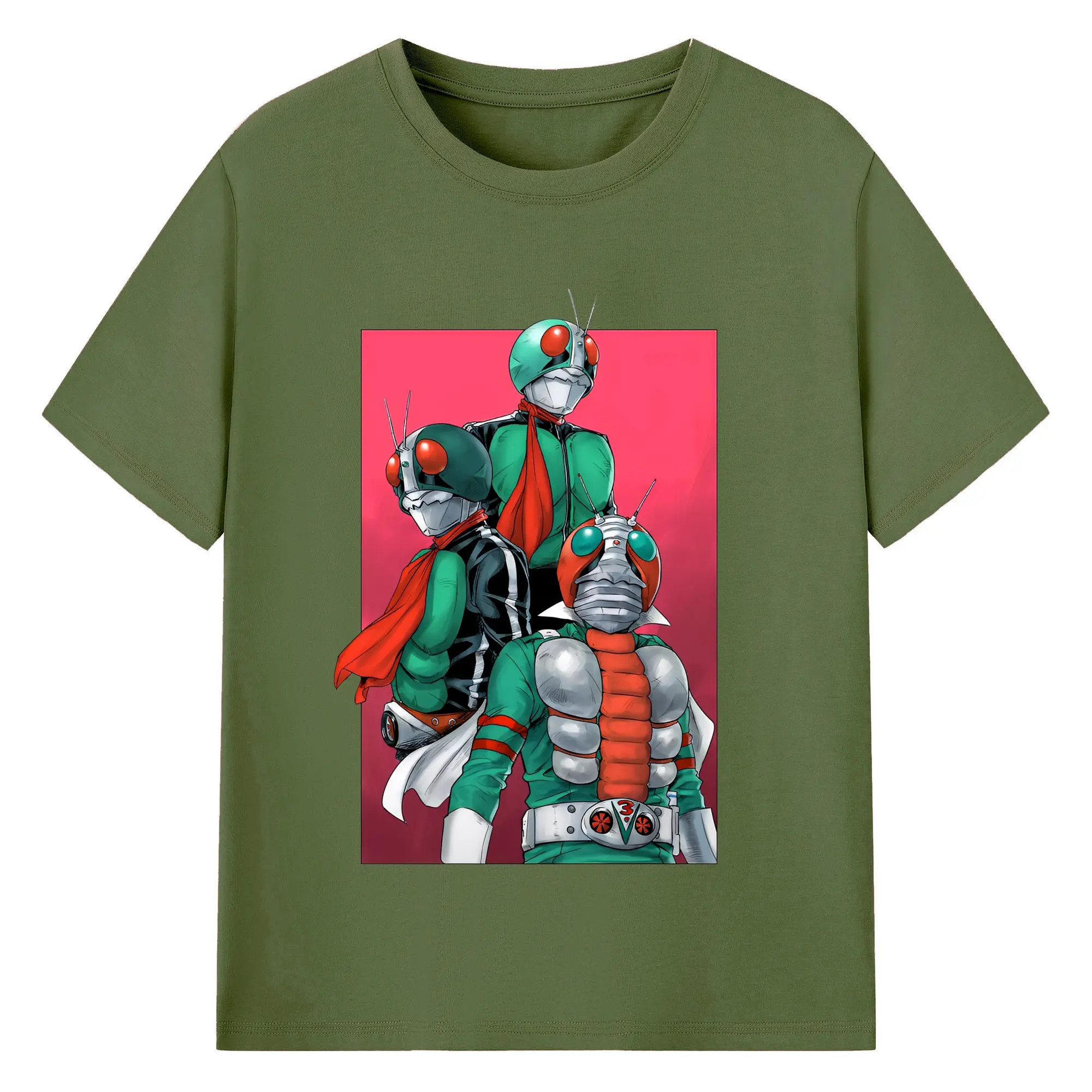 人気特撮 仮面ライダーV3シリーズ グッズ - 綿100% ヴィンテージ風 半袖Tシャツ ・ フロントプリント ・ 柔らか肌触り ・ 通気性 快適 ・ スポーツ カジュアル 外出用