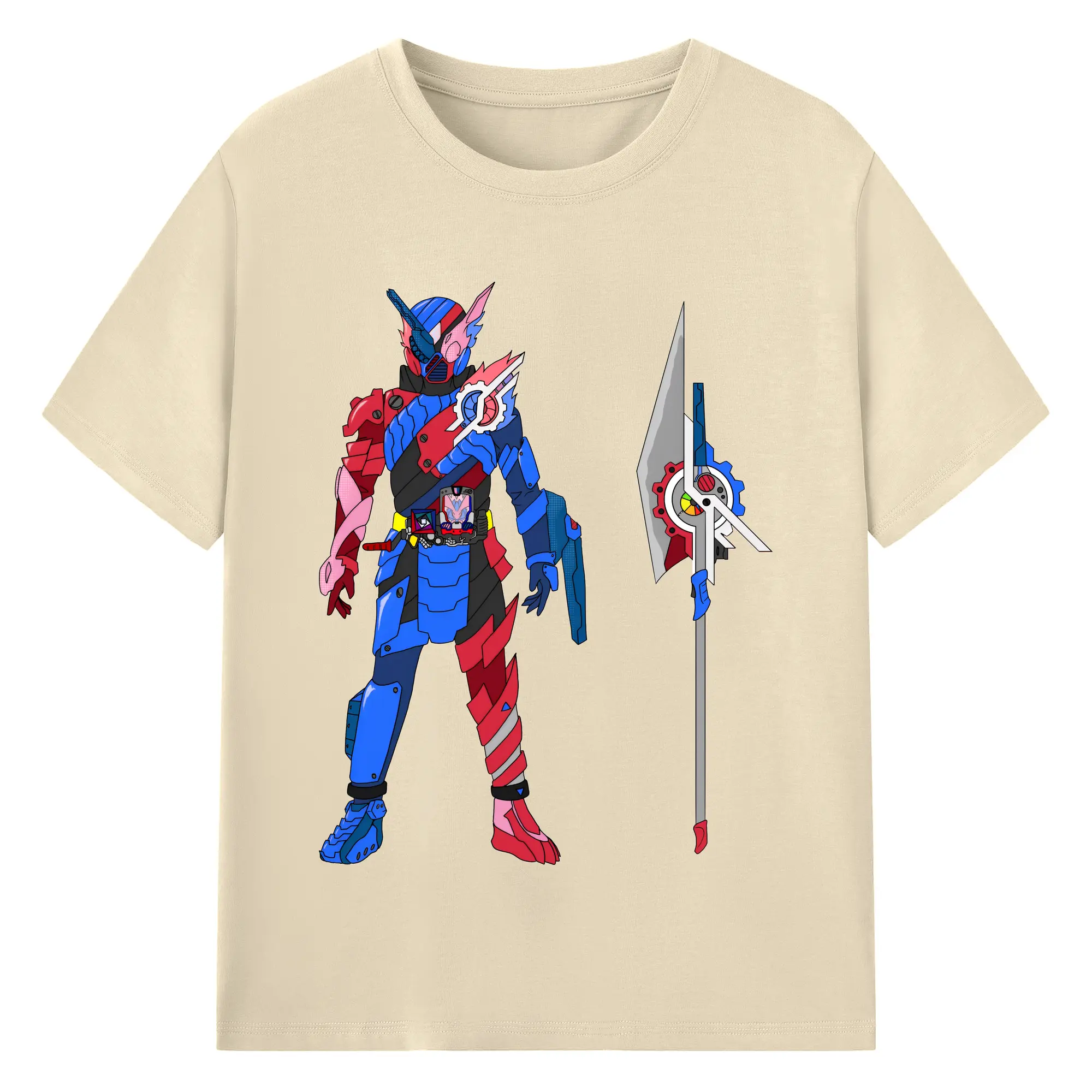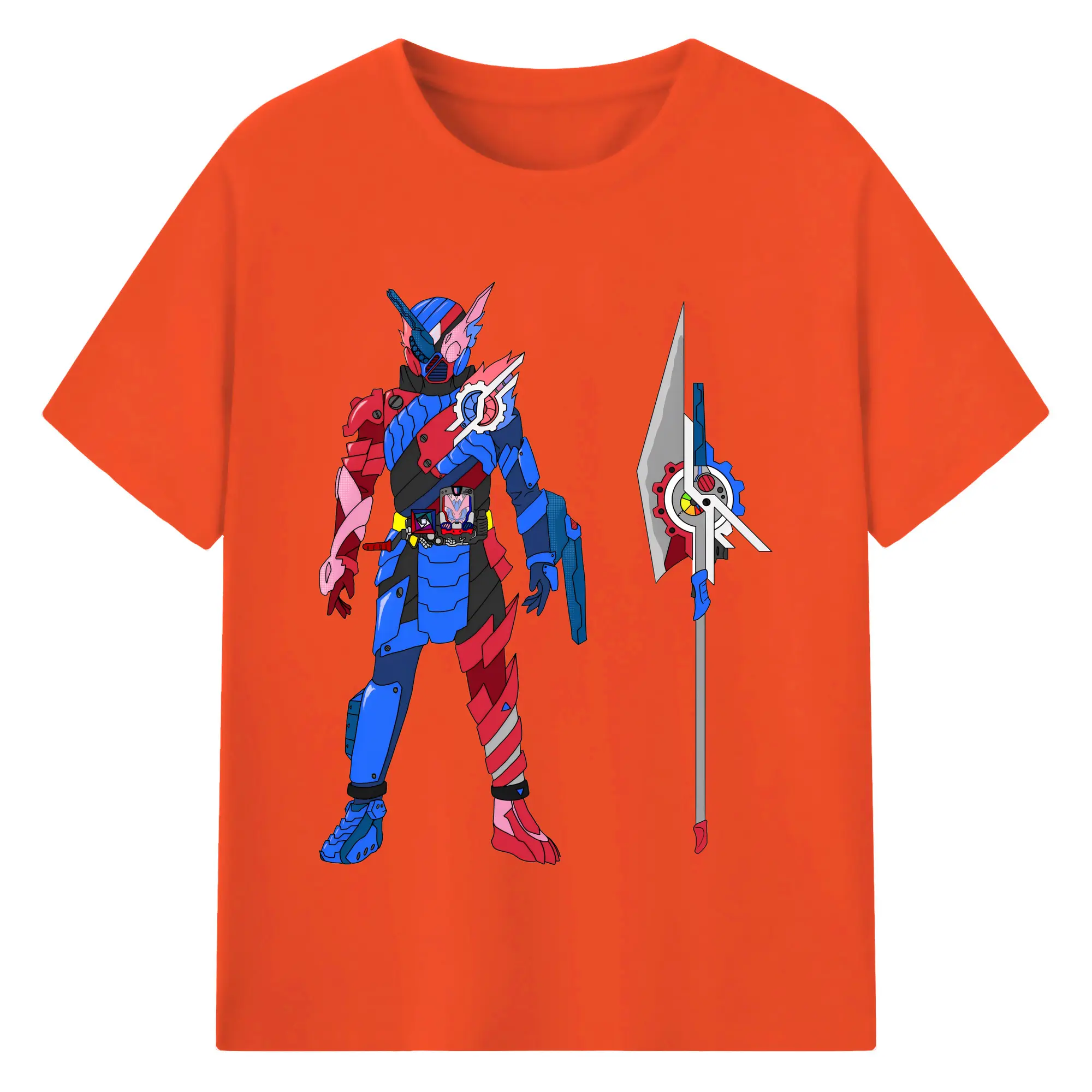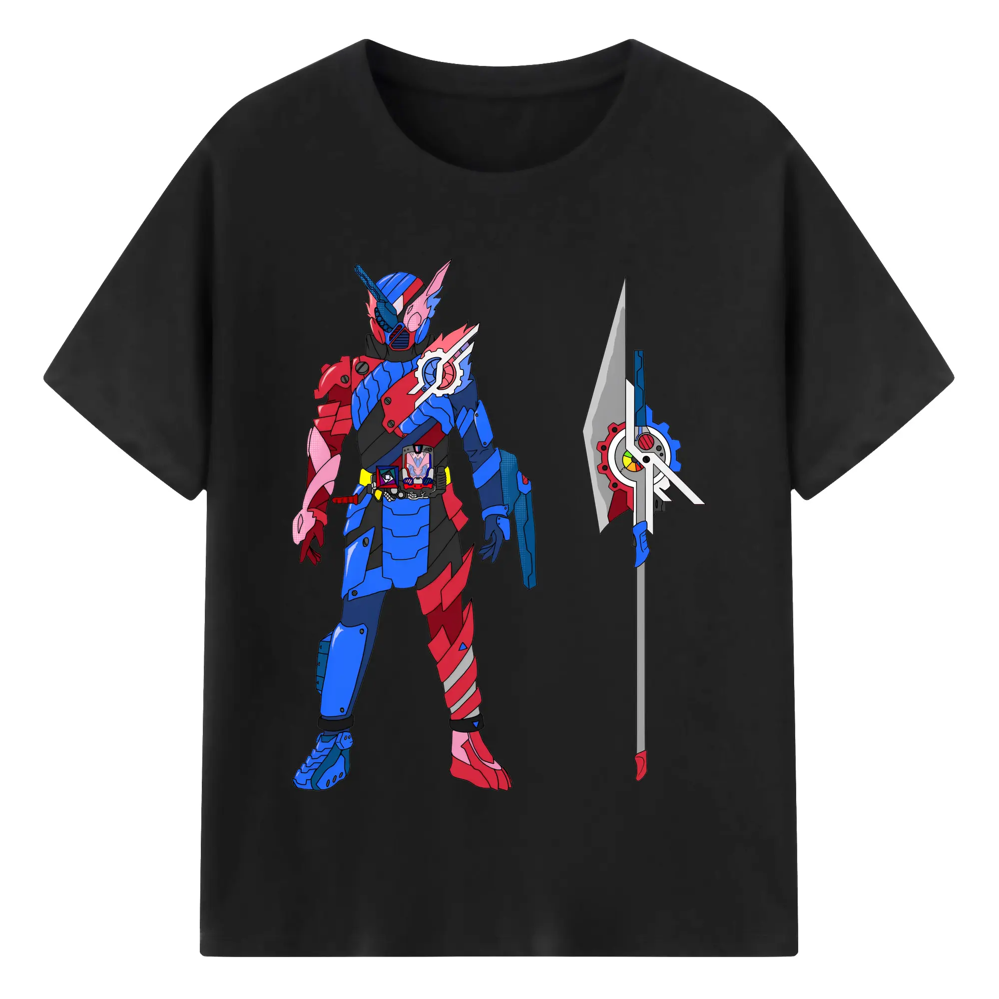 仮面ライダービルド最終フォーム グッズ - 綿100% ヴィンテージ風 半袖Tシャツ ・ フロントプリント ・ 柔らか肌触り ・ 通気性 快適 ・ スポーツ カジュアル 外出用