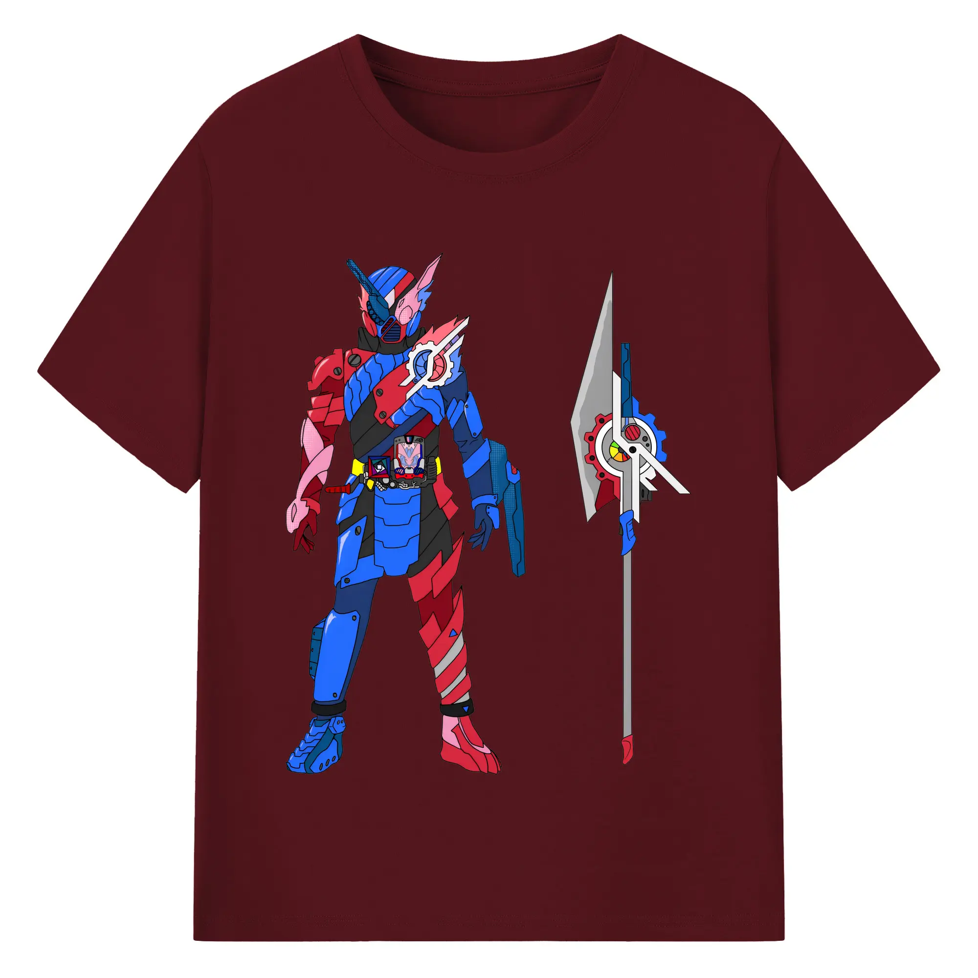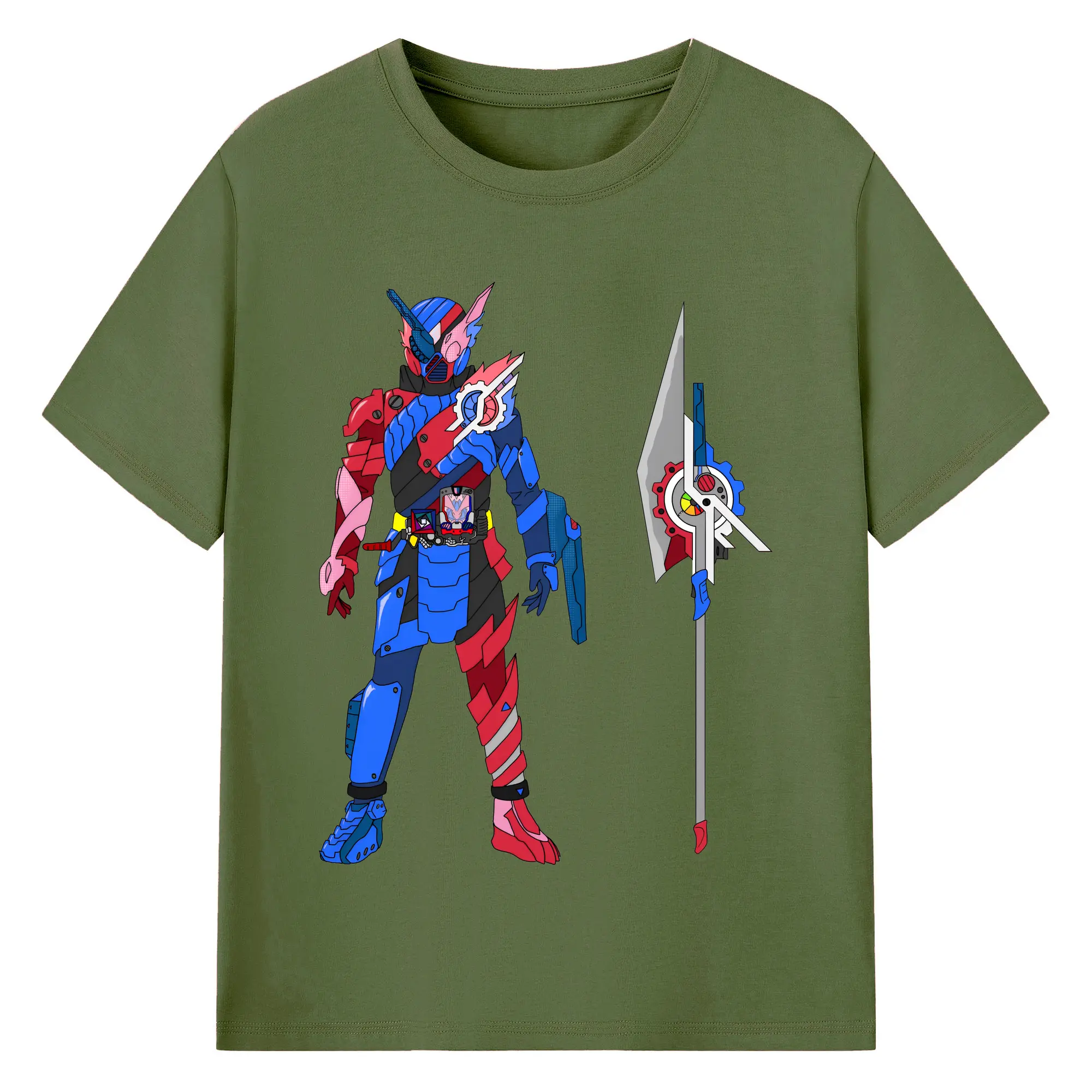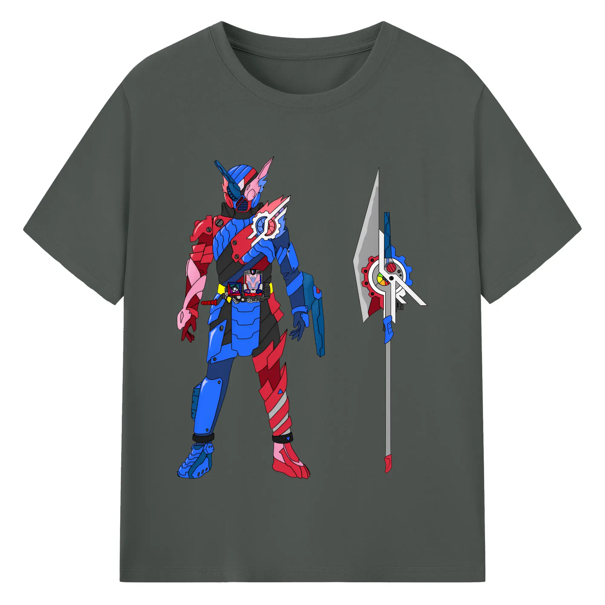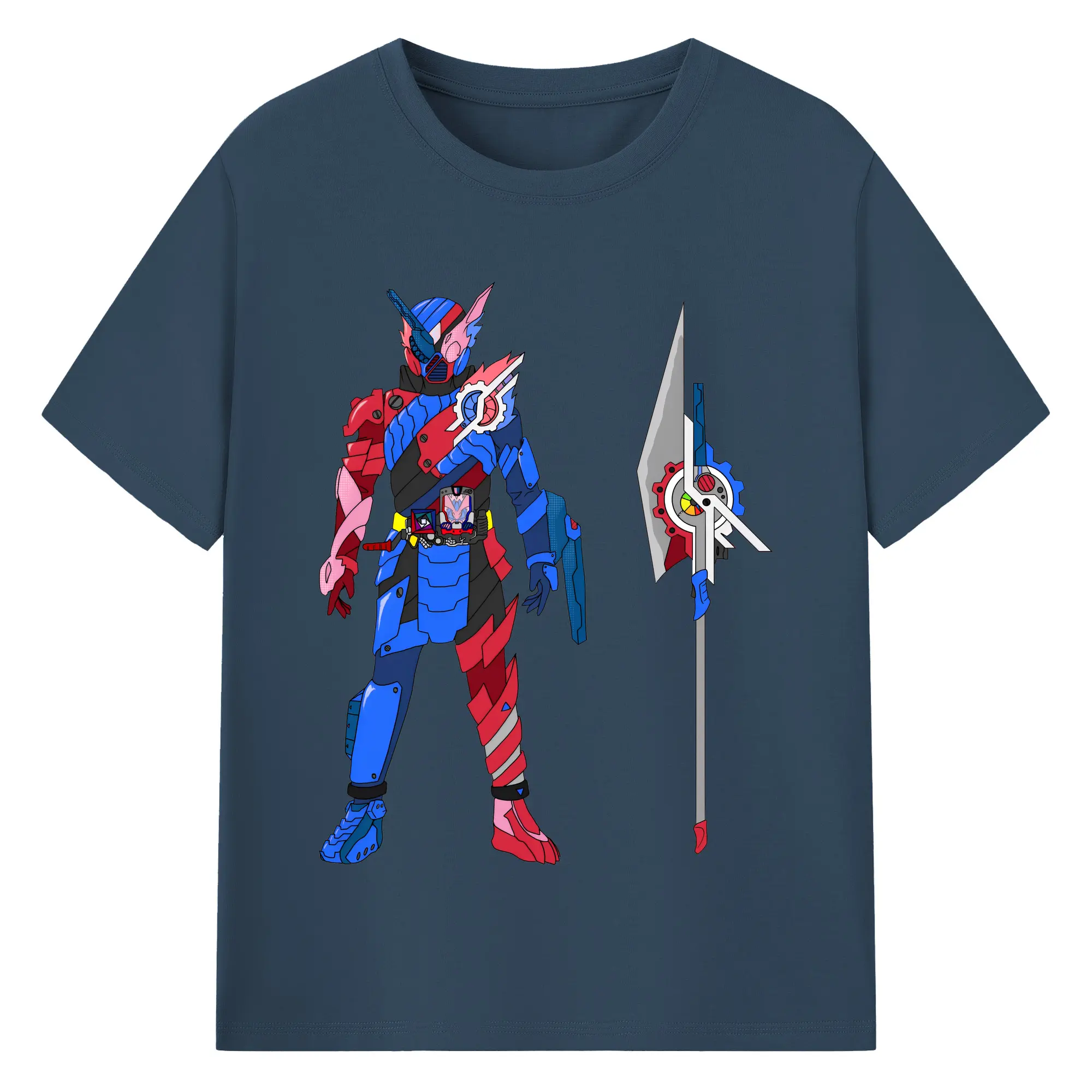 仮面ライダービルド最終フォーム グッズ - 綿100% ヴィンテージ風 半袖Tシャツ ・ フロントプリント ・ 柔らか肌触り ・ 通気性 快適 ・ スポーツ カジュアル 外出用