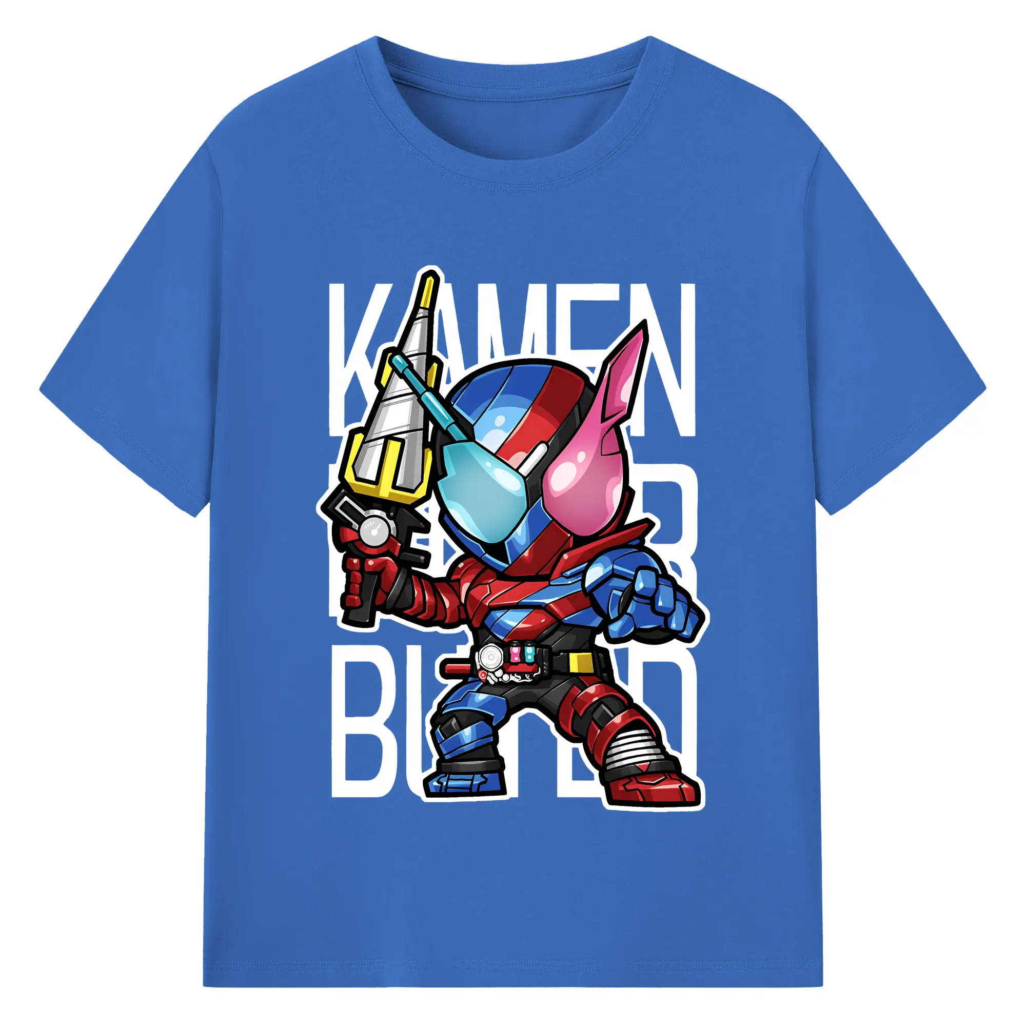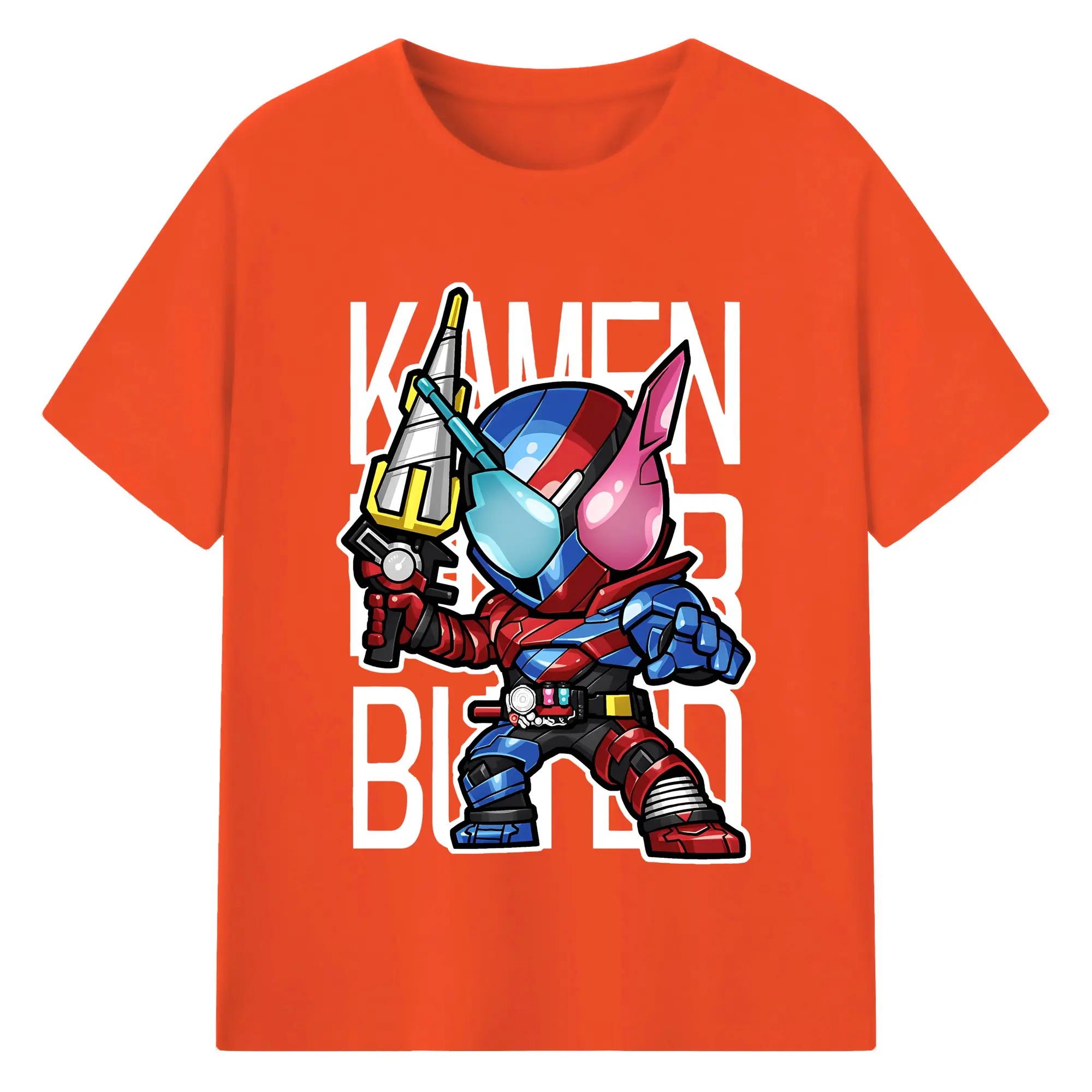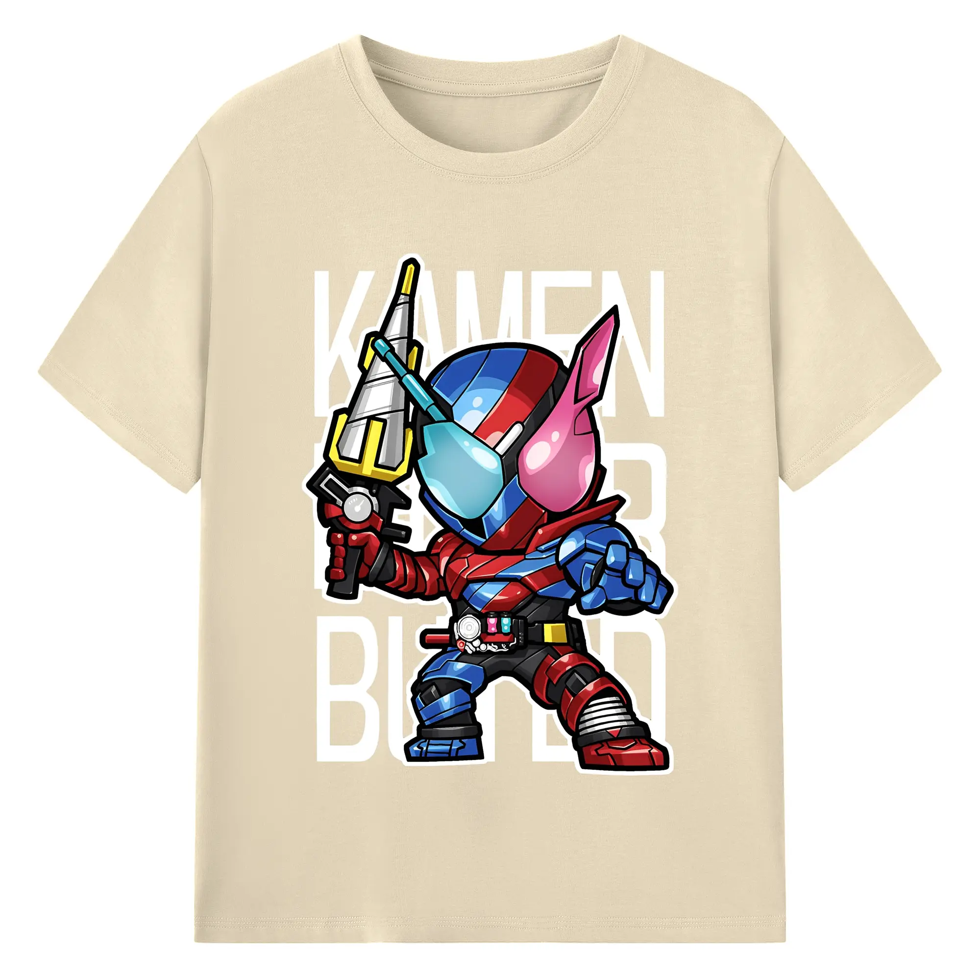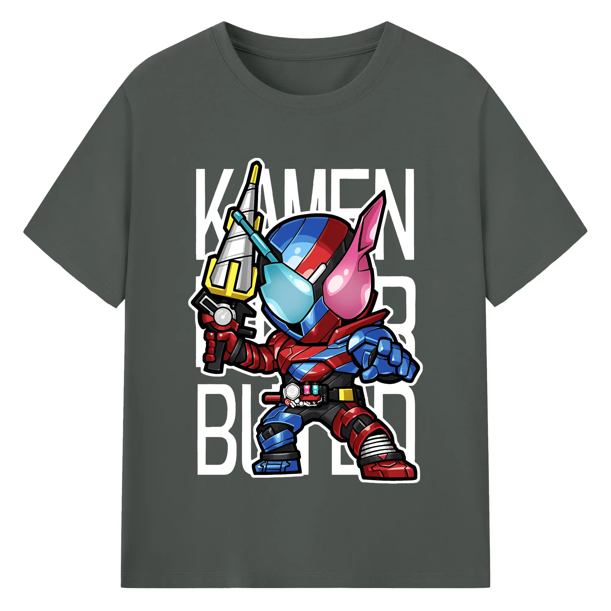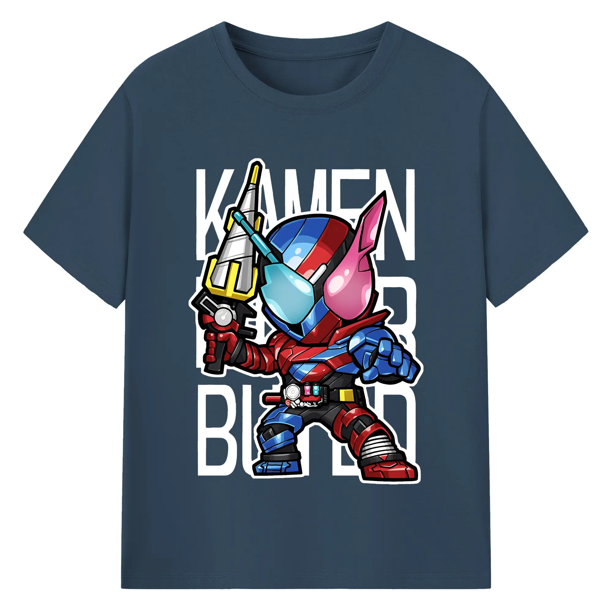 仮面ライダービルドアニメ - 綿100% ヴィンテージ風 半袖Tシャツ ・ フロントプリント ・ 柔らか肌触り ・ 通気性 快適 ・ スポーツ カジュアル 外出用