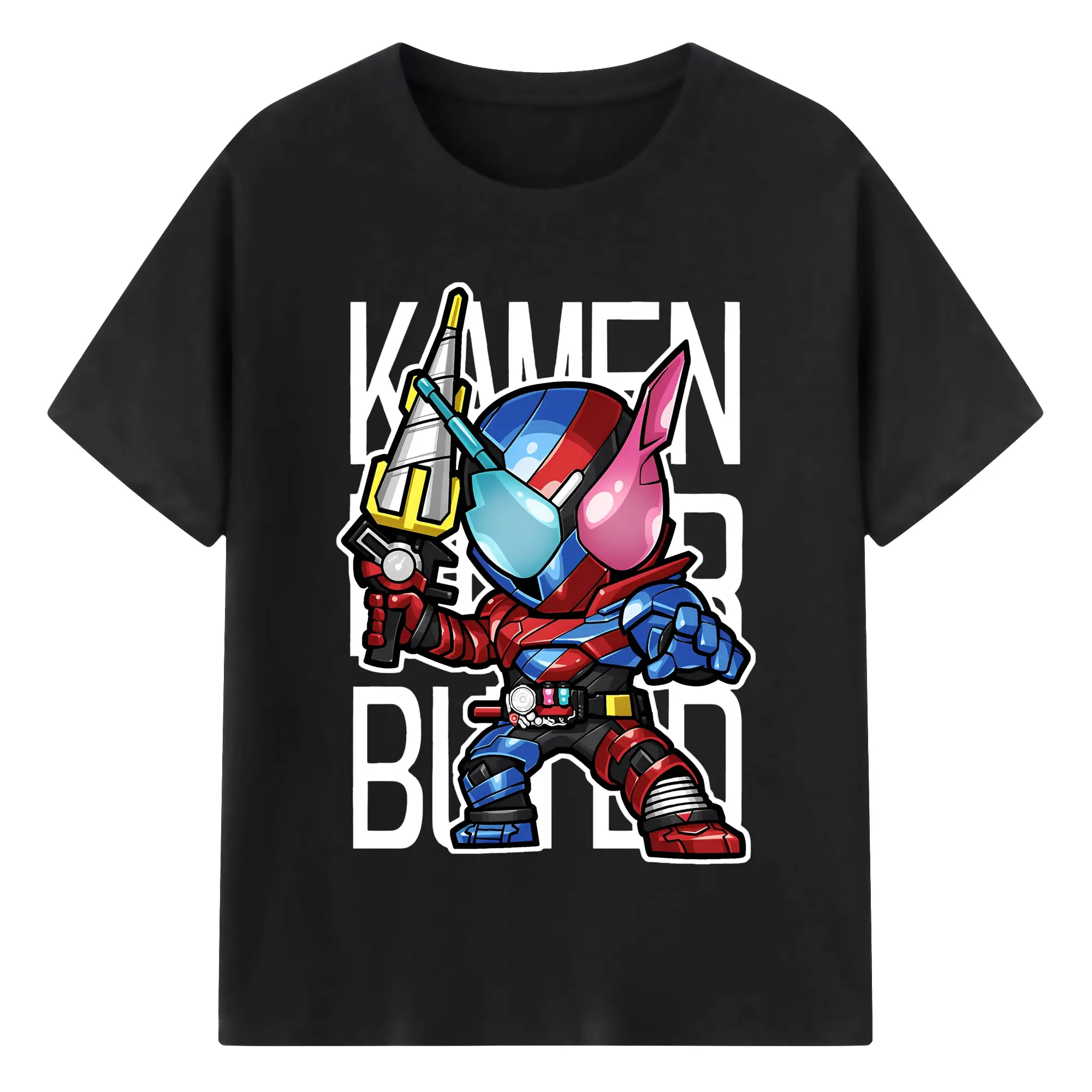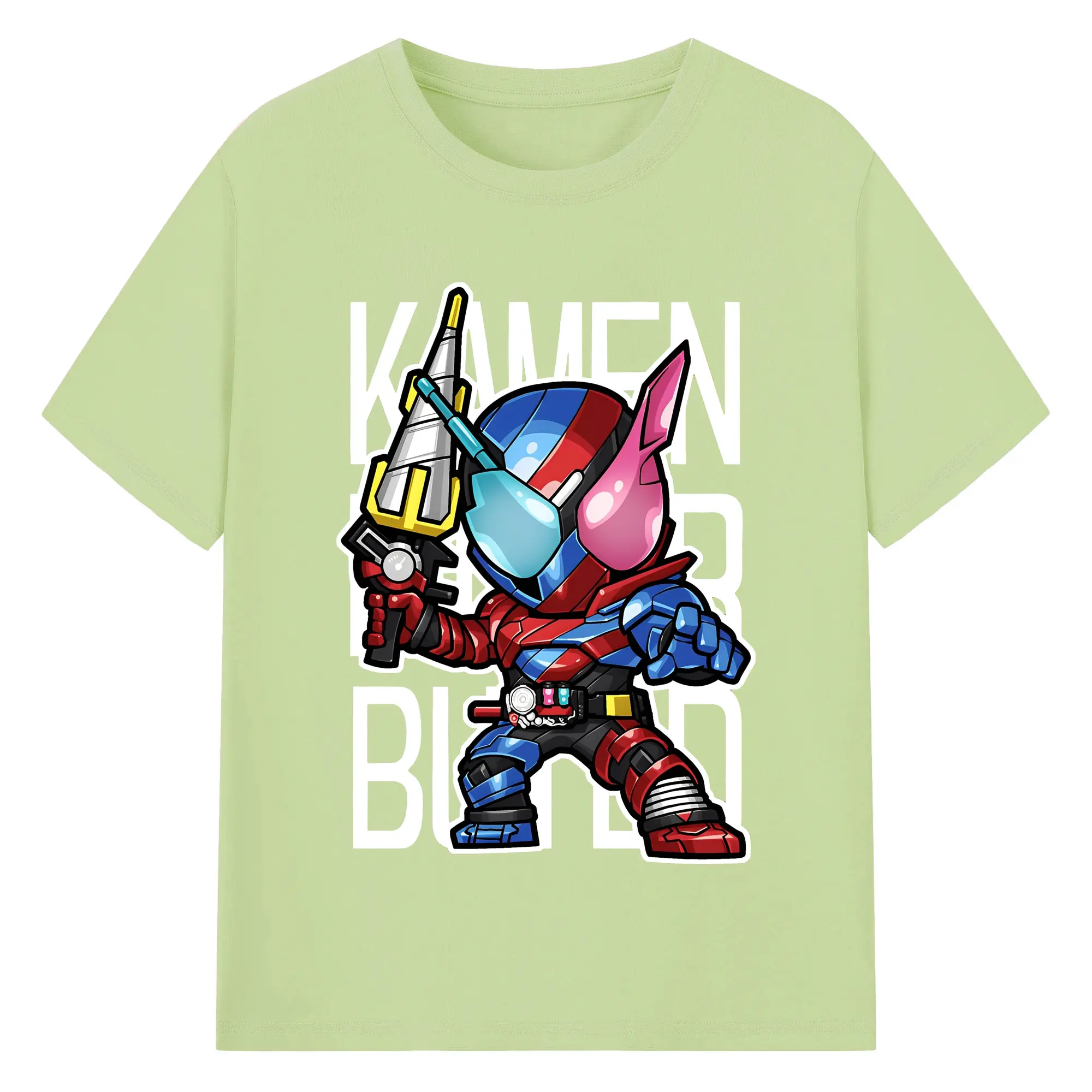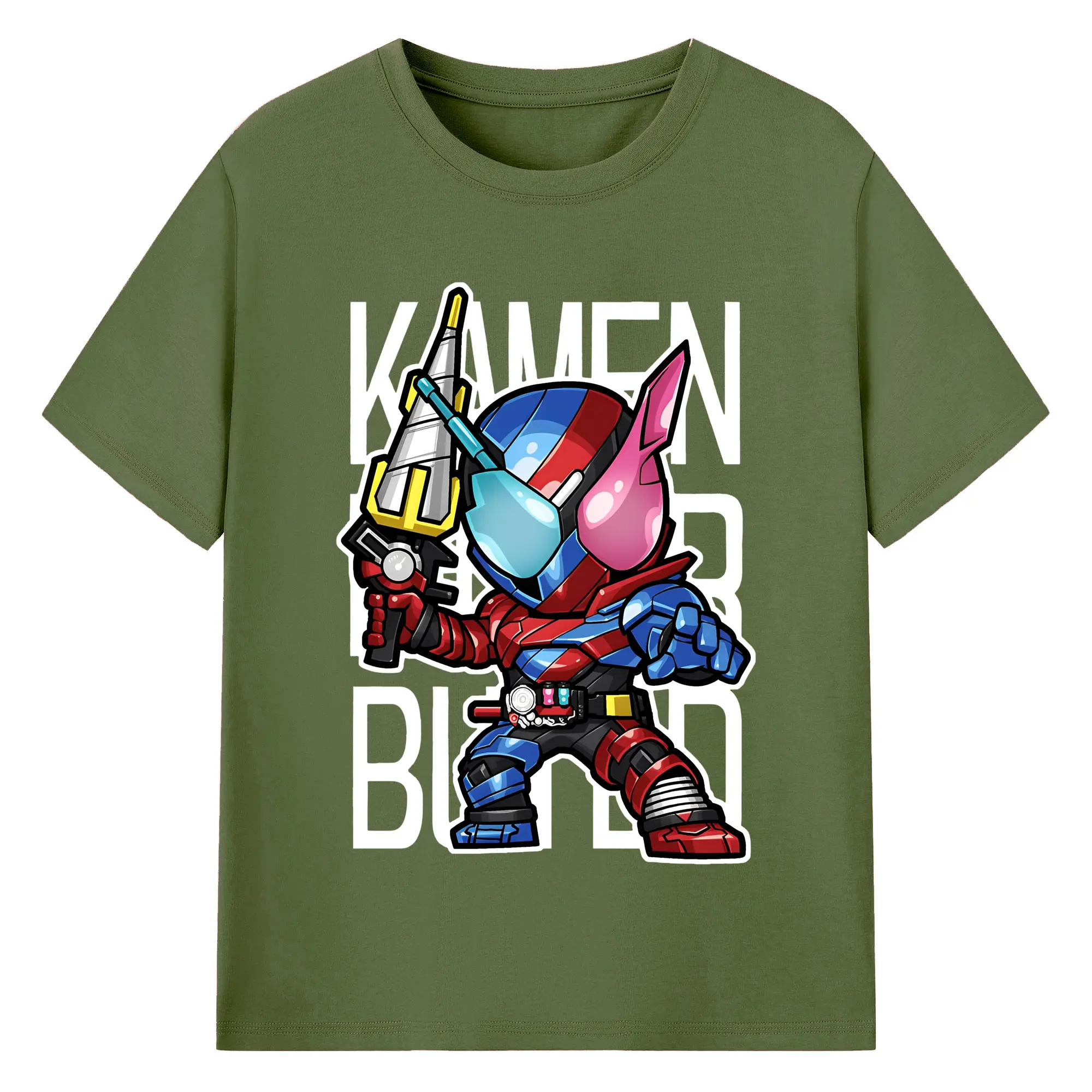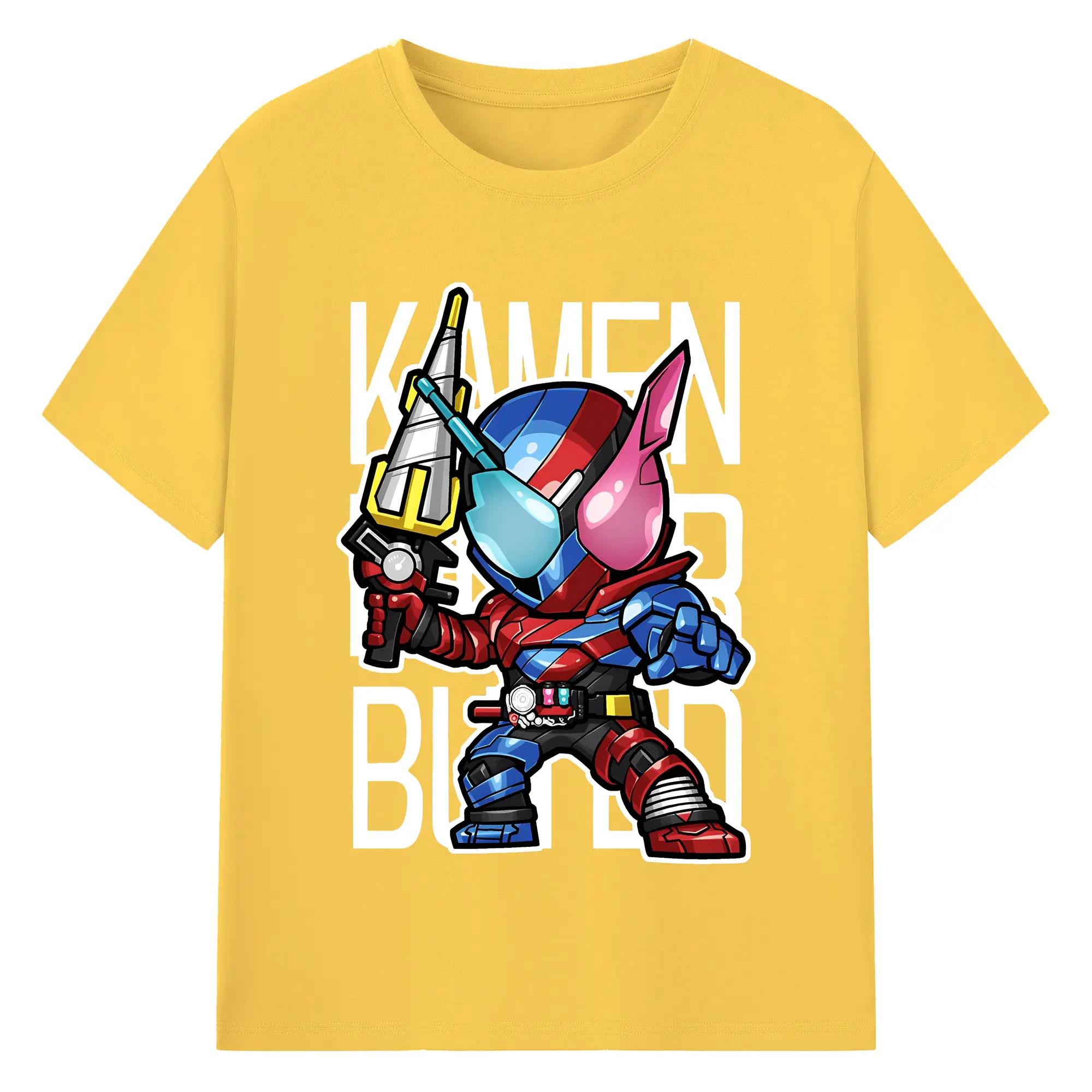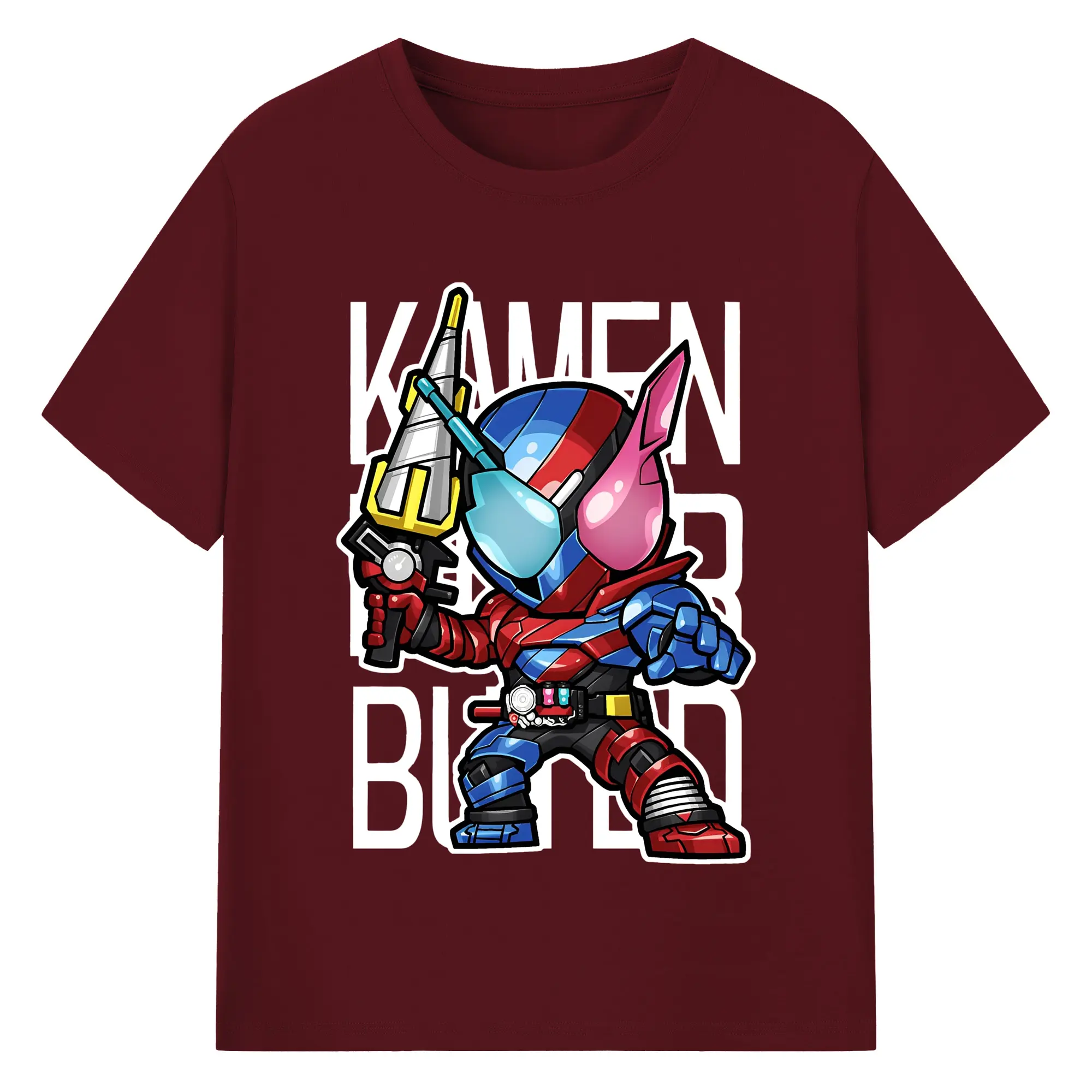 仮面ライダービルドアニメ - 綿100% ヴィンテージ風 半袖Tシャツ ・ フロントプリント ・ 柔らか肌触り ・ 通気性 快適 ・ スポーツ カジュアル 外出用