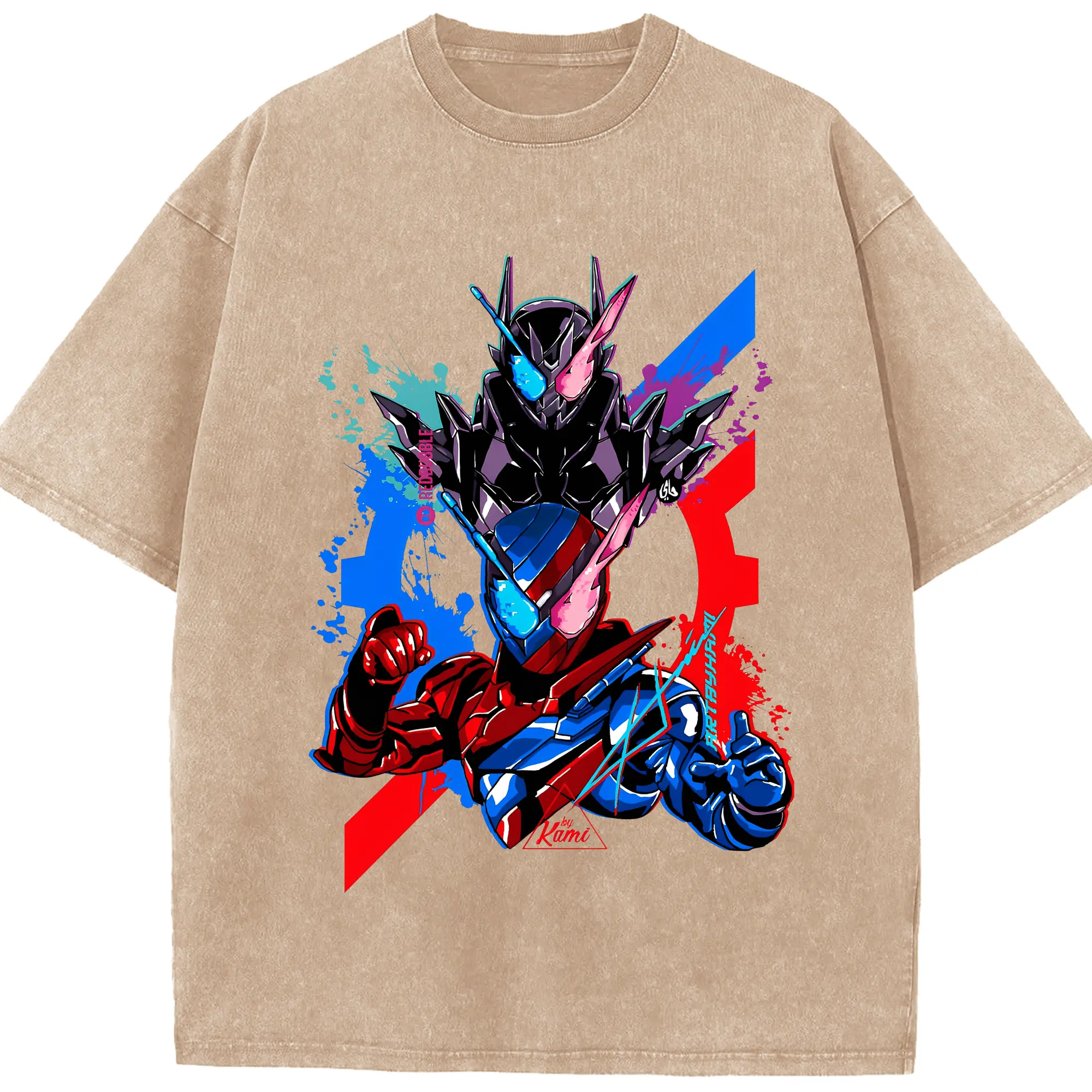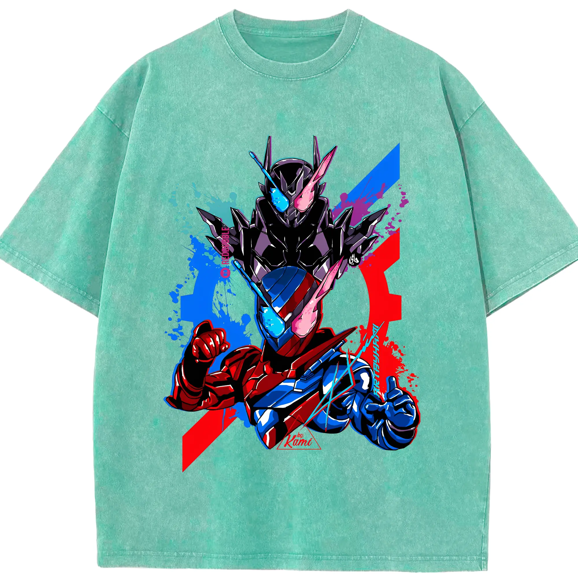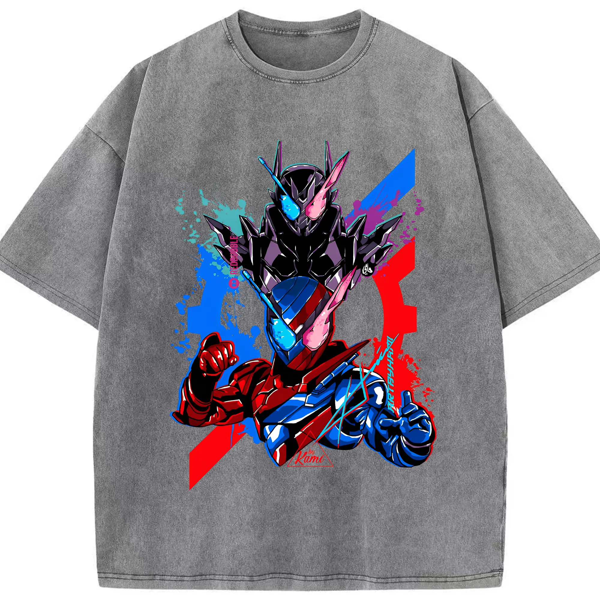 仮面ライダービルド ラビットタンクハザードフォーム - 綿100% 半袖Tシャツ ・ フロントプリント ・ 快適 通気性 ・ 日常使い 散歩 スポーツ用