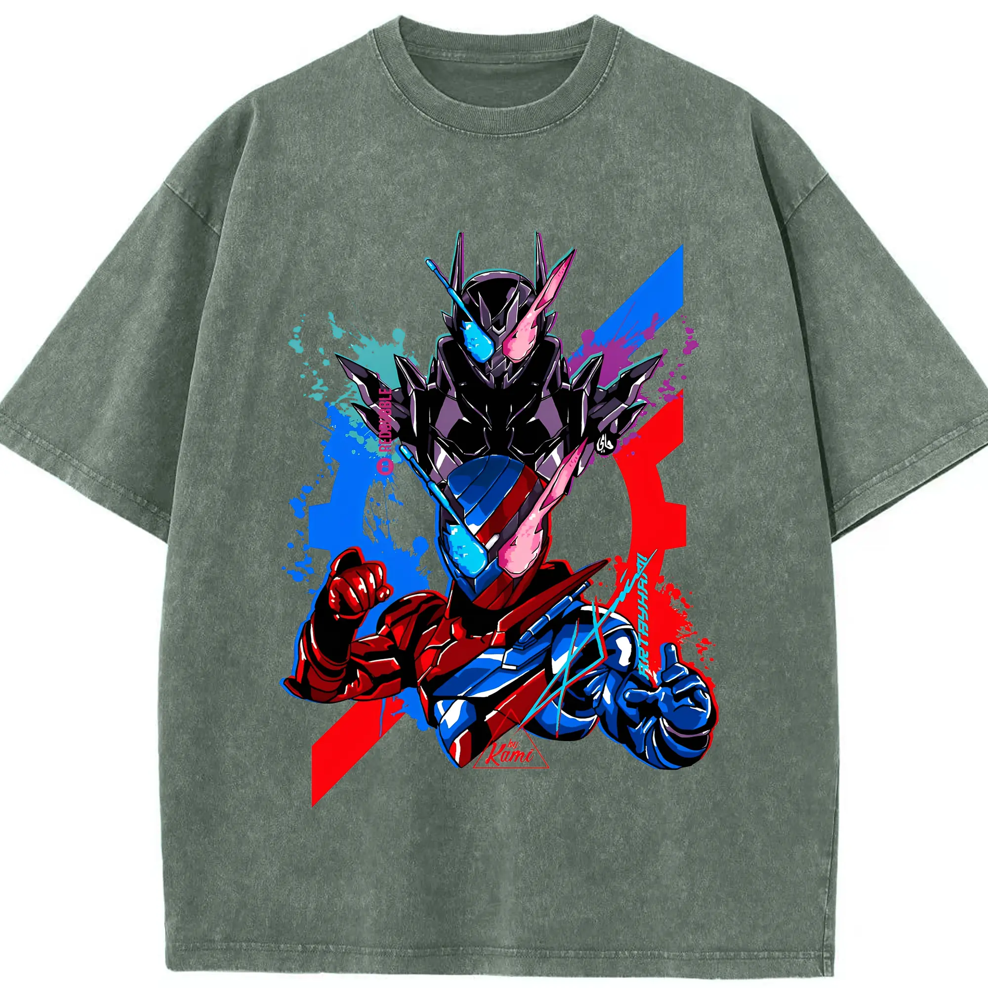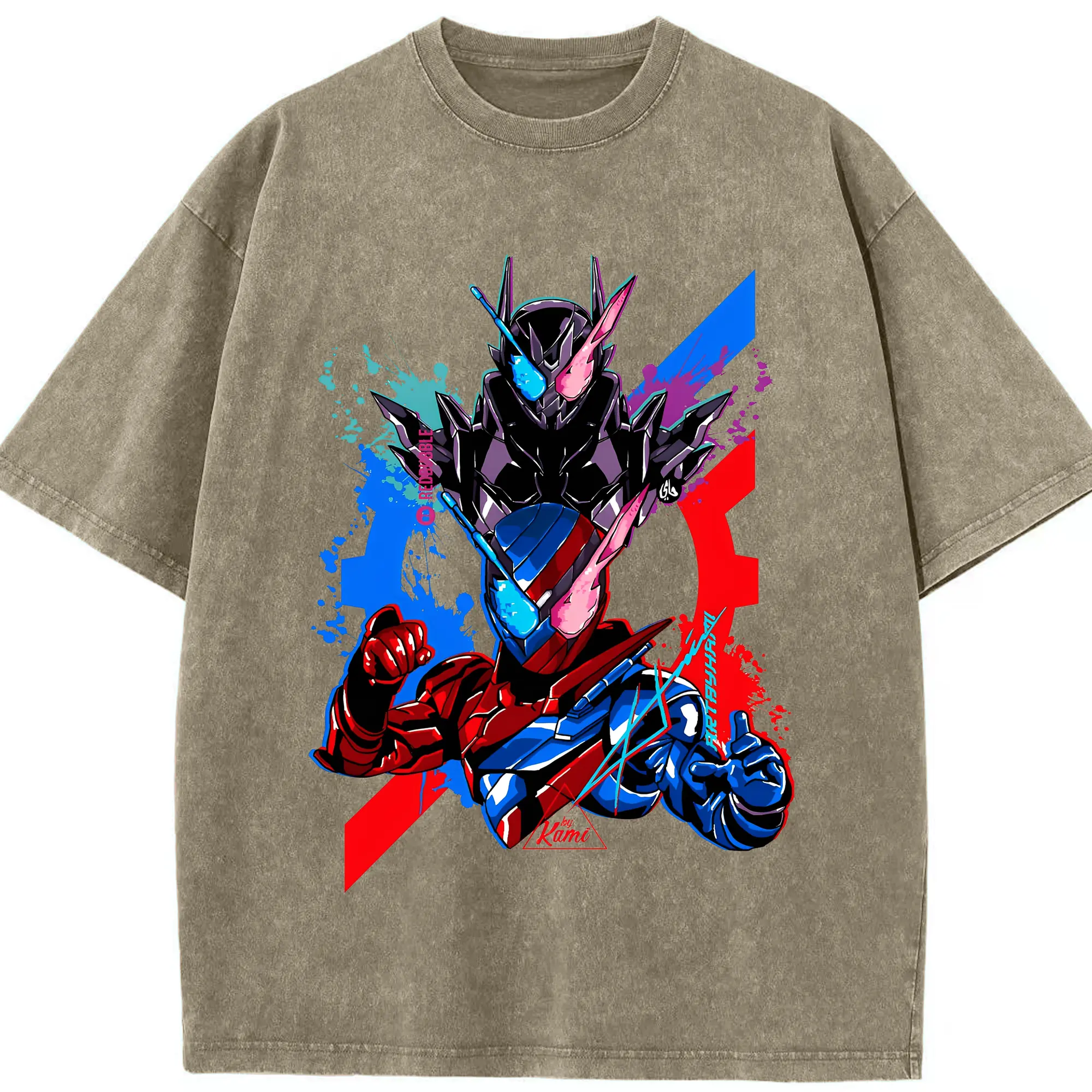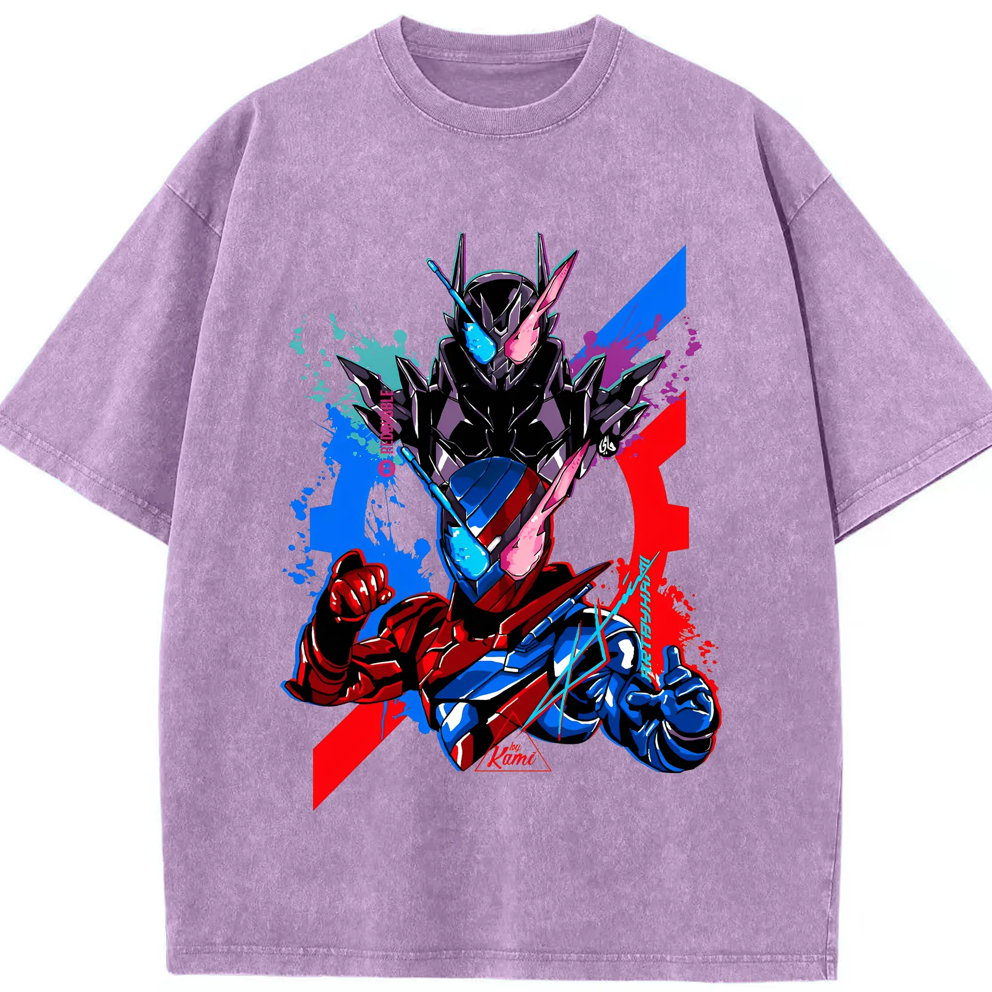 仮面ライダービルド ラビットタンクハザードフォーム - 綿100% 半袖Tシャツ ・ フロントプリント ・ 快適 通気性 ・ 日常使い 散歩 スポーツ用