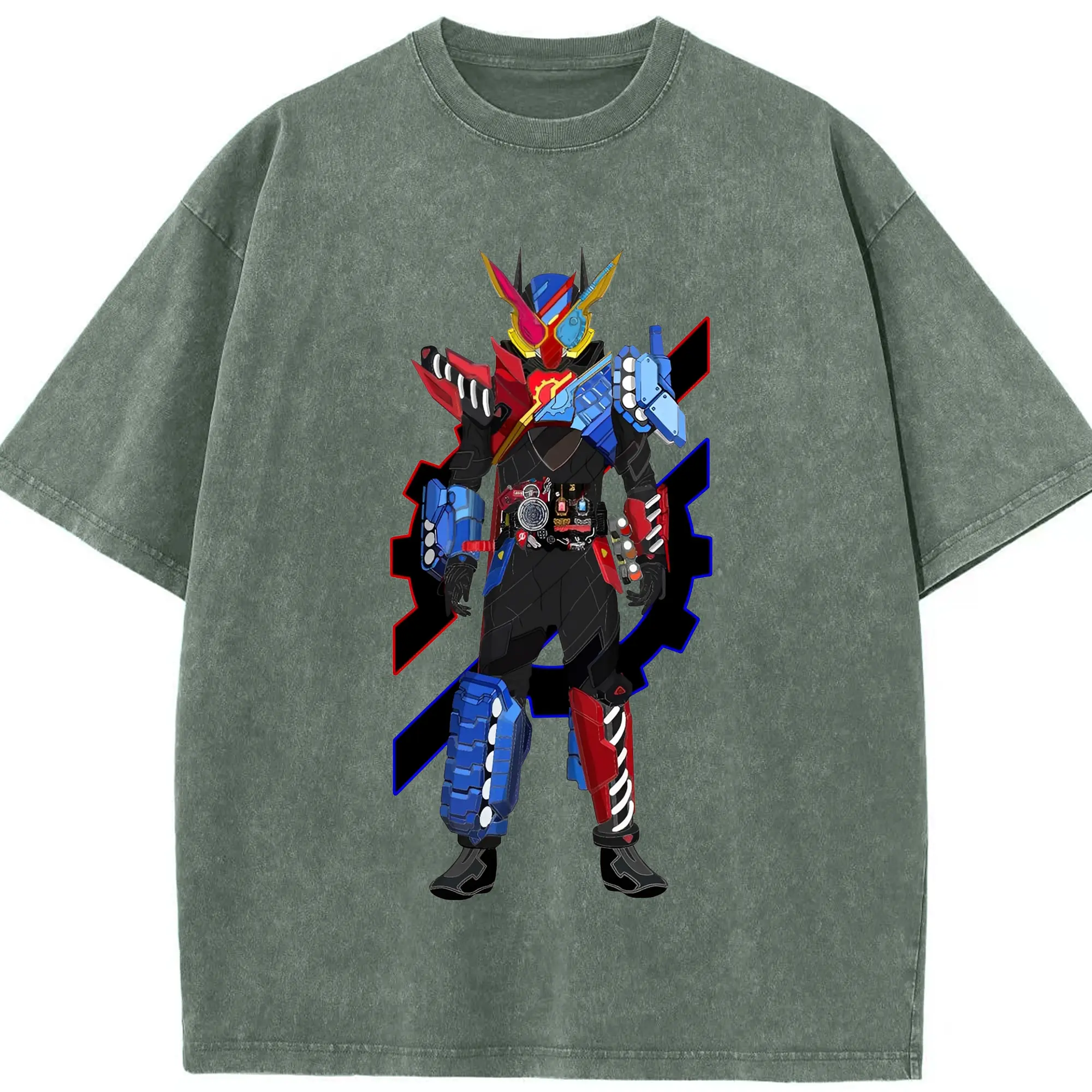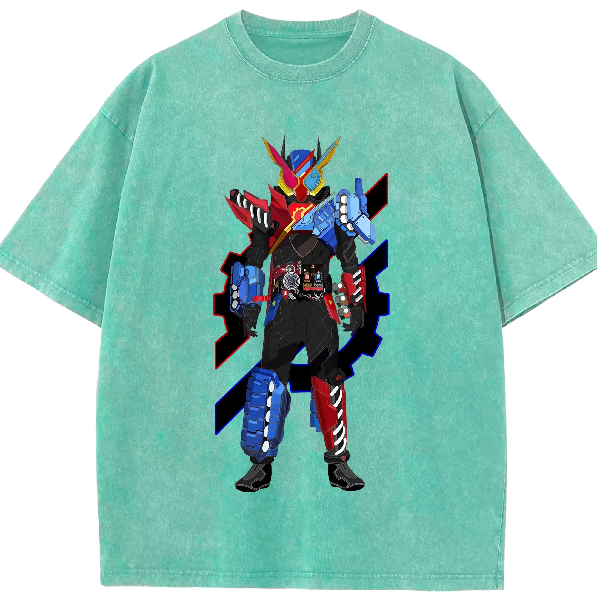 仮面ライダーV3 - 綿100% ヴィンテージ風 半袖Tシャツ ・ フロントプリント ・ 柔らか肌触り ・ 通気性 快適 ・ スポーツ カジュアル 外出用