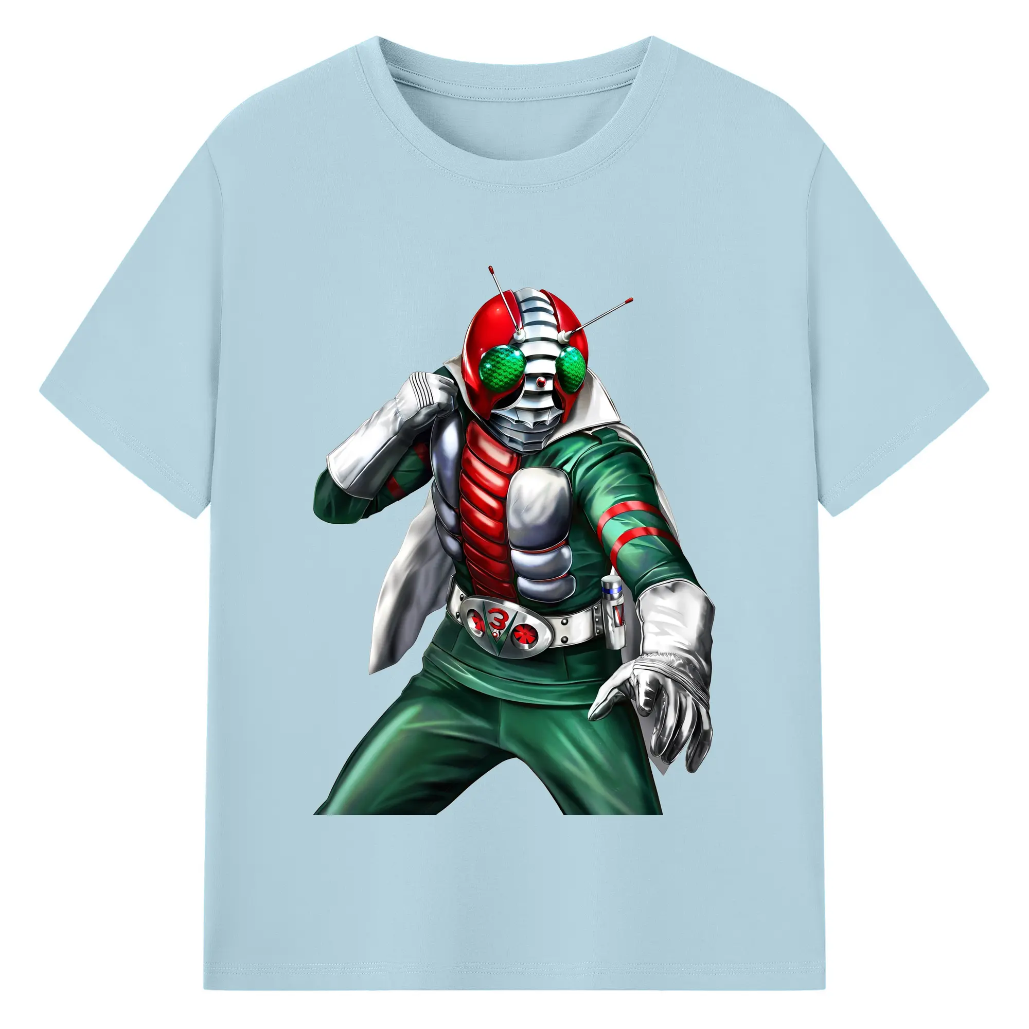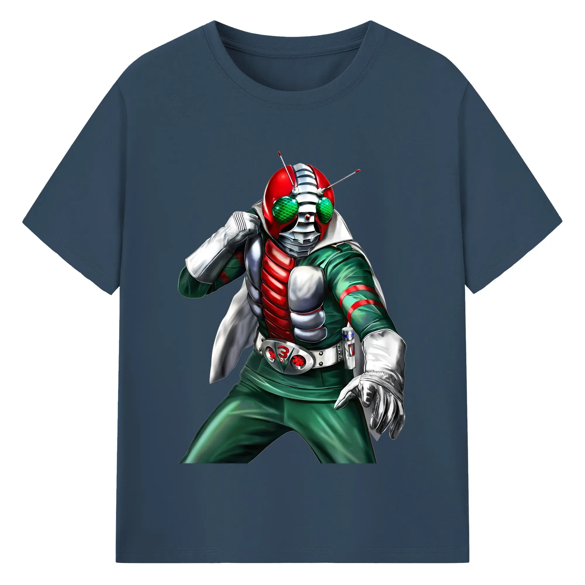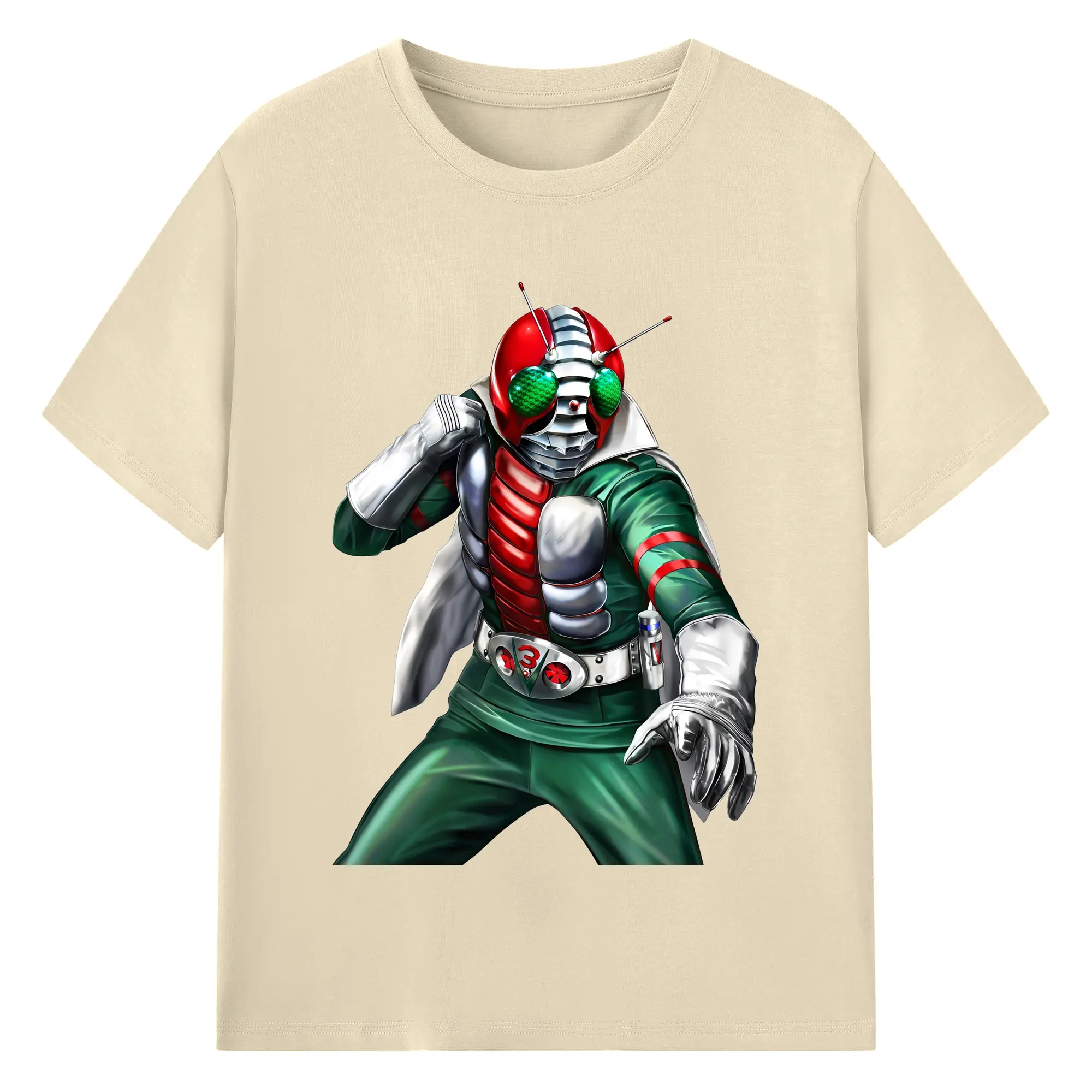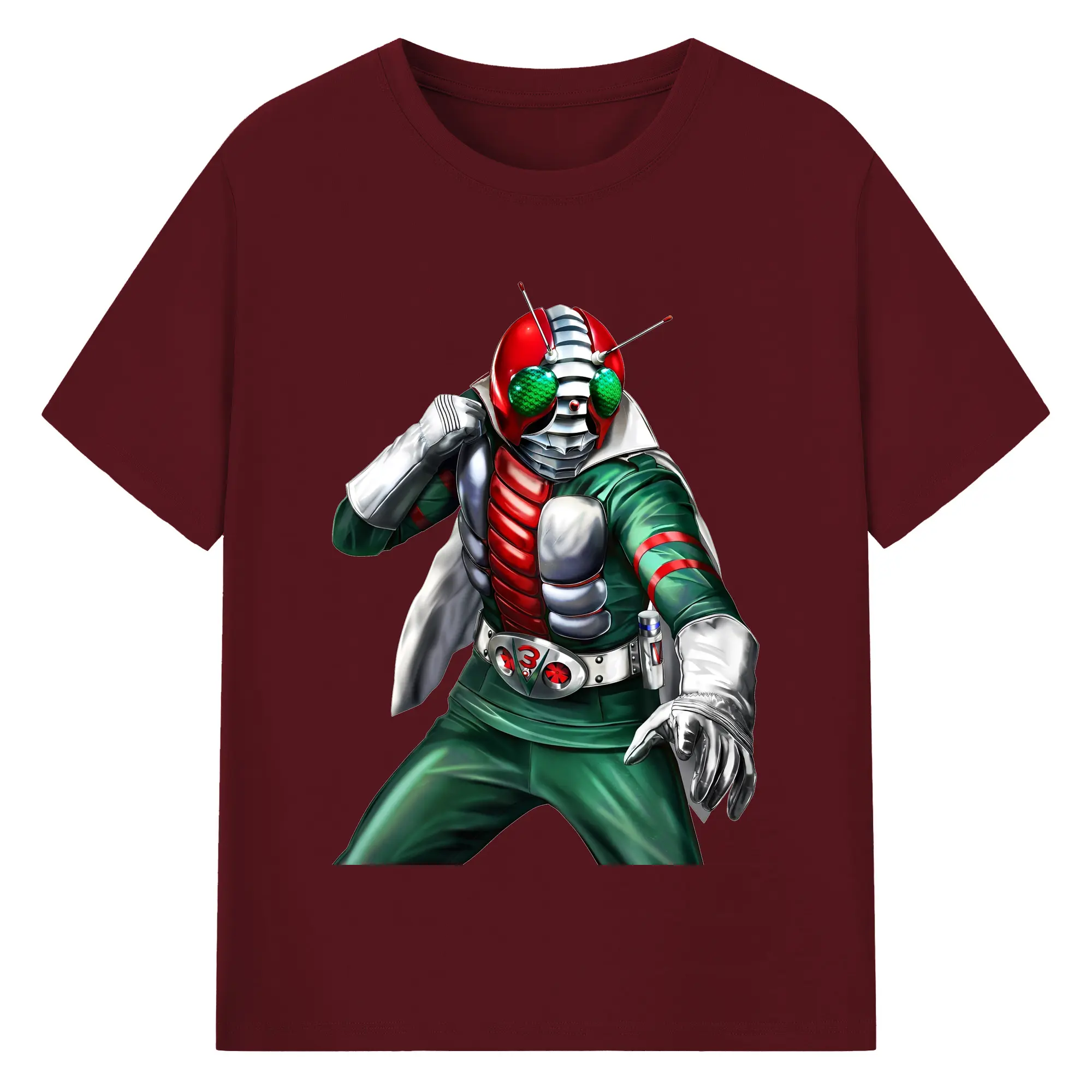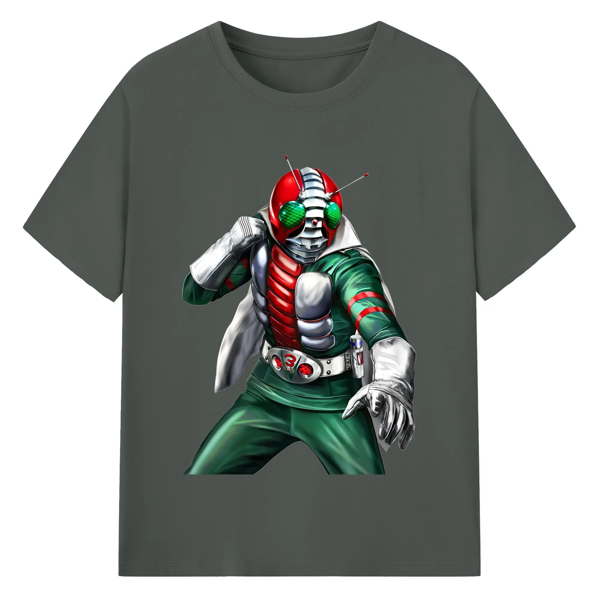 仮面ライダーV3 人気の必殺ポーズ - 綿100% ヴィンテージ風 半袖Tシャツ ・ フロントプリント ・ 柔らか肌触り ・ 通気性 快適 ・ スポーツ カジュアル 外出用