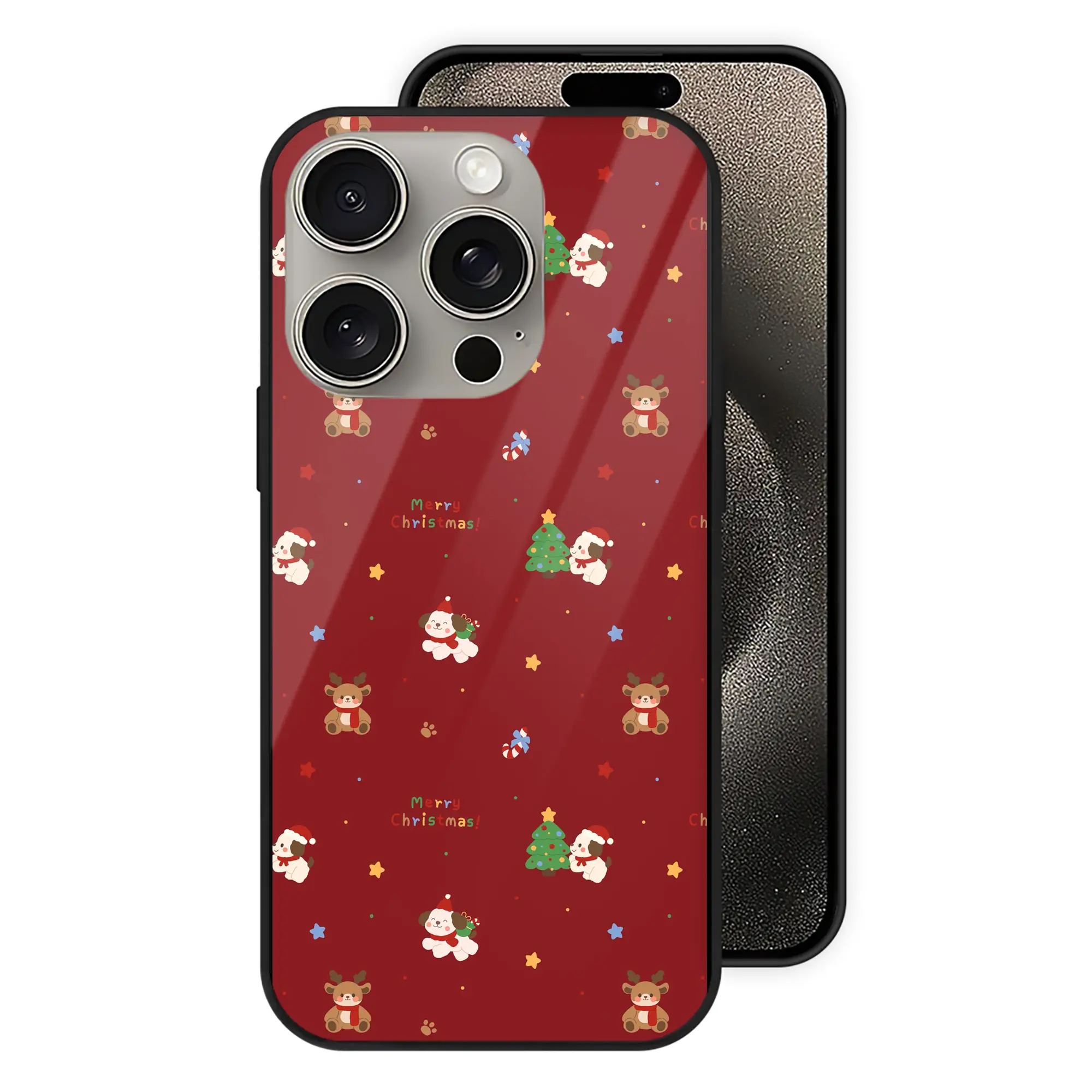 冬限定カラー|くすみレッド&フォレストグリーン - IPhone15Pro対応 ・ スマホケース ・ 背面ガラス ・ TPU+強化ガラス ・ 耐衝撃 ・ 黄変防止 ・ ワイヤレス充電対応 ・ 3D立体ボタン