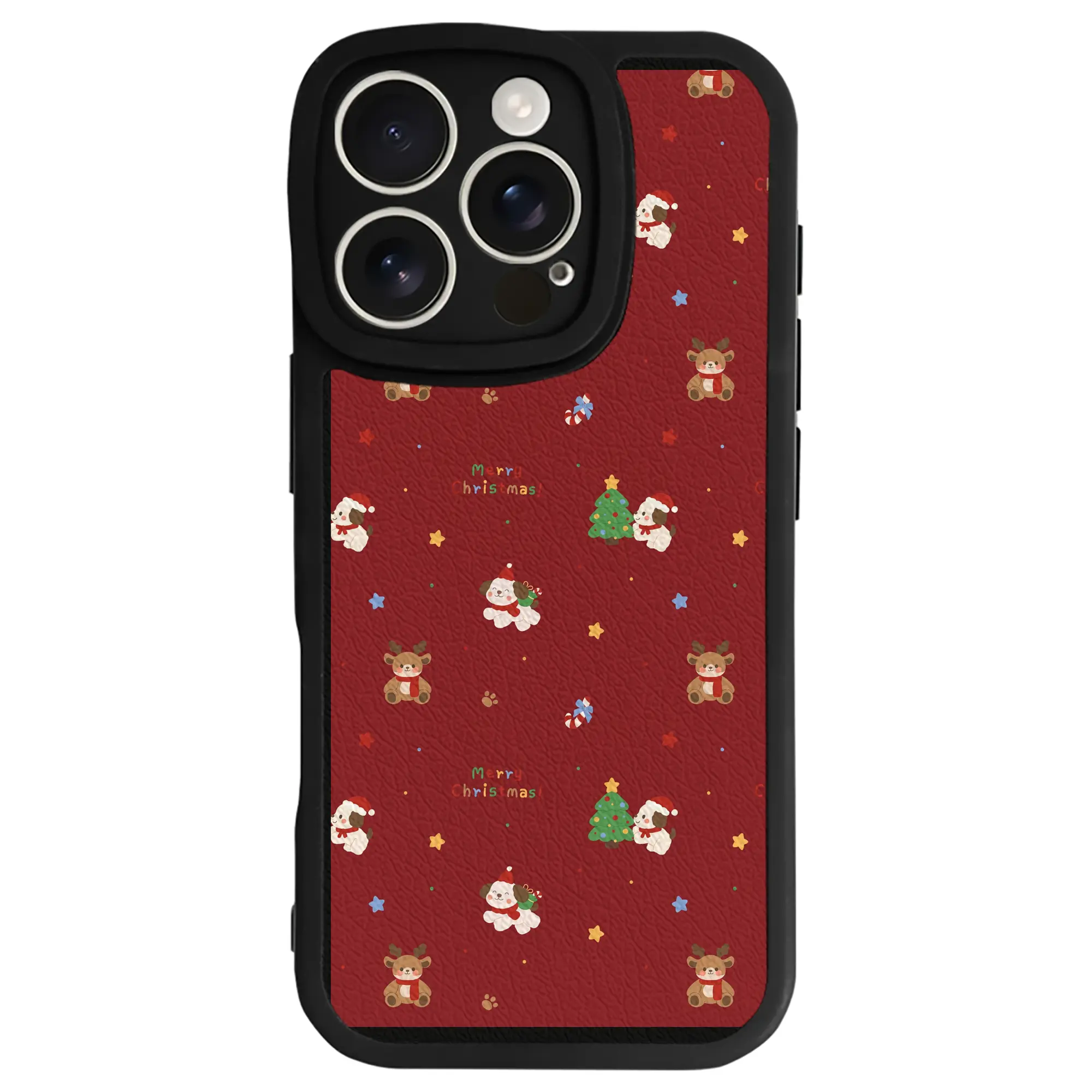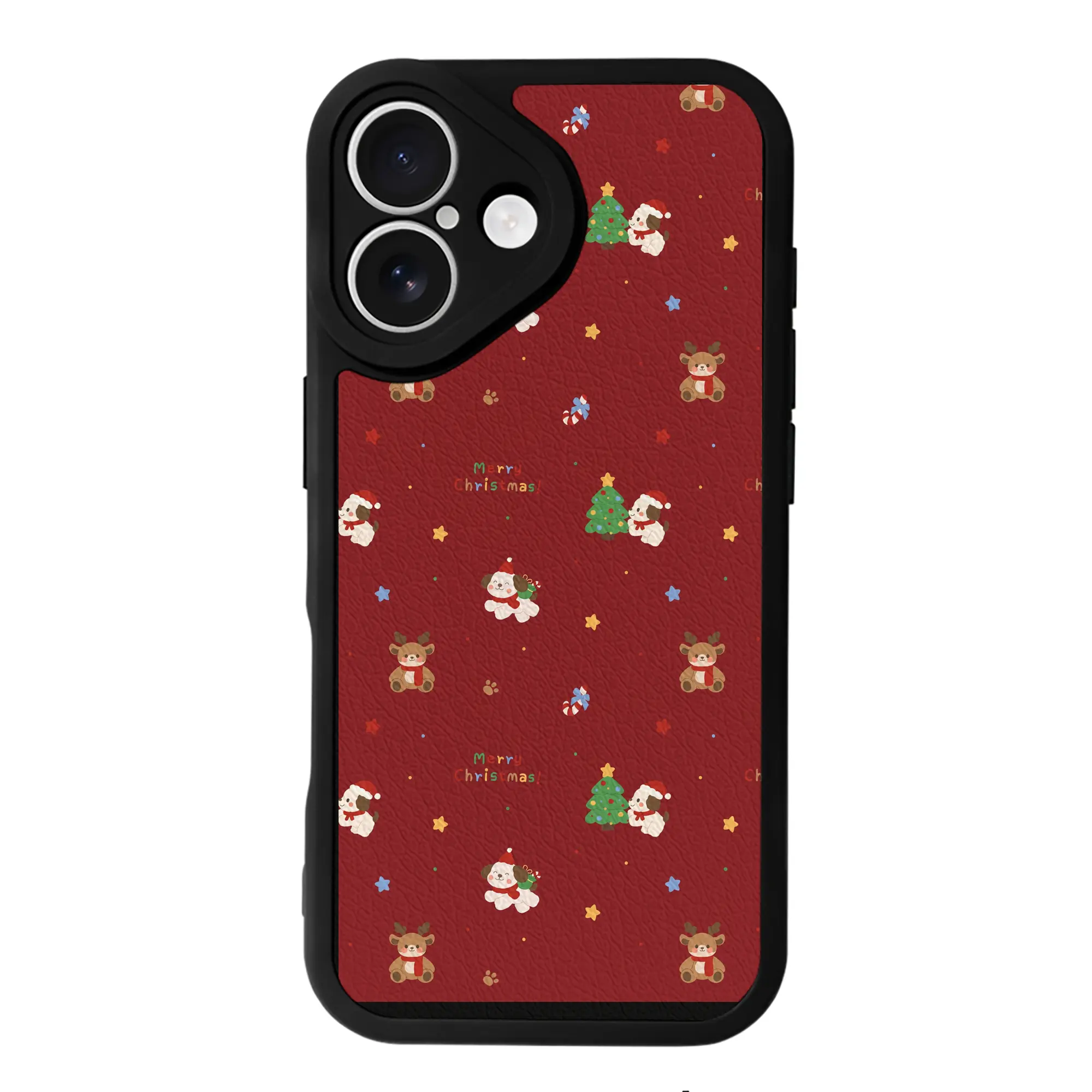 冬限定カラー|くすみレッド&フォレストグリーン - IPhone 16シリーズ対応 ・ シリコンスマホケース ・ レザー調 ・ 高精度フィット ・ 耐衝撃 ・ ワイヤレス充電対応 ・ 精密カット