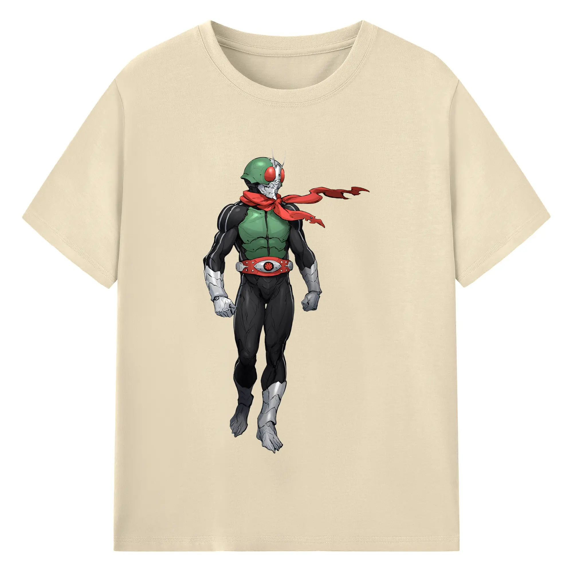 初代「仮面ライダー」/Kamen Rider 1 - 綿100% ヴィンテージ風 半袖Tシャツ ・ フロントプリント ・ 柔らか肌触り ・ 通気性 快適 ・ スポーツ カジュアル 外出用