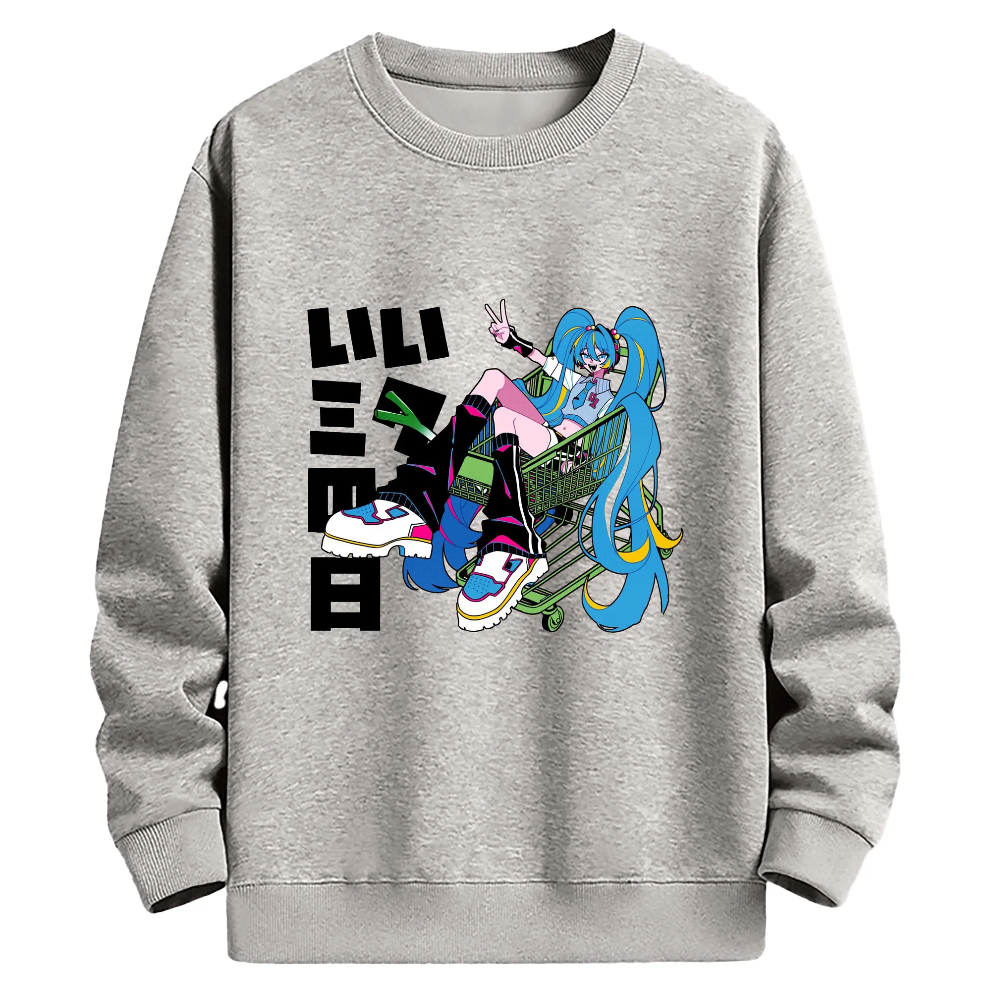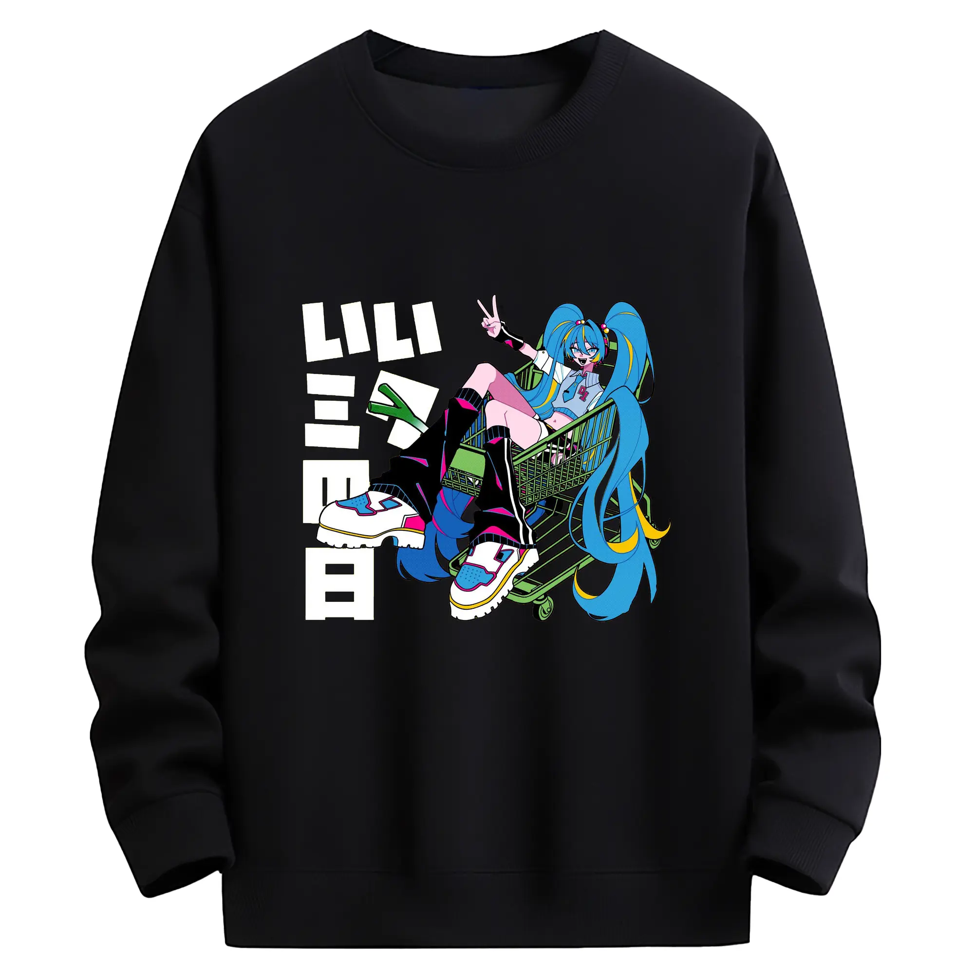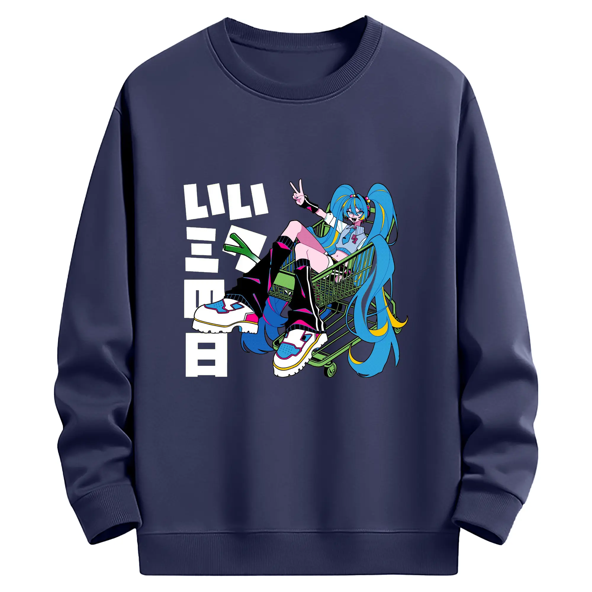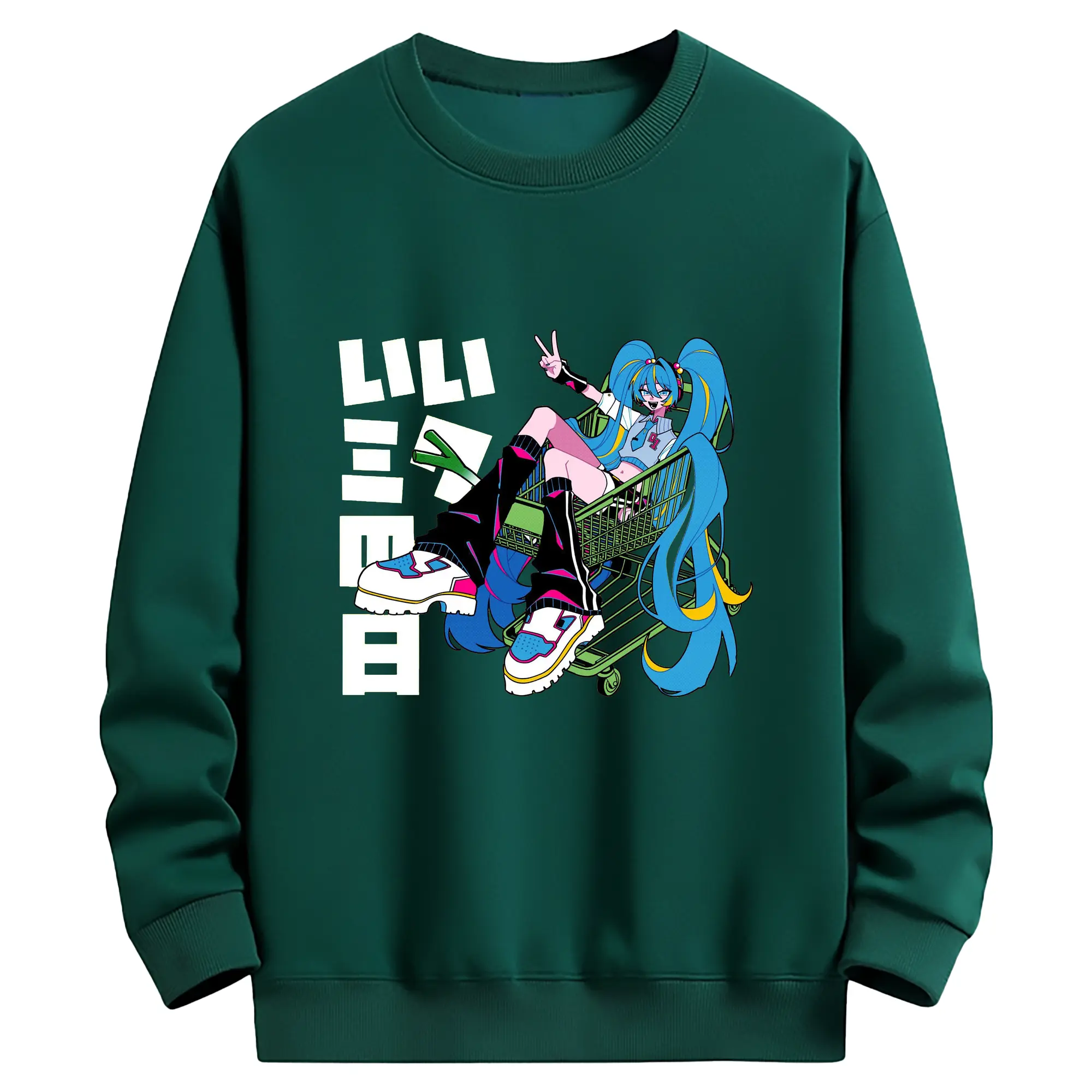 パッチワーク風バーチャル歌手GUMIファン専用 - 高品質 クルーネック スウェット ・ コットン59% ポリエステル41% ・ ユニセックス 長袖 トレーナー ・ カジュアル デイリー スポーツ 散歩用