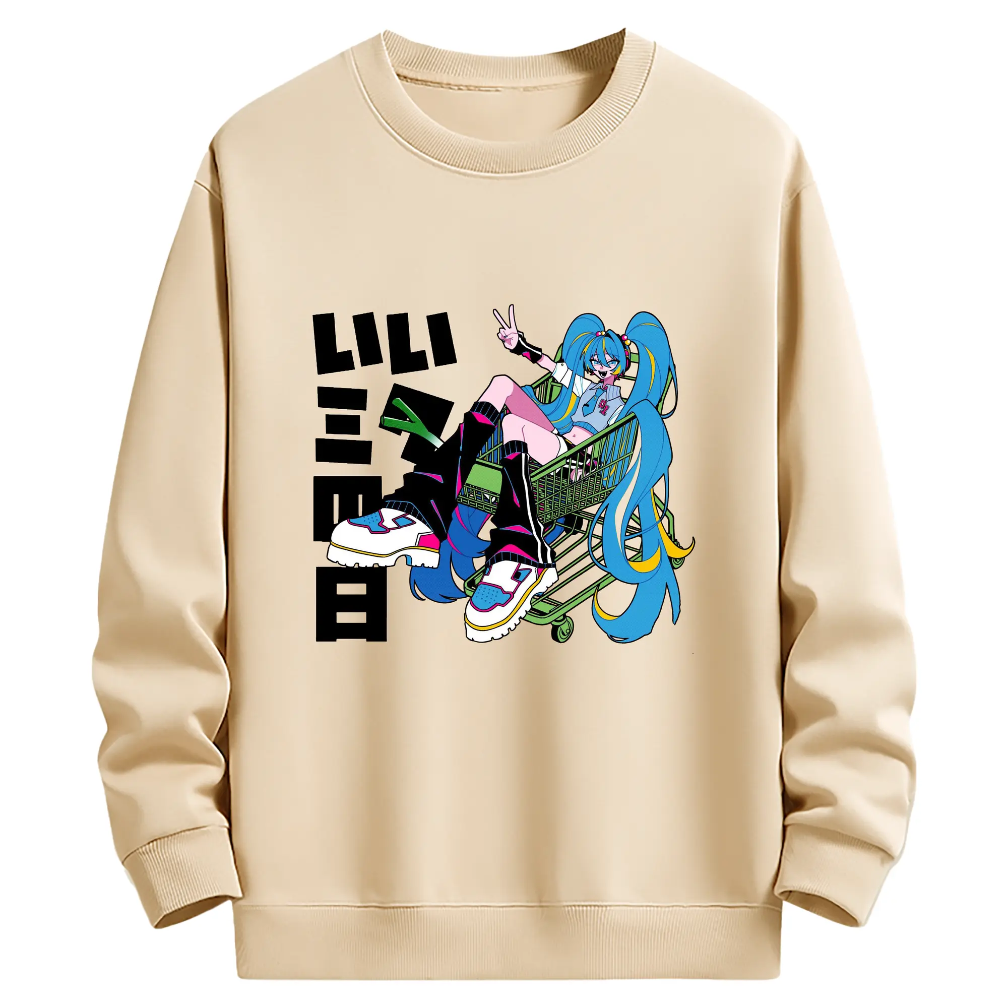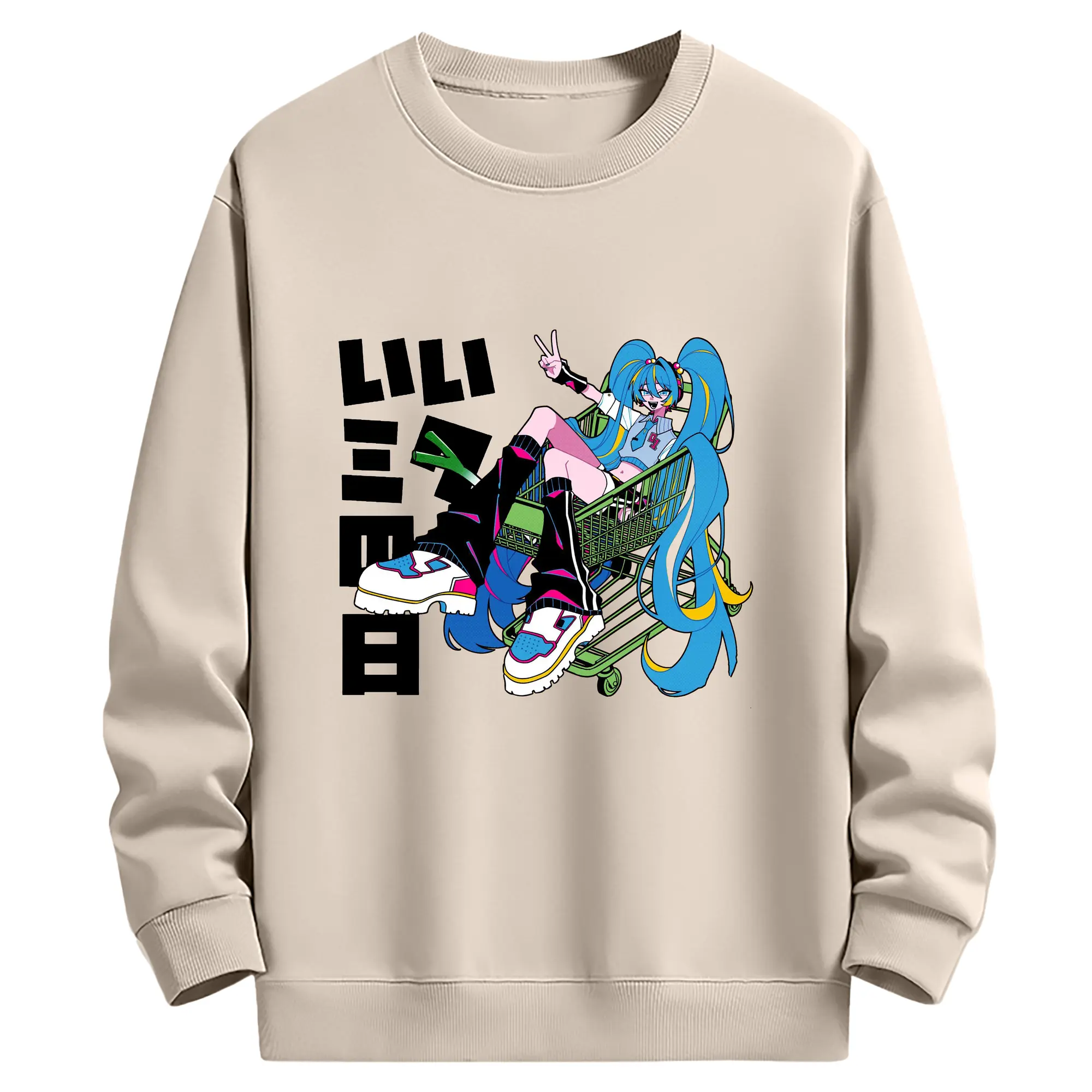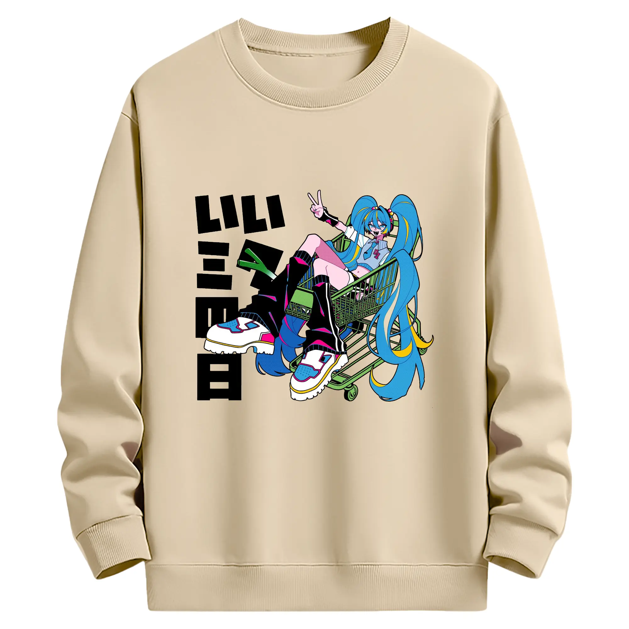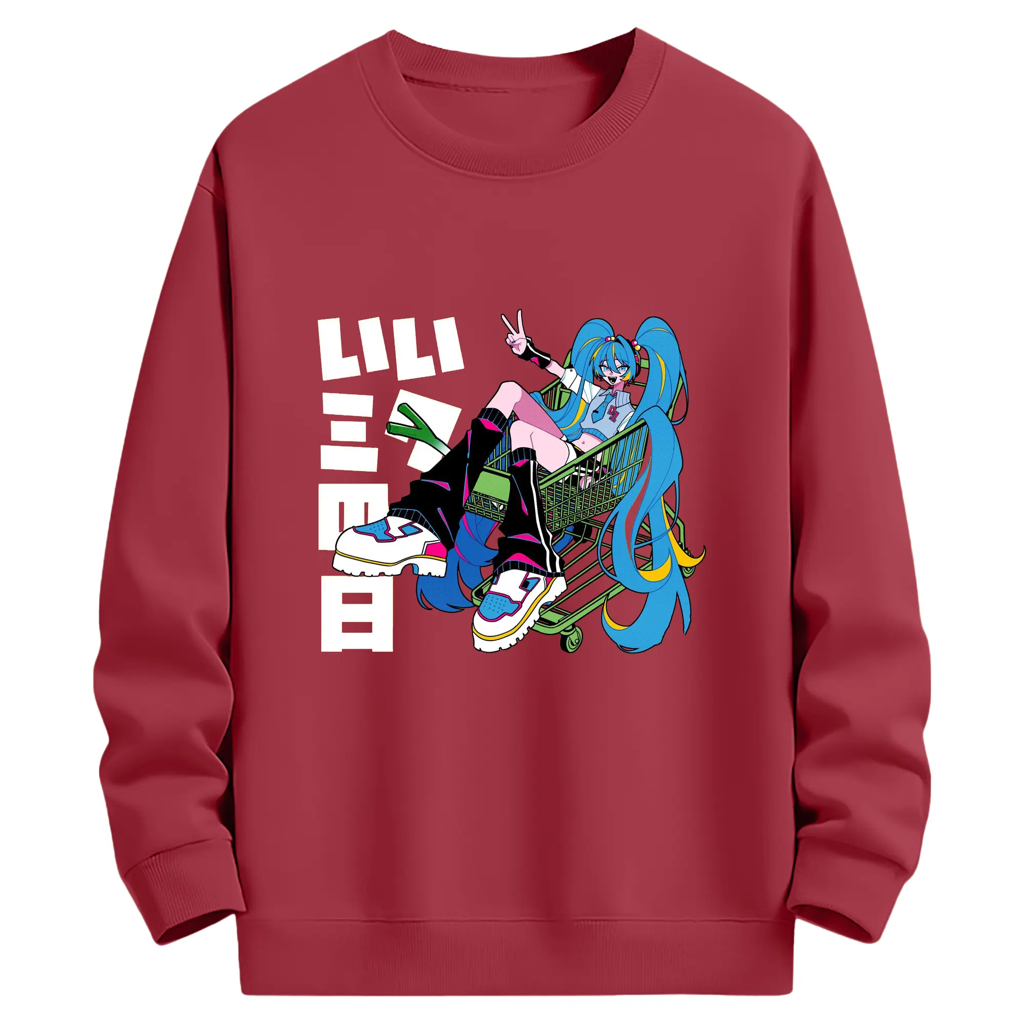 パッチワーク風バーチャル歌手GUMIファン専用 - 高品質 クルーネック スウェット ・ コットン59% ポリエステル41% ・ ユニセックス 長袖 トレーナー ・ カジュアル デイリー スポーツ 散歩用