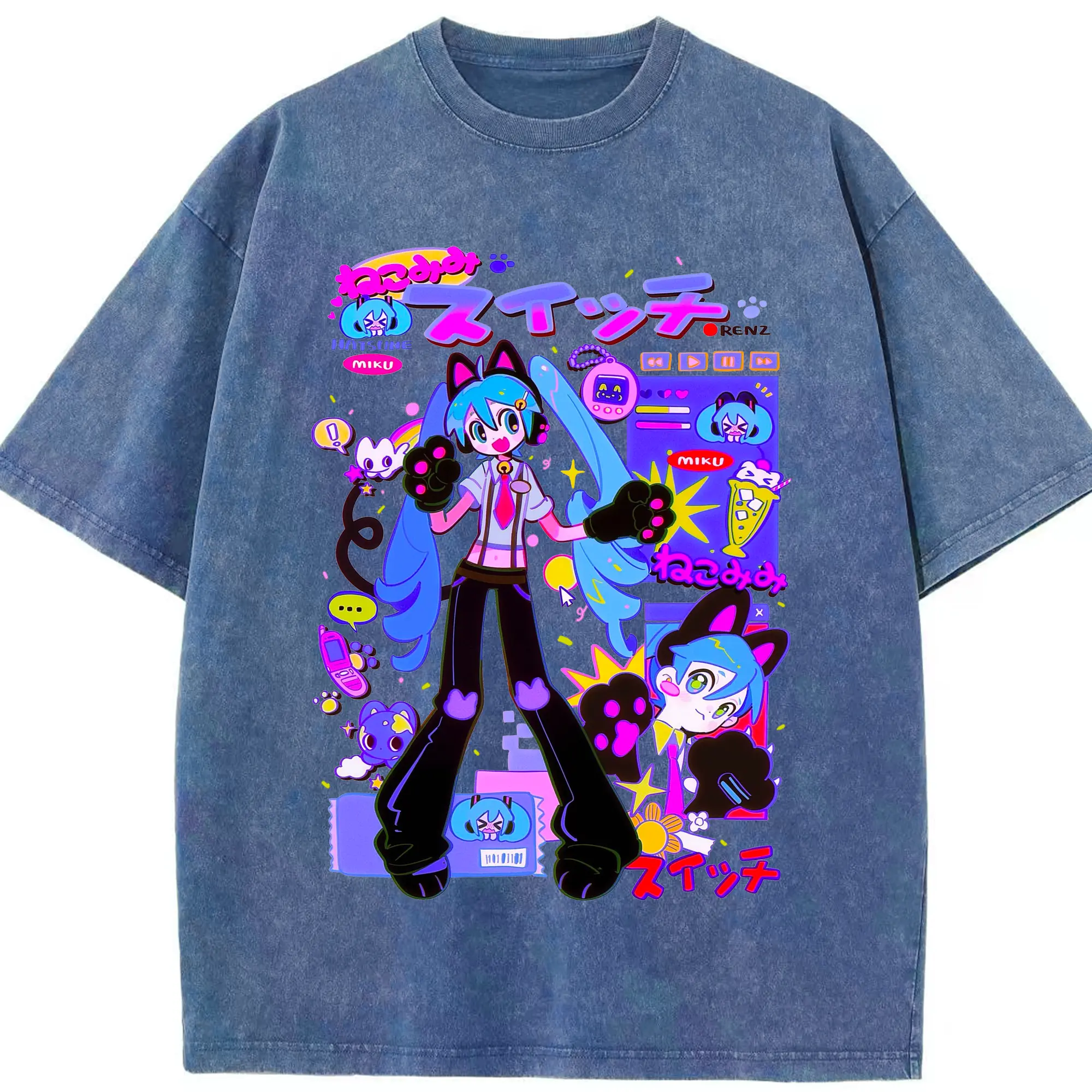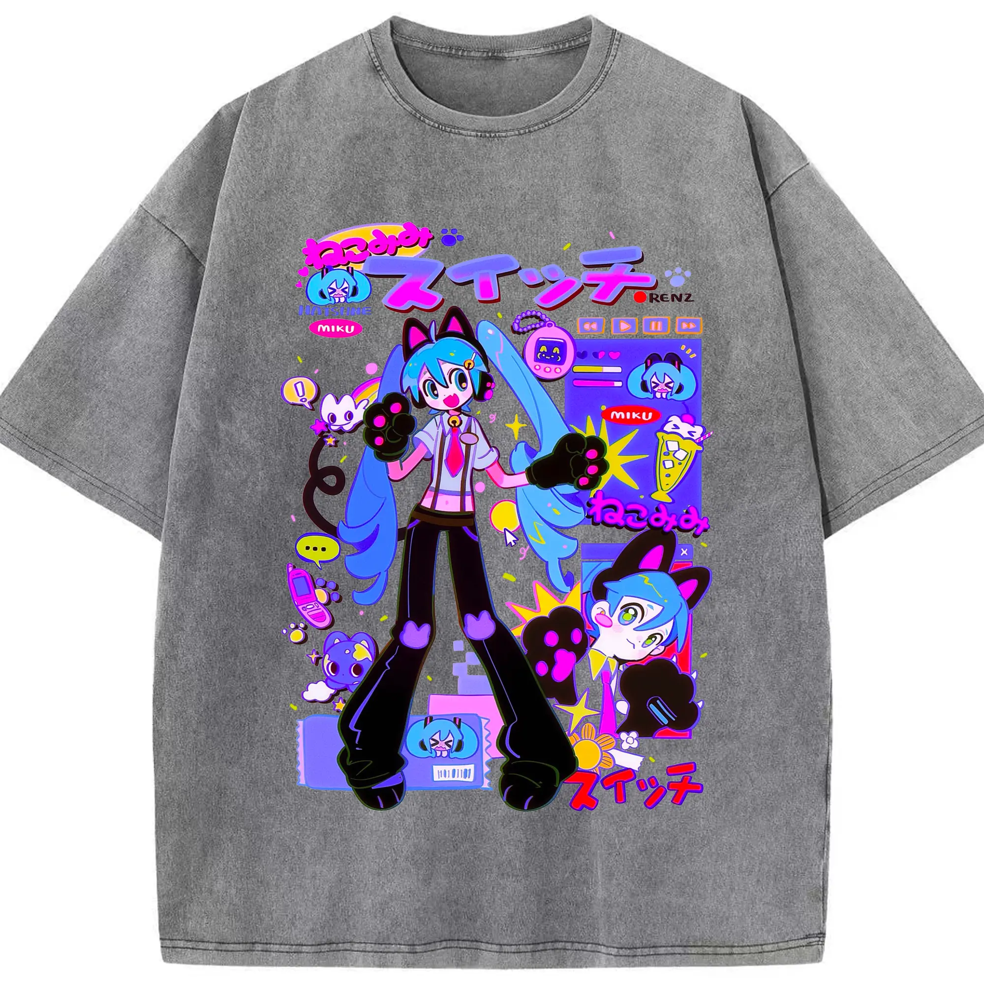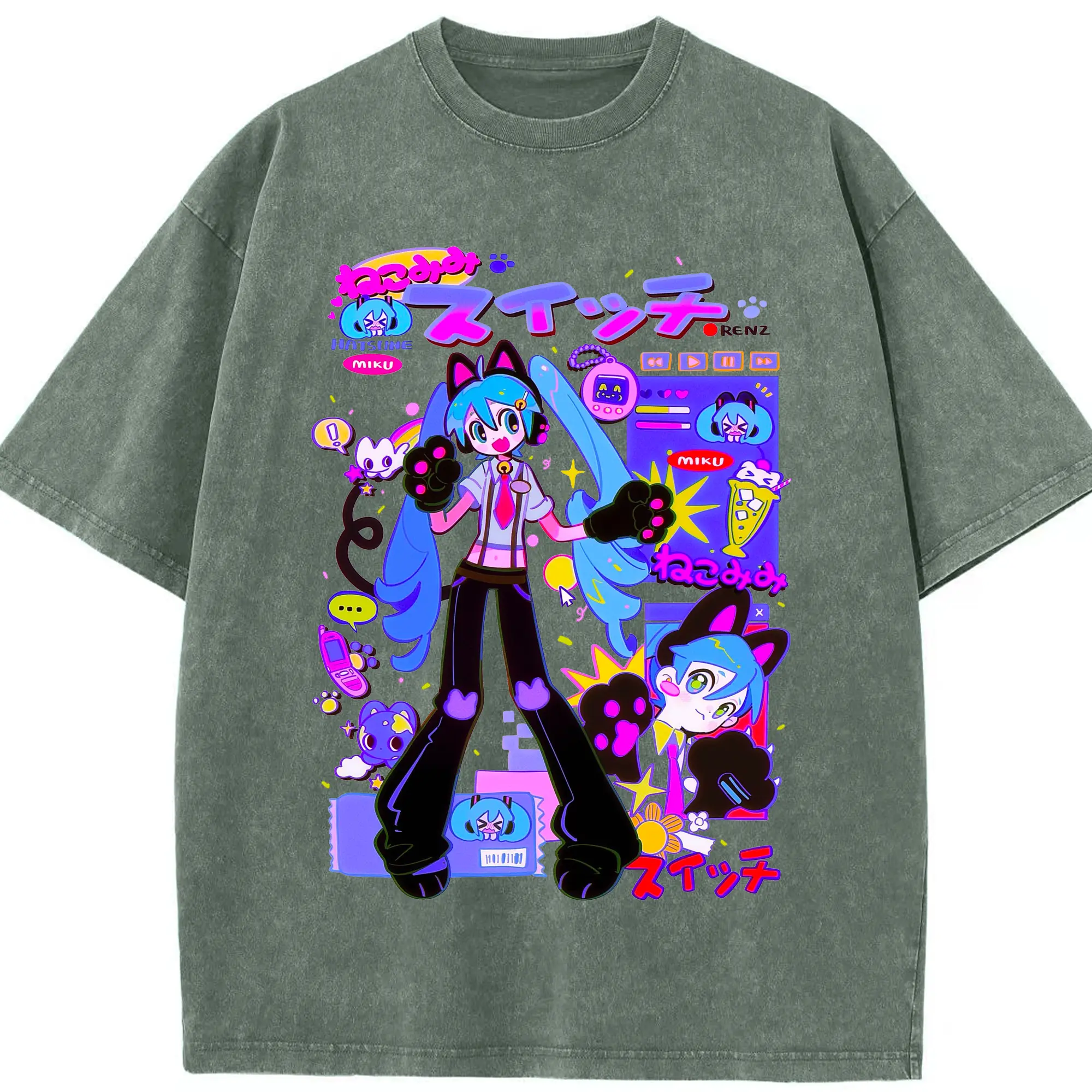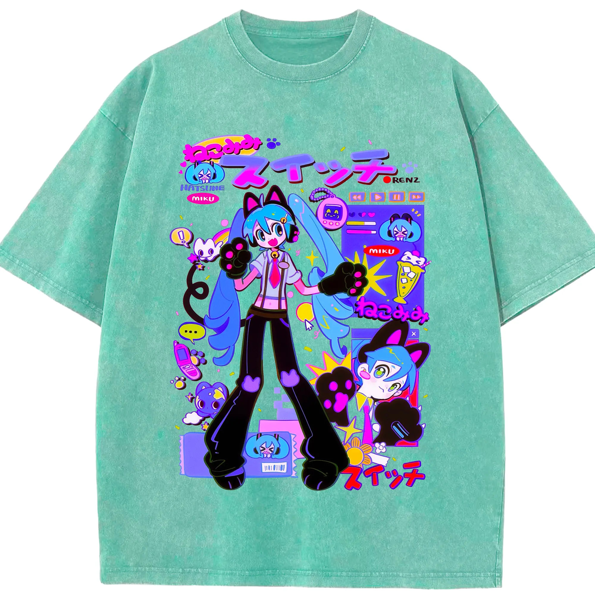 初音ミク 面白いデザイン - 綿100% ヴィンテージ風 半袖Tシャツ ・ フロントプリント ・ 柔らか肌触り ・ 通気性 快適 ・ スポーツ カジュアル 外出用