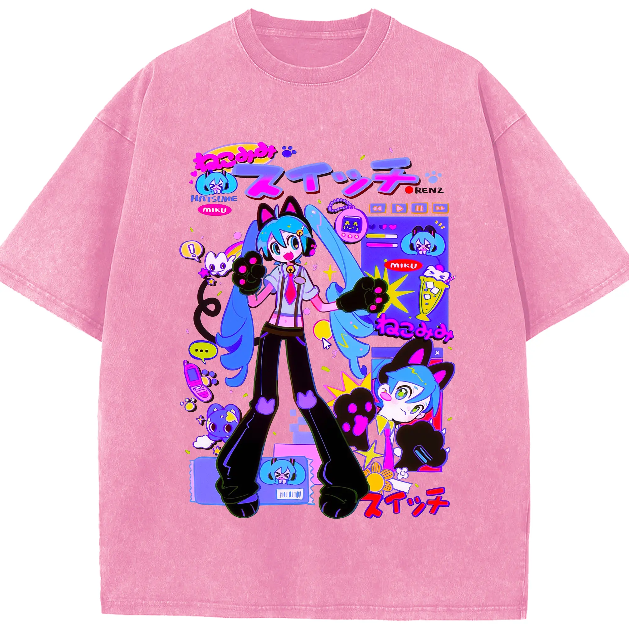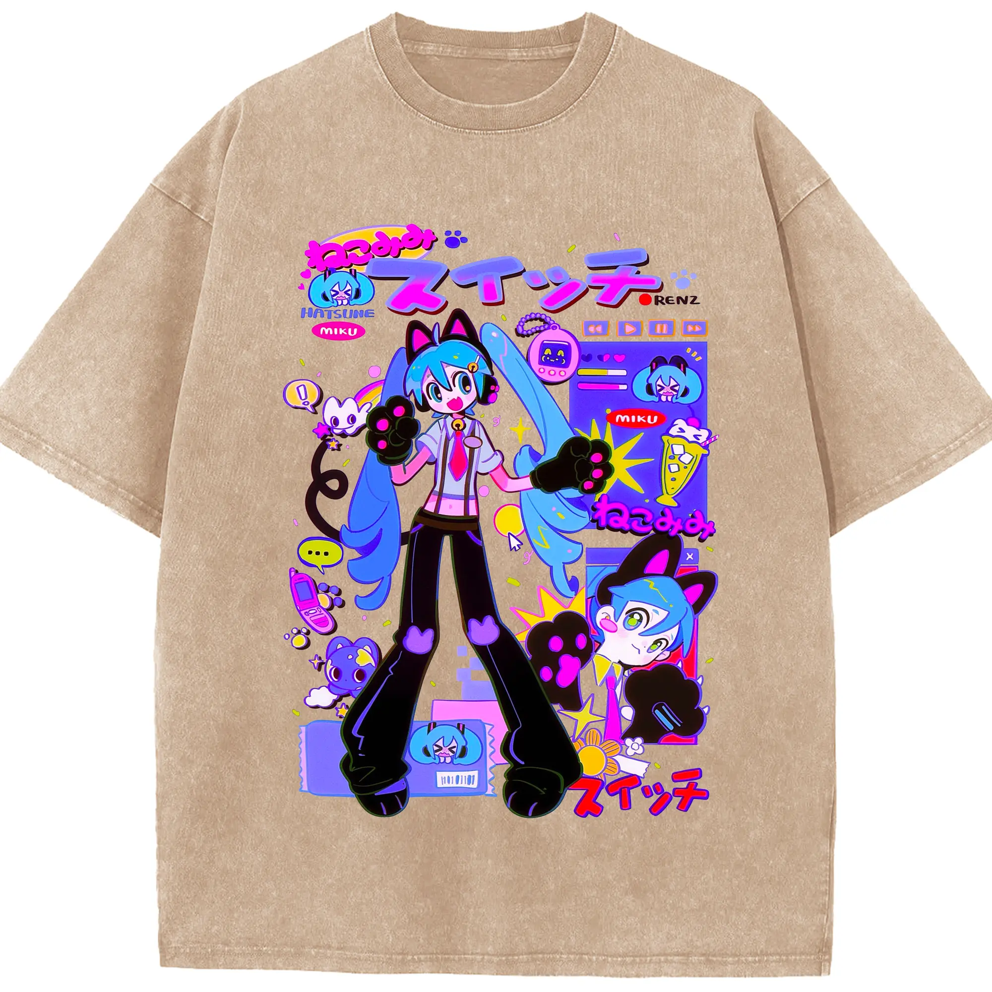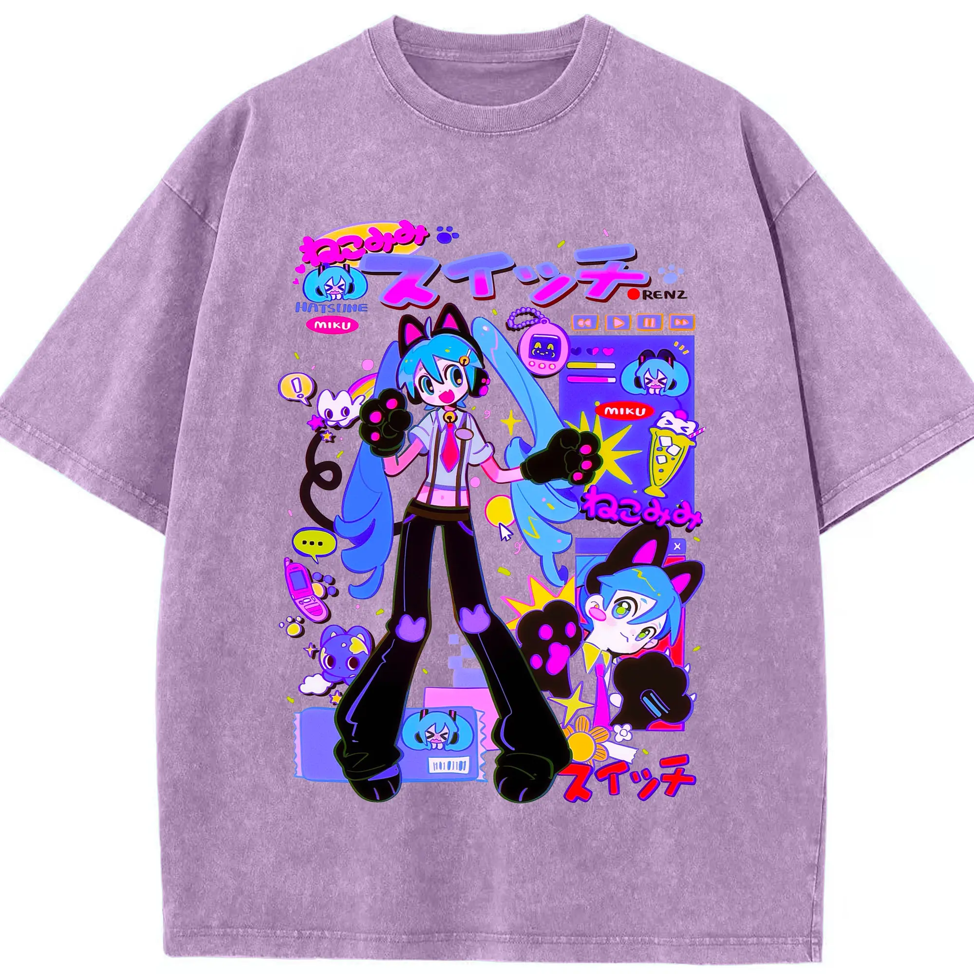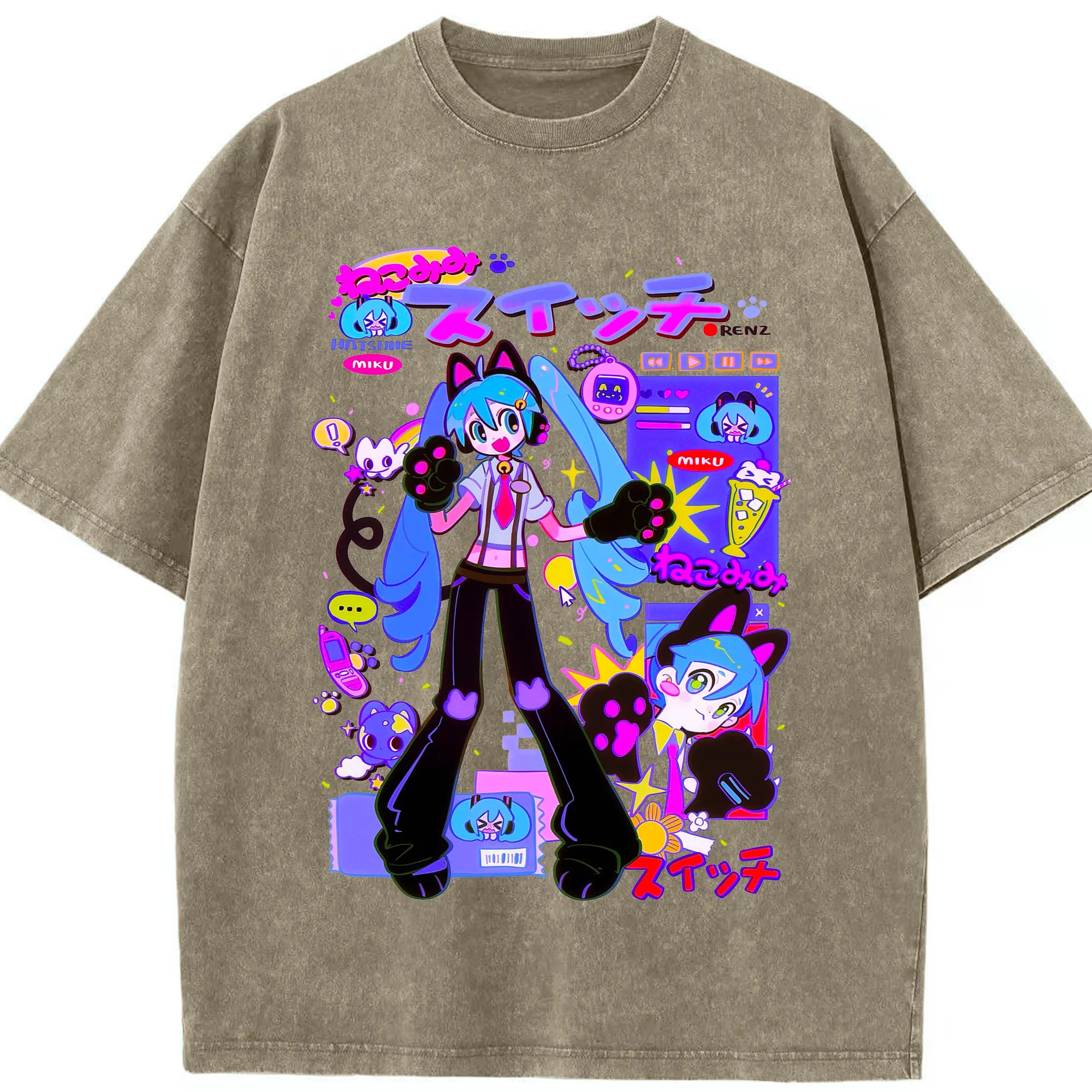 初音ミク 面白いデザイン - 綿100% ヴィンテージ風 半袖Tシャツ ・ フロントプリント ・ 柔らか肌触り ・ 通気性 快適 ・ スポーツ カジュアル 外出用