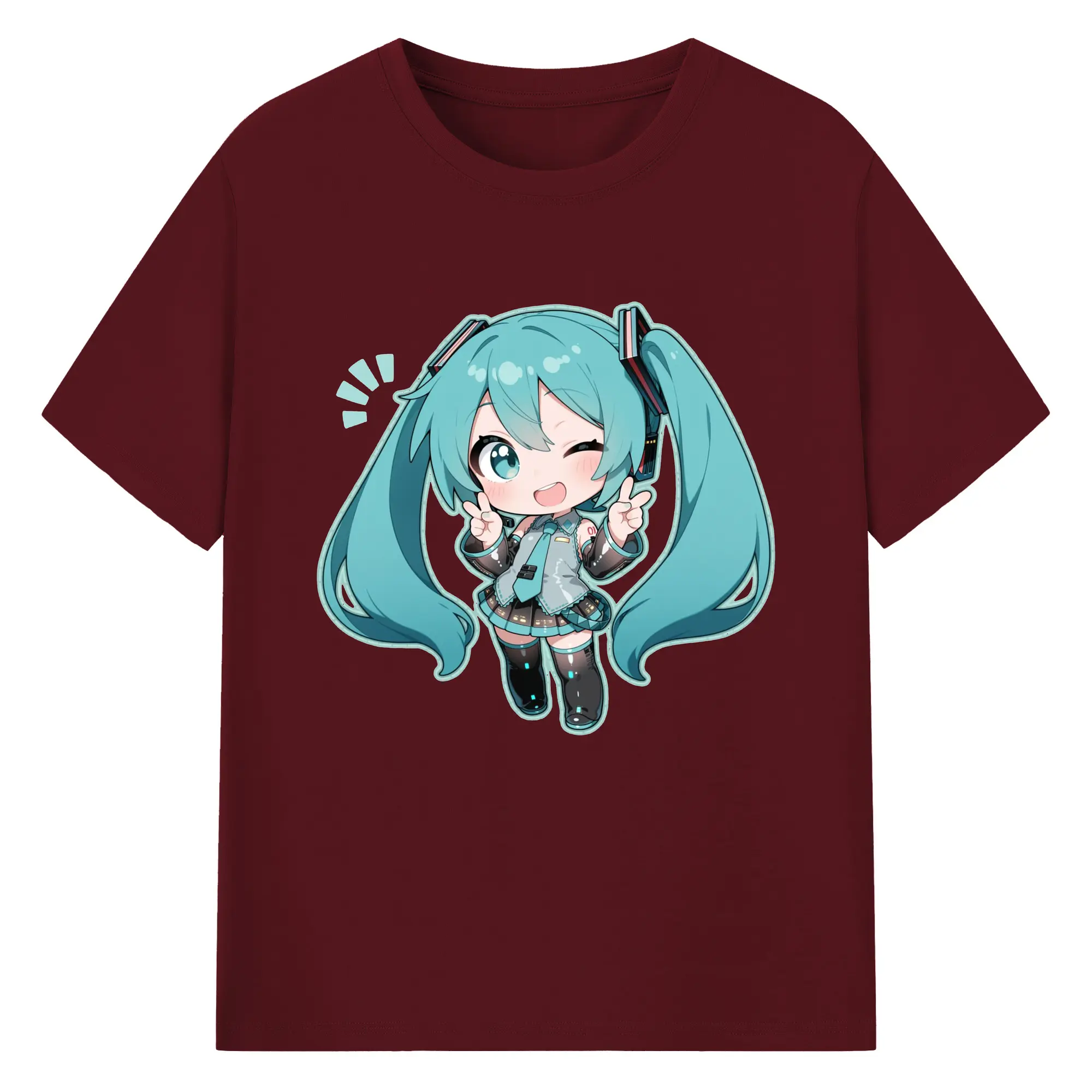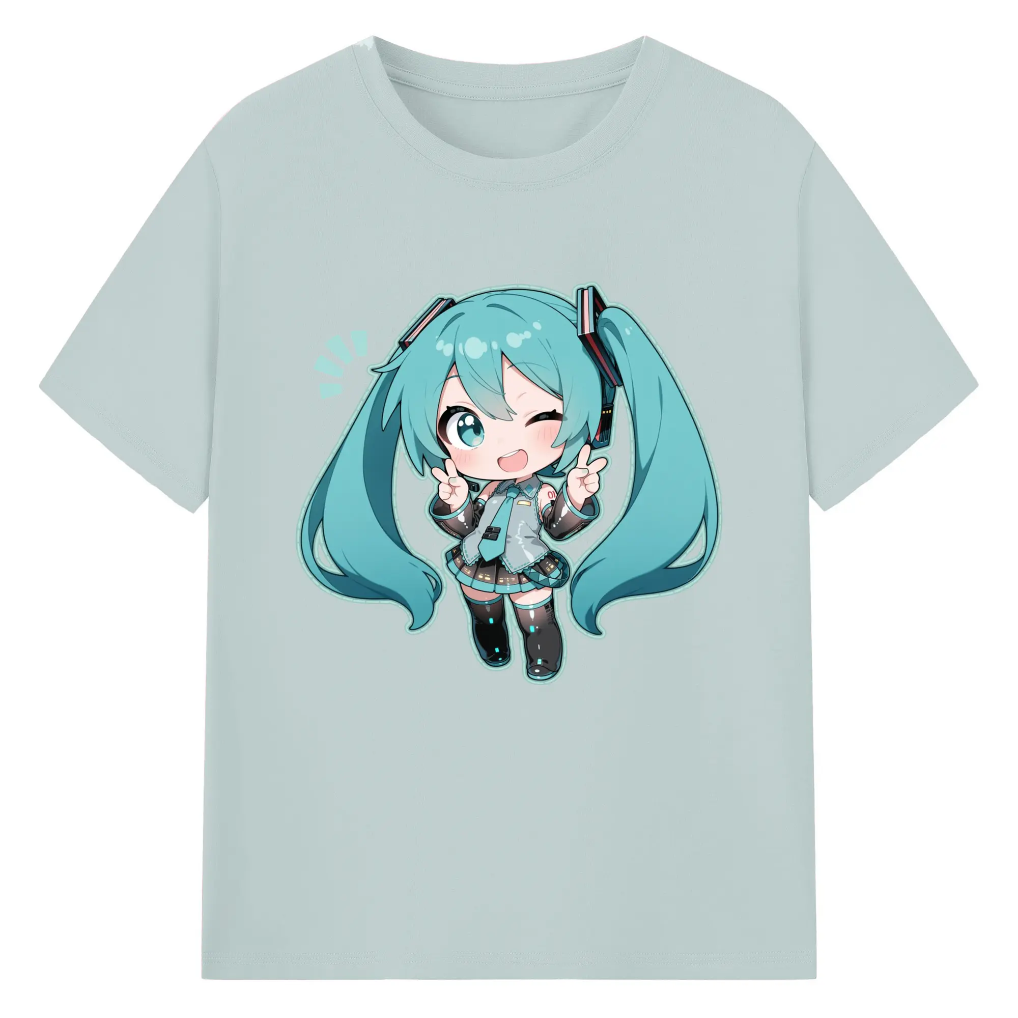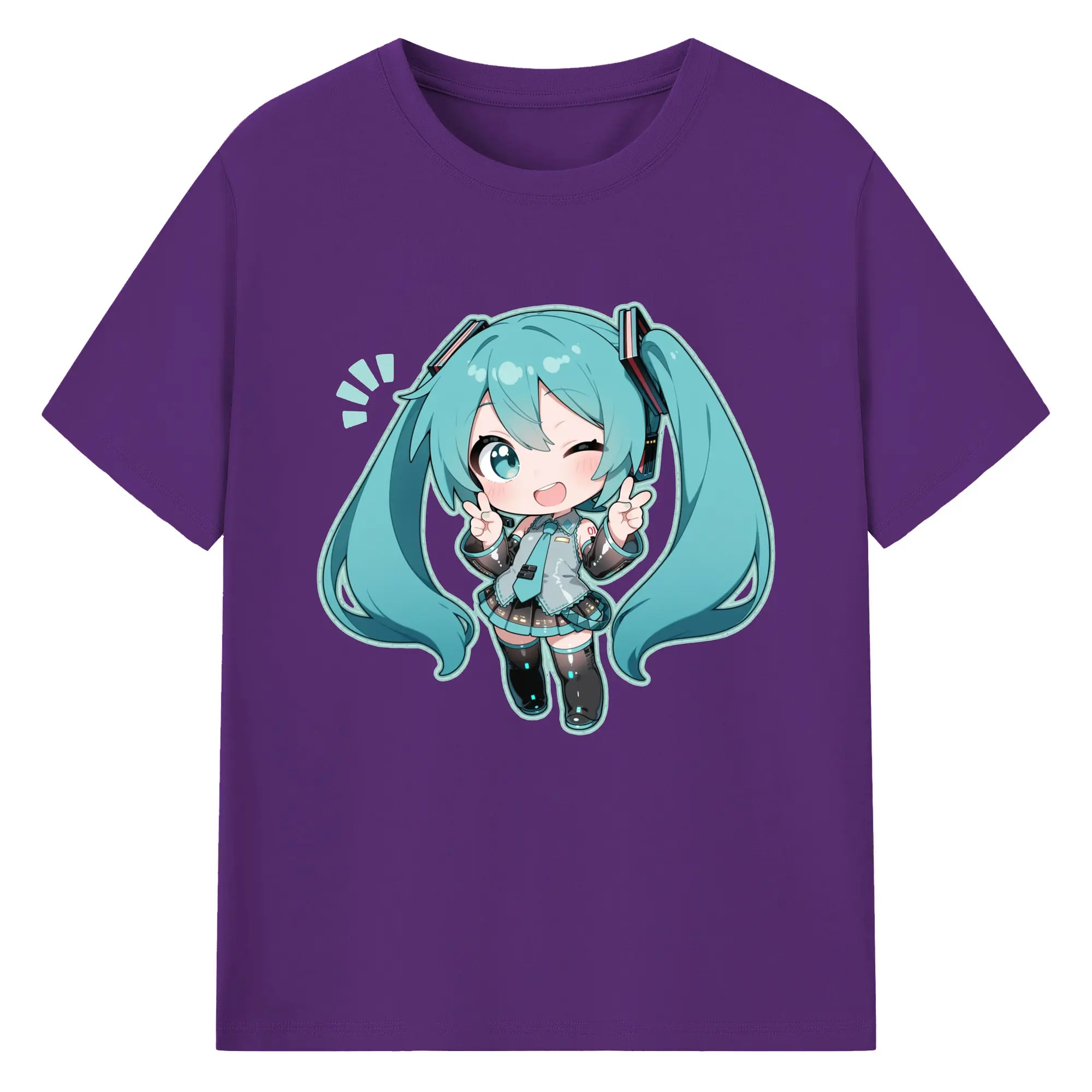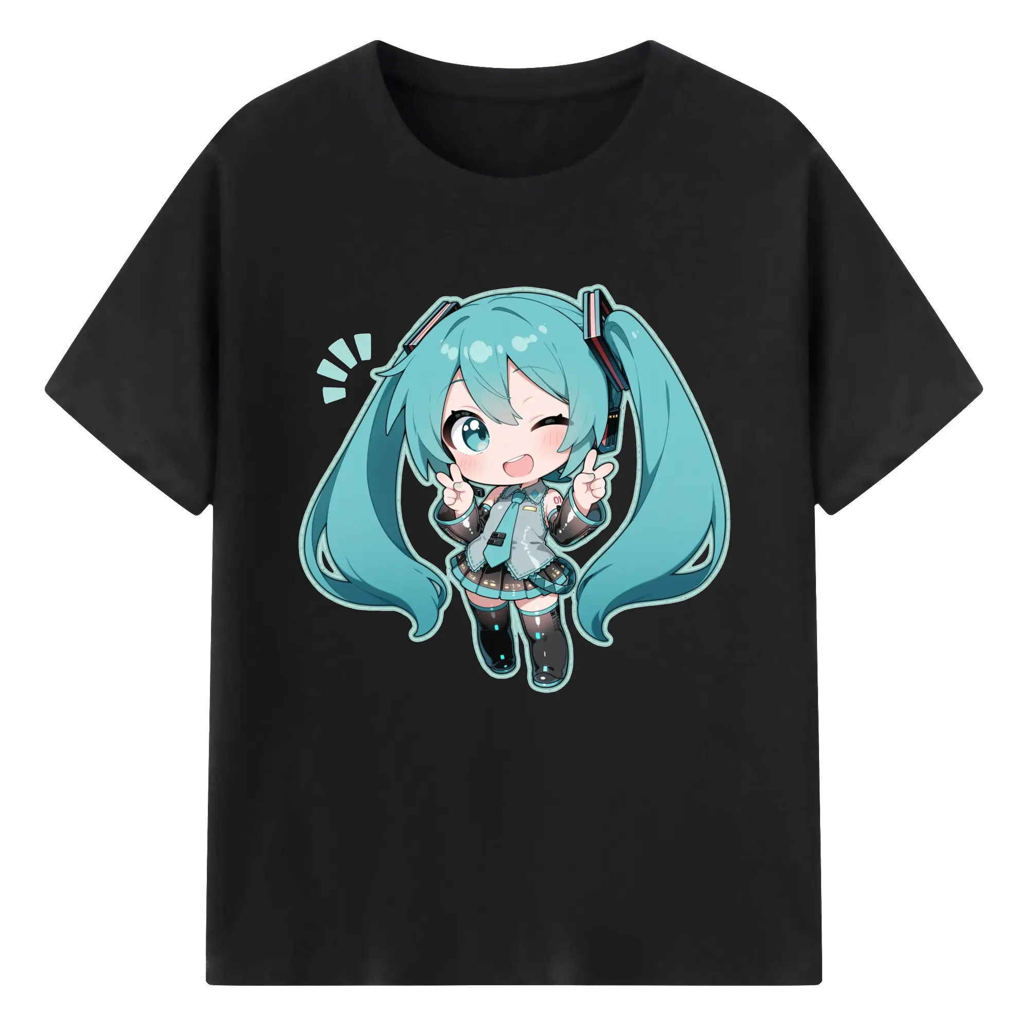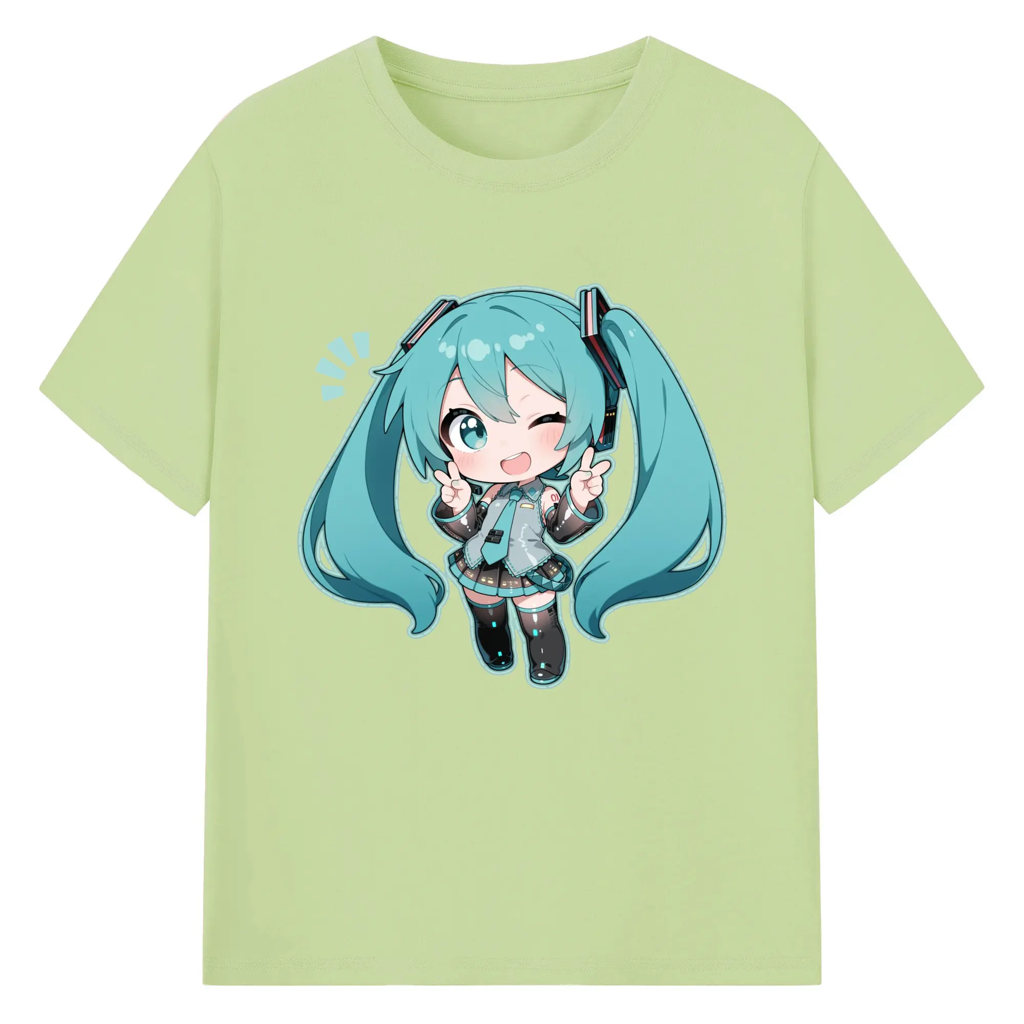 初音ミク アニメ 二次元 かわいい - 綿100% ヴィンテージ風 半袖Tシャツ ・ フロントプリント ・ 柔らか肌触り ・ 通気性 快適 ・ スポーツ カジュアル 外出用