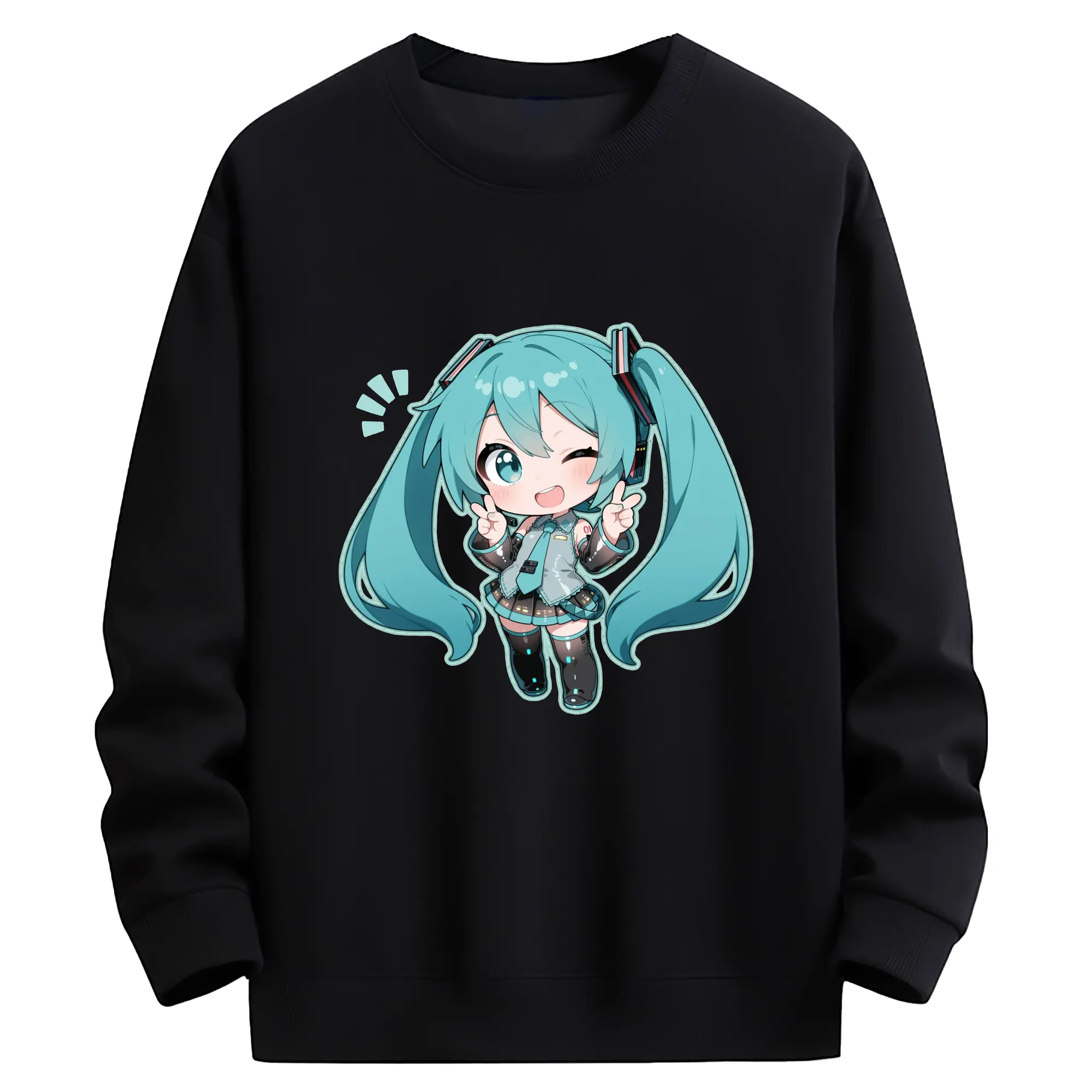 初音ミク アニメ 二次元 かわいい - 綿100% 半袖Tシャツ ・ フロントプリント ・ 快適 通気性 ・ 日常使い 散歩 スポーツ用