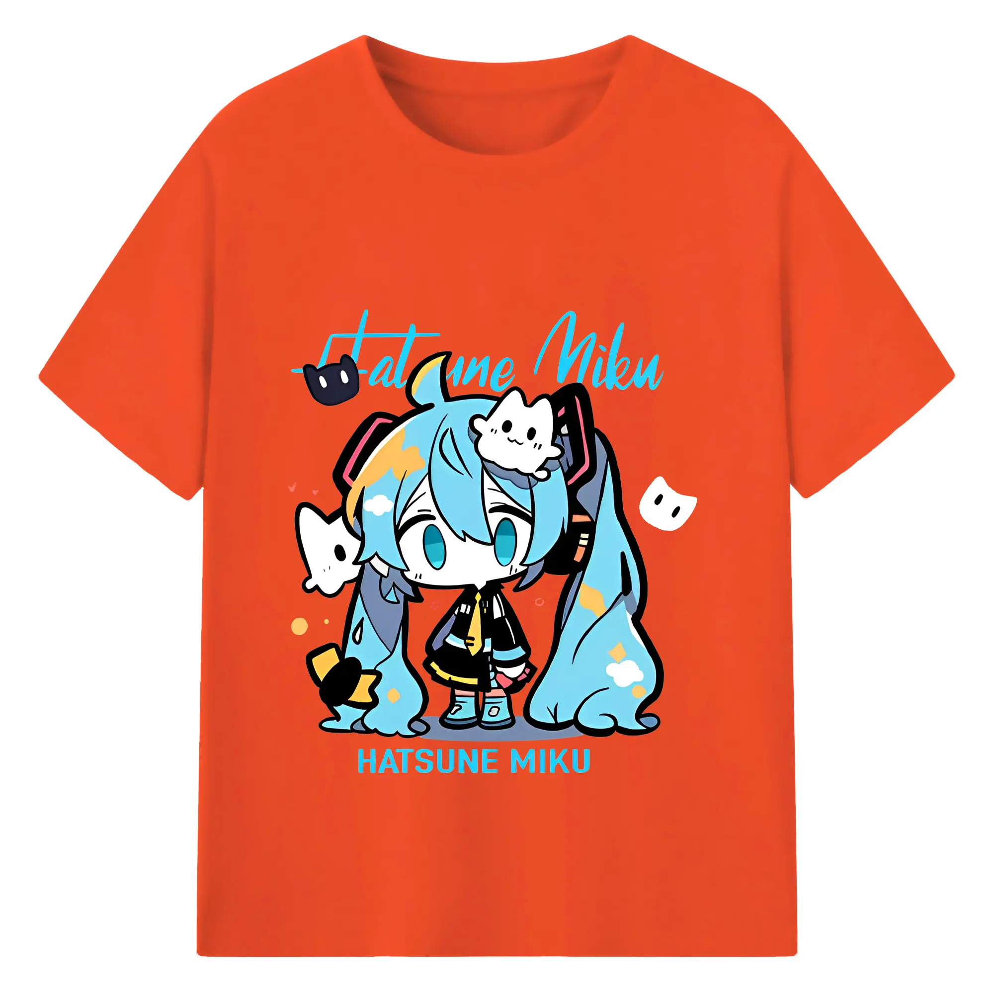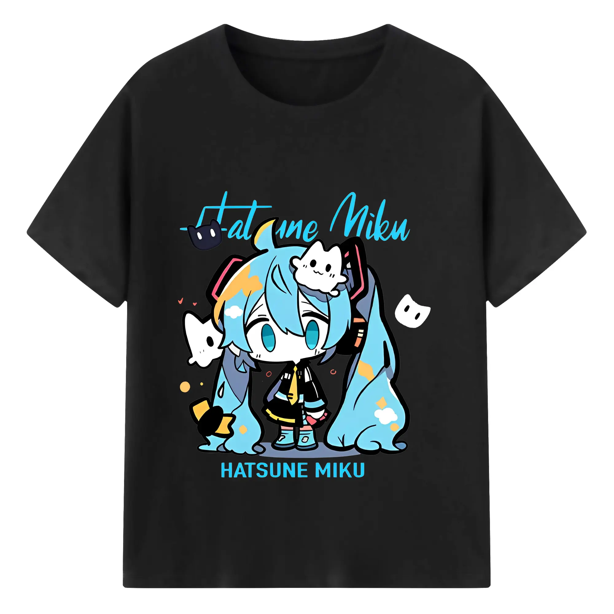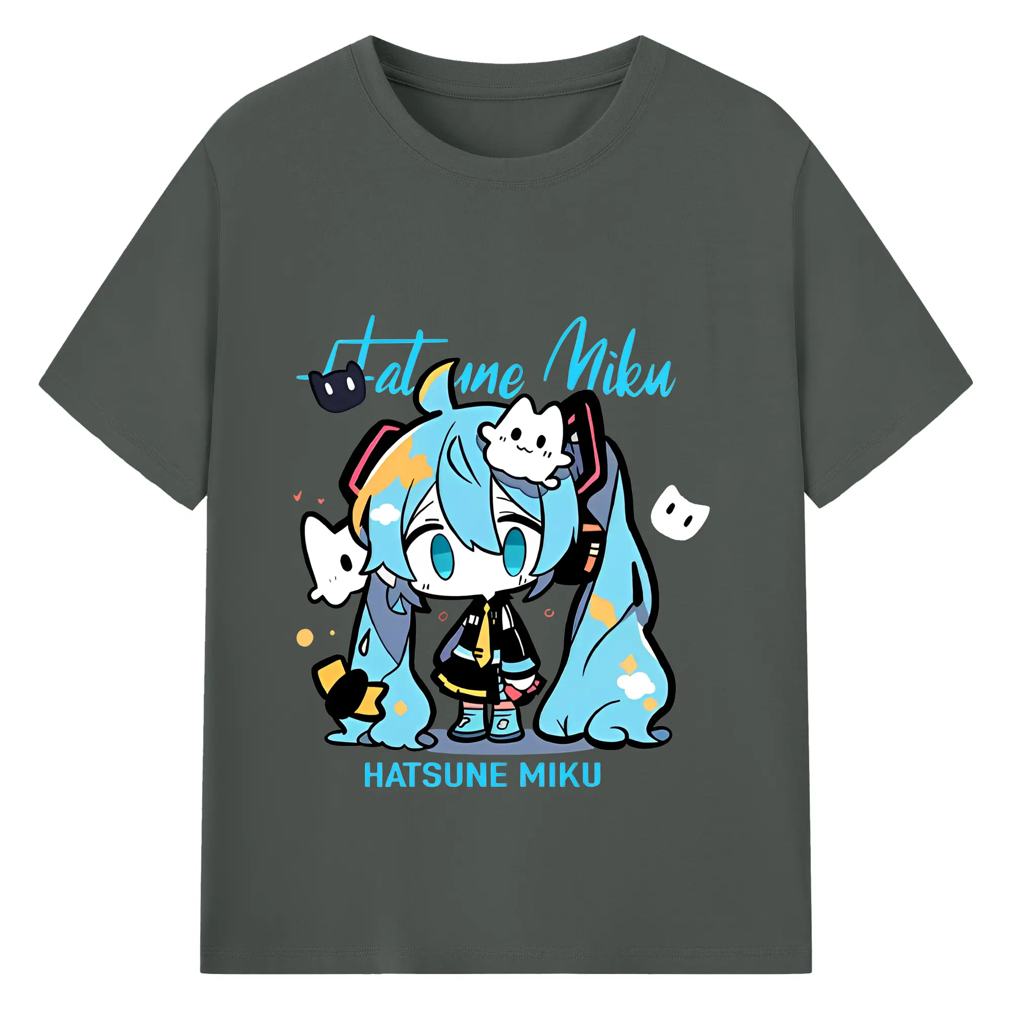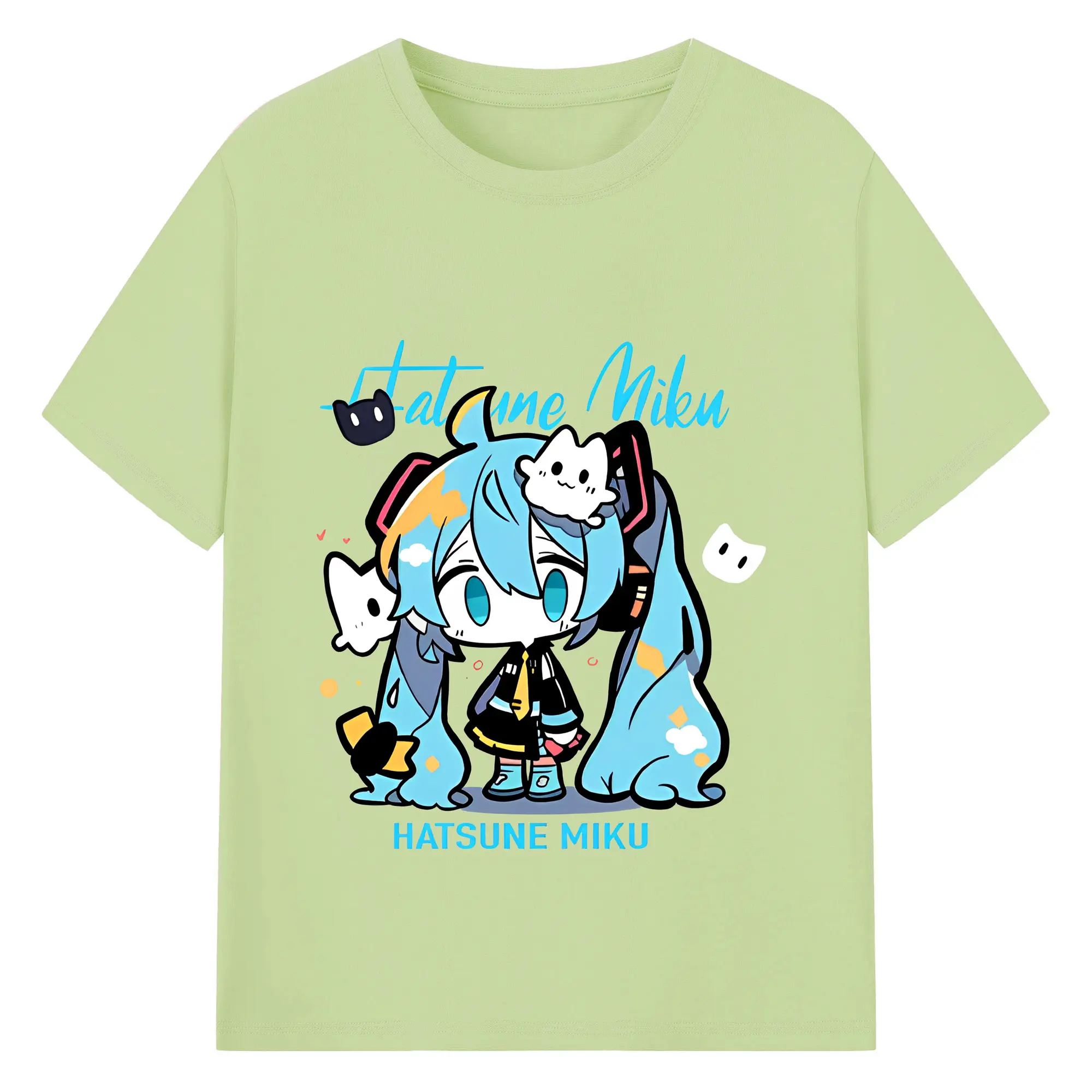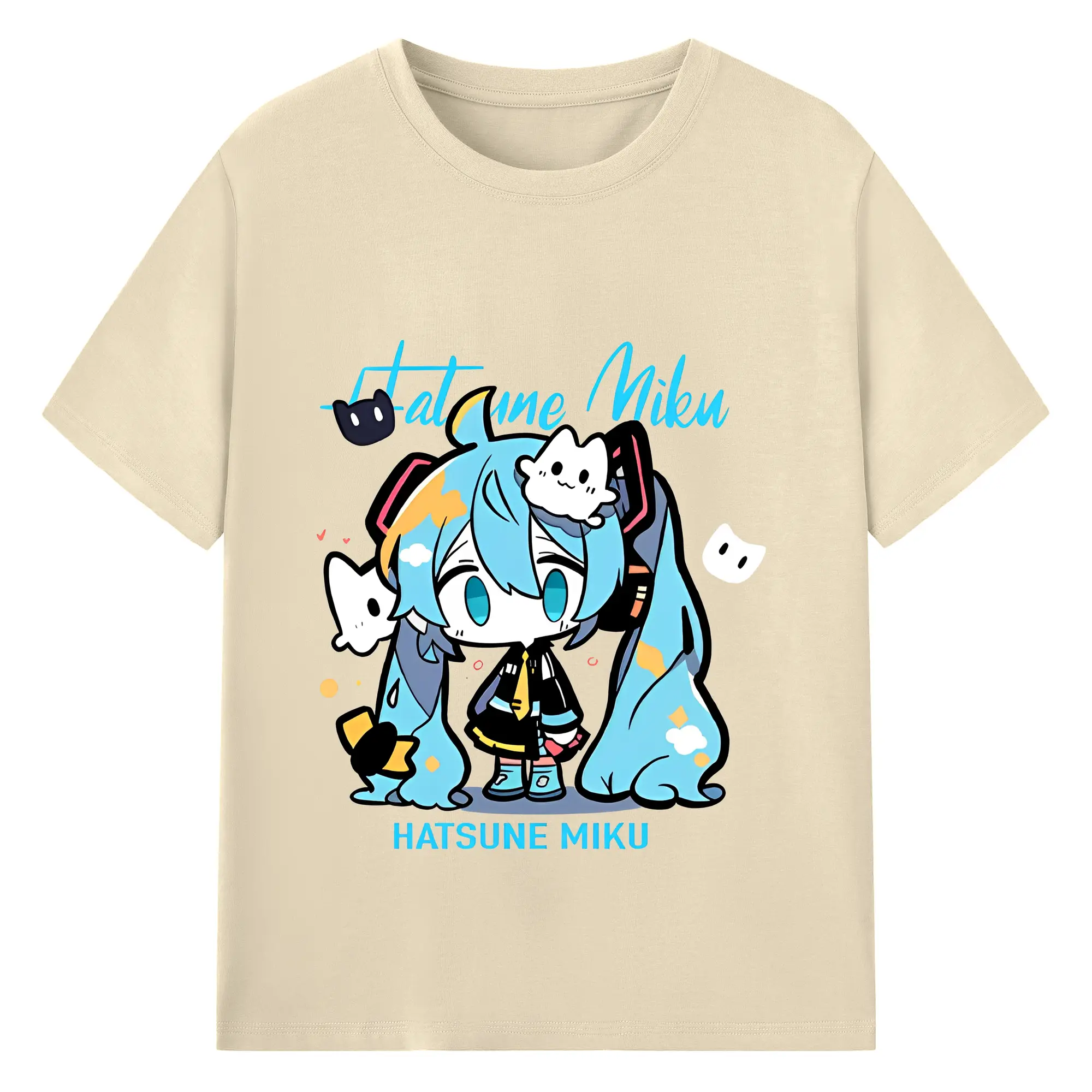 初音ミク コラボ アニメ 二次元 - 綿100% ヴィンテージ風 半袖Tシャツ ・ フロントプリント ・ 柔らか肌触り ・ 通気性 快適 ・ スポーツ カジュアル 外出用