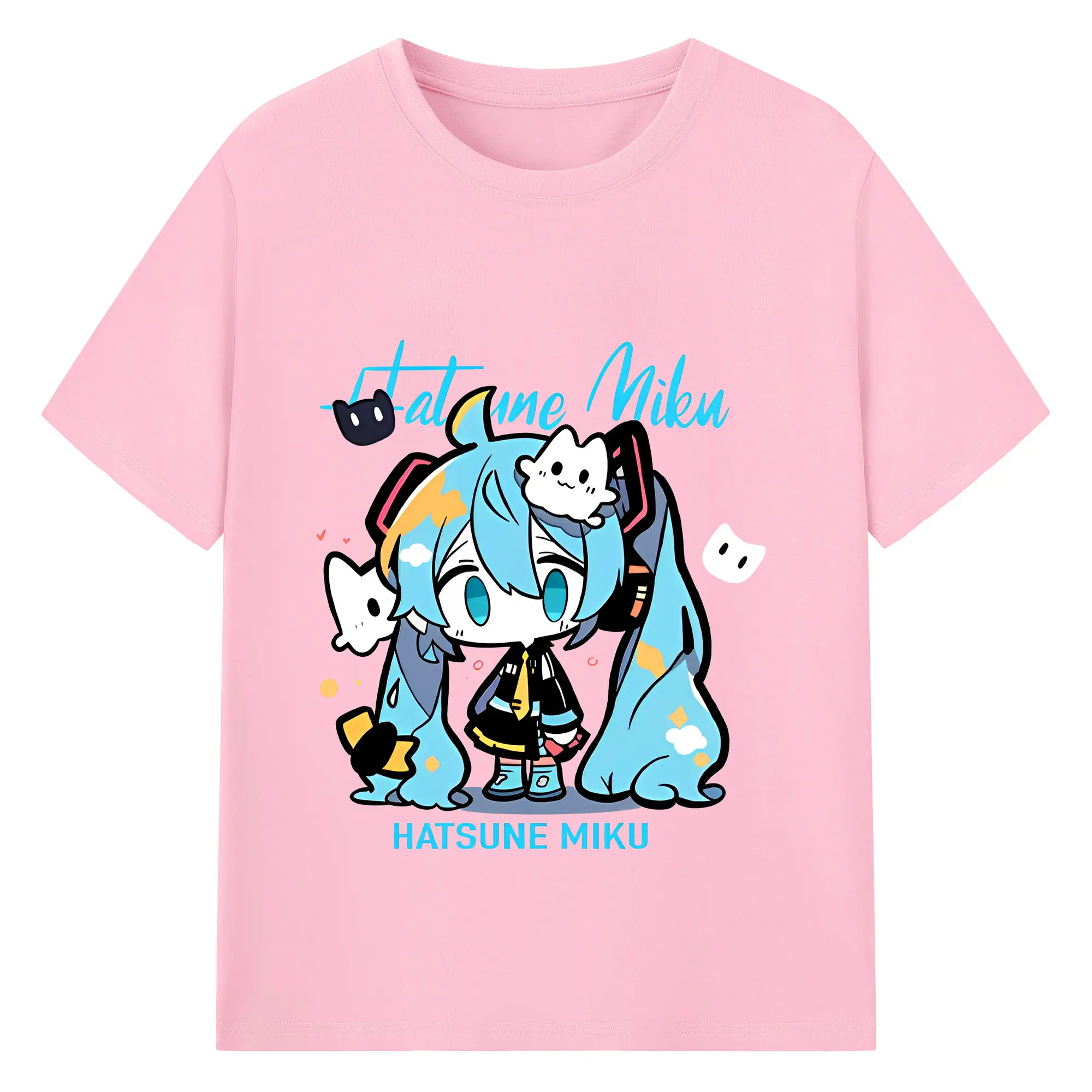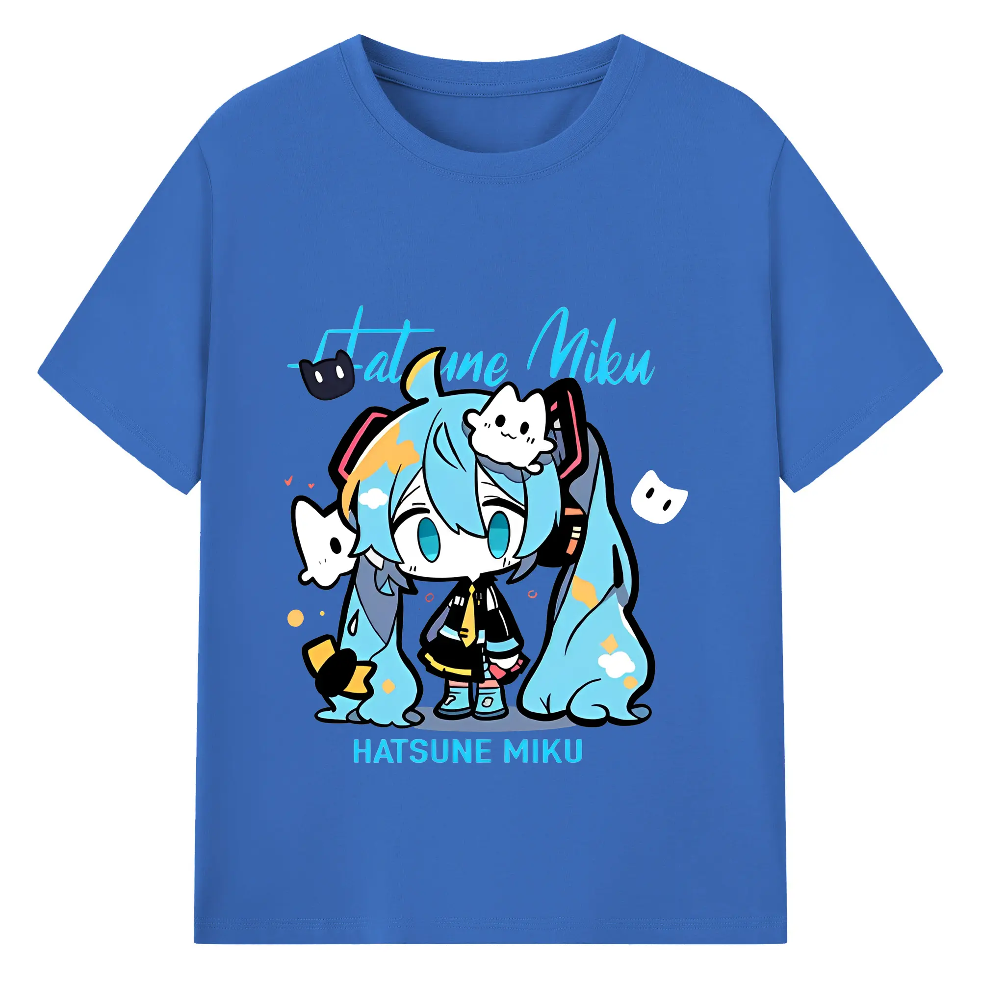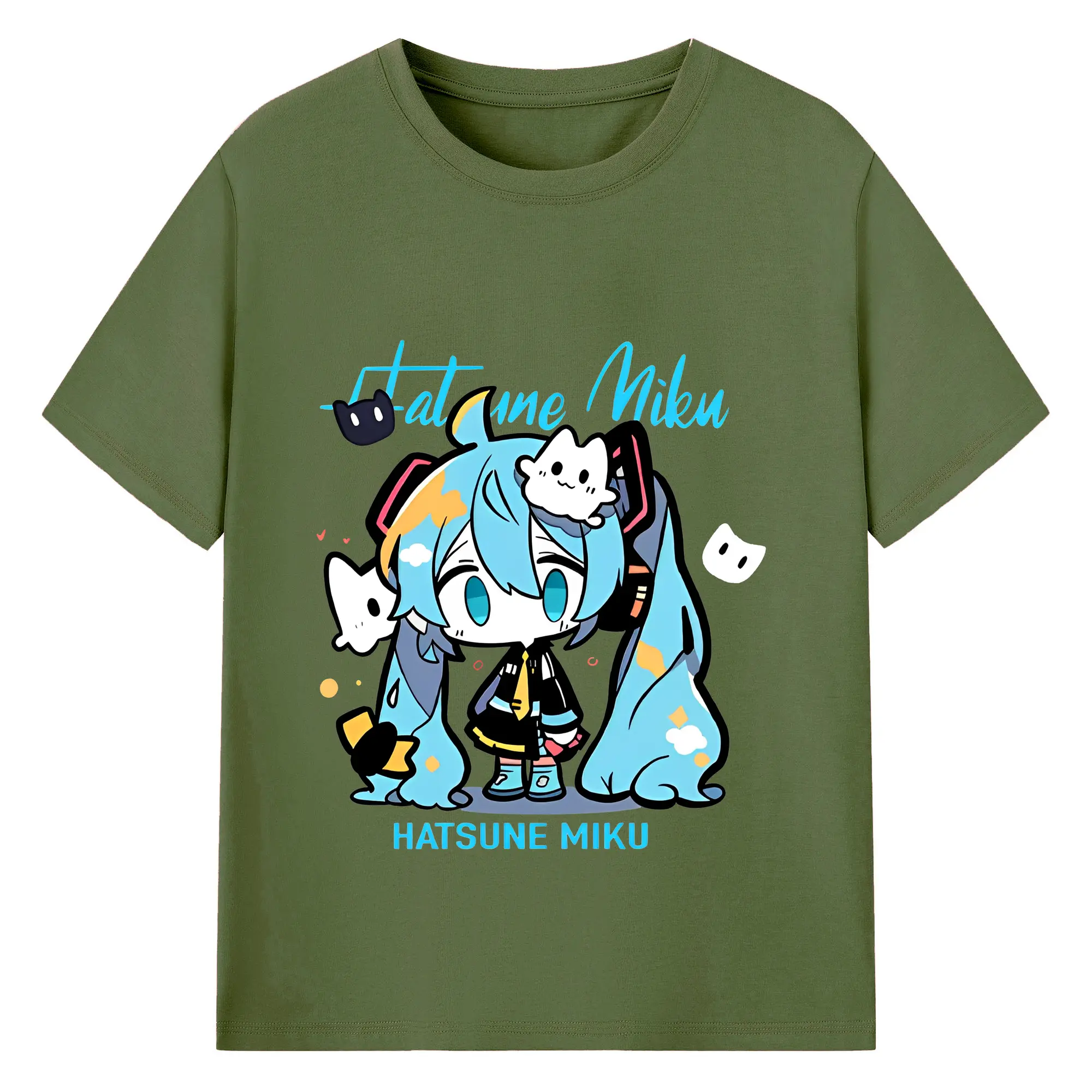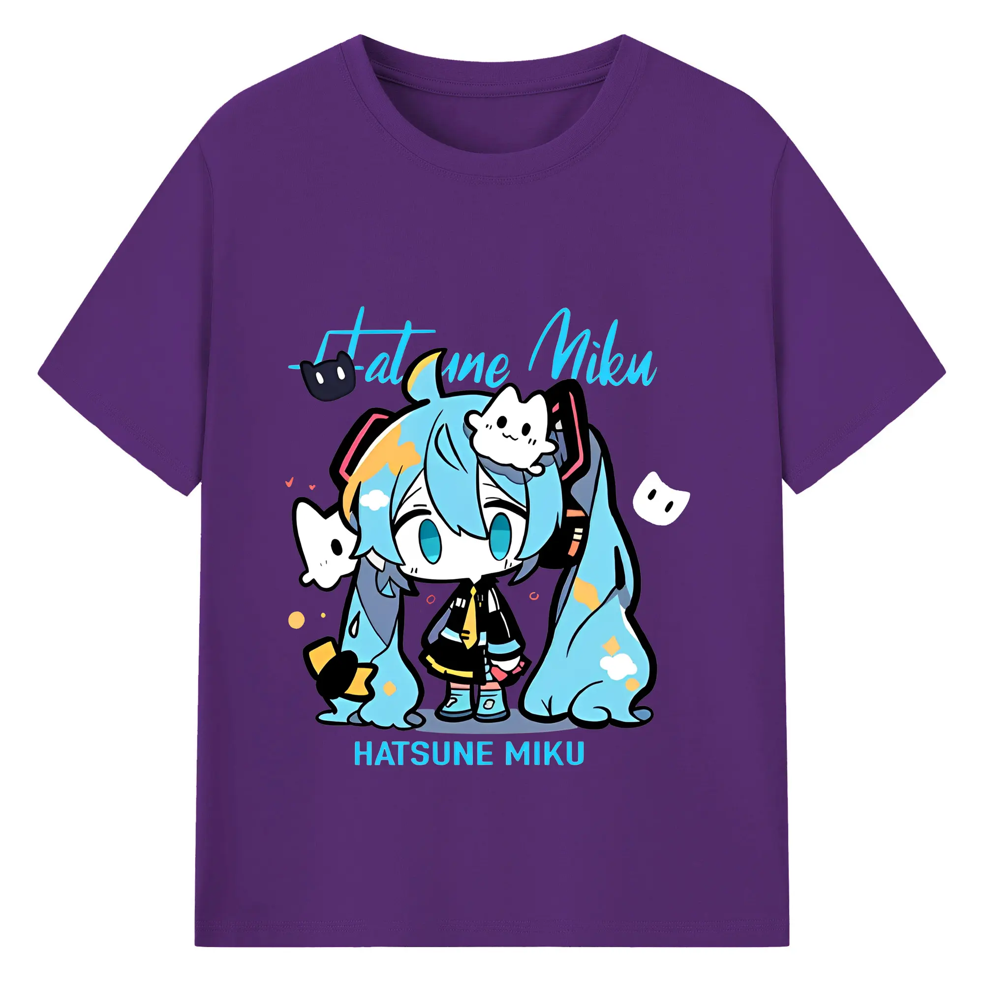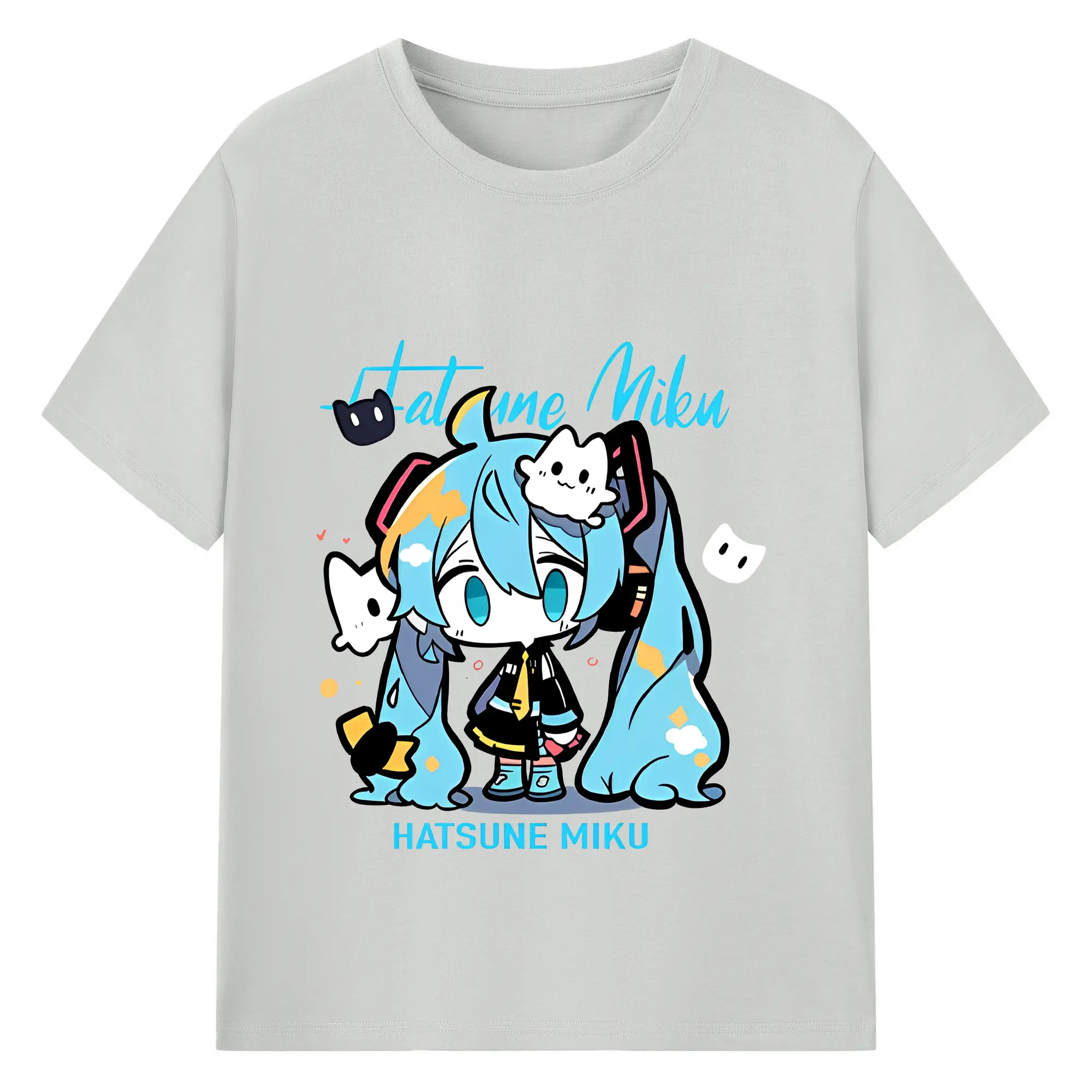 初音ミク コラボ アニメ 二次元 - 綿100% ヴィンテージ風 半袖Tシャツ ・ フロントプリント ・ 柔らか肌触り ・ 通気性 快適 ・ スポーツ カジュアル 外出用