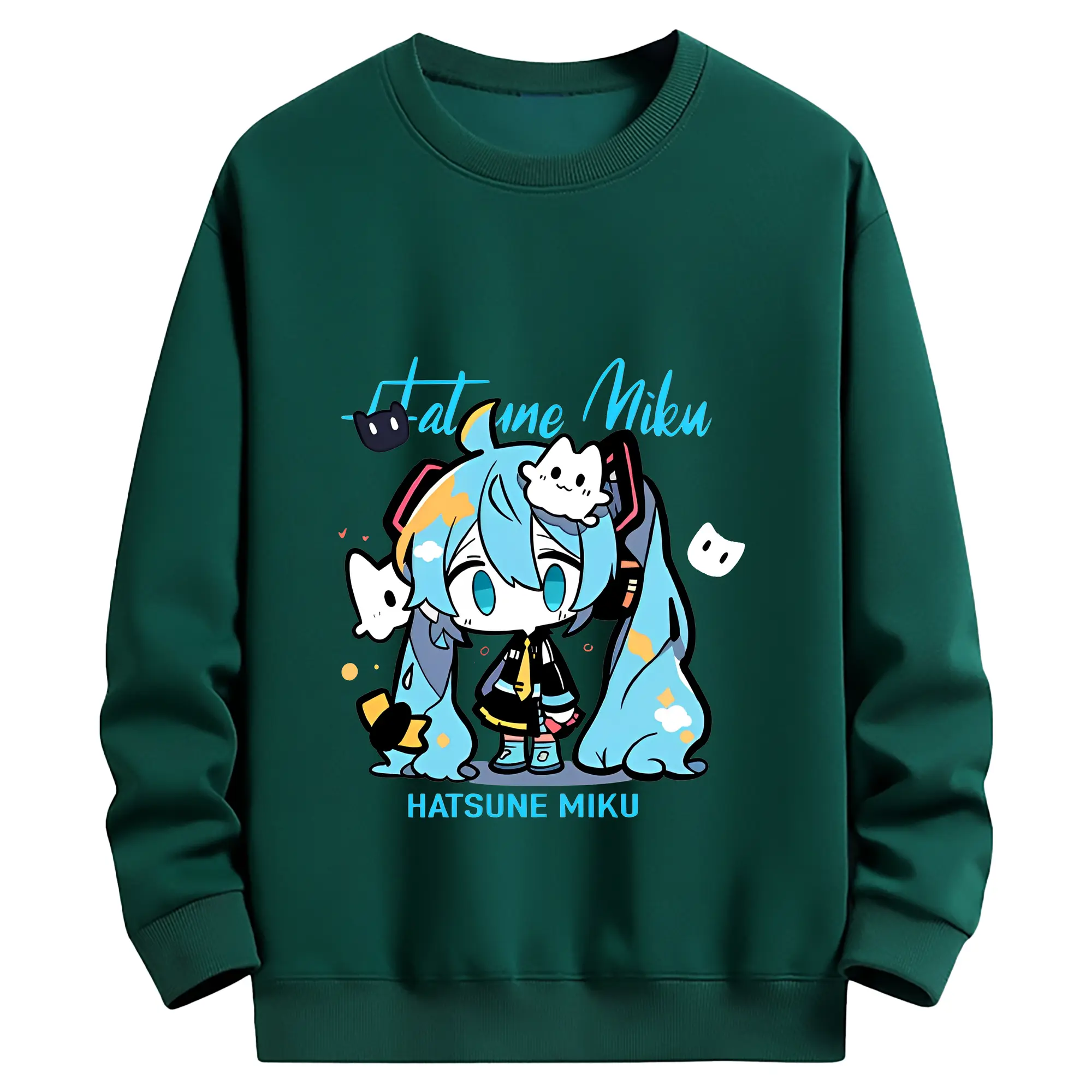 初音ミク コラボ アニメ 二次元 - 綿100% 半袖Tシャツ ・ フロントプリント ・ 快適 通気性 ・ 日常使い 散歩 スポーツ用