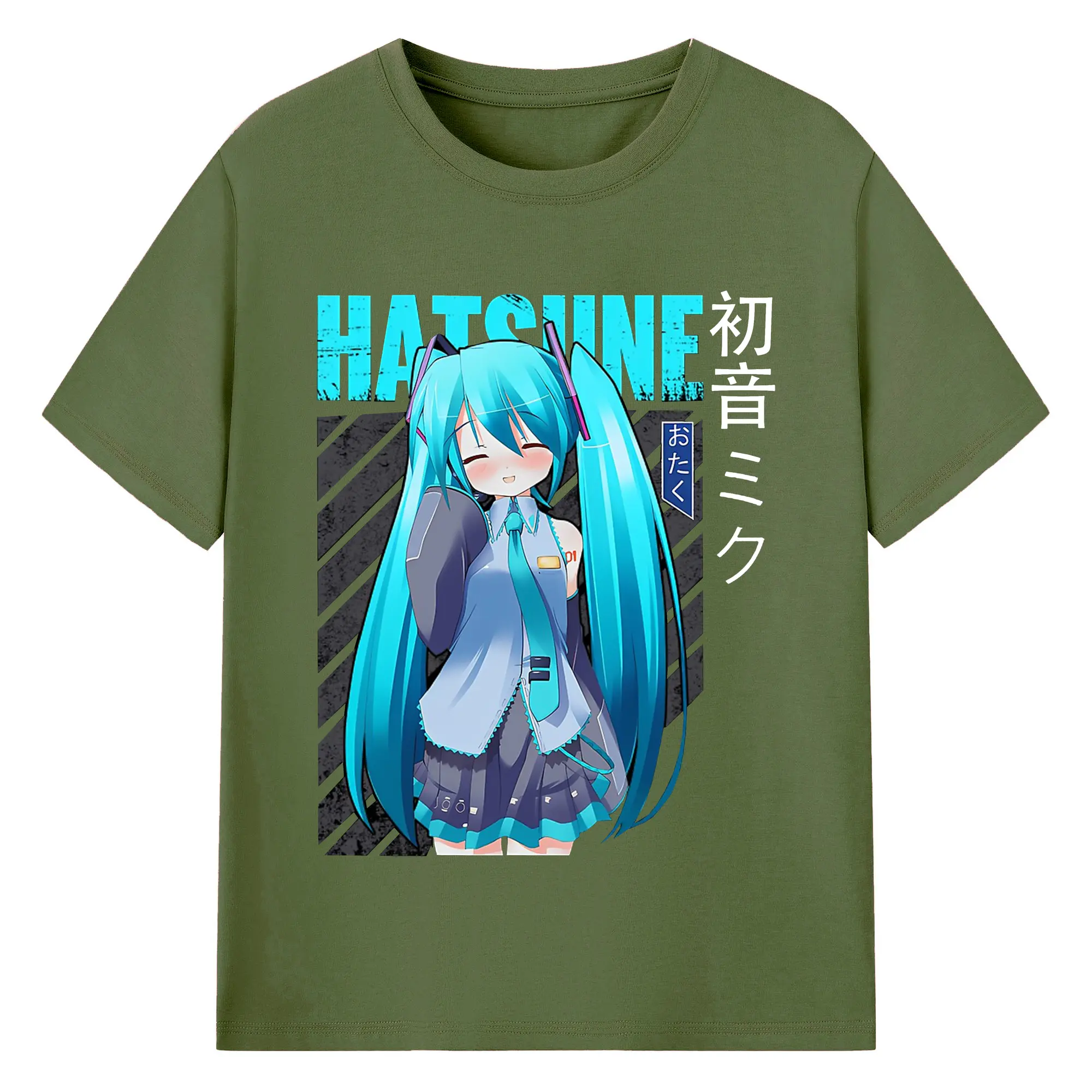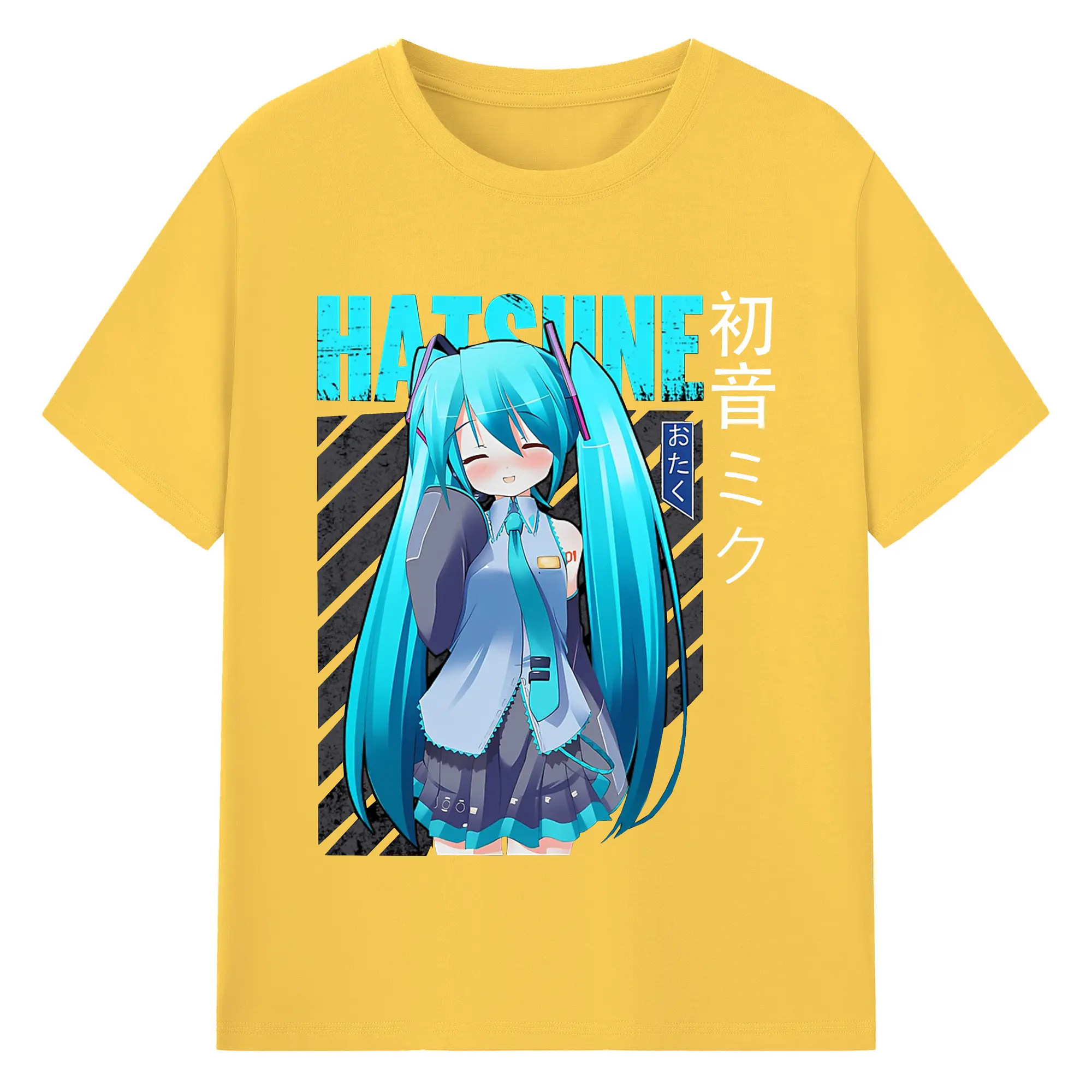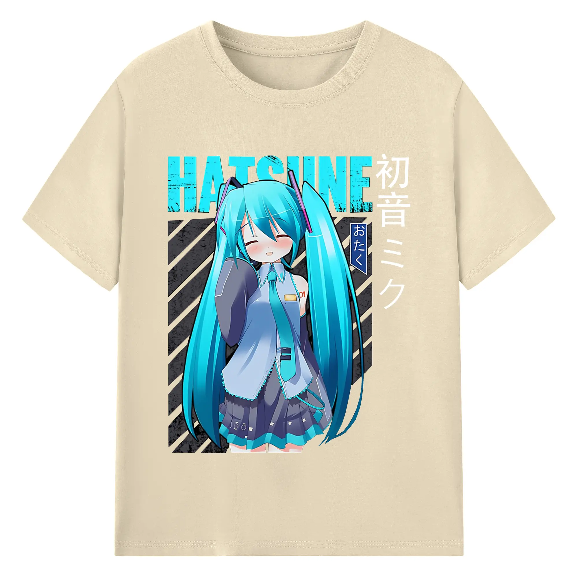 Hatsune MikuVOCALOID 初音ミク - 綿100% 半袖Tシャツ ・ フロントプリント ・ 快適 通気性 ・ 日常使い 散歩 スポーツ用