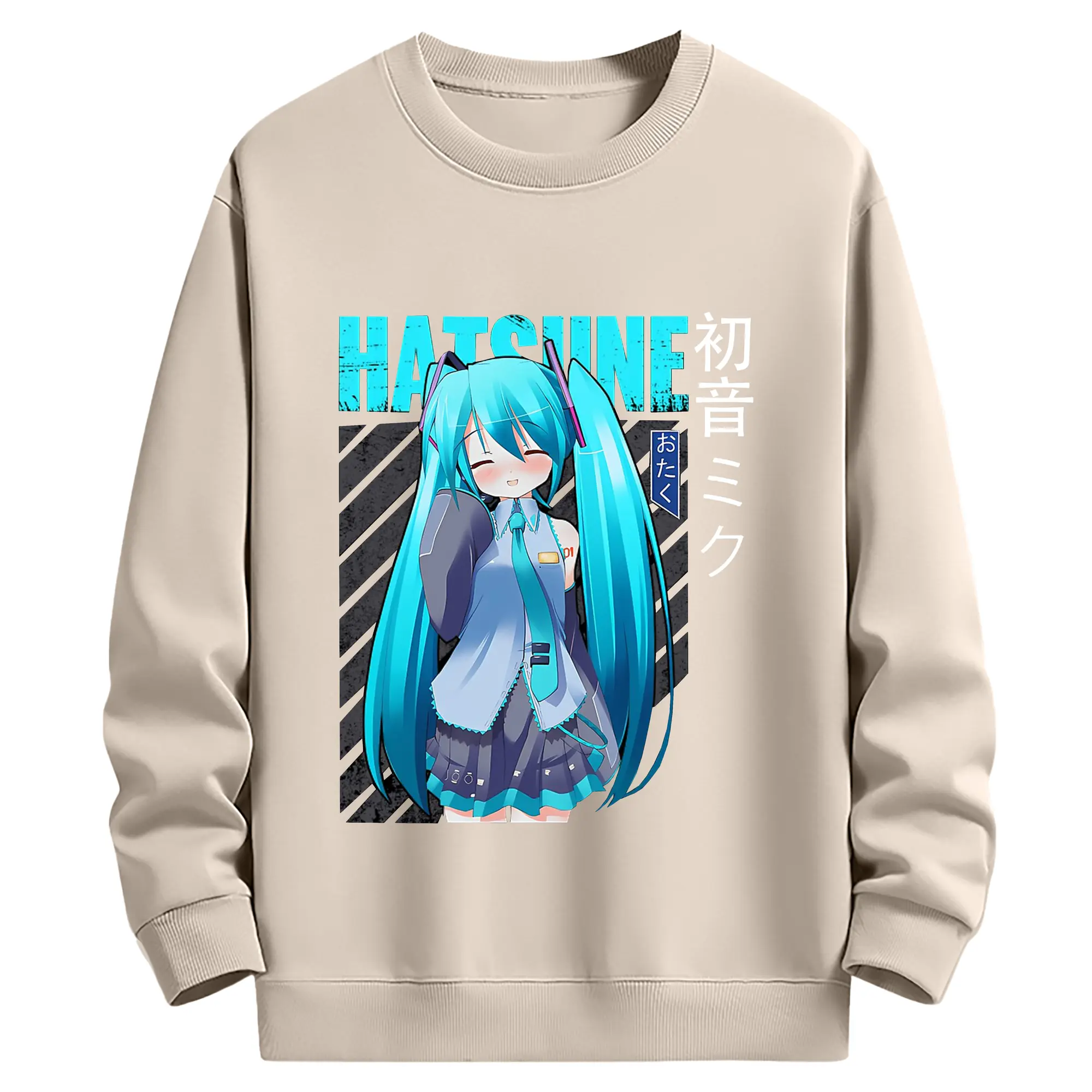初音ミクHatsune Miku電子歌姫 01 VCL - 高品質 クルーネック スウェット ・ コットン59% ポリエステル41% ・ ユニセックス 長袖 トレーナー ・ カジュアル デイリー スポーツ 散歩用