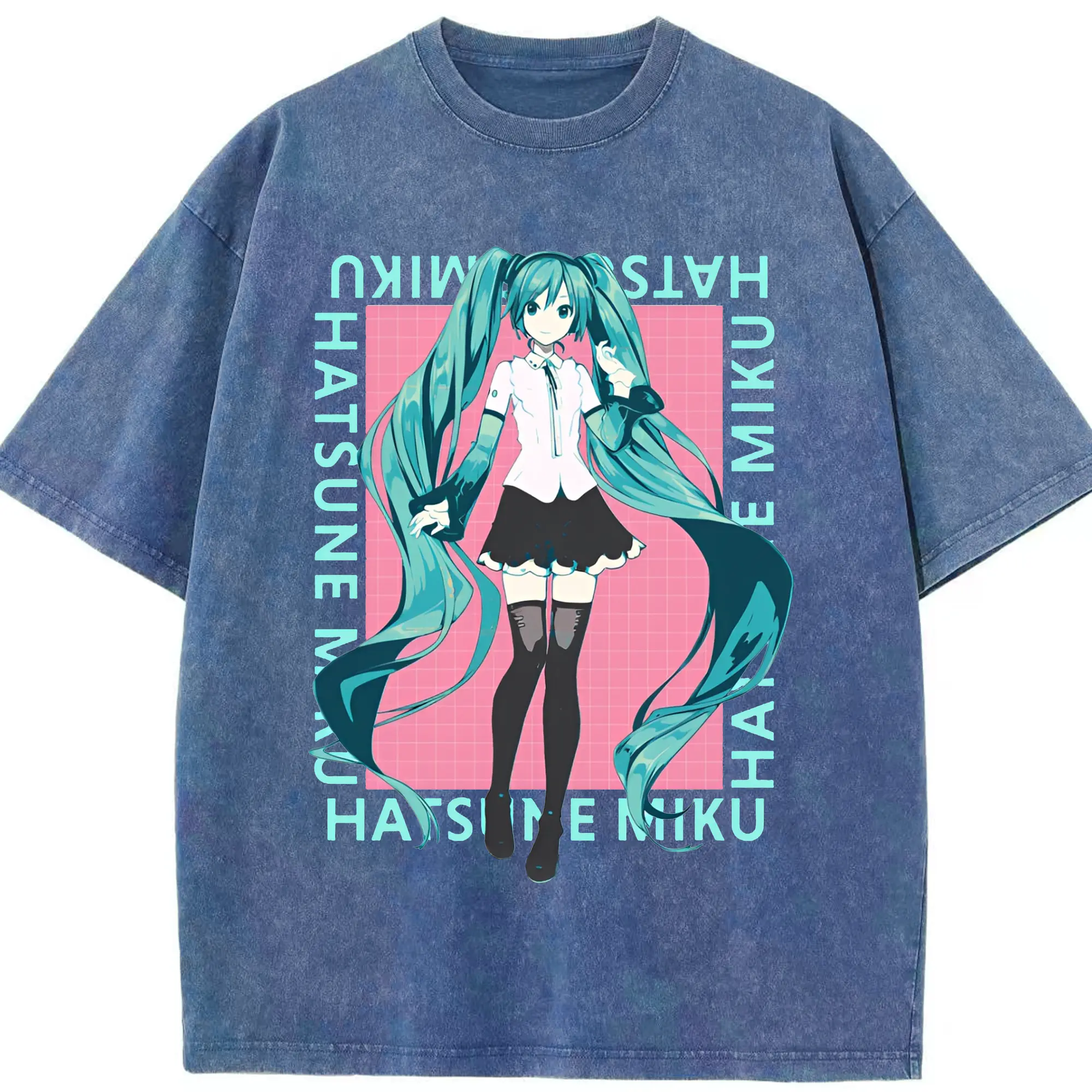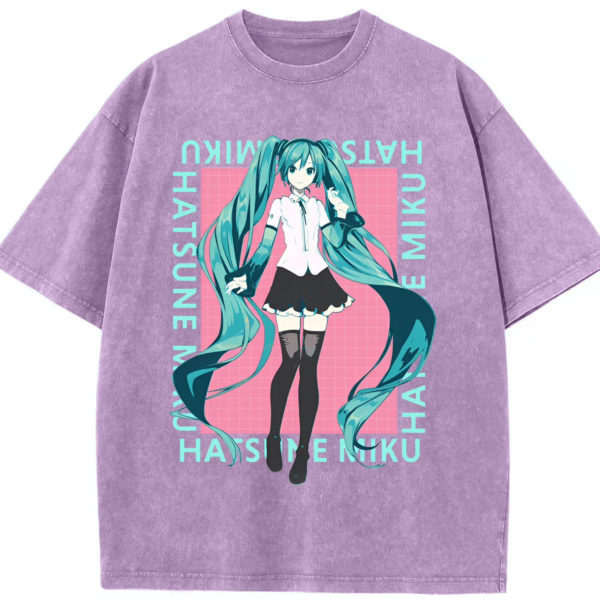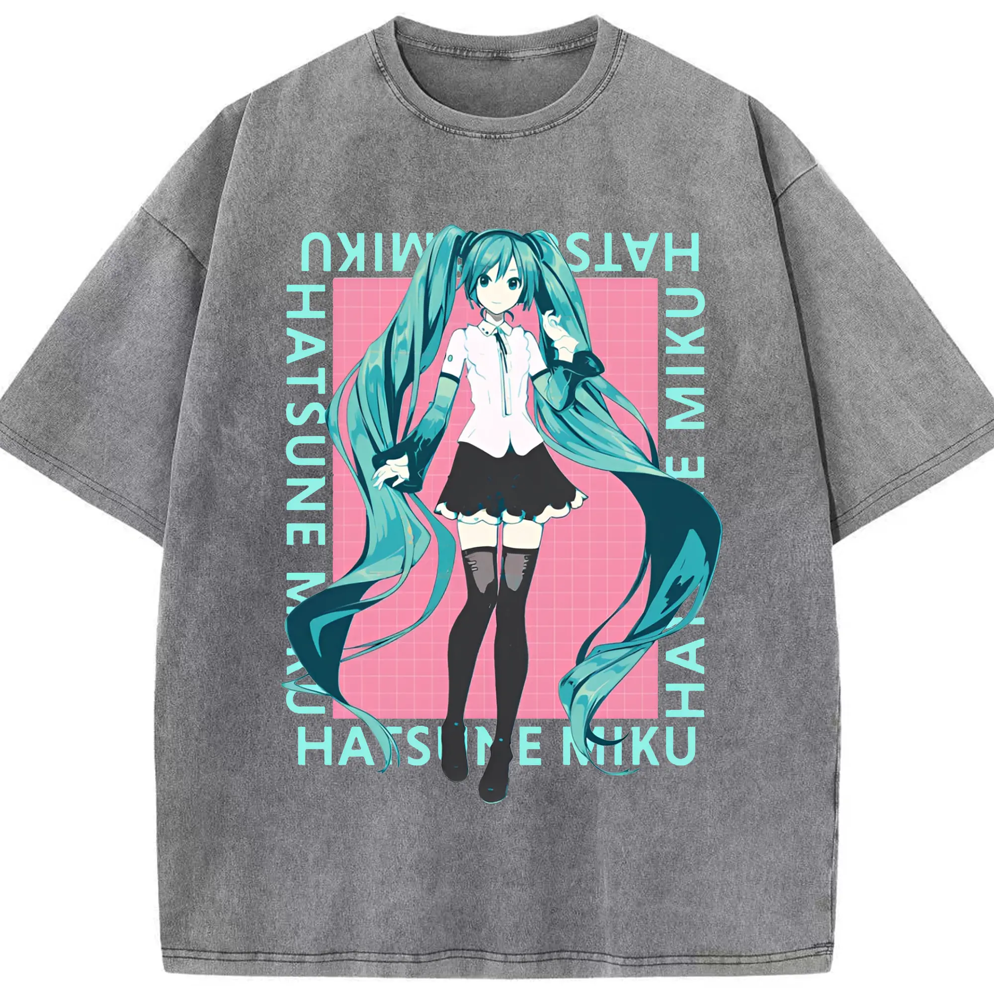初音ミク シンプルデザイン - 綿100% ヴィンテージ風 半袖Tシャツ ・ フロントプリント ・ 柔らか肌触り ・ 通気性 快適 ・ スポーツ カジュアル 外出用