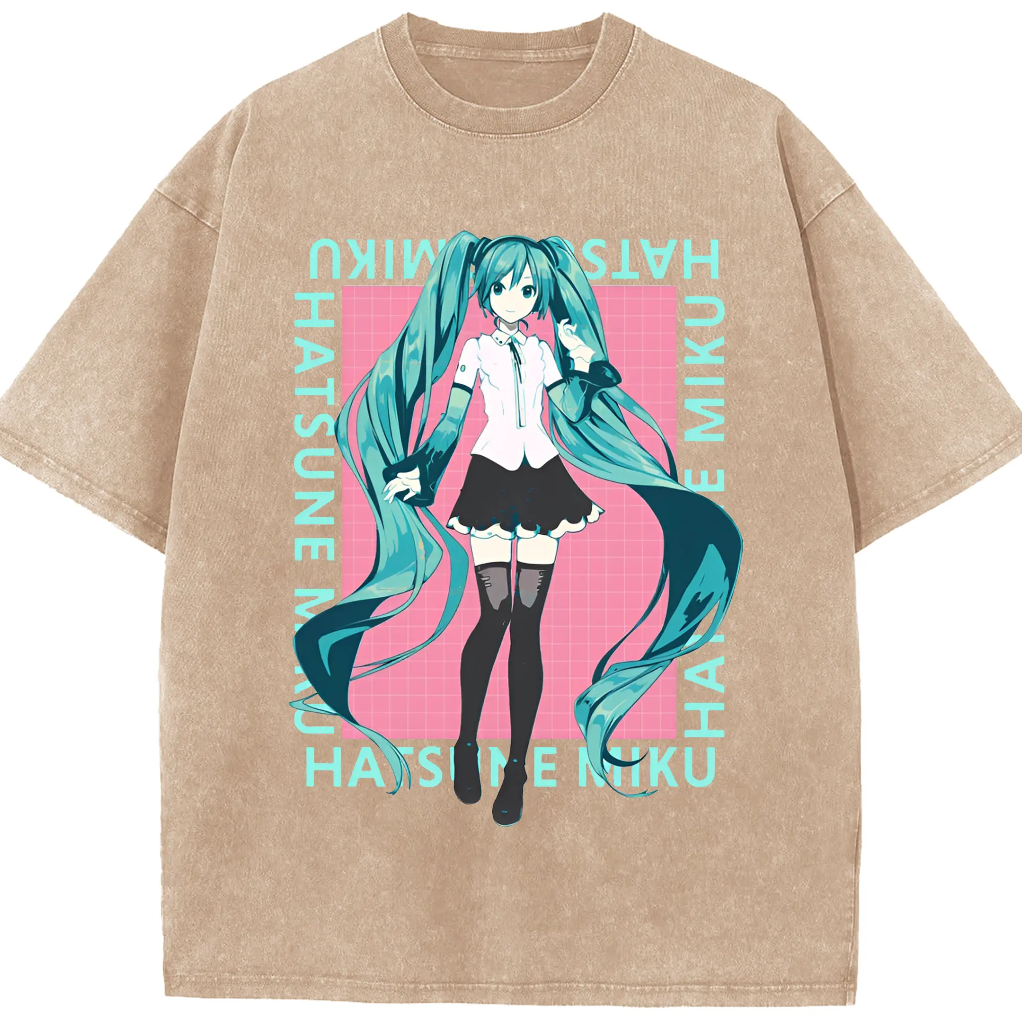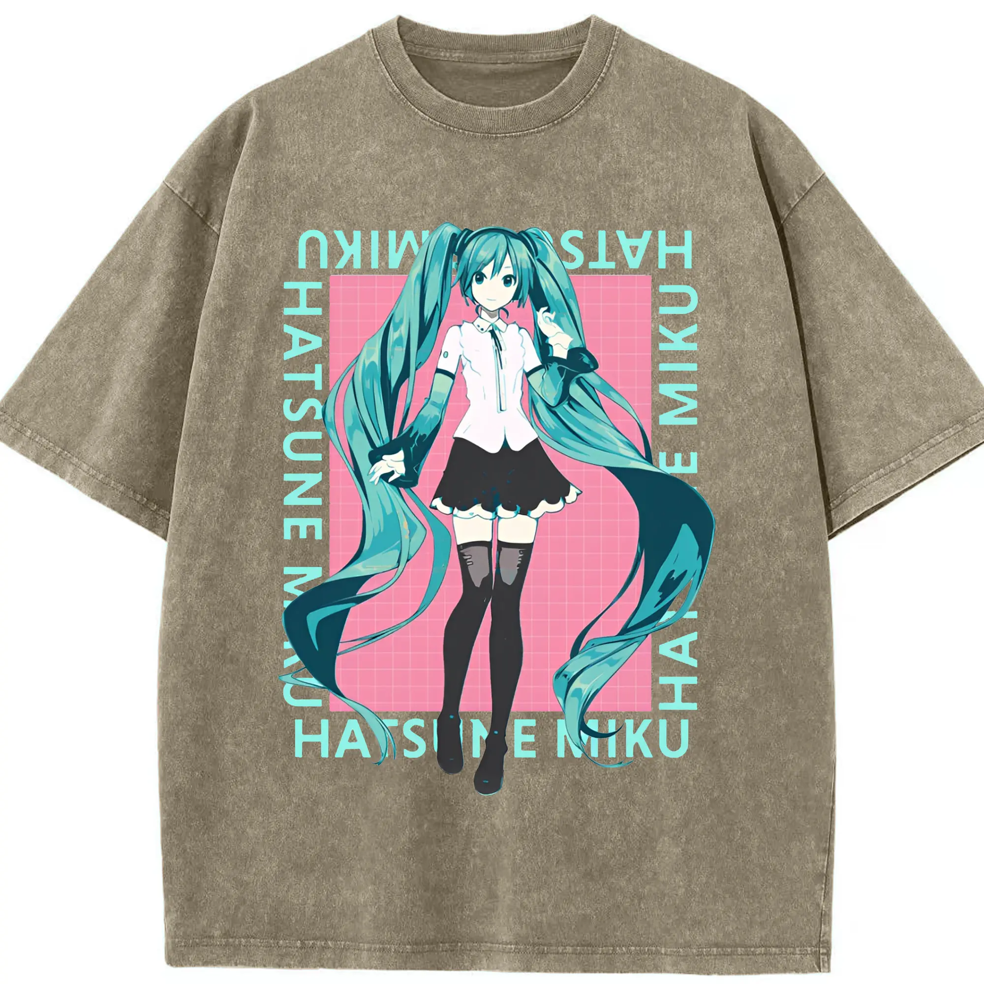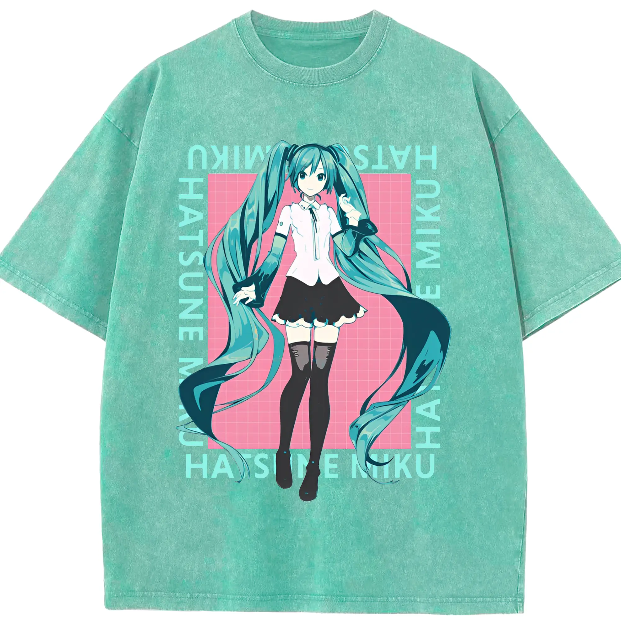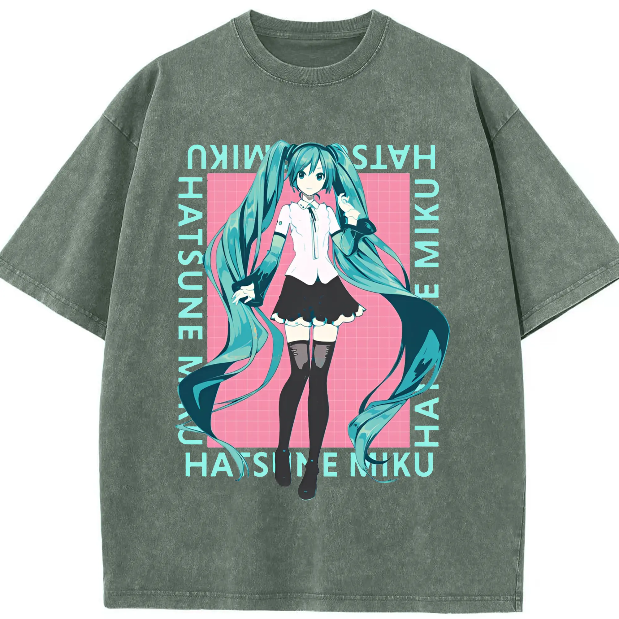初音ミク シンプルデザイン - 綿100% ヴィンテージ風 半袖Tシャツ ・ フロントプリント ・ 柔らか肌触り ・ 通気性 快適 ・ スポーツ カジュアル 外出用
