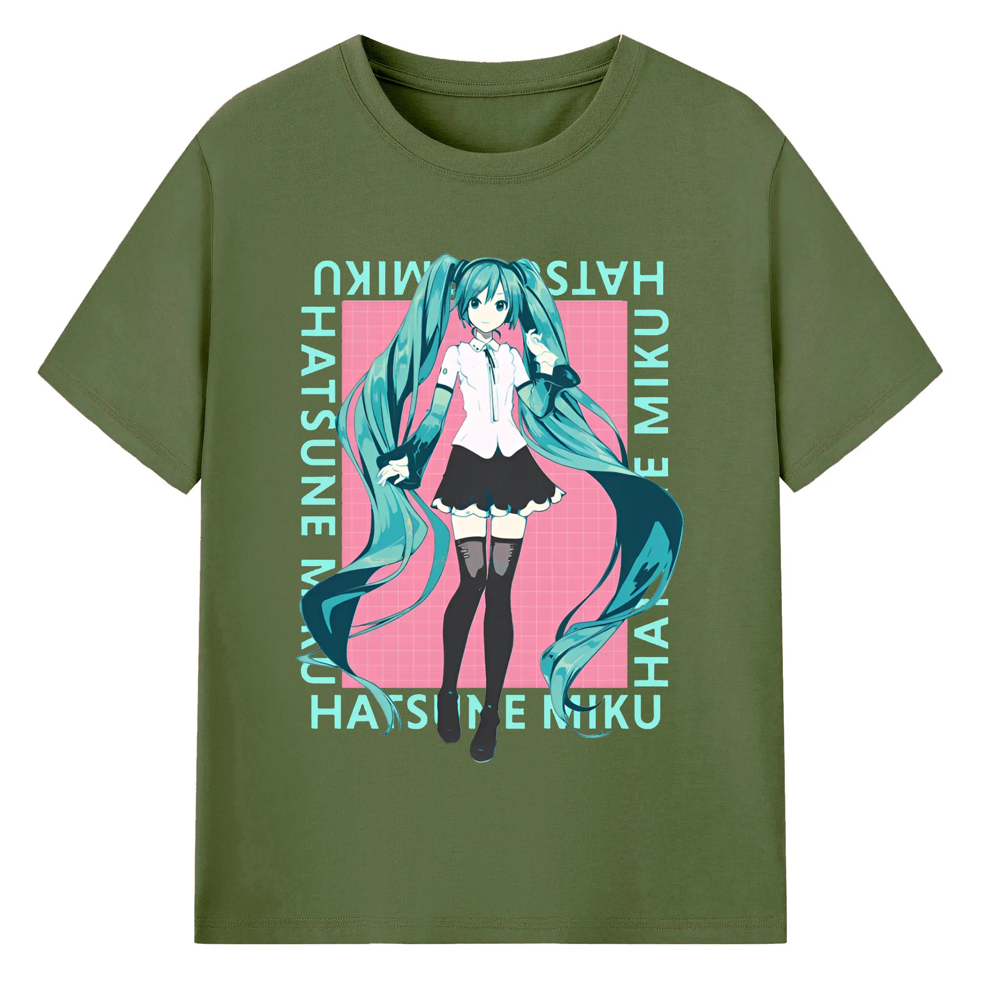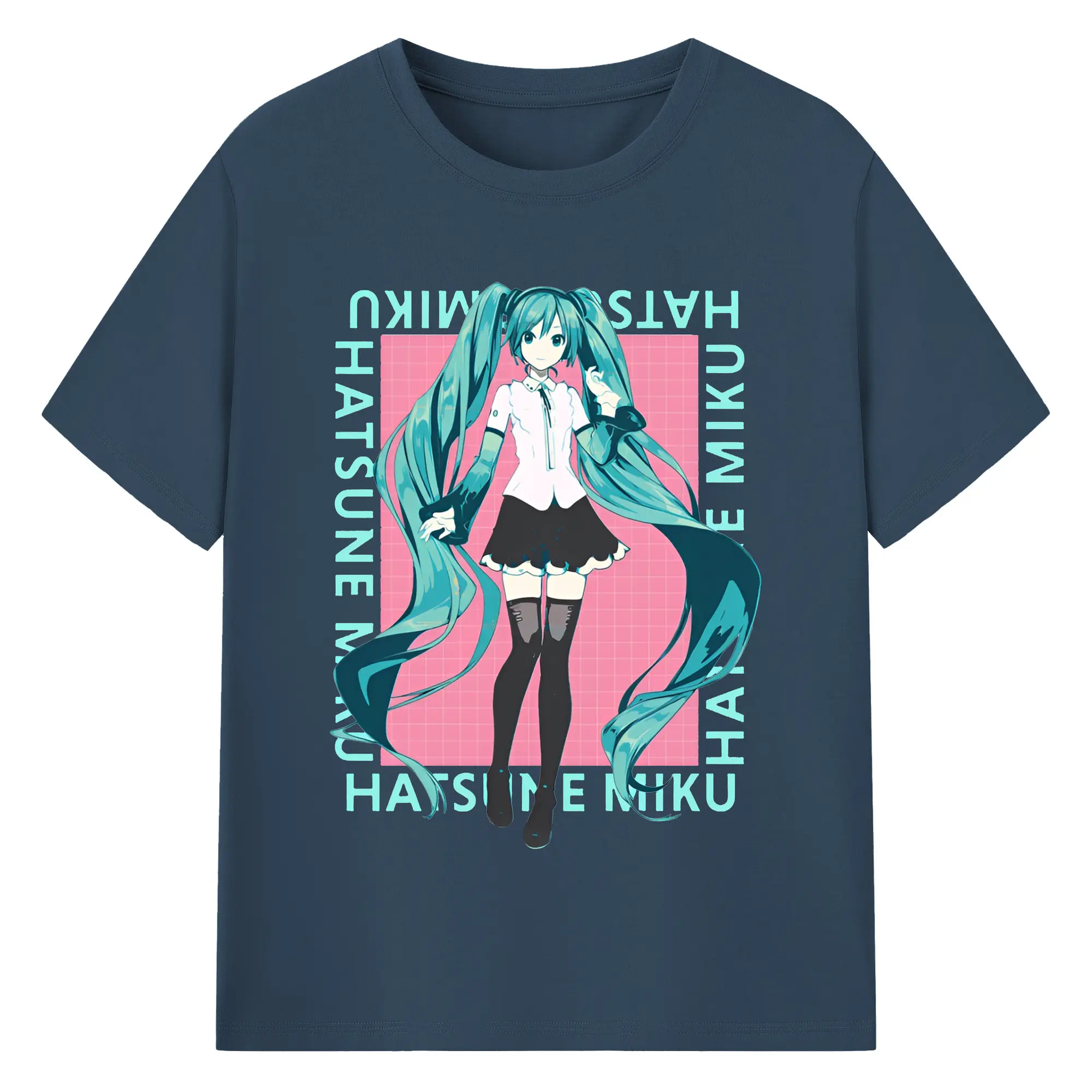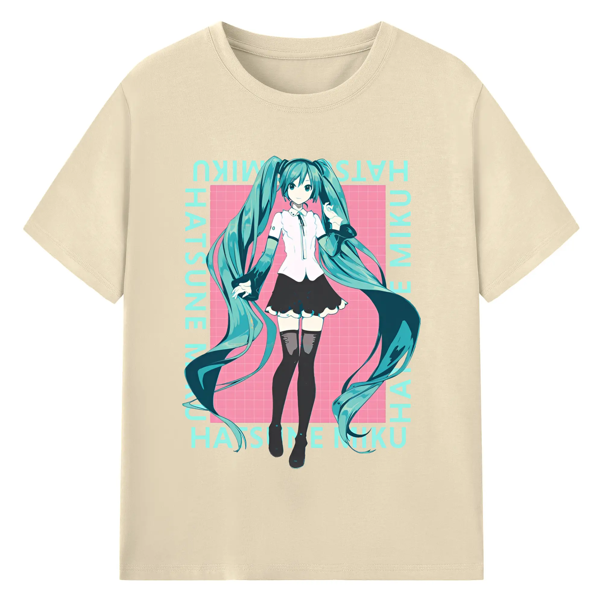初音ミク バーチャル歌姫 二次元 - 綿100% ヴィンテージ風 半袖Tシャツ ・ フロントプリント ・ 柔らか肌触り ・ 通気性 快適 ・ スポーツ カジュアル 外出用