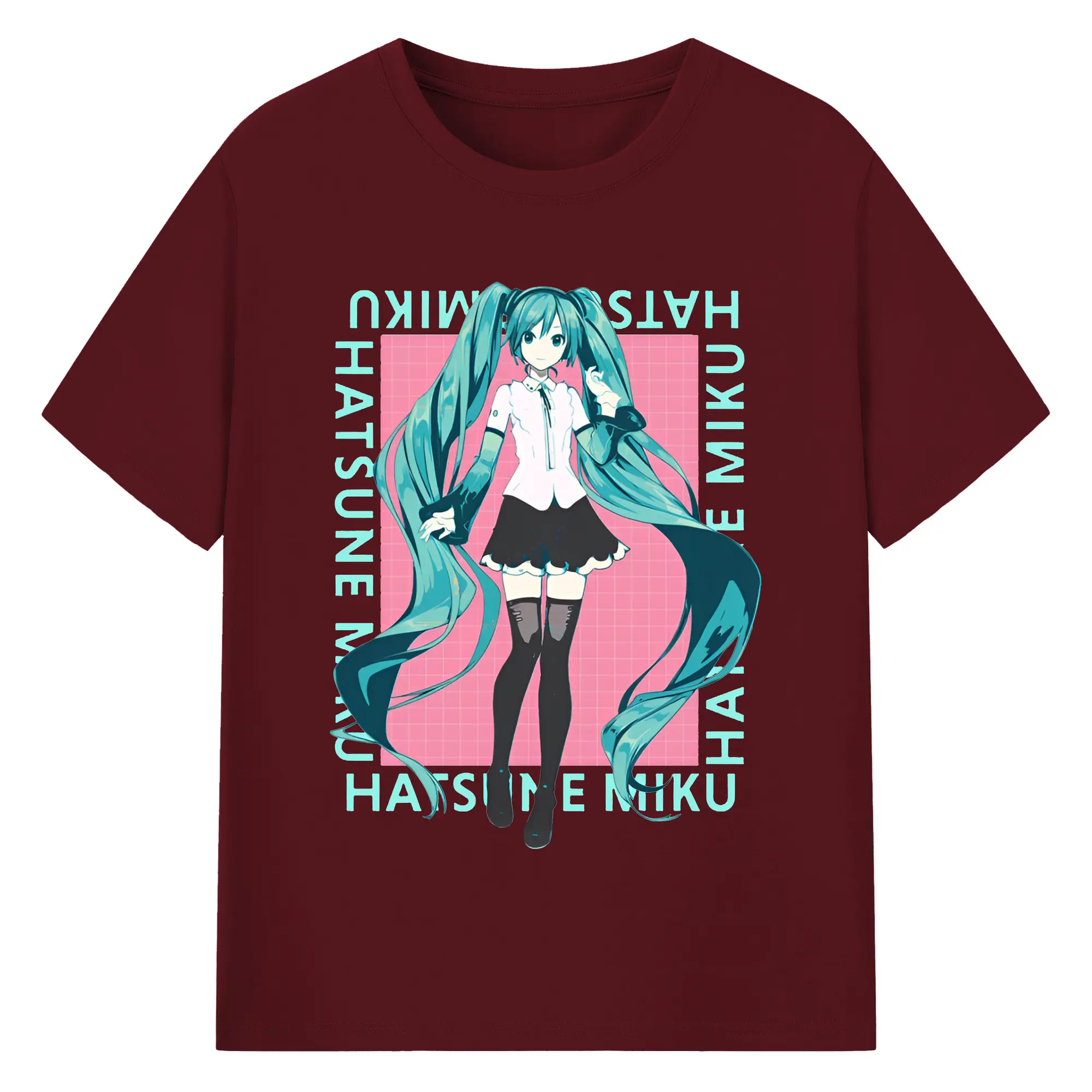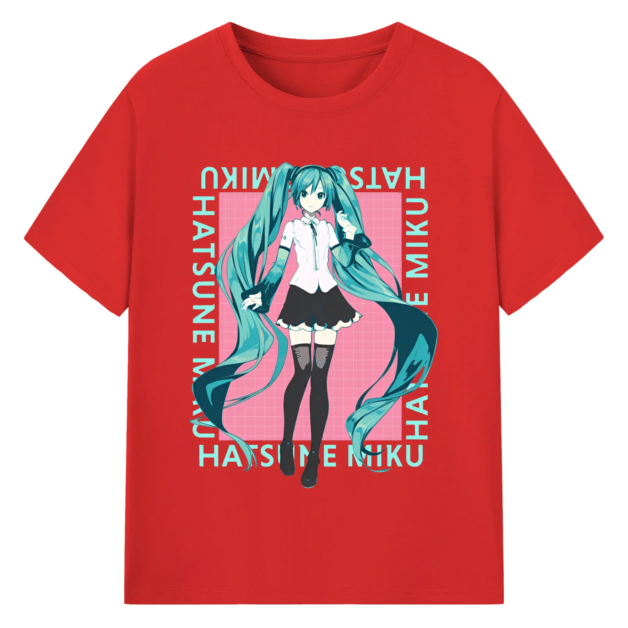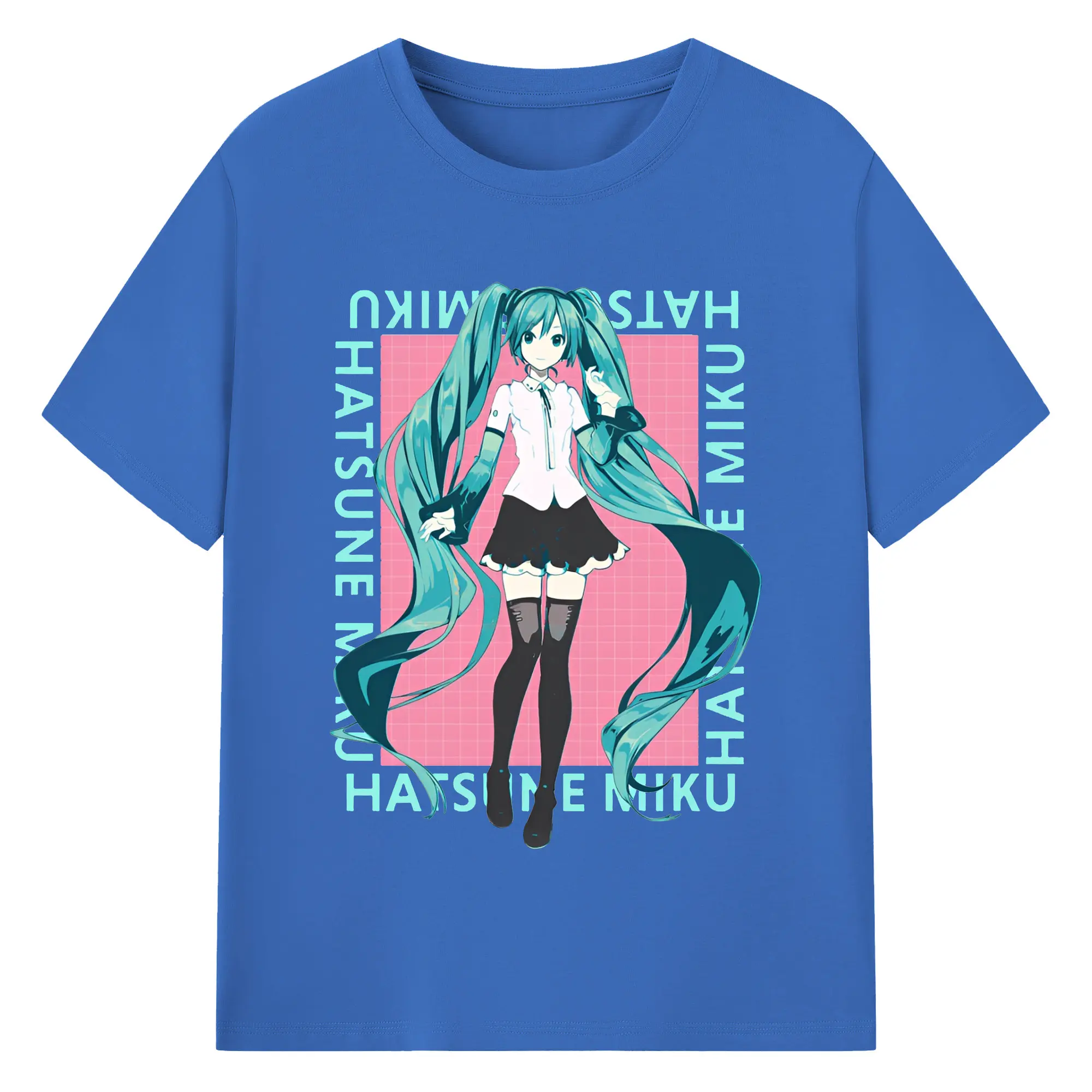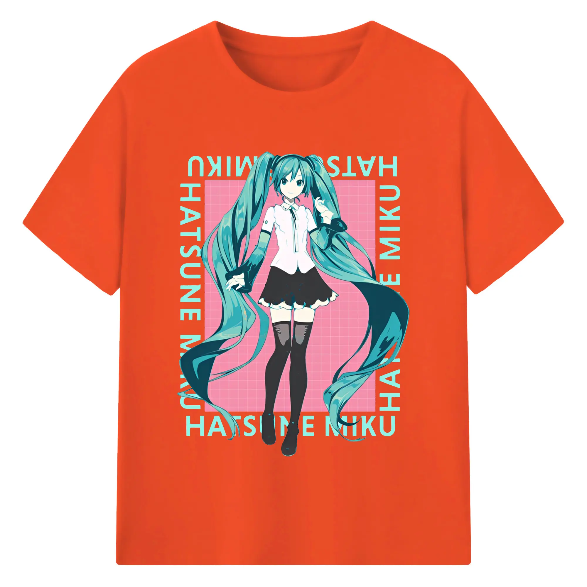 初音ミク バーチャル歌姫 二次元 - 綿100% ヴィンテージ風 半袖Tシャツ ・ フロントプリント ・ 柔らか肌触り ・ 通気性 快適 ・ スポーツ カジュアル 外出用