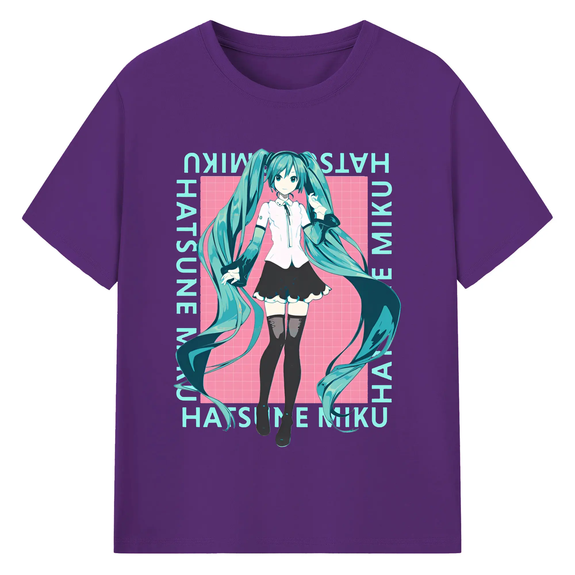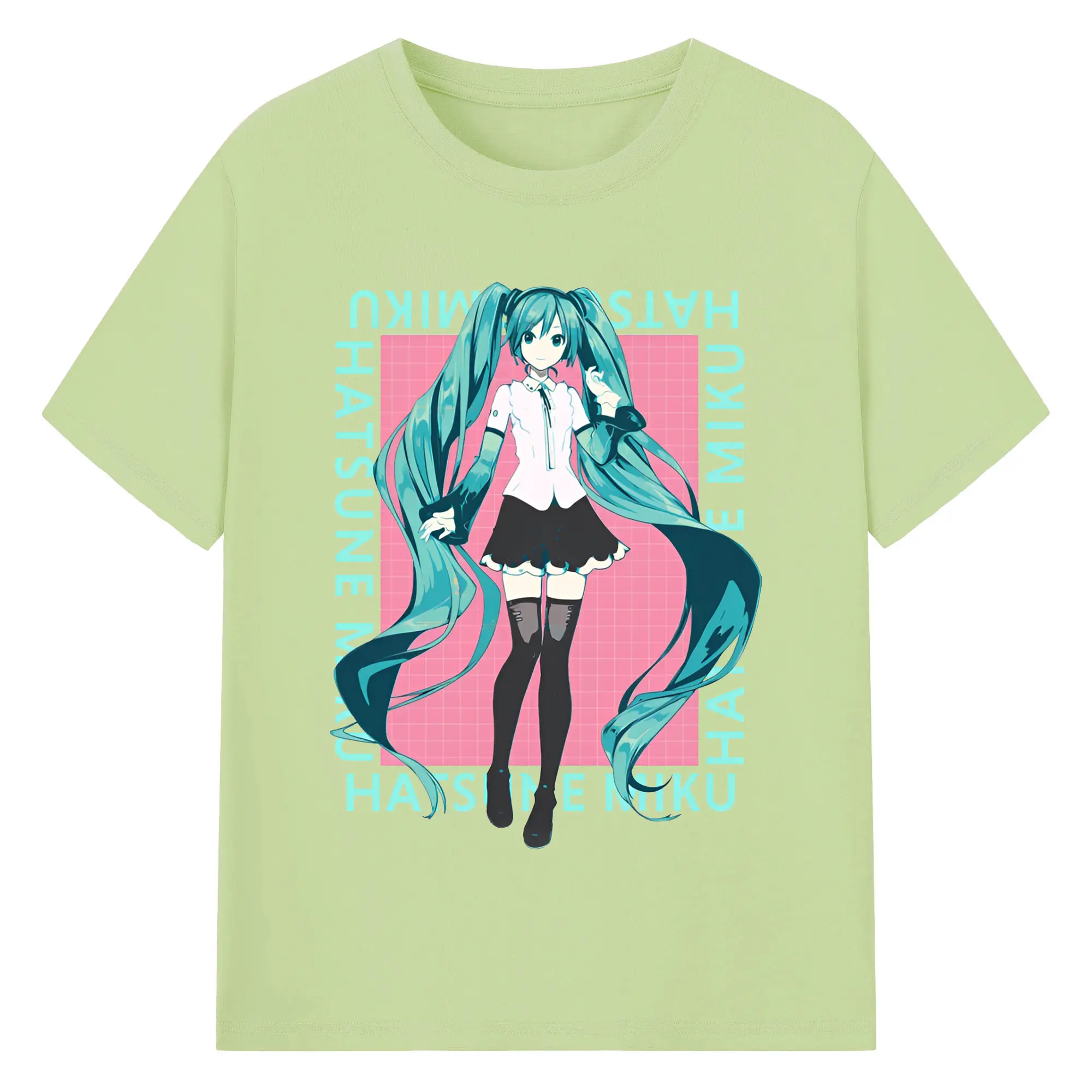 Hatsune Miku LOVE MUSIC - 綿100% 半袖Tシャツ ・ フロントプリント ・ 快適 通気性 ・ 日常使い 散歩 スポーツ用