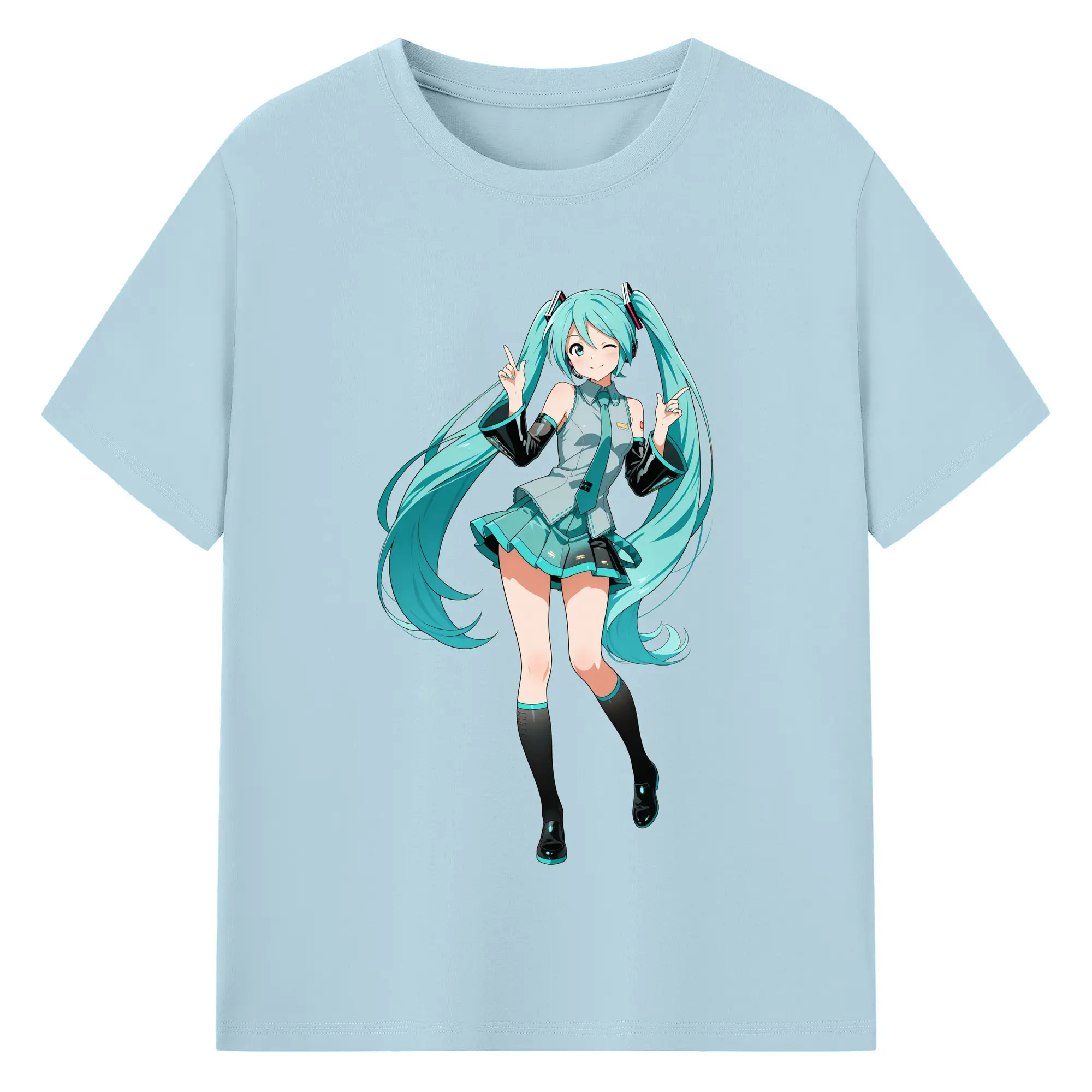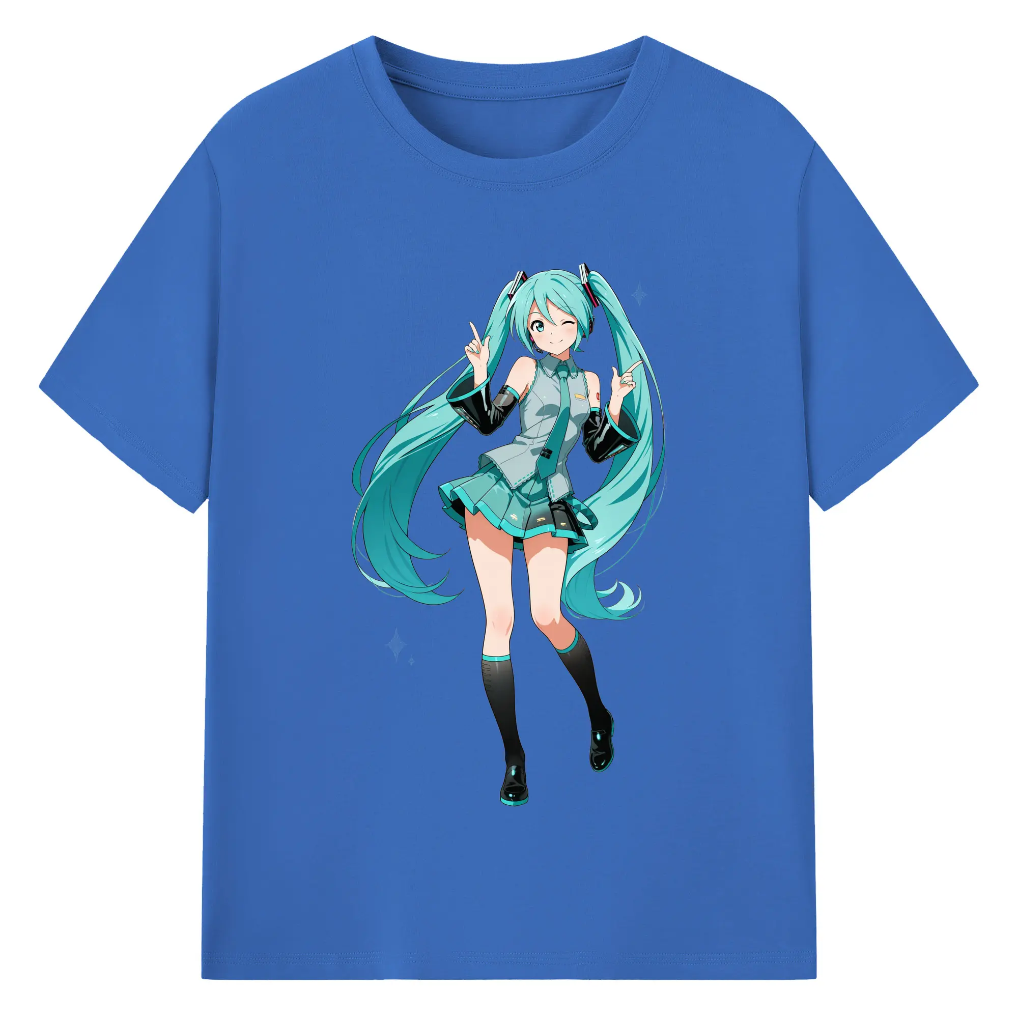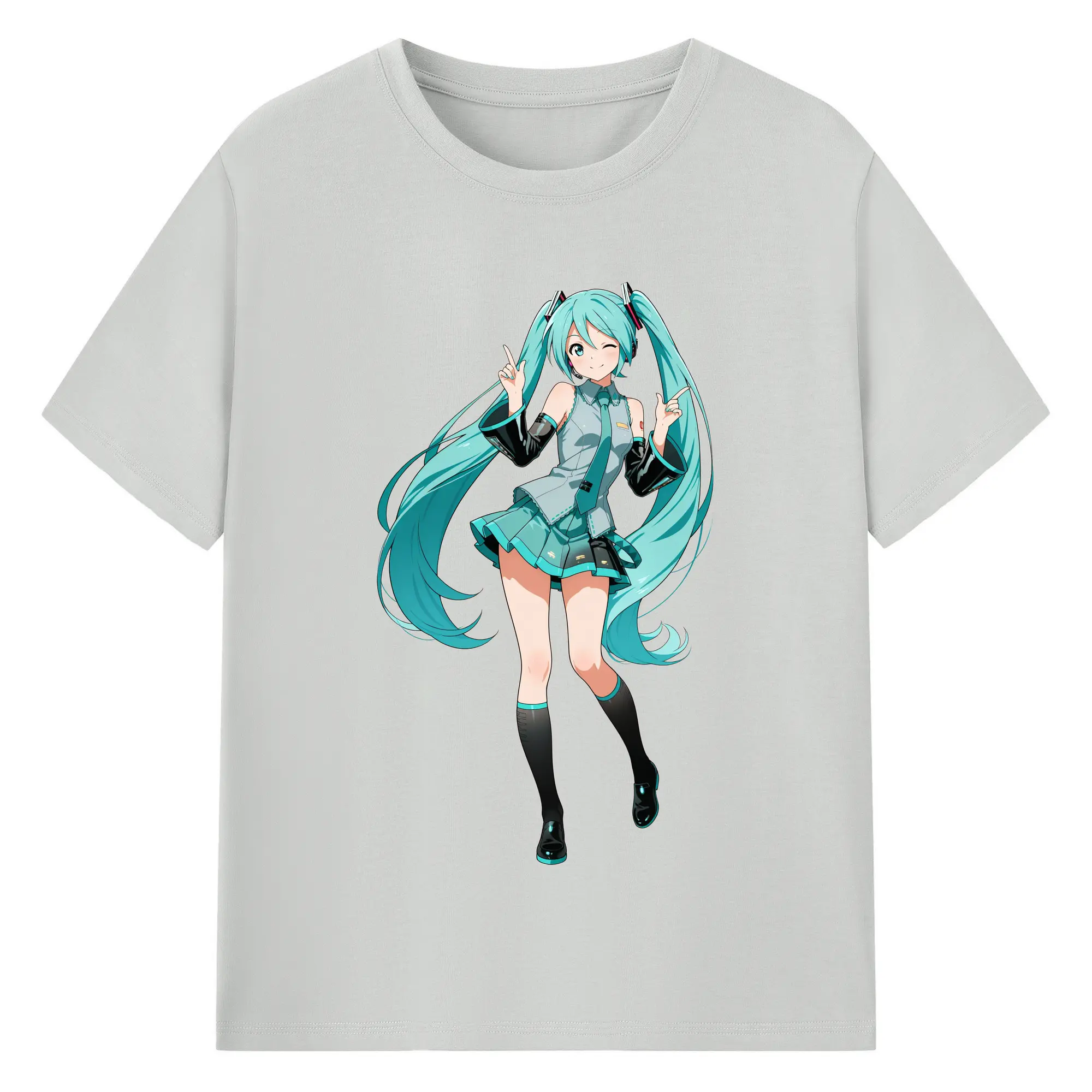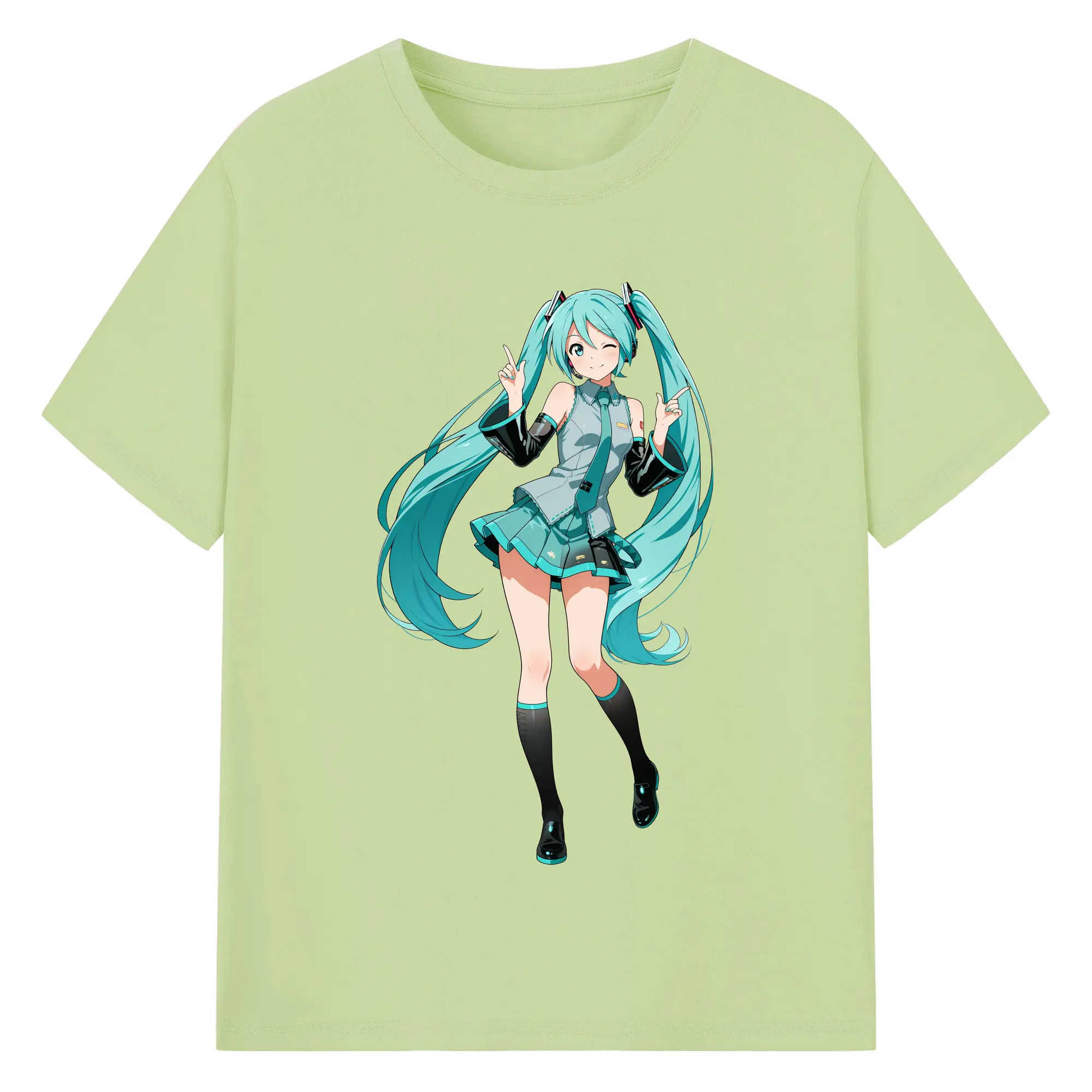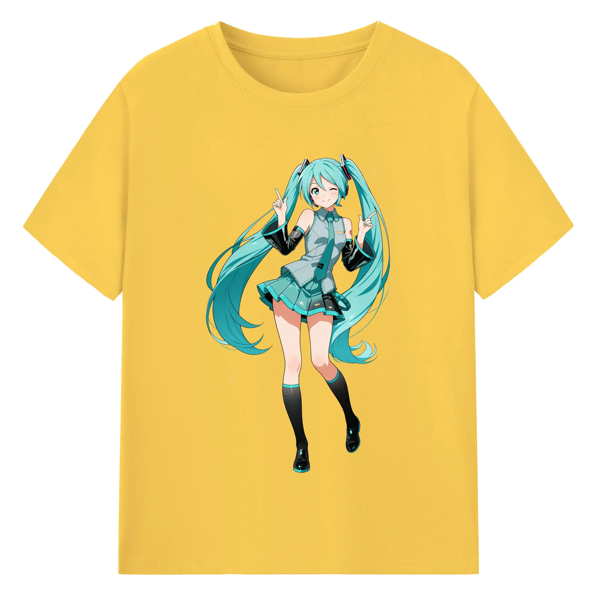 初音ミク バーチャル歌姫 二次元 - 綿100% ヴィンテージ風 半袖Tシャツ ・ フロントプリント ・ 柔らか肌触り ・ 通気性 快適 ・ スポーツ カジュアル 外出用