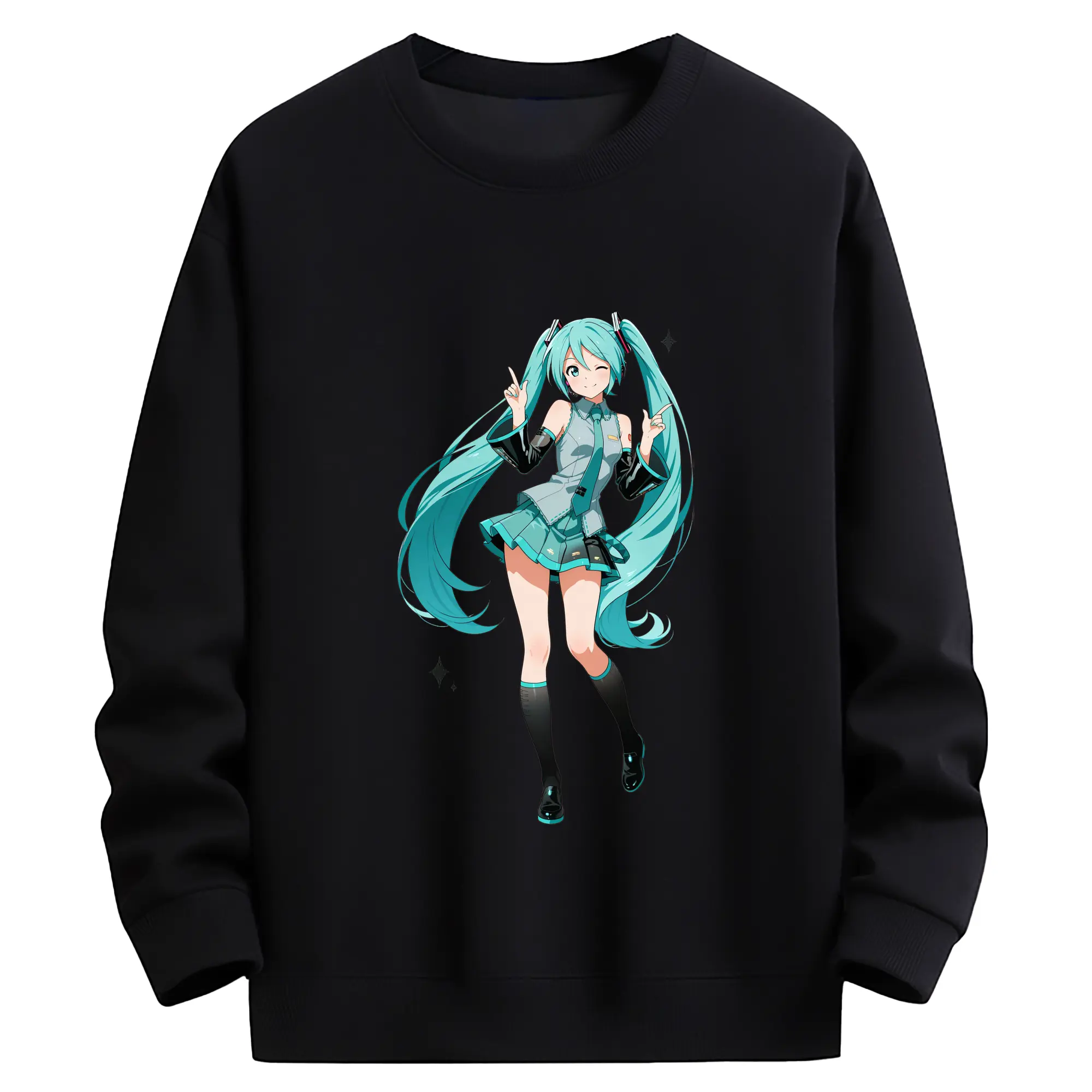 初音ミク バーチャル歌姫 二次元 - 綿100% 半袖Tシャツ ・ フロントプリント ・ 快適 通気性 ・ 日常使い 散歩 スポーツ用