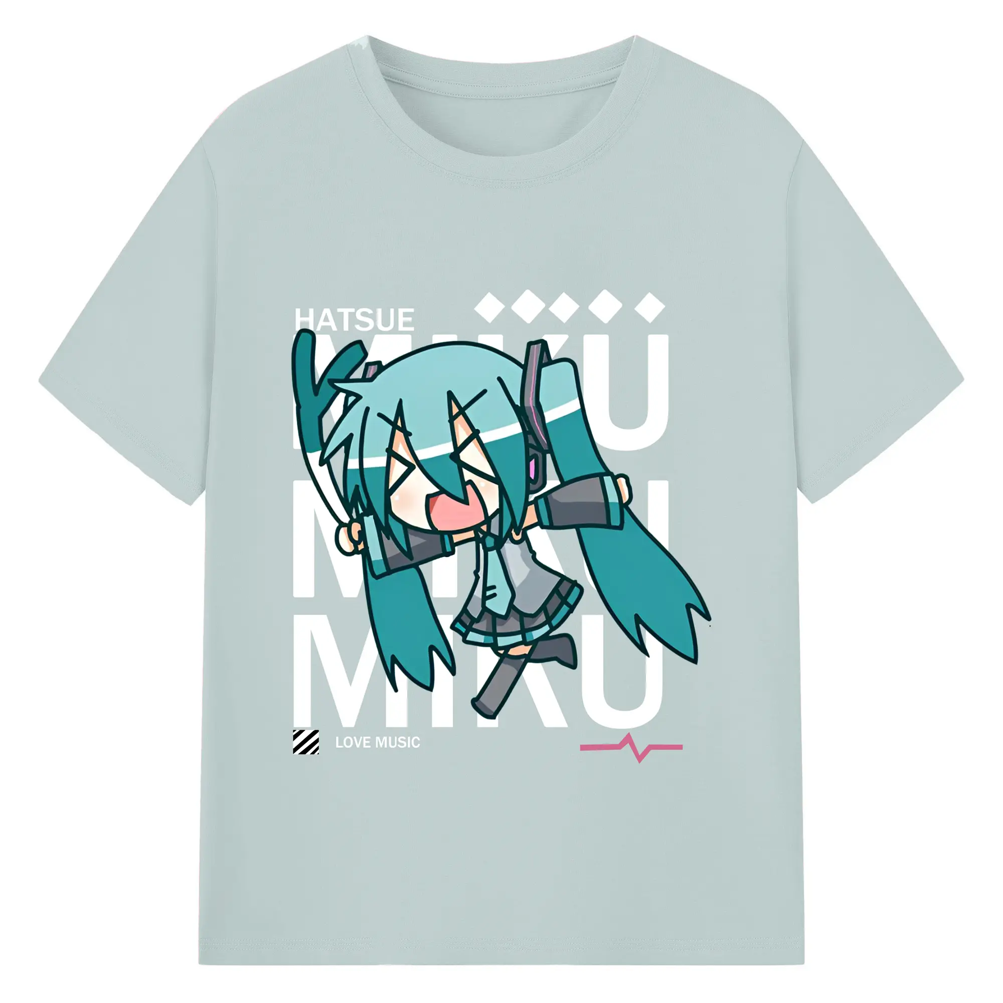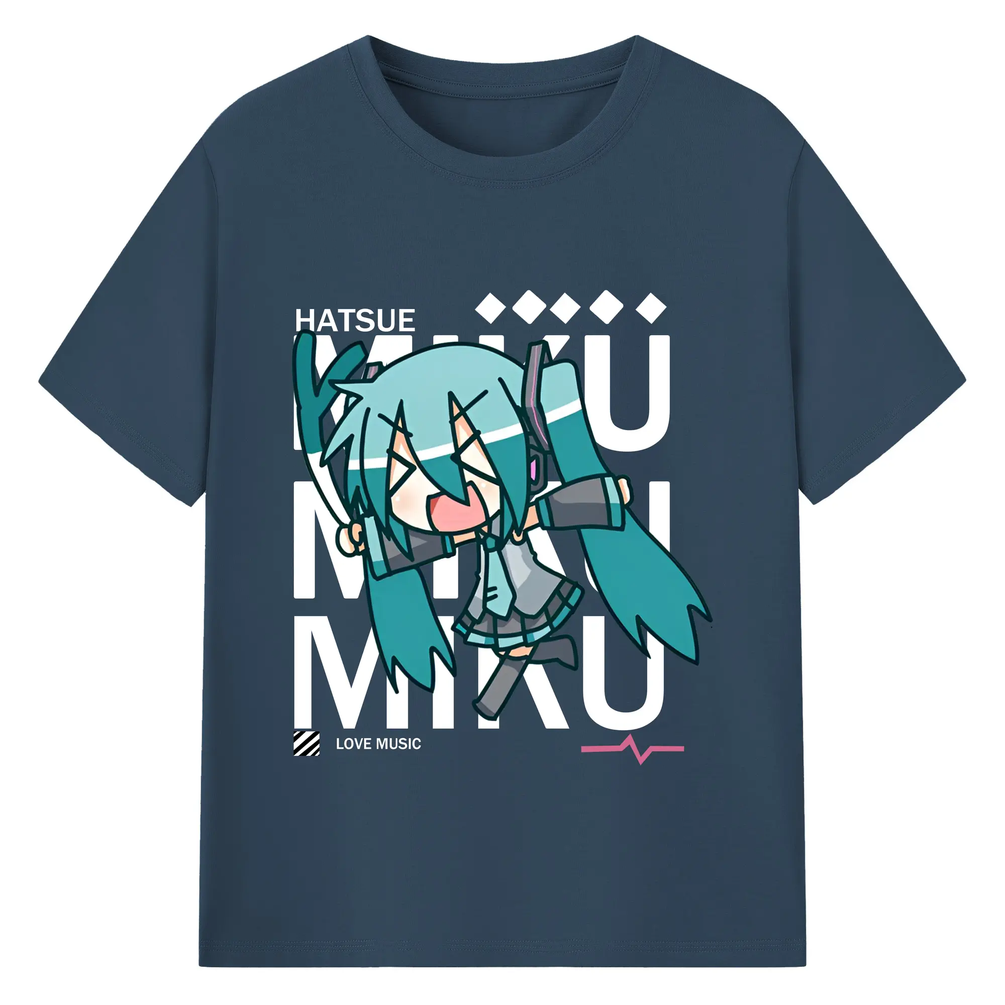 初音ミク 二次元 グッズIevan Polkka - 綿100% ヴィンテージ風 半袖Tシャツ ・ フロントプリント ・ 柔らか肌触り ・ 通気性 快適 ・ スポーツ カジュアル 外出用