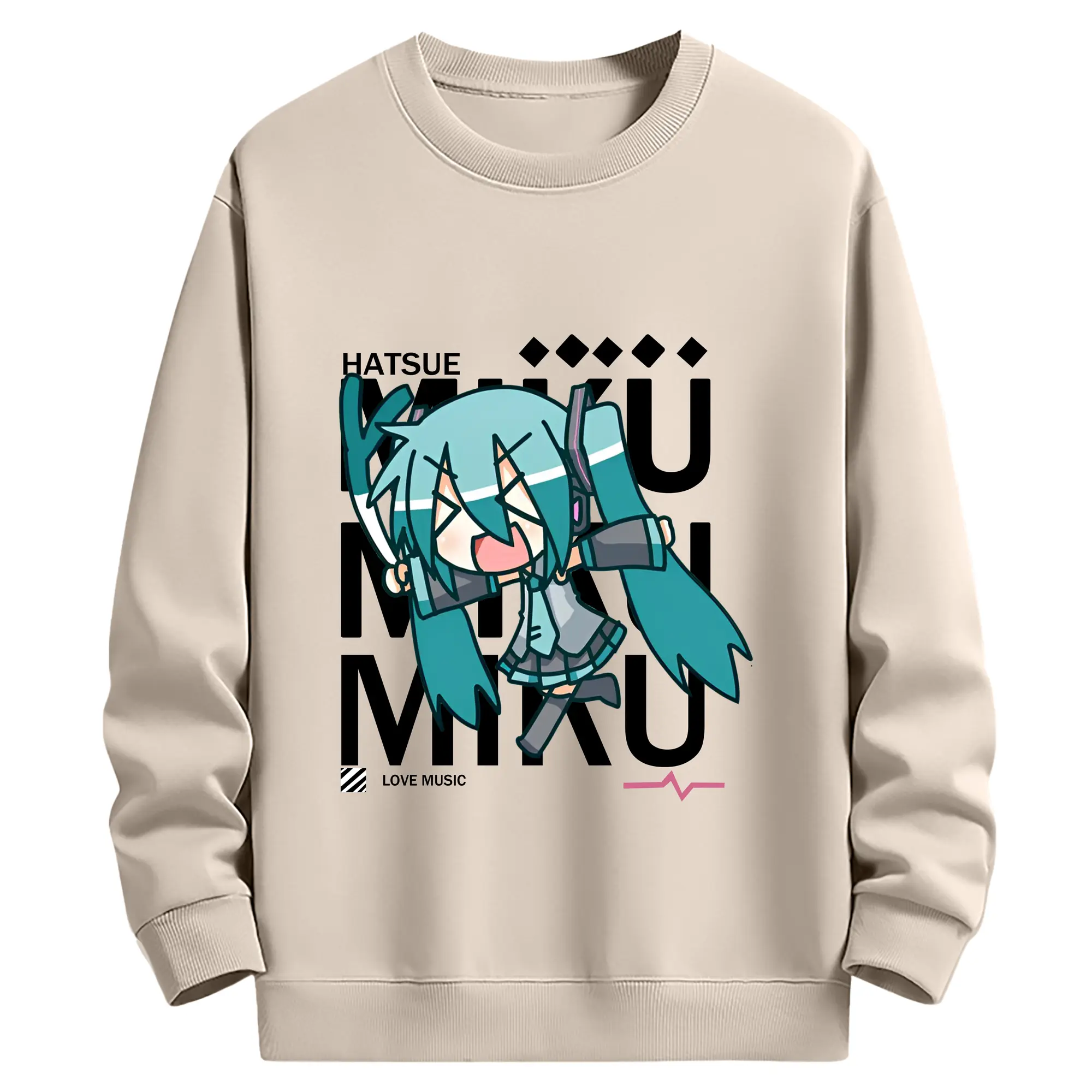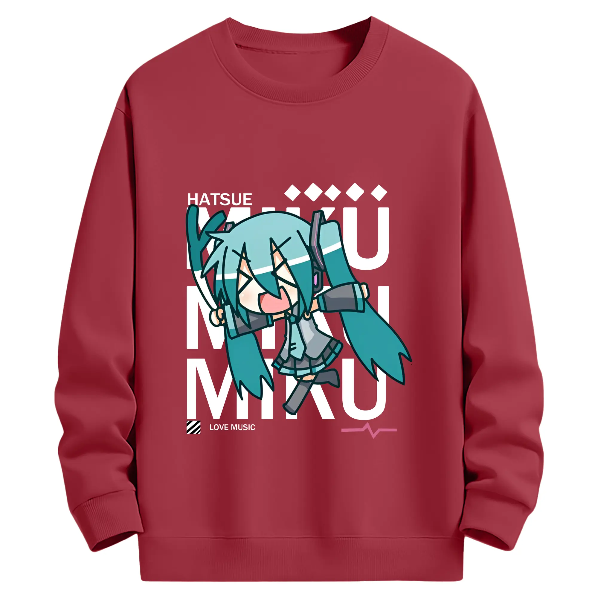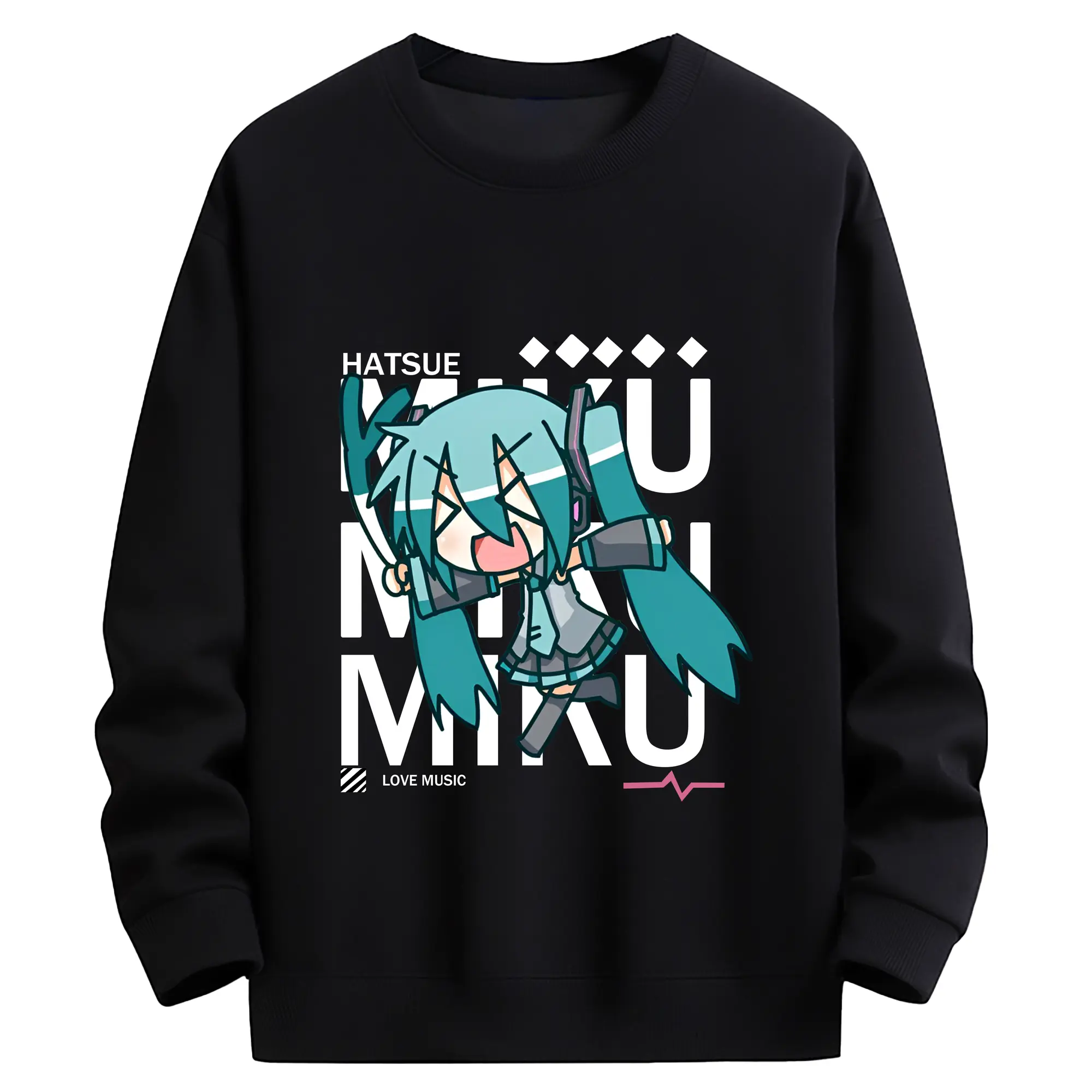 Hatsune MikuVOCALOID 初音ミク - 高品質 クルーネック スウェット ・ コットン59% ポリエステル41% ・ ユニセックス 長袖 トレーナー ・ カジュアル デイリー スポーツ 散歩用